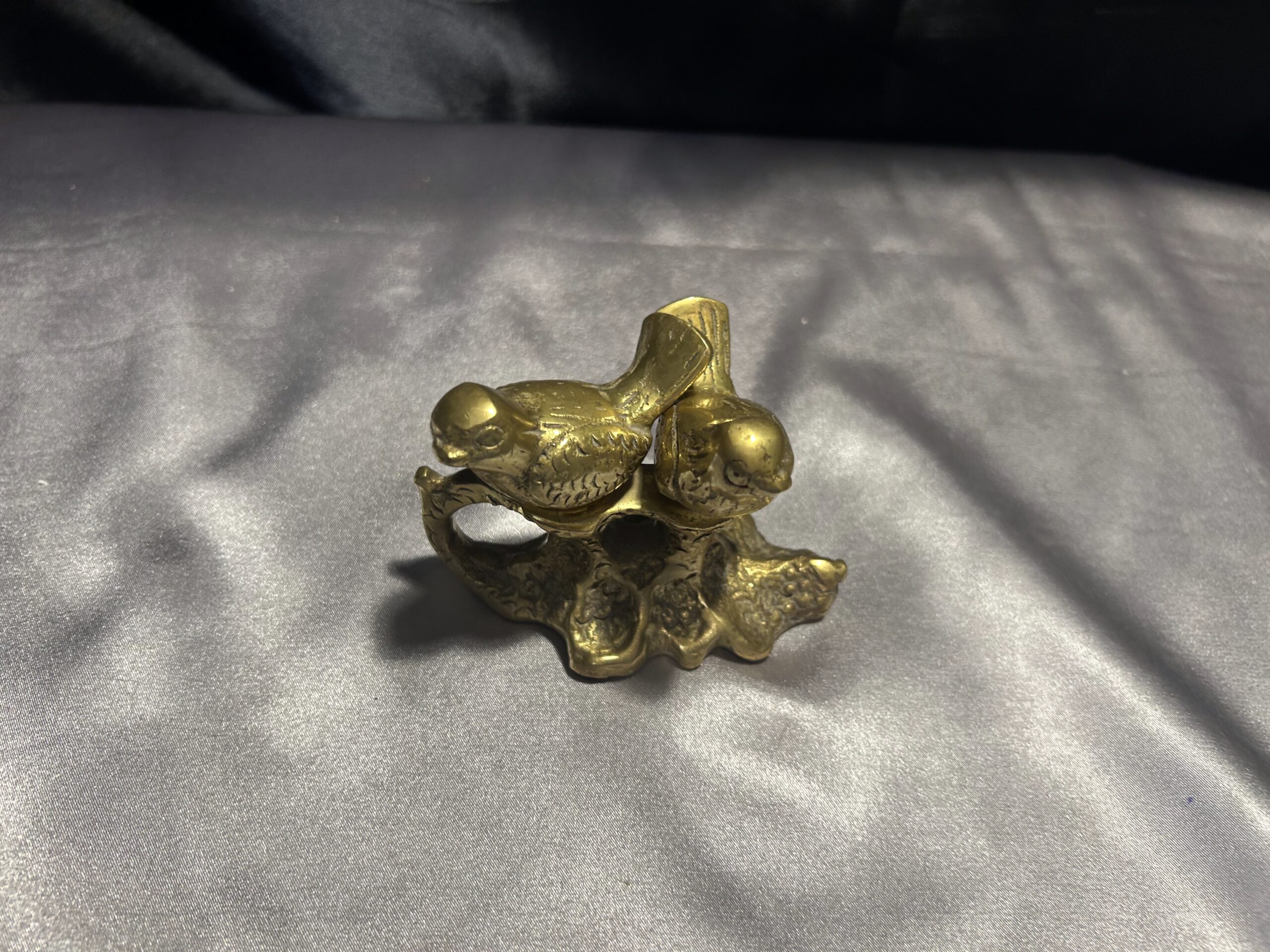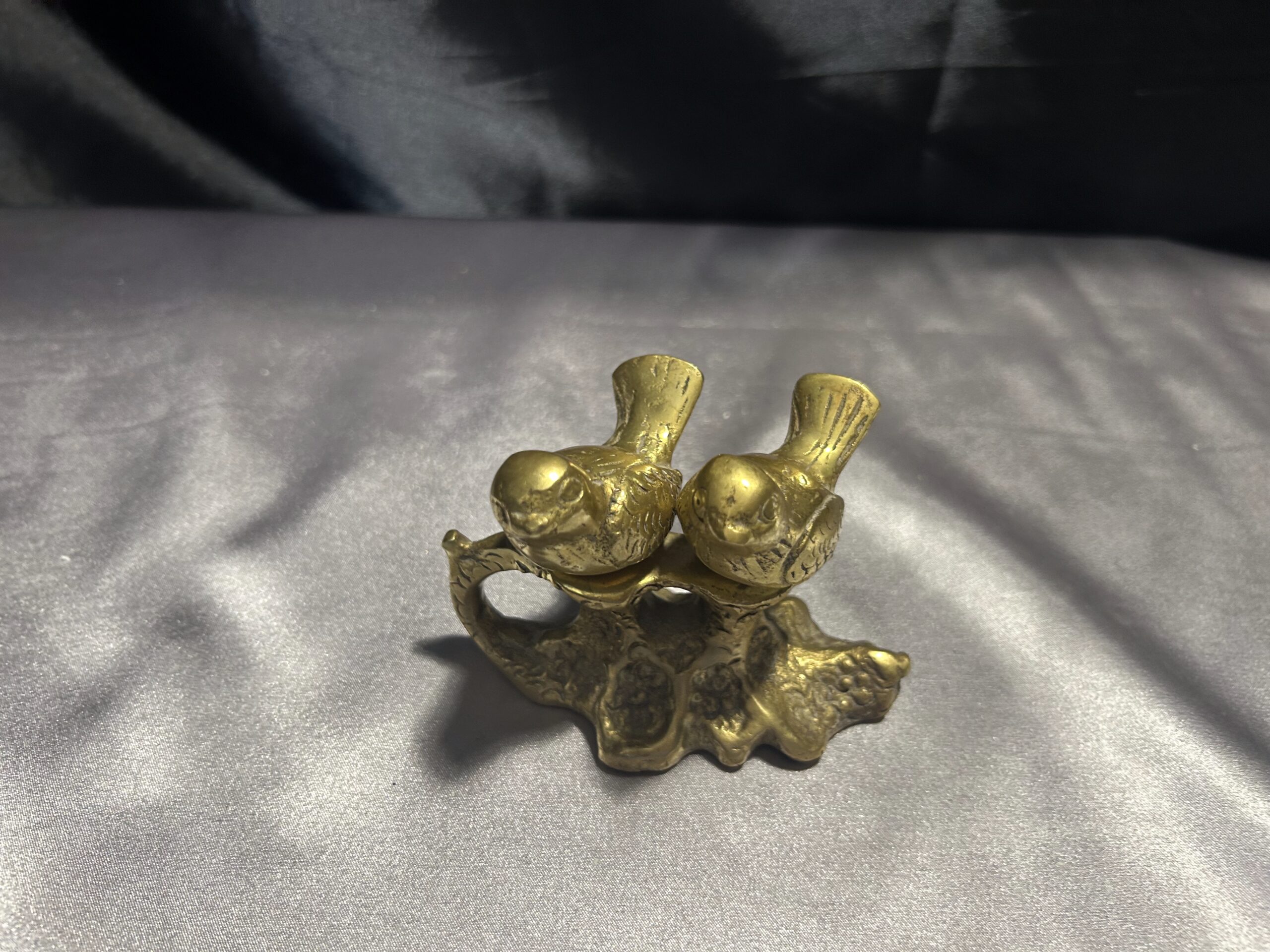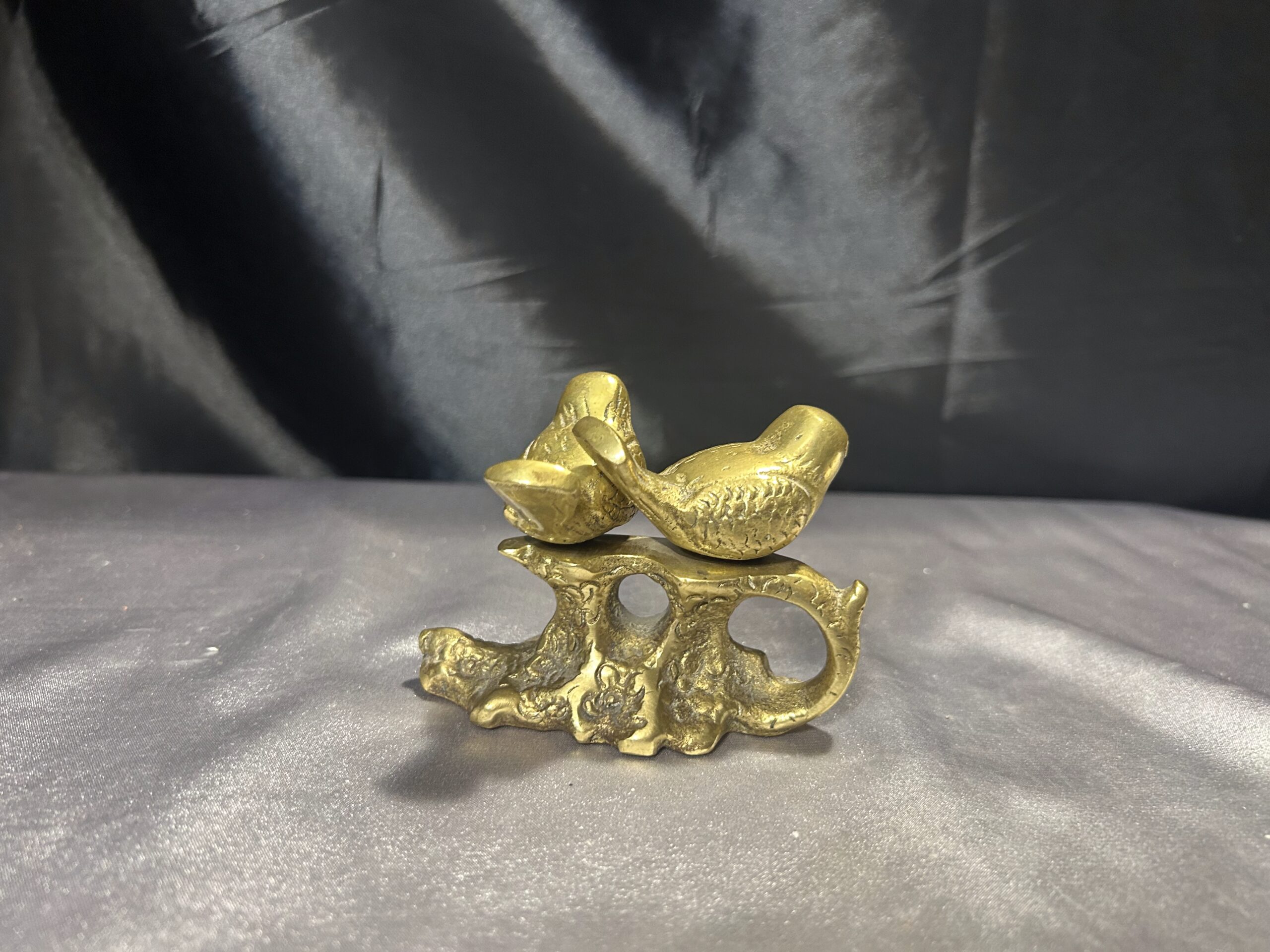 Figurka Dwóch Ptaków na Patyku z Mosiądzu – Ruchoma Dekoracja