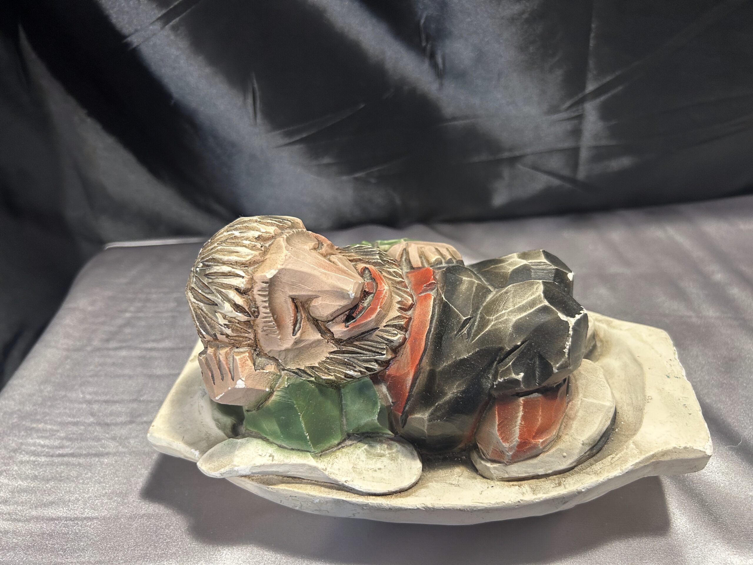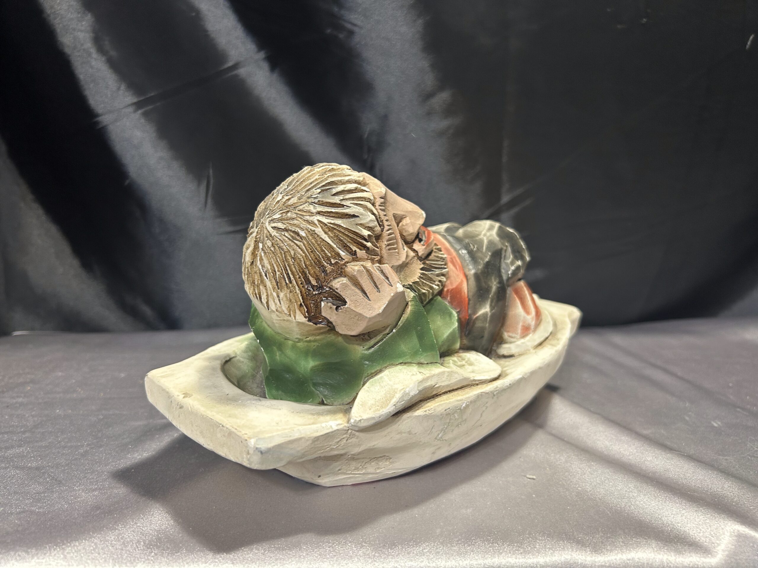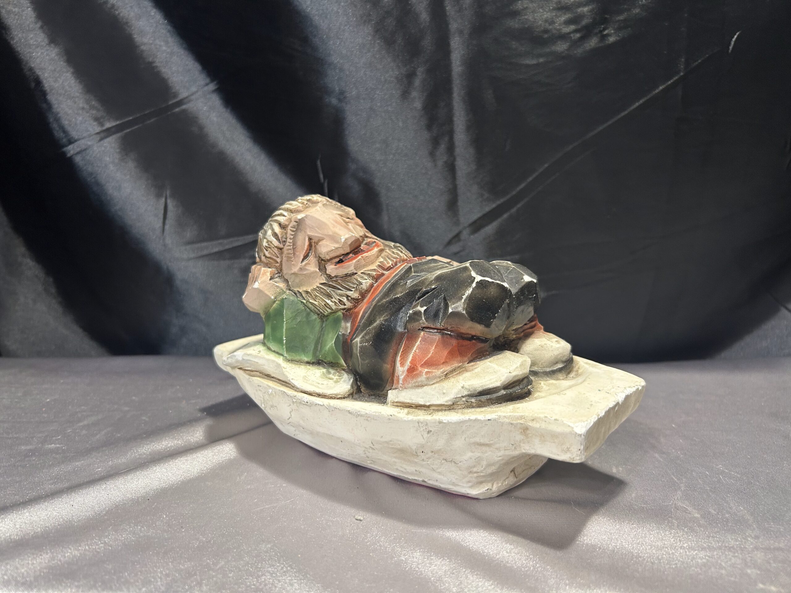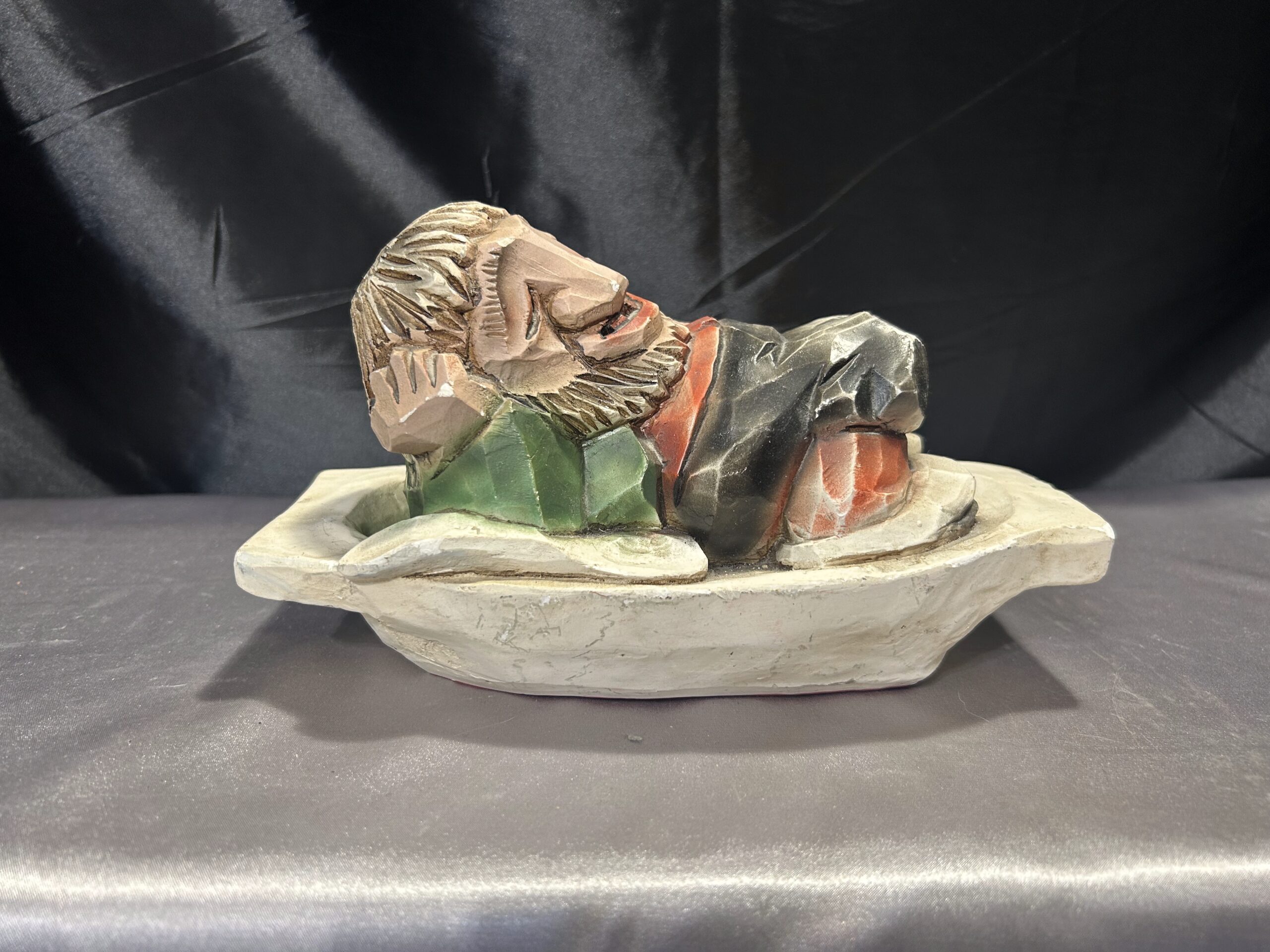 Figurka Dziadka Leżącego w Łodzi – Stylizowana na Ręczne Ciosanie