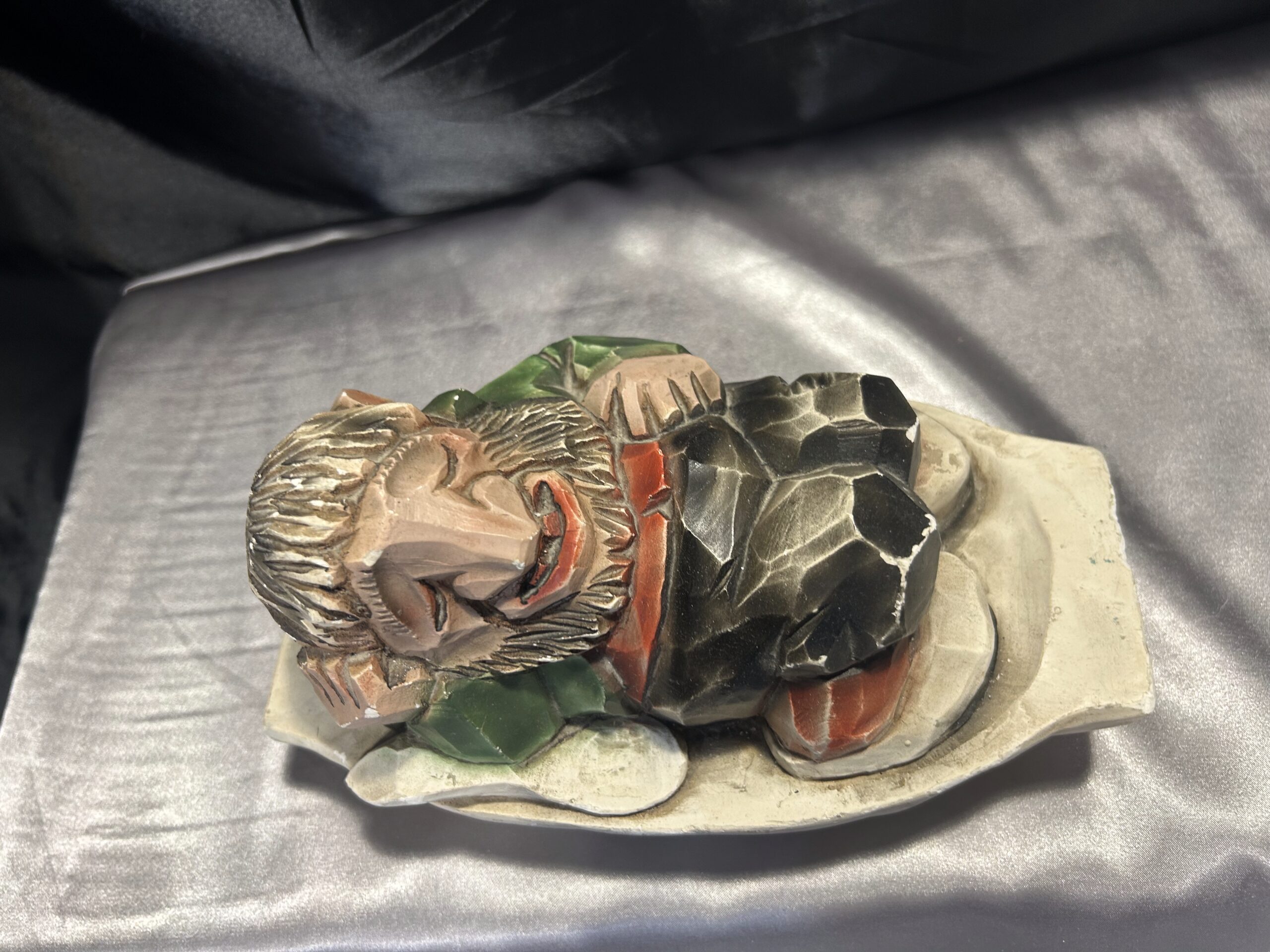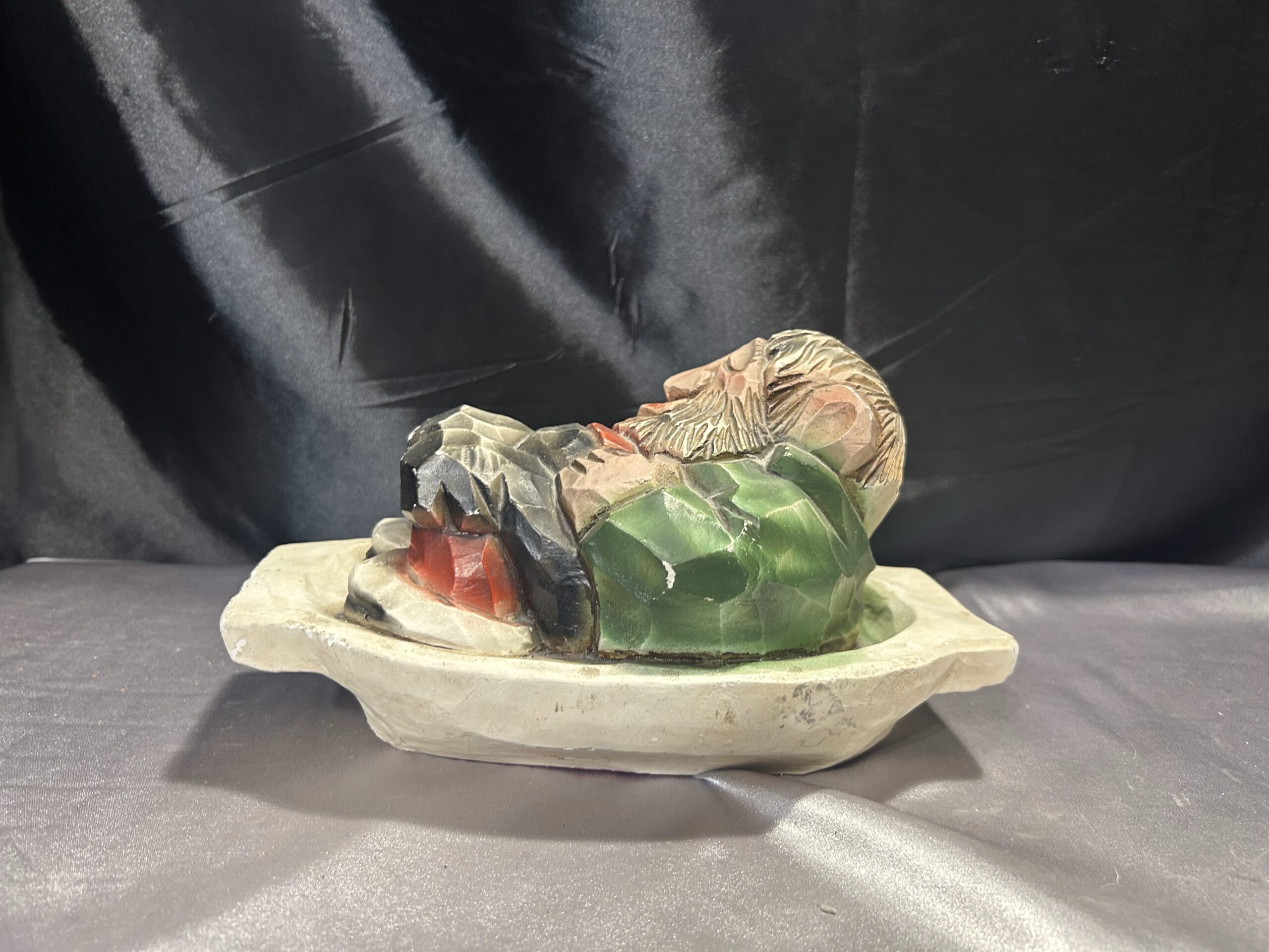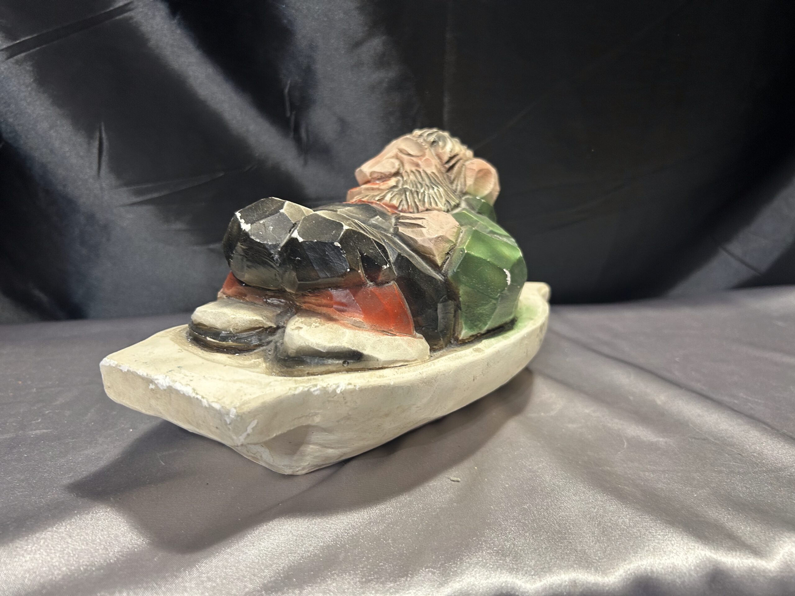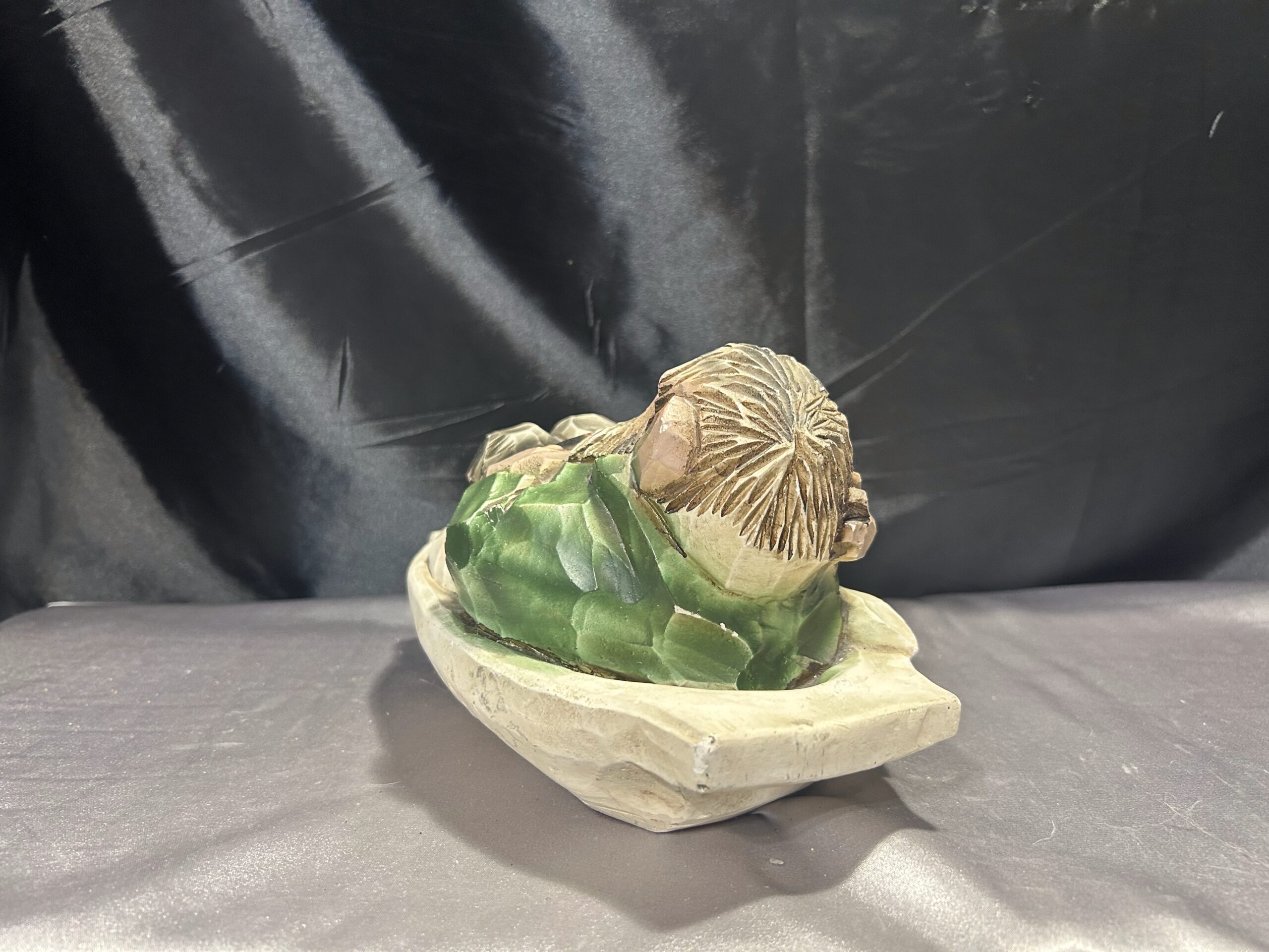 Figurka Dziadka Leżącego w Łodzi – Stylizowana na Ręczne Ciosanie