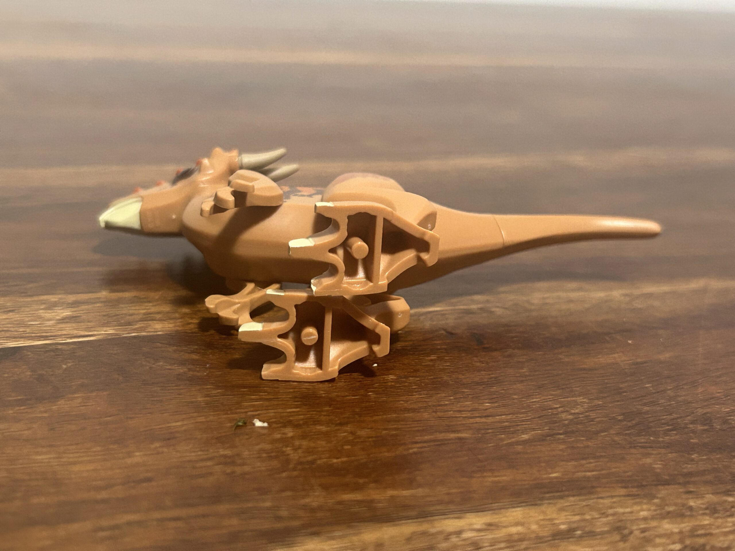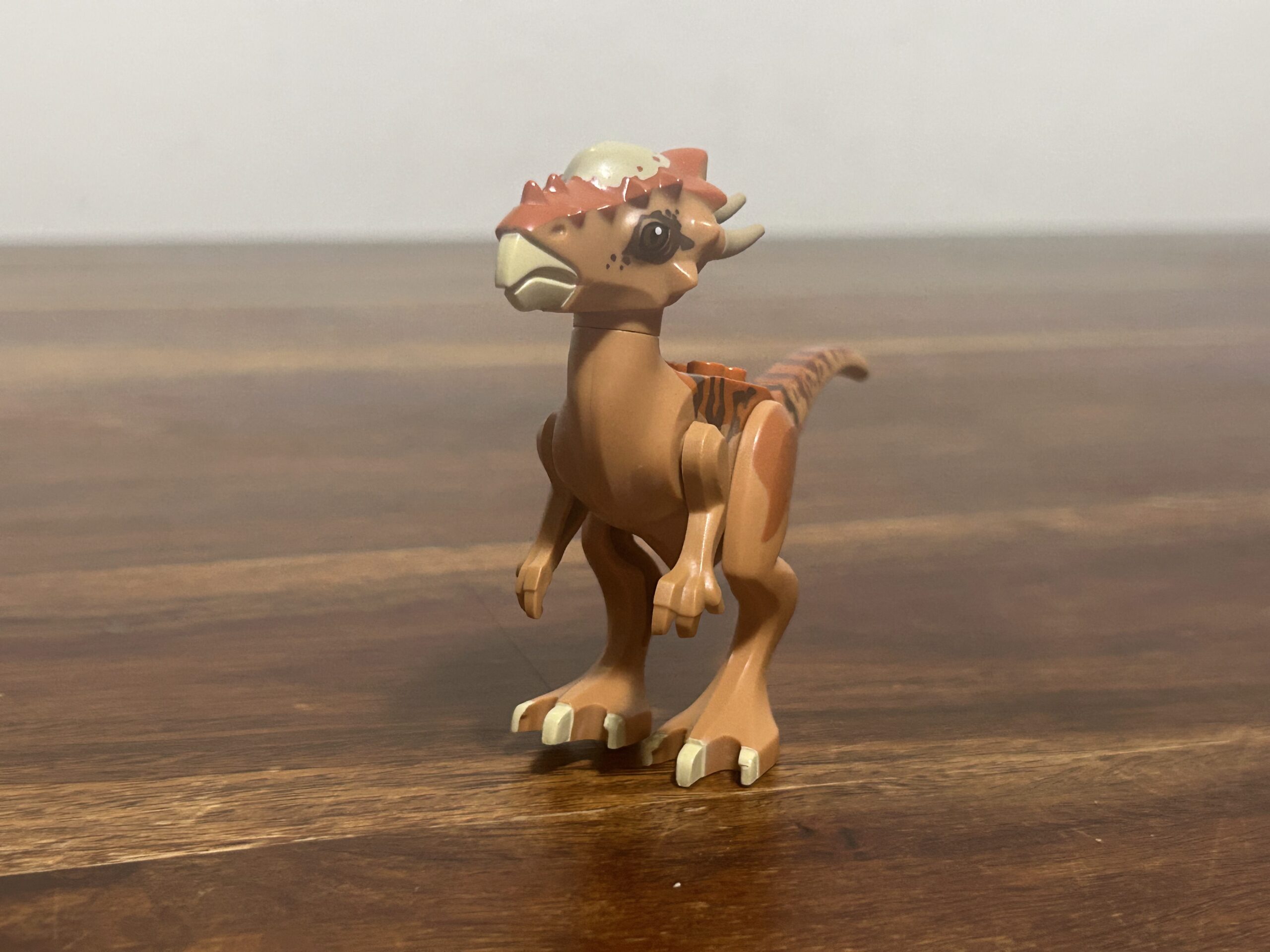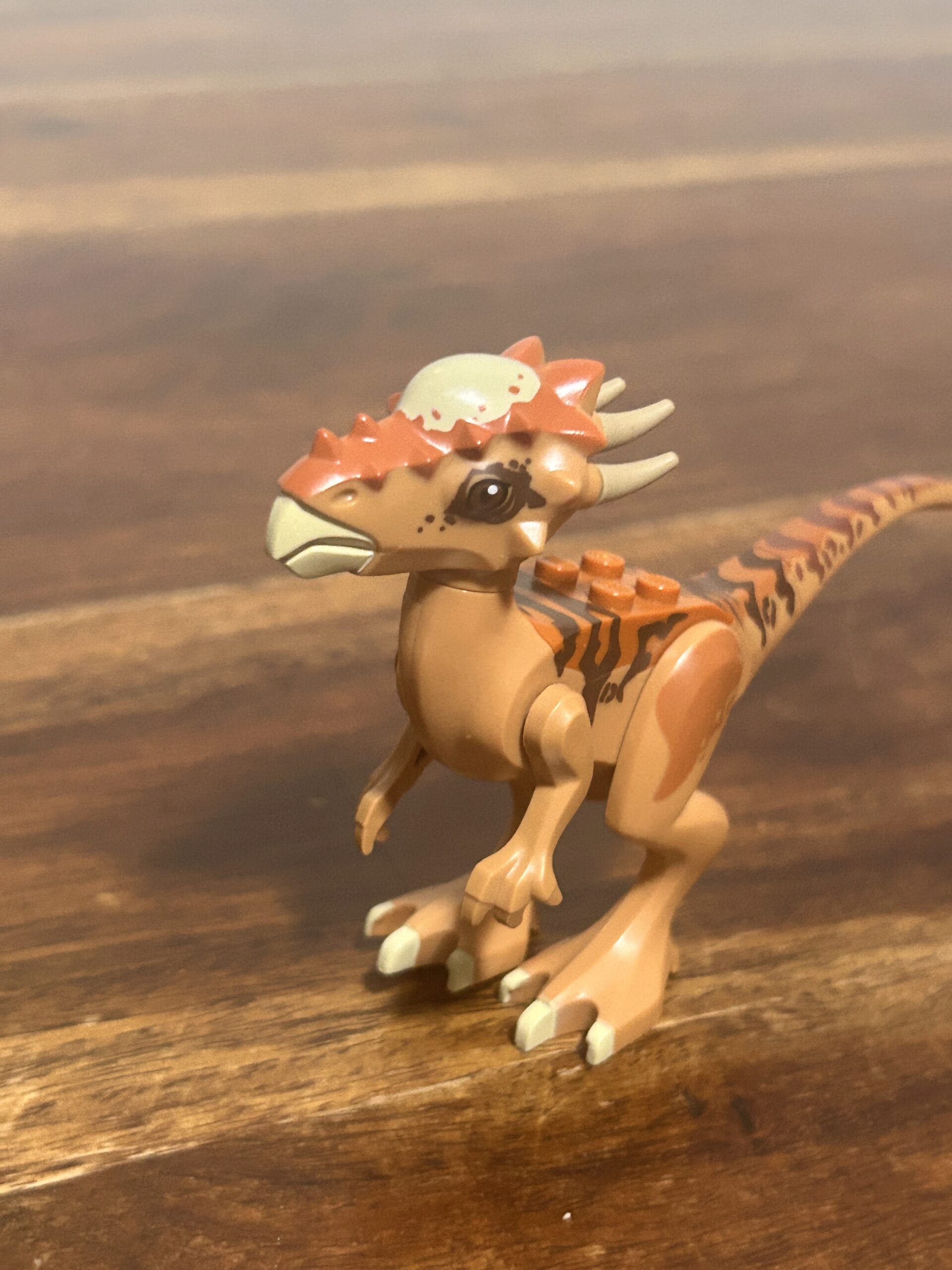 Kolekcjonerska figurka LEGO przedstawiająca dinozaura Stygimoloch, znanego z charakterystycznego wyglądu z ciemnopomarańczowym grzbietem i ciemnobrązowymi paskami. Wyprodukowana w 2018 roku, figurka wyróżnia się precyzyjnym wykonaniem oraz realistycznym odwzorowaniem detali. Jest to doskonały dodatek zarówno do kolekcji LEGO, jak i tematycznych scen z prehistorycznymi zwierzętami.