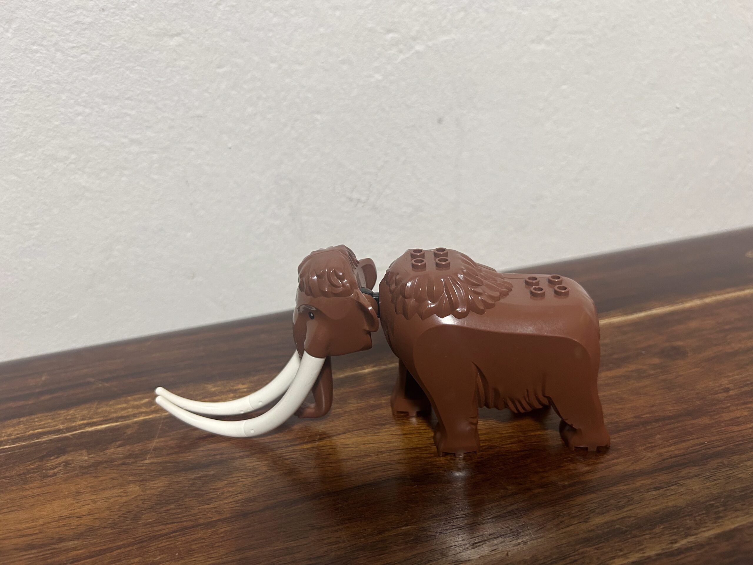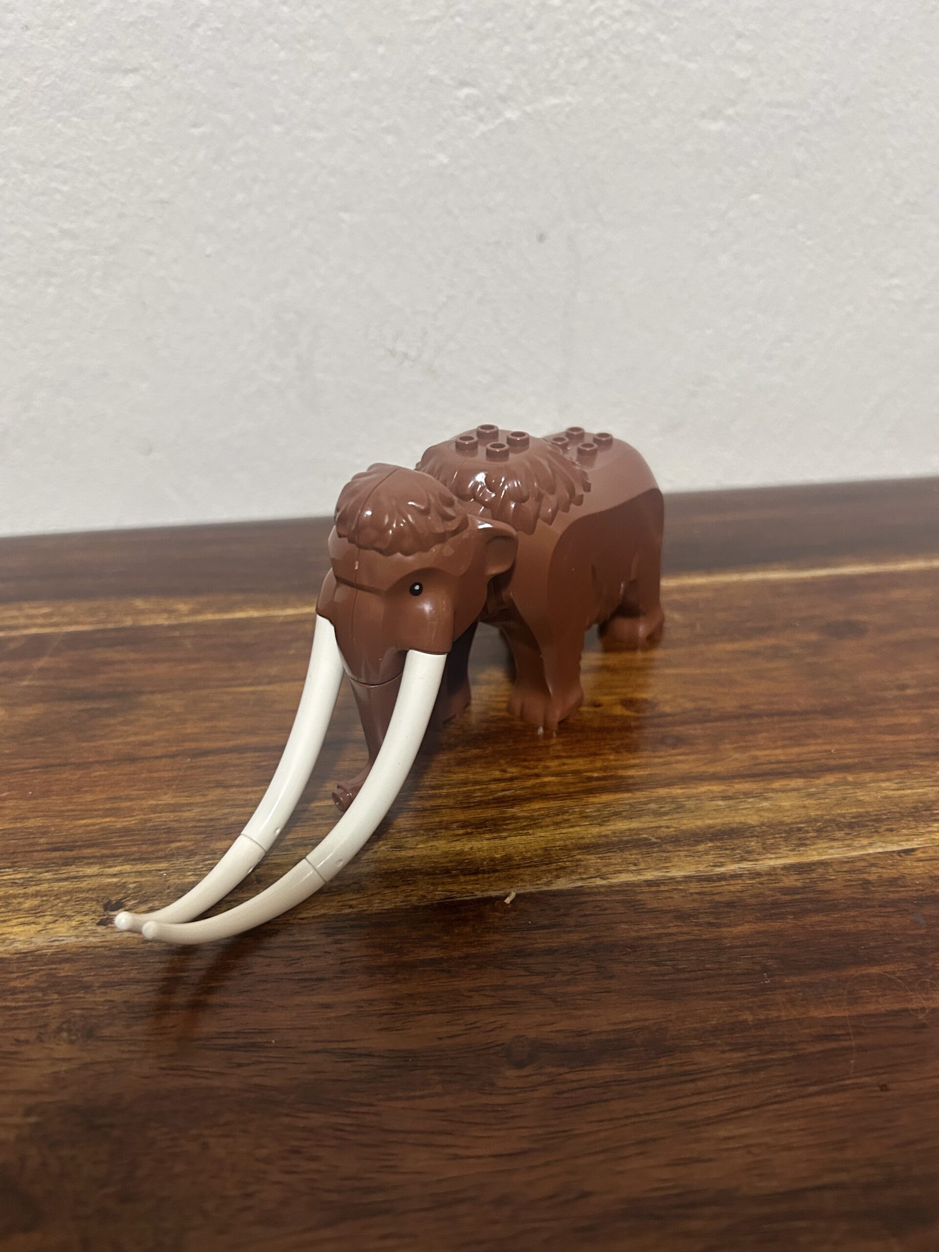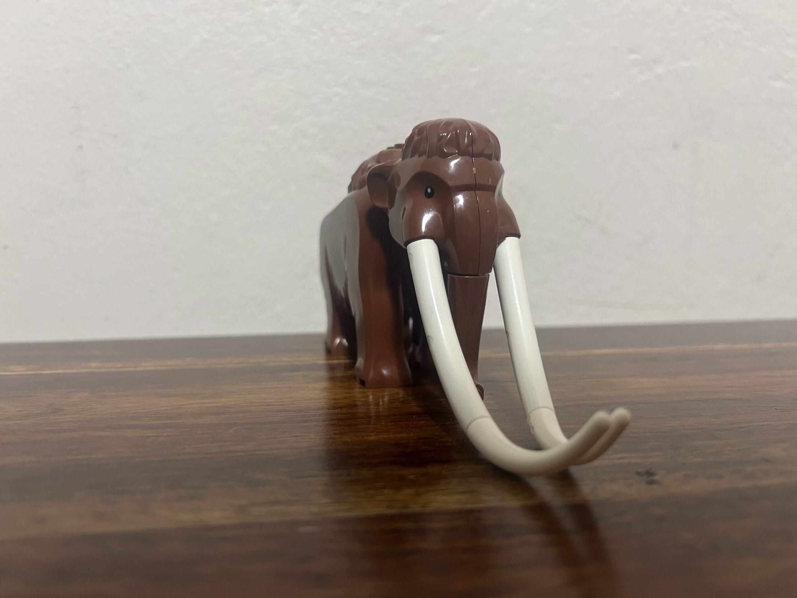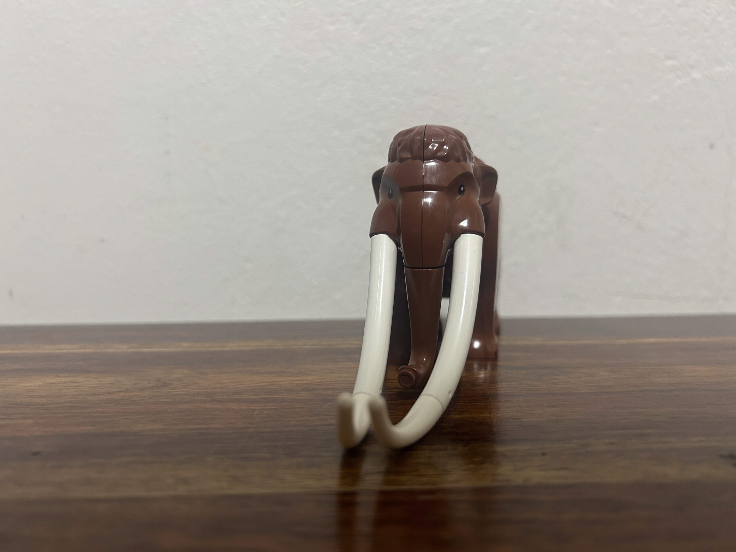 Imponująca figurka LEGO przedstawiająca mamuta włochatego z charakterystycznymi białymi kłami. Pochodzi z zestawu 60195-1 i wyróżnia się realistycznym designem oraz solidnym wykonaniem. Idealny dodatek do kolekcji LEGO, szczególnie dla fanów zwierząt prehistorycznych.