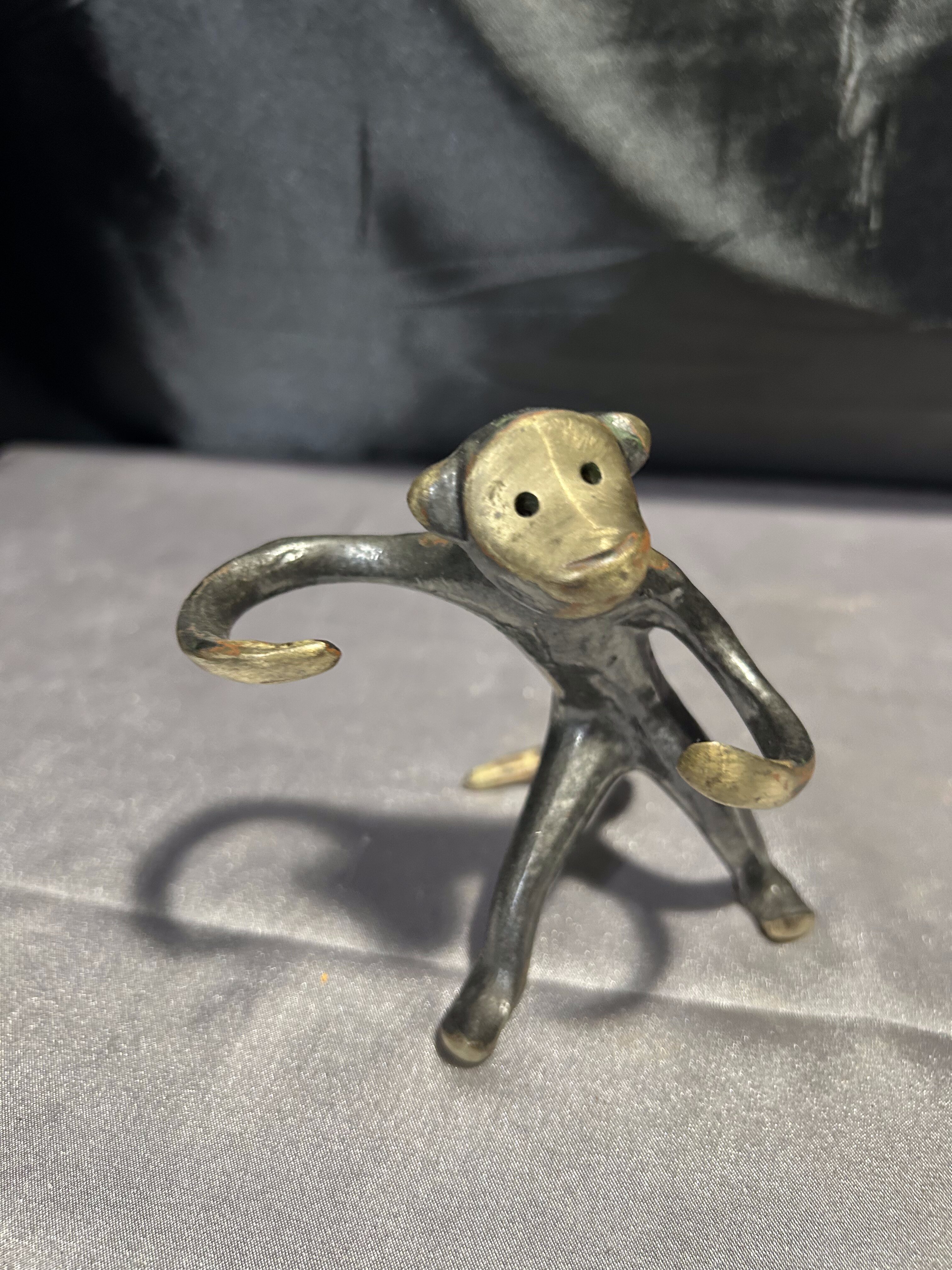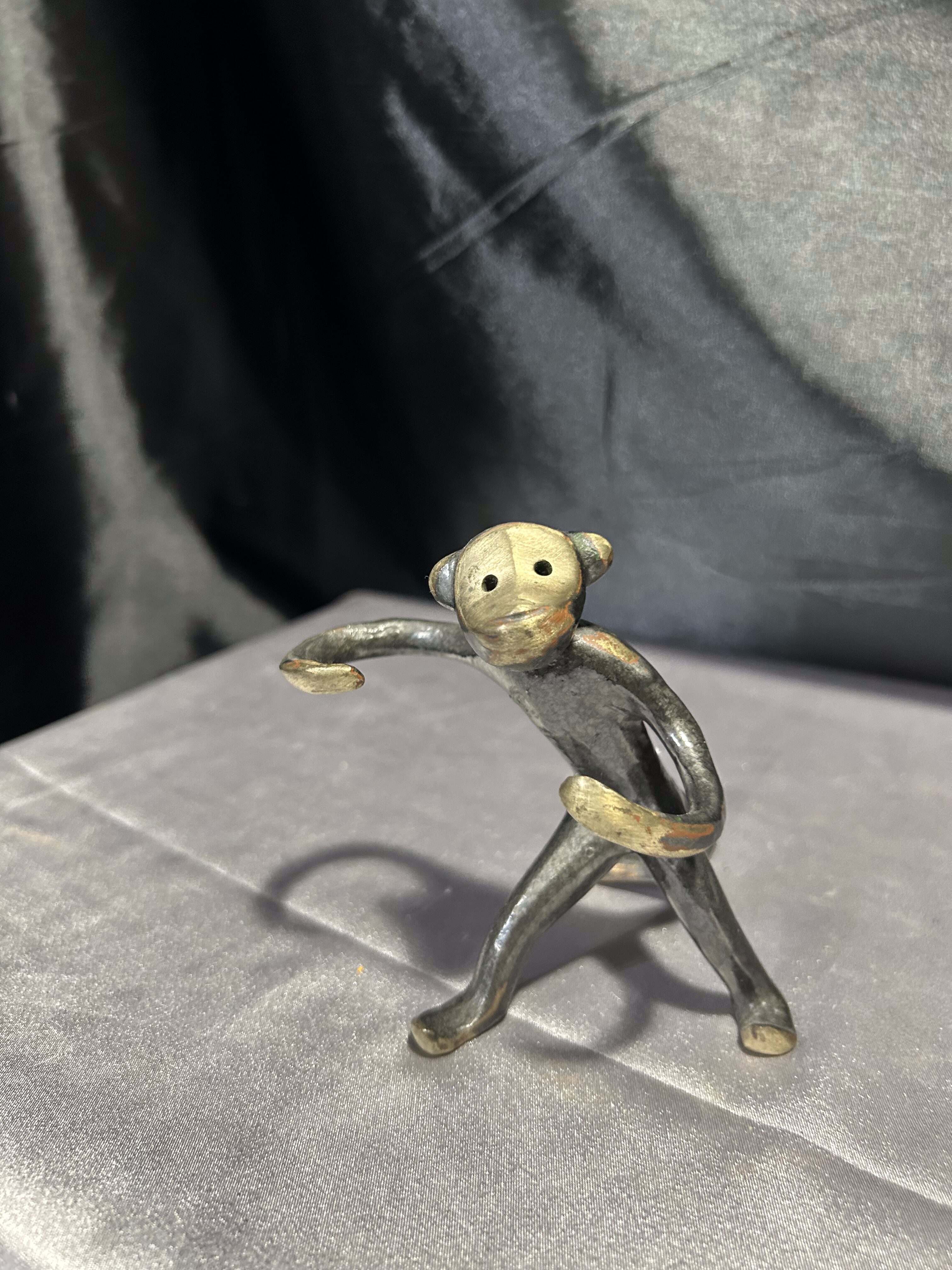 Oryginalna figurka projektu Waltera Bosse – kultowego austriackiego projektanta z epoki mid-century modern. Przedstawia stylizowaną małpkę wykonaną z brązu, patynowaną na czarno z charakterystycznymi, wypolerowanymi akcentami. Dynamiczna forma i minimalistyczne detale sprawiają, że to nie tylko przedmiot dekoracyjny, ale i pełnoprawne dzieło sztuki użytkowej.