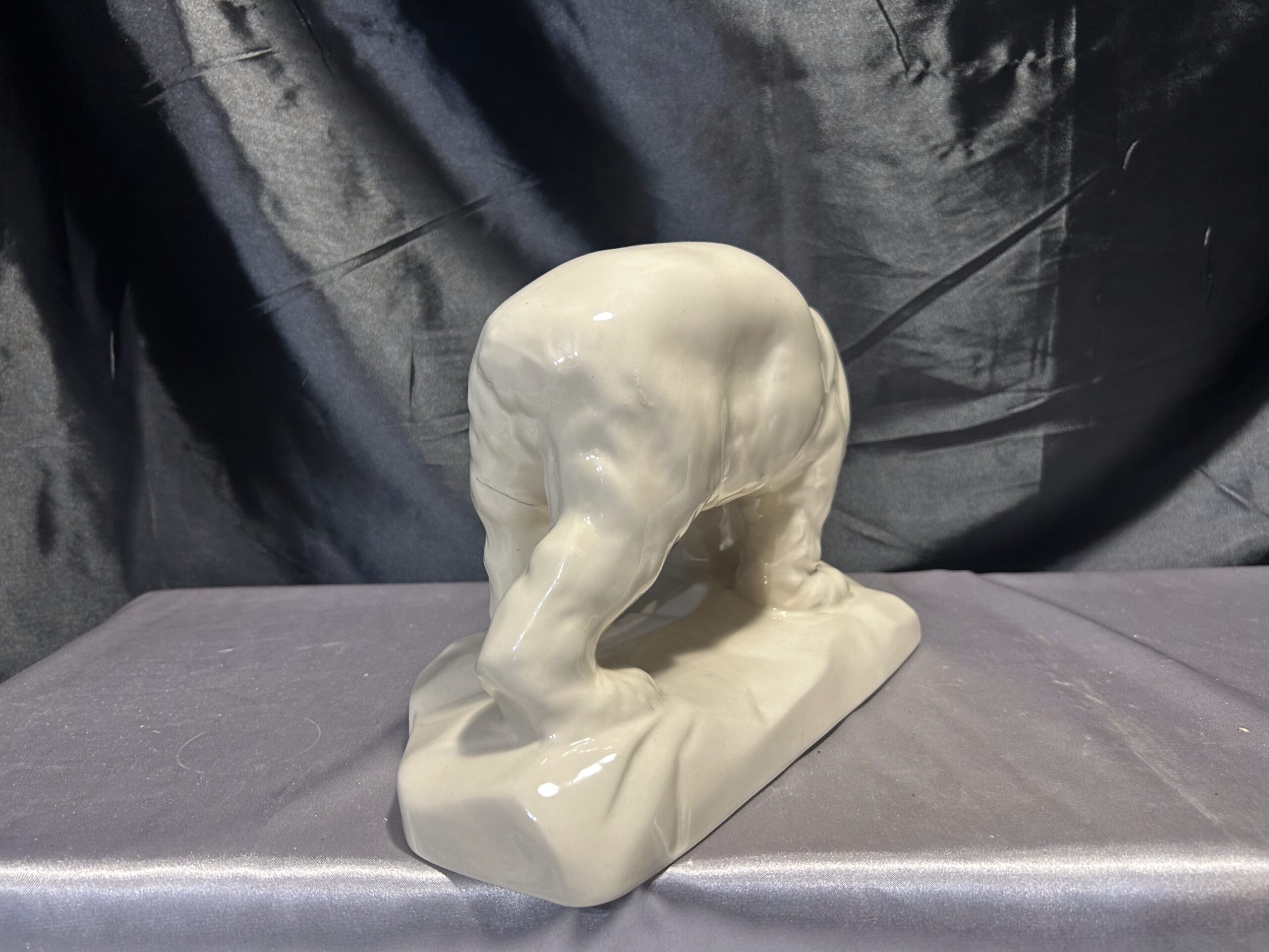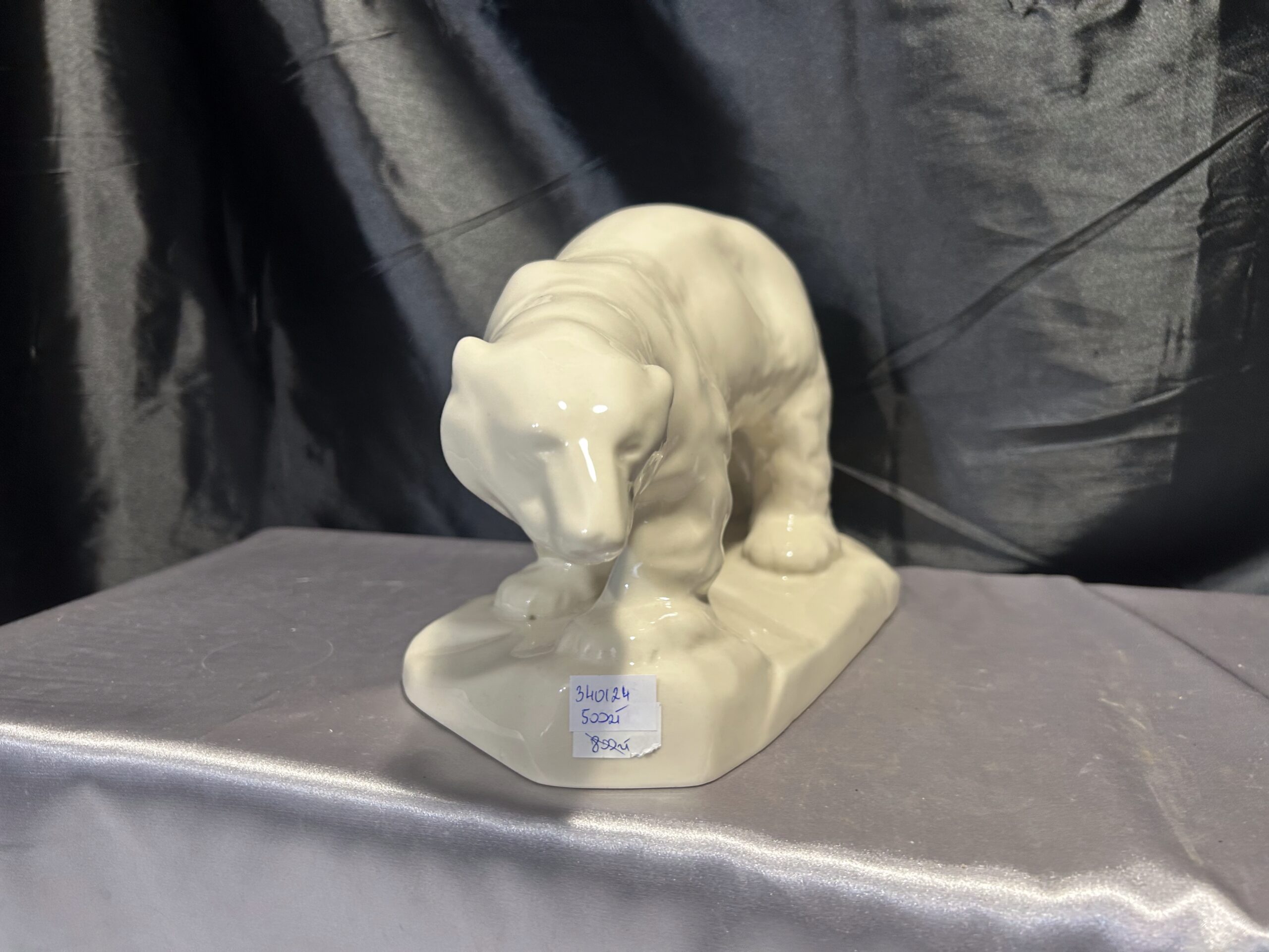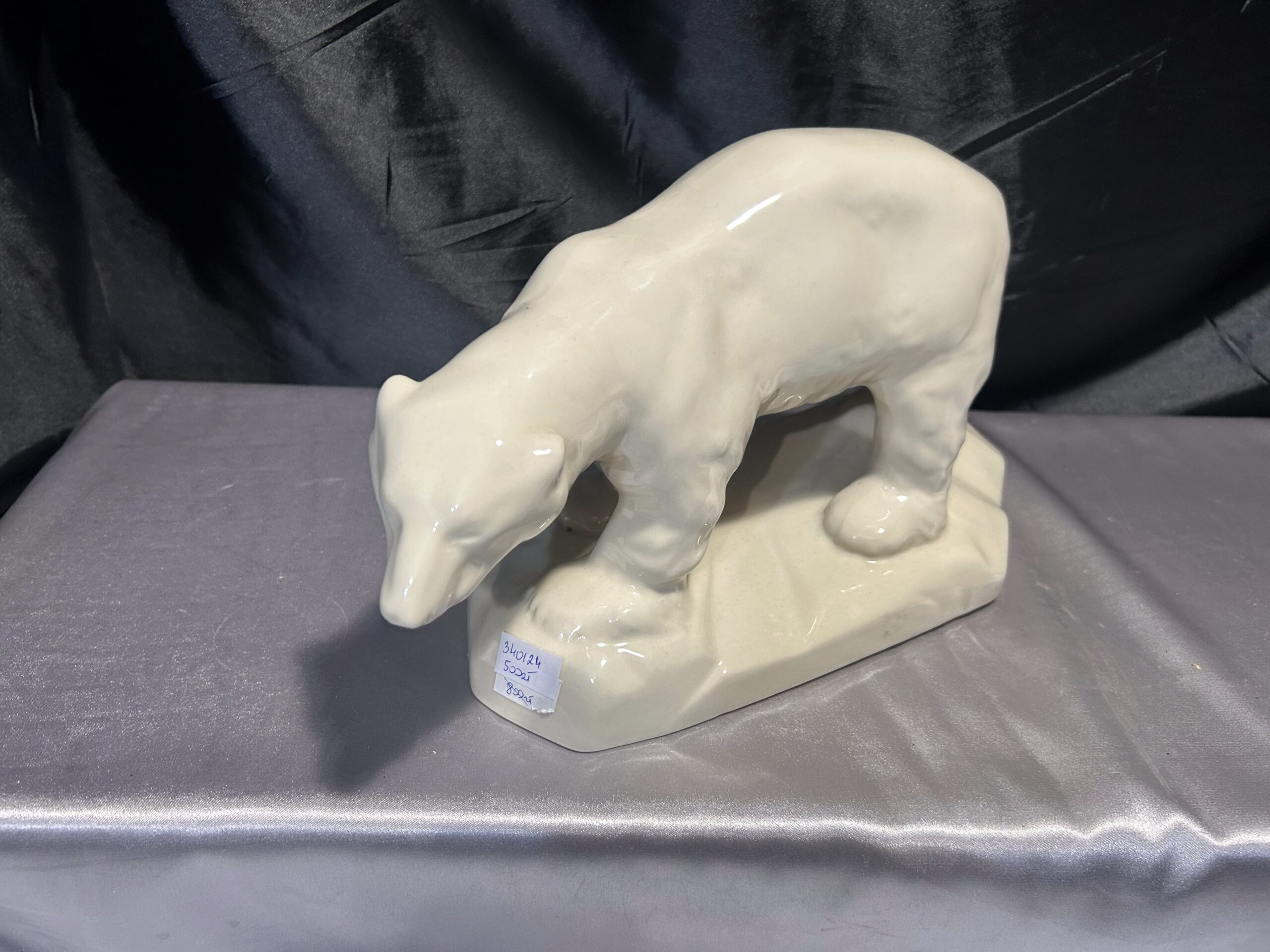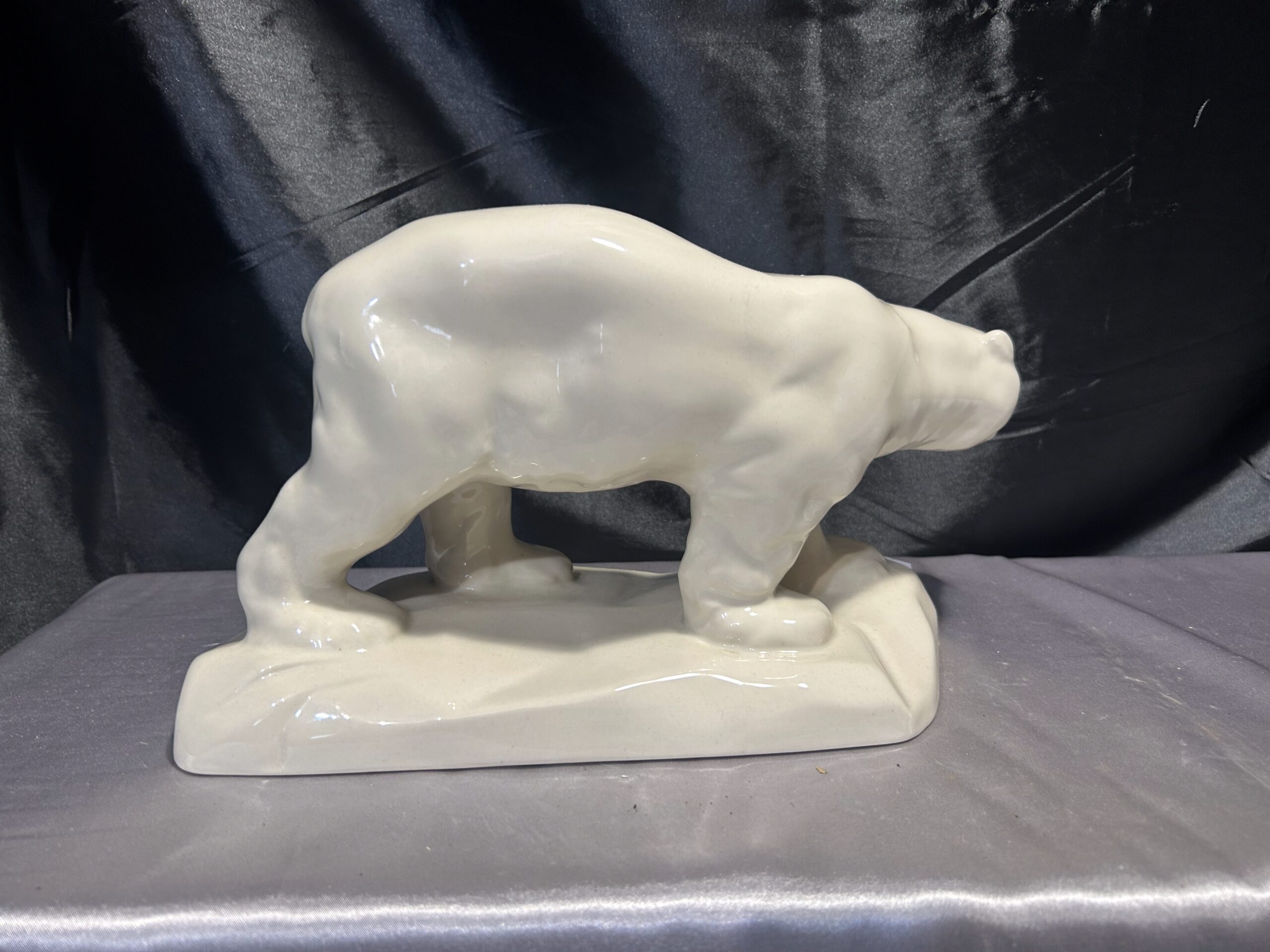 Realistyczna figurka przedstawiająca niedźwiedzia polarnego w kremowym kolorze, wykonana w latach 60-tych przez renomowaną fabrykę porcelany Chodzież. Sygnowana „Made in Poland”, jest wyjątkowym przykładem polskiego rzemiosła artystycznego.