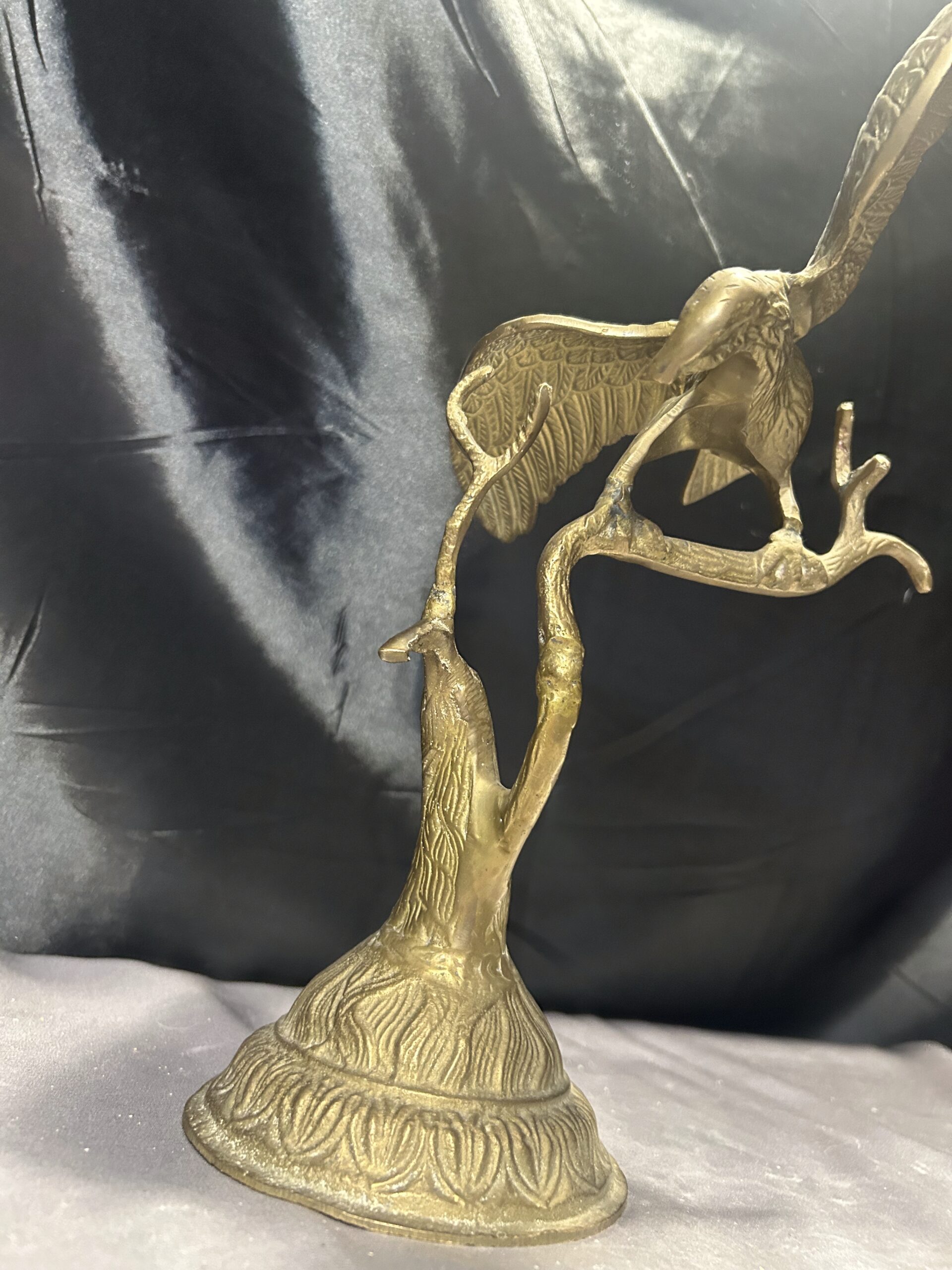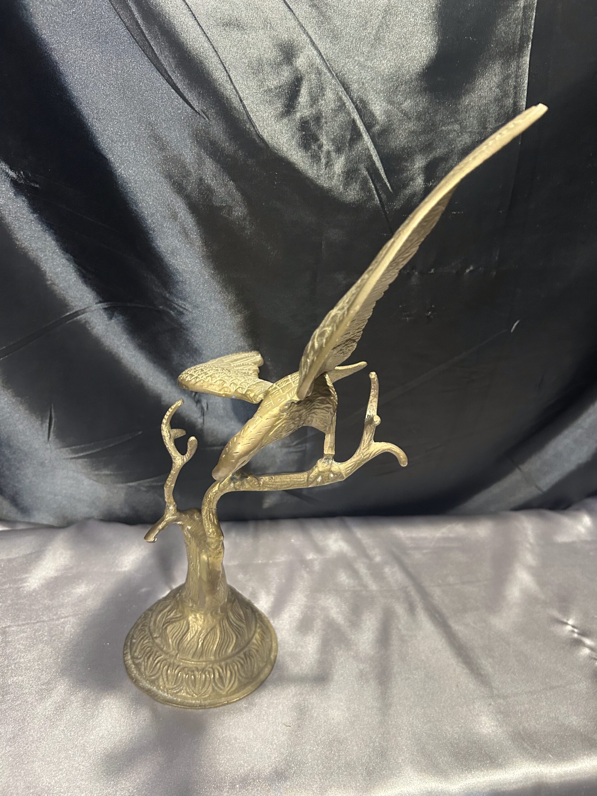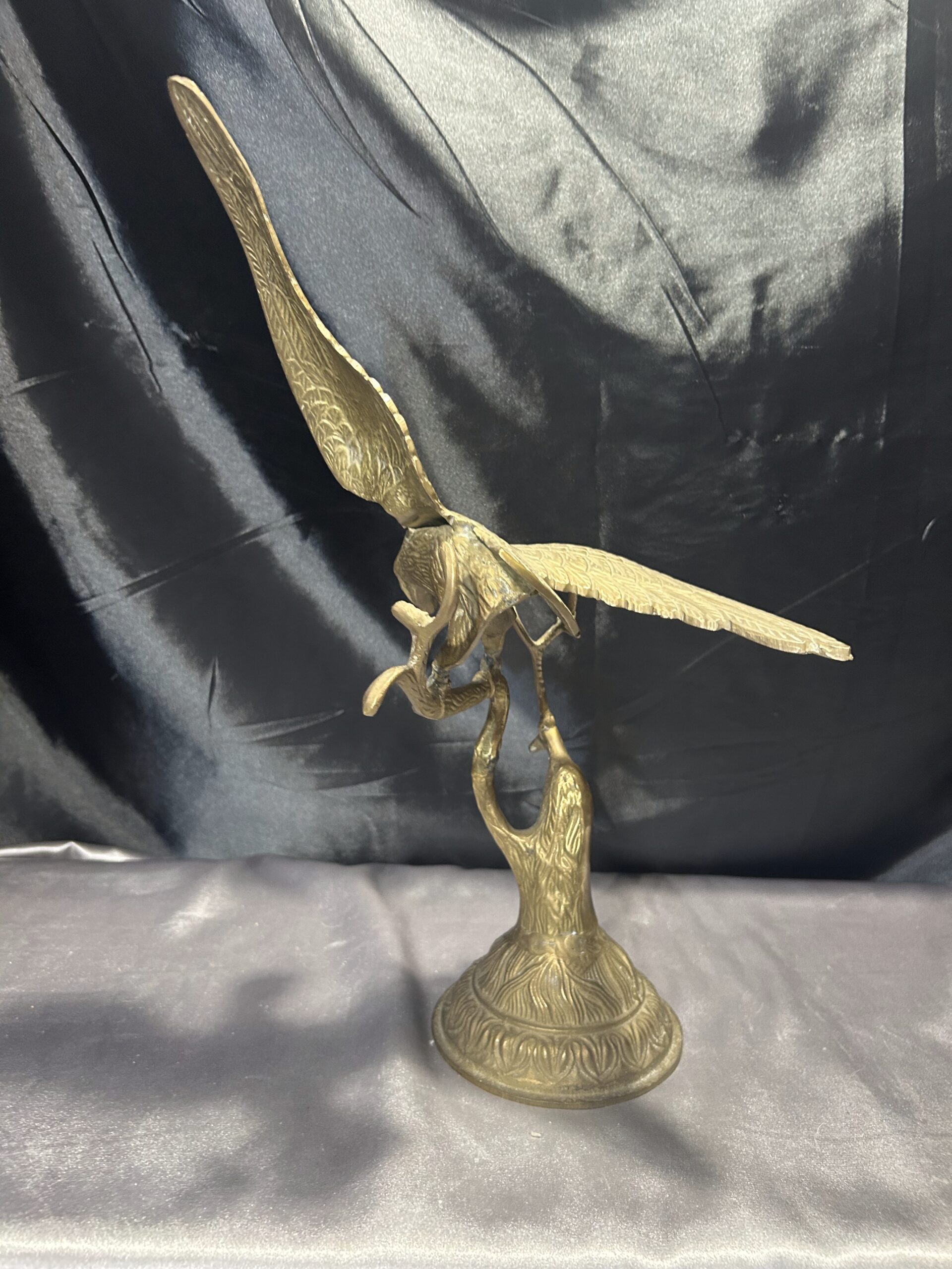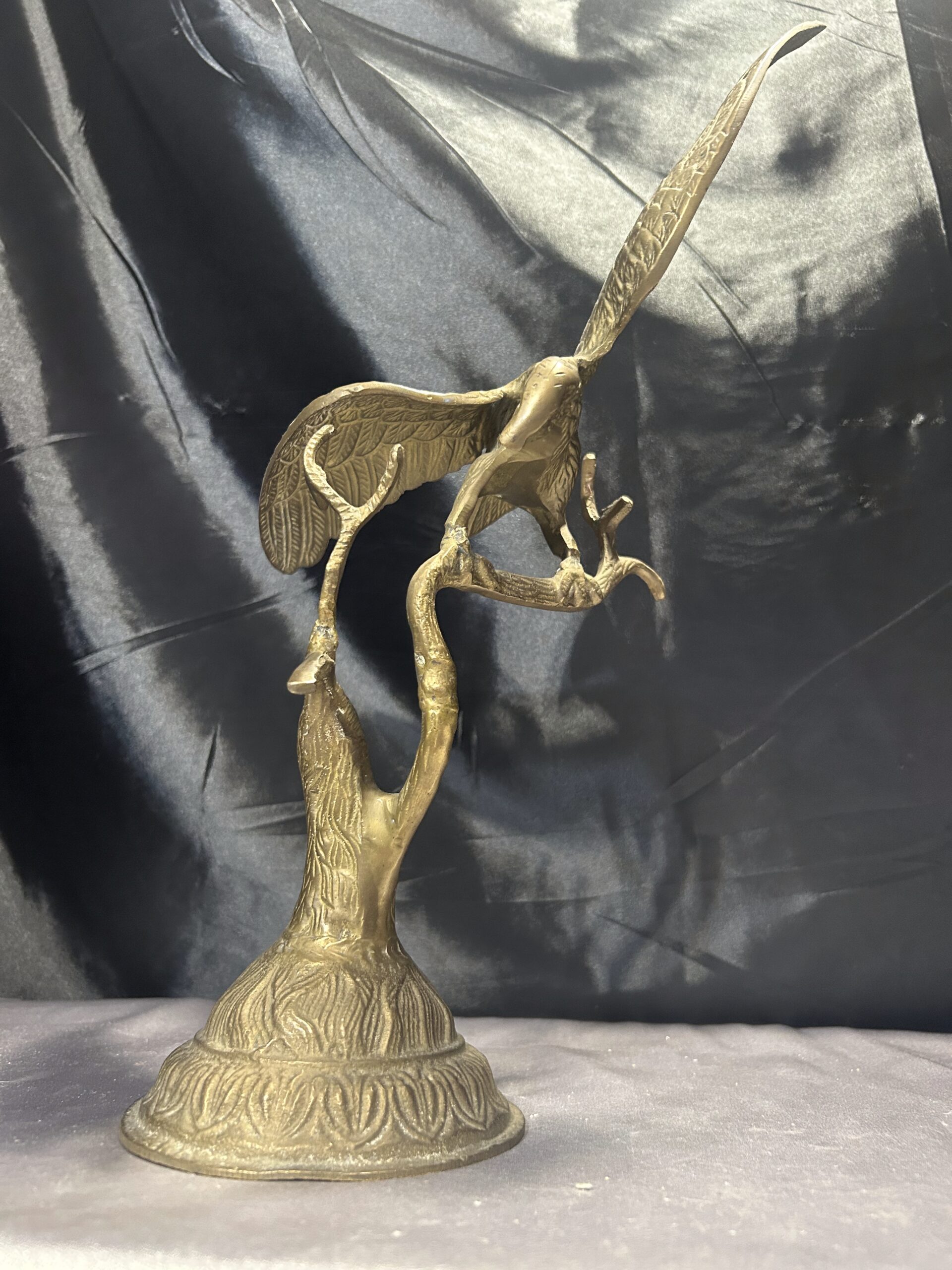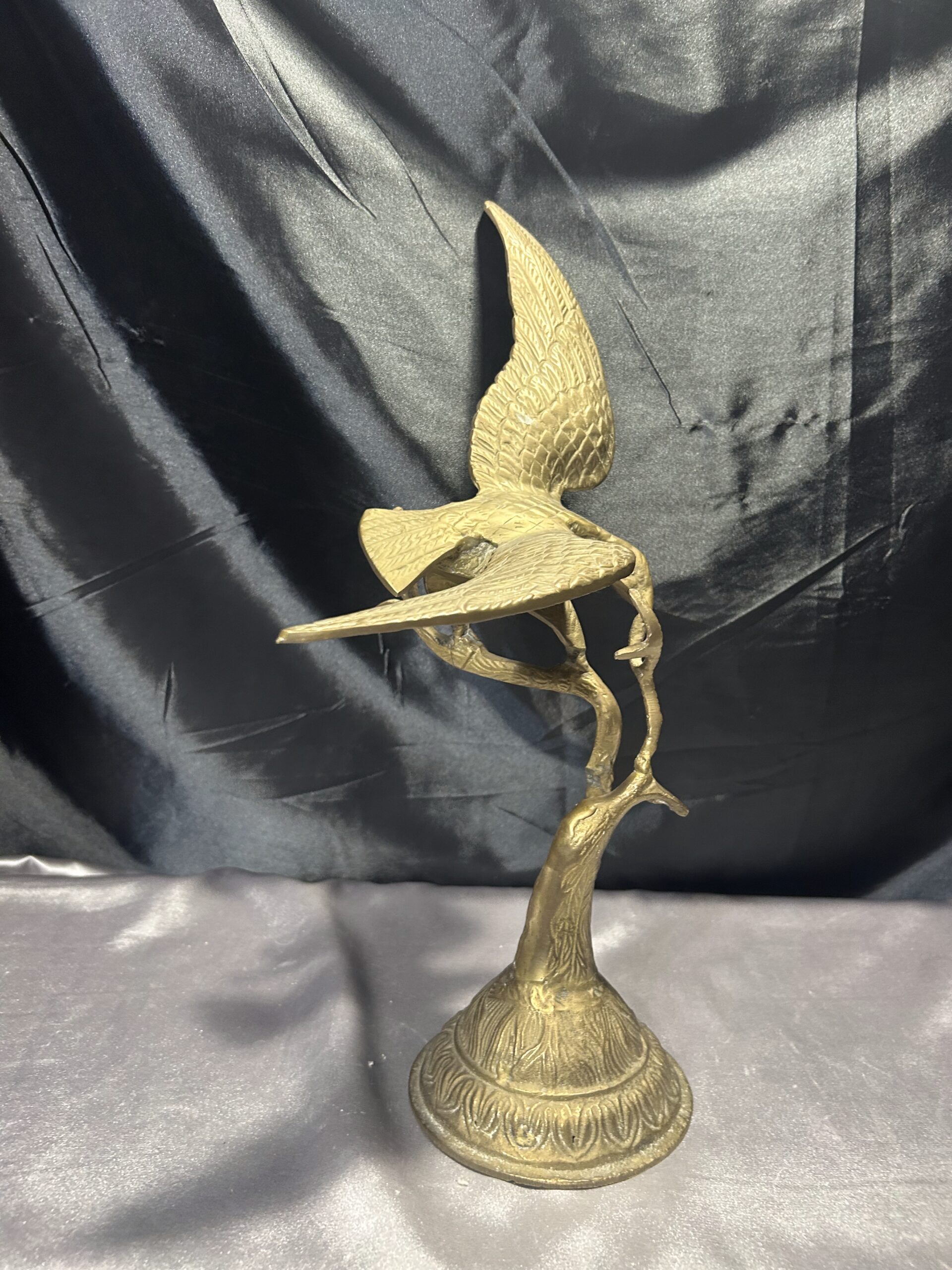 Przedstawiamy imponującą figurkę orła, wykonaną z mosiądzu, przedstawiającą ptaka z rozpostartymi skrzydłami, siedzącego na gałęzi. Ten majestatyczny symbol siły i wolności zachwyca dynamiczną formą oraz precyzyjnym wykonaniem, co czyni go nie tylko elegancką dekoracją, ale także wyjątkowym elementem kolekcjonerskim.