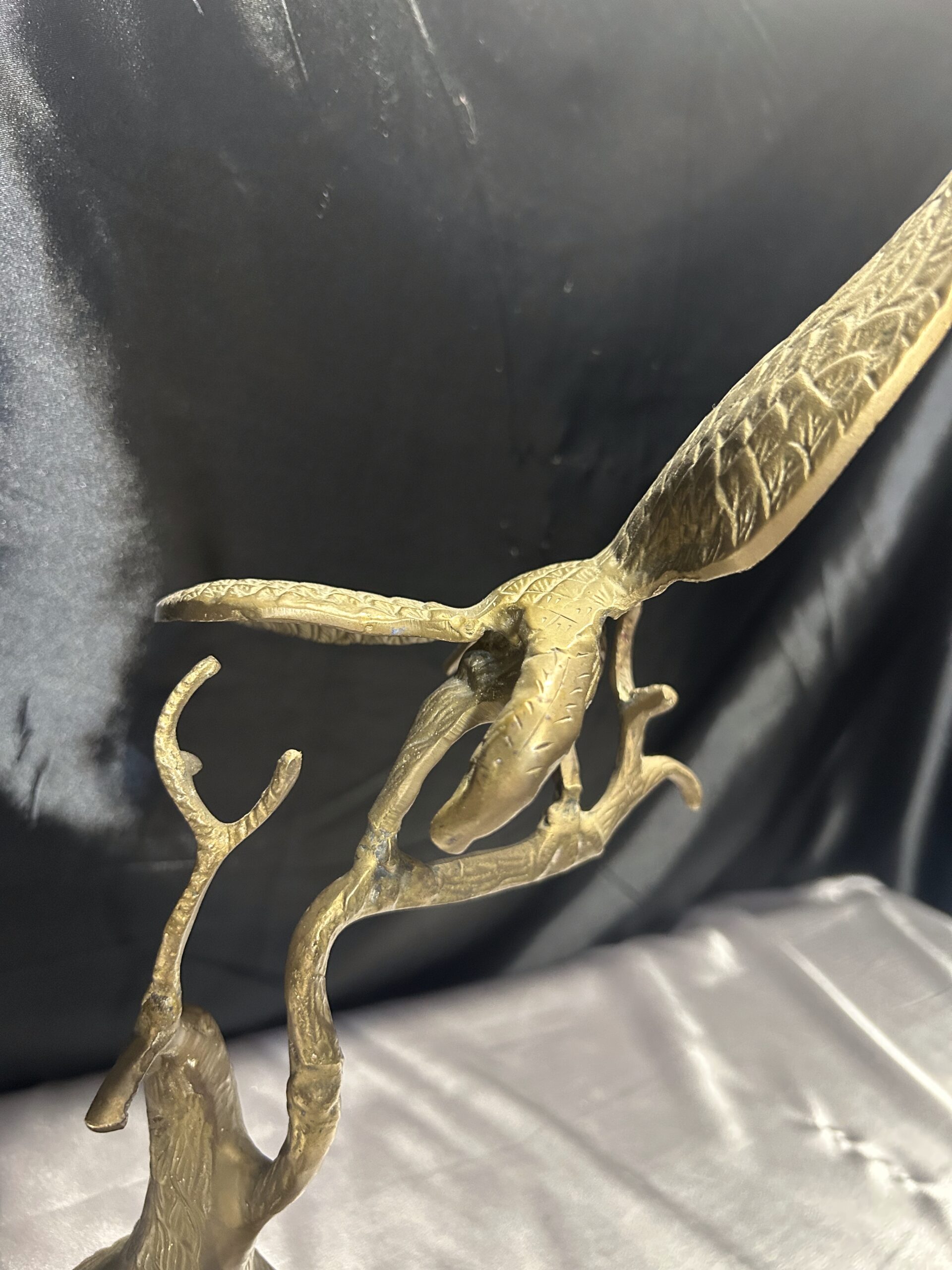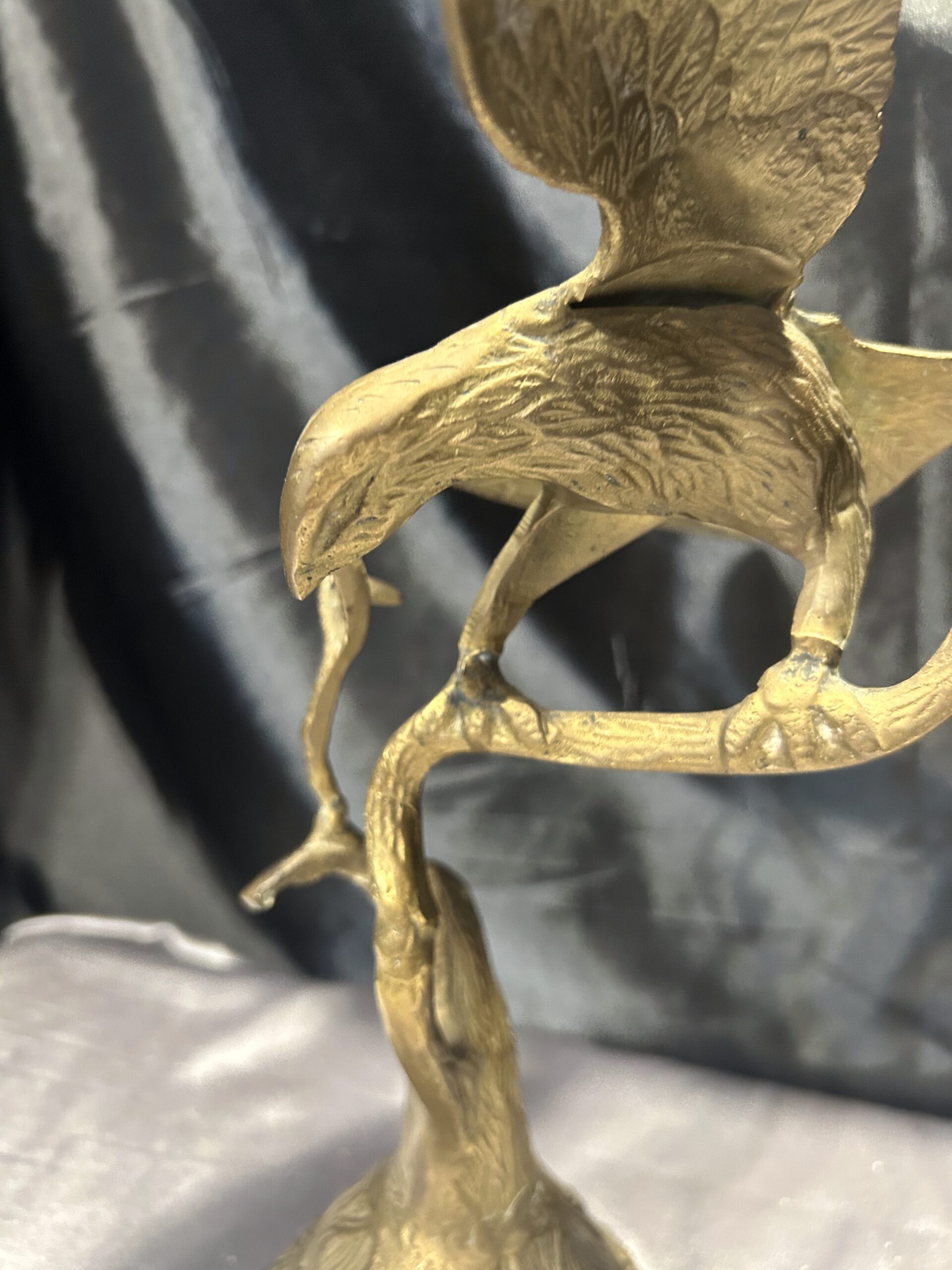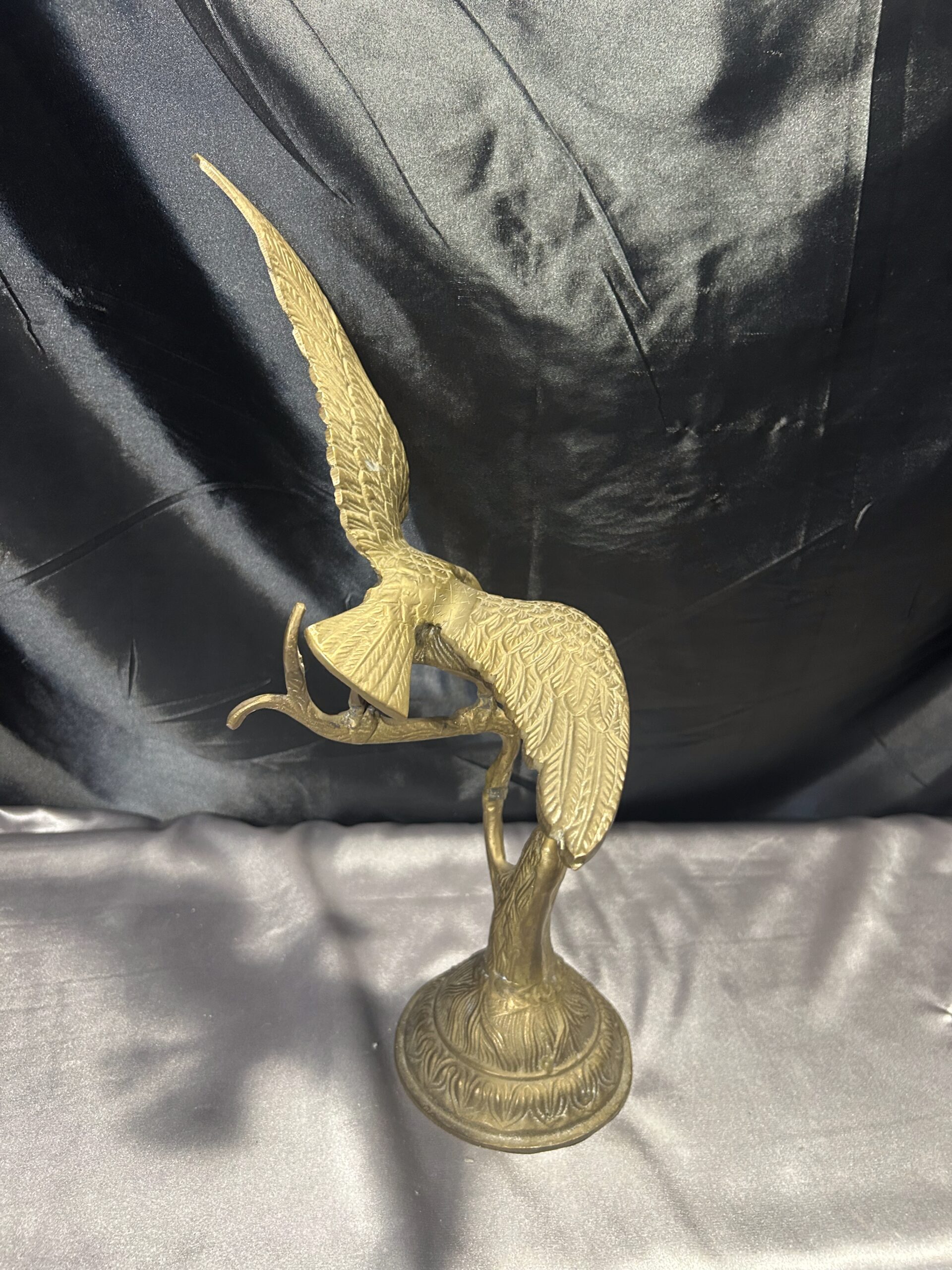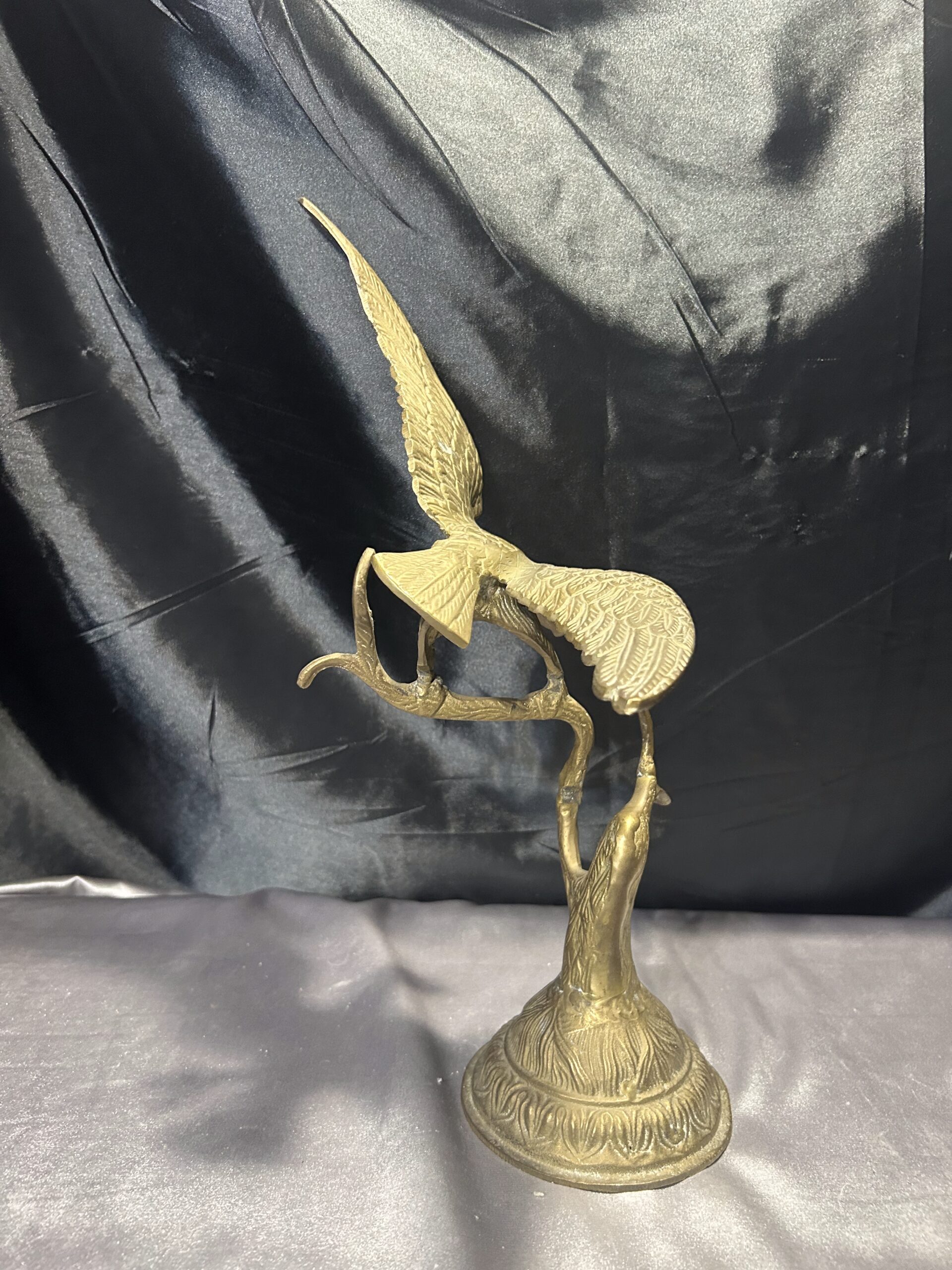 Przedstawiamy imponującą figurkę orła, wykonaną z mosiądzu, przedstawiającą ptaka z rozpostartymi skrzydłami, siedzącego na gałęzi. Ten majestatyczny symbol siły i wolności zachwyca dynamiczną formą oraz precyzyjnym wykonaniem, co czyni go nie tylko elegancką dekoracją, ale także wyjątkowym elementem kolekcjonerskim.