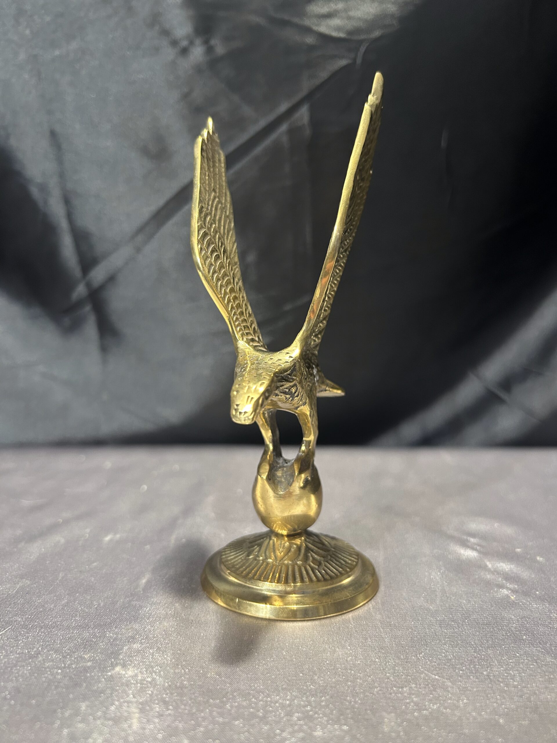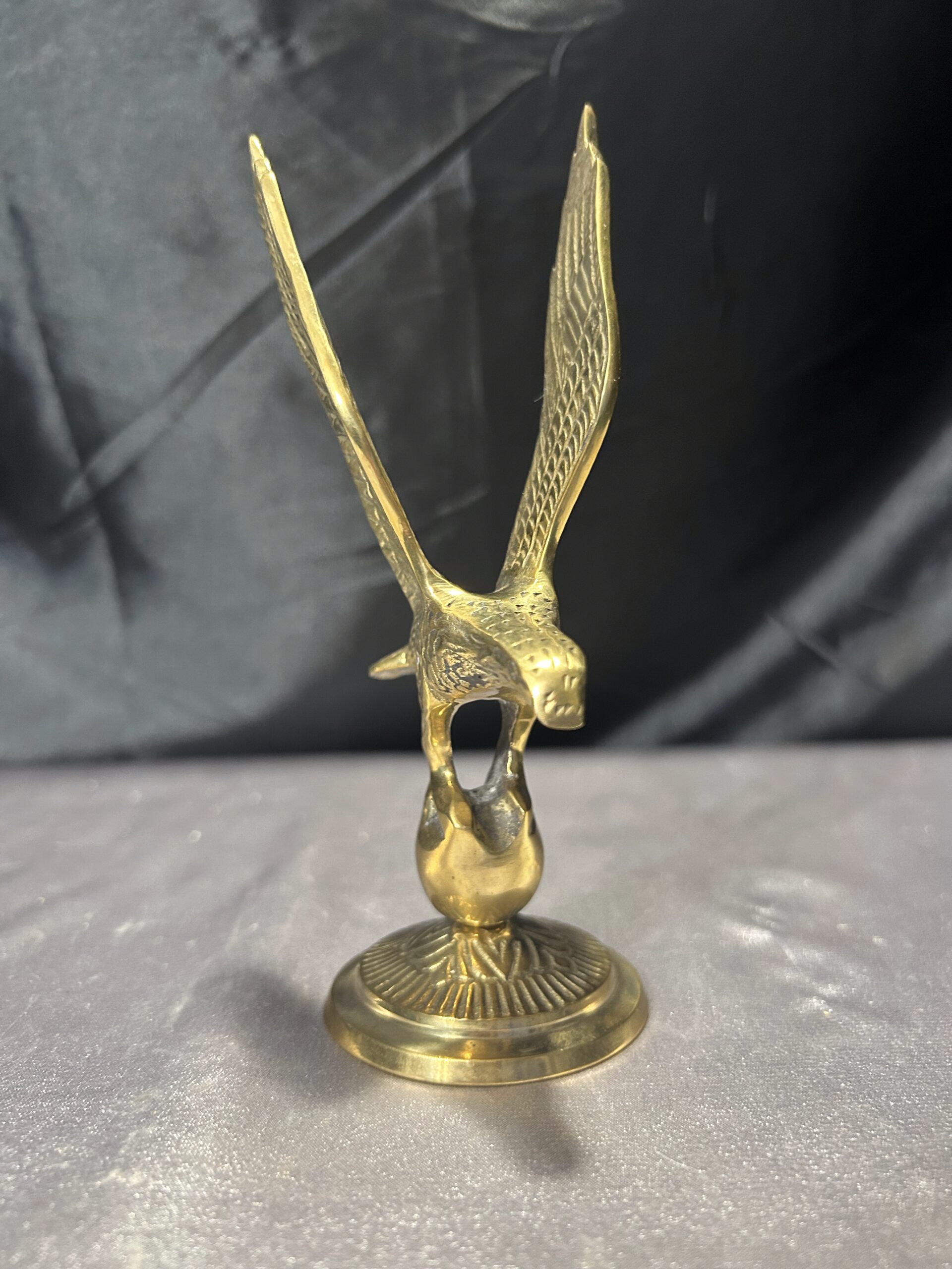 Prezentujemy elegancką figurkę orła, wykonaną z mosiądzu, o dynamicznej i dostojnej formie. Dzięki precyzyjnemu wykonaniu i starannie dopracowanym detalom, orzeł symbolizuje siłę, niezależność i majestat, będąc jednocześnie niepowtarzalnym elementem dekoracyjnym.