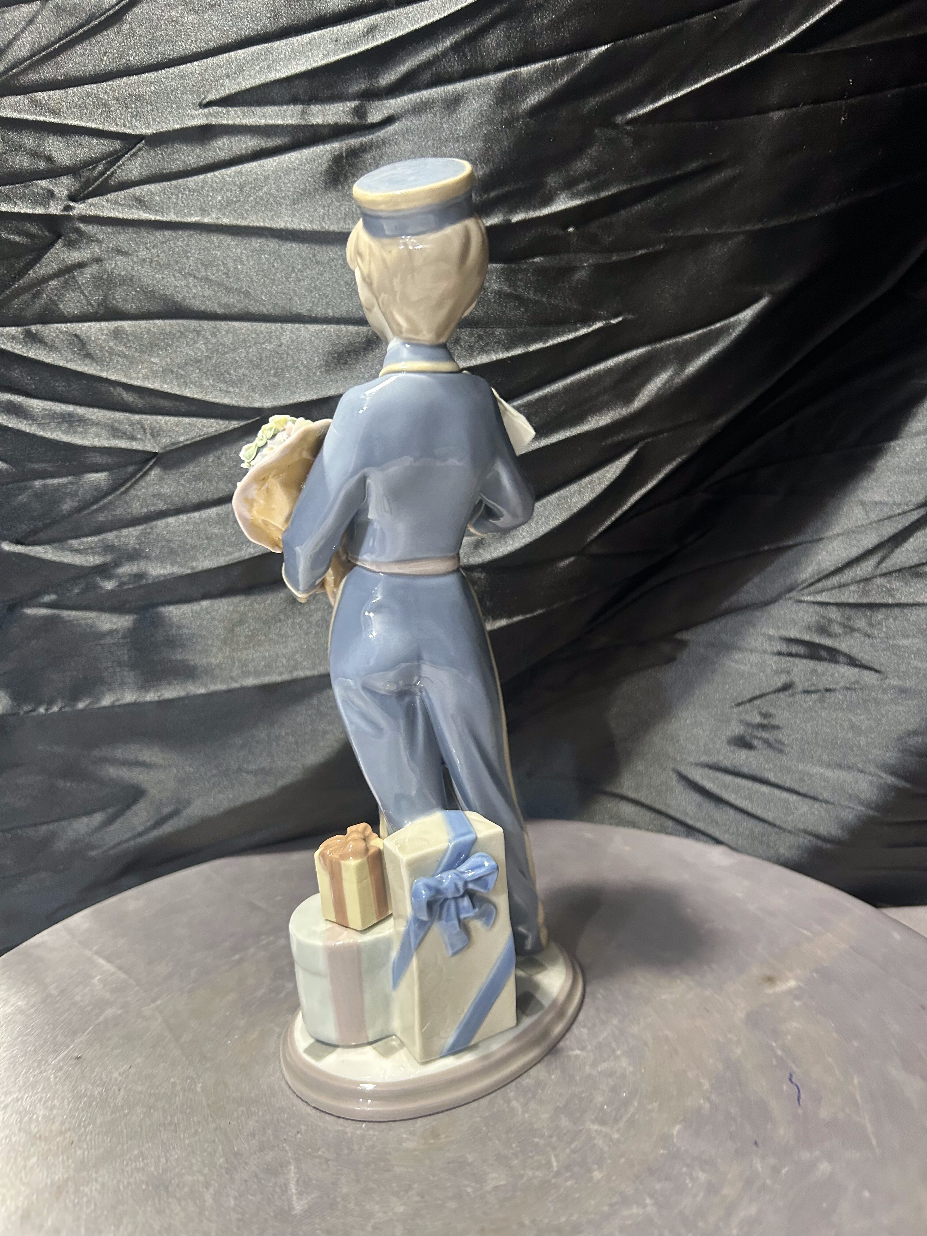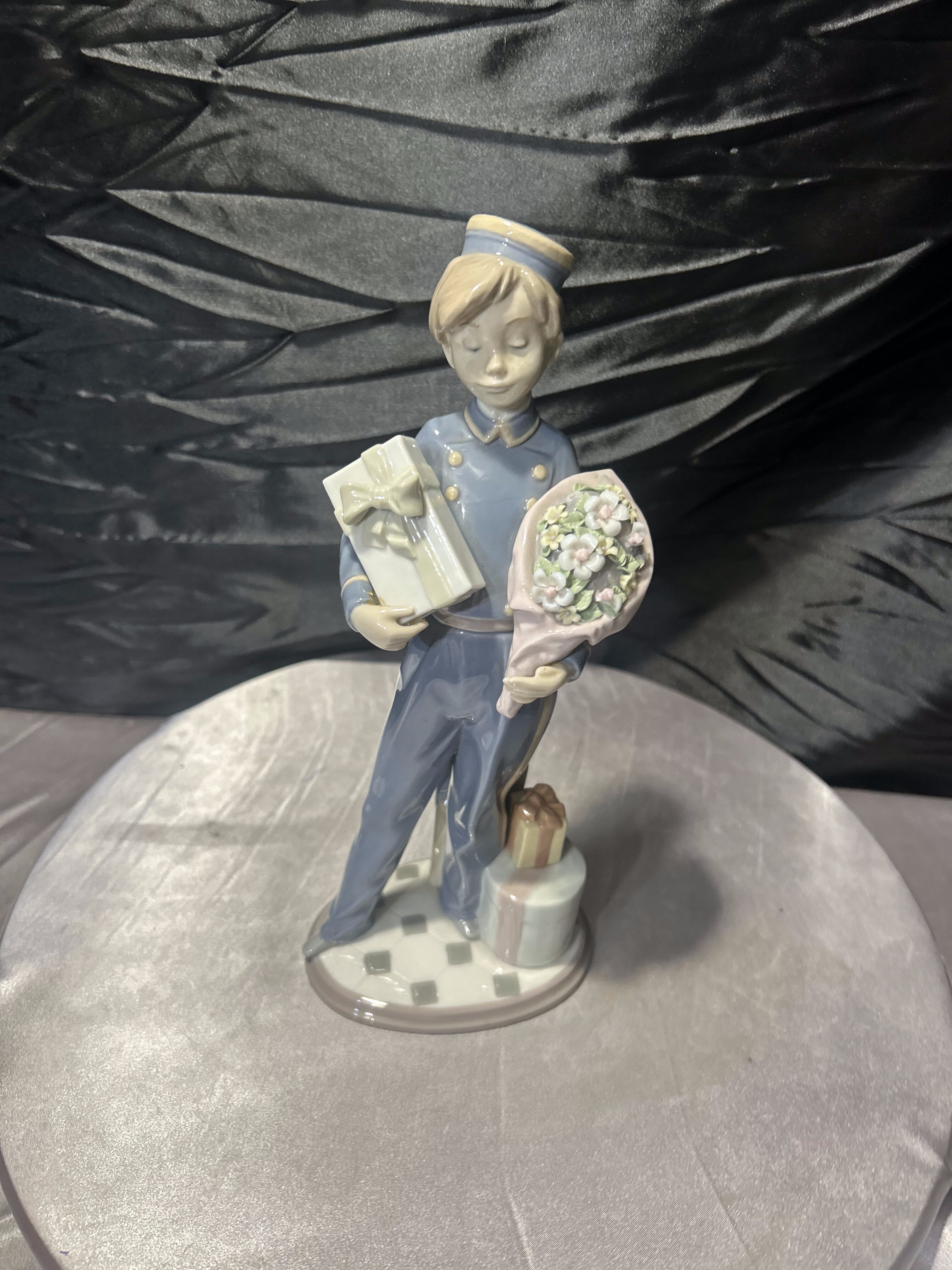 Figurka porcelanowa Lladró – chłopiec z prezentem i kwiatami – Hiszpania