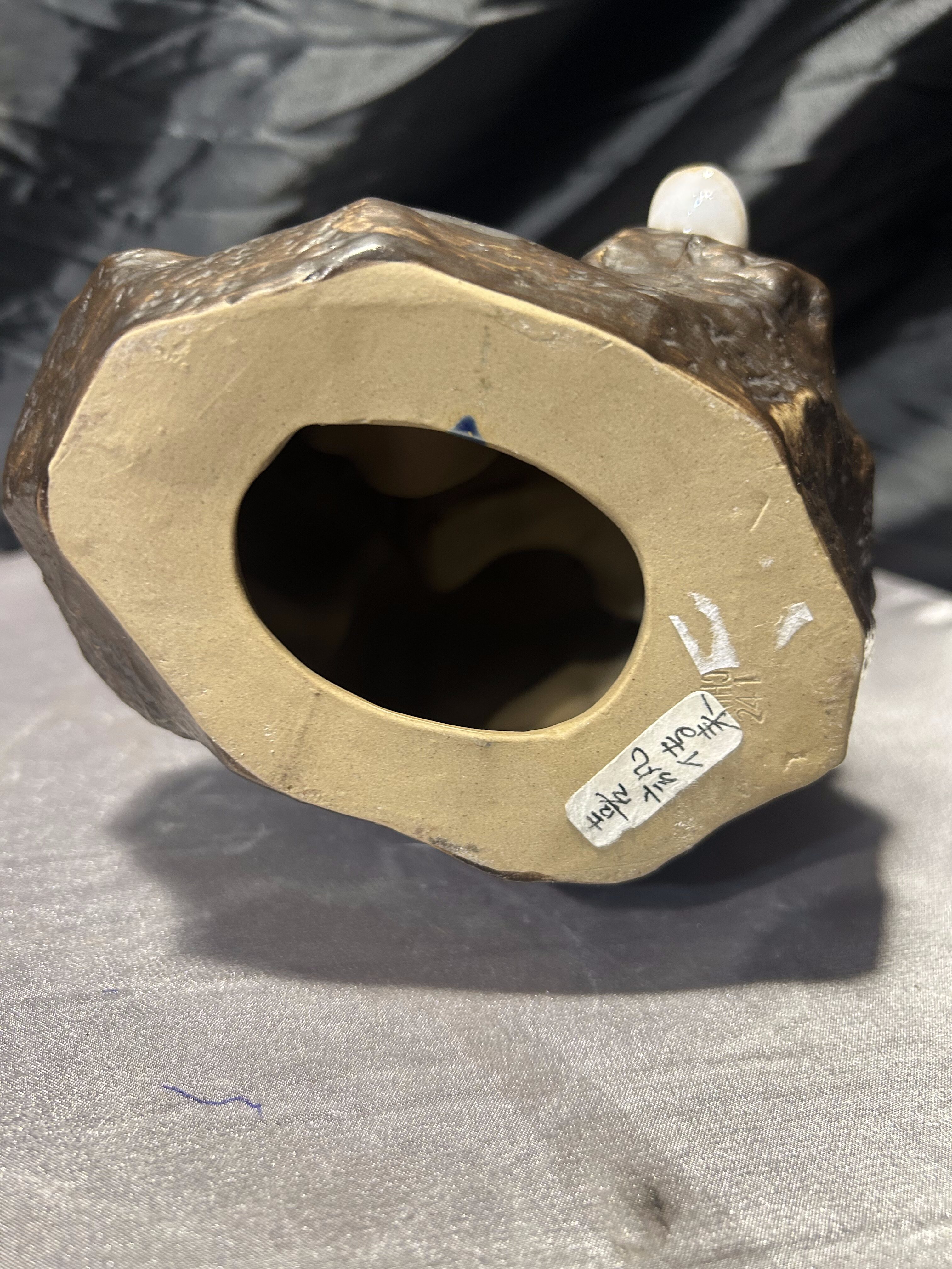 Całość wykonana z porcelitu/porcelany szkliwionej w odcieniach brązu, błękitu i kości słoniowej. Figurka posiada wyraźną sygnaturę w masie – tłoczenie z numerem formy (241) oraz oznaczeniem „CHINA” — typowym dla wyrobów produkowanych w Chinach od połowy XX wieku aż do lat 80–90.