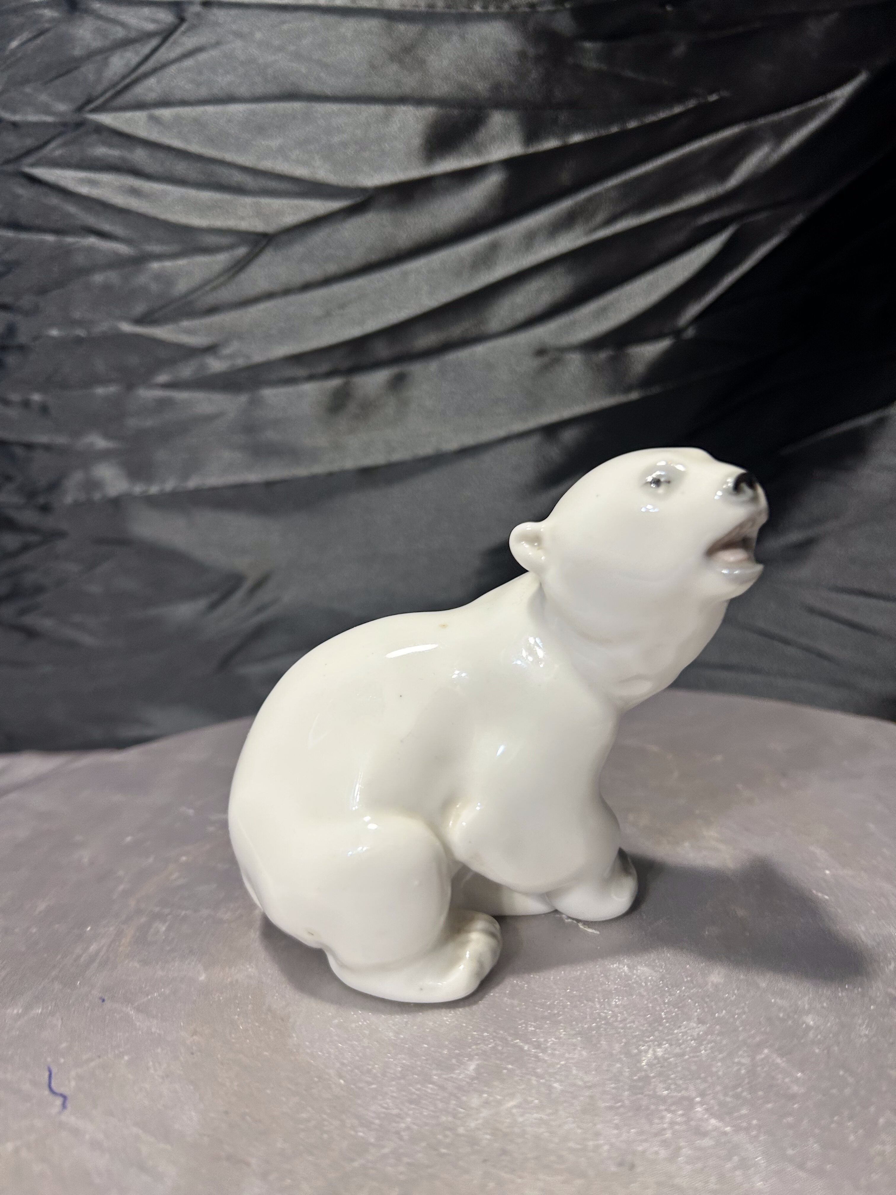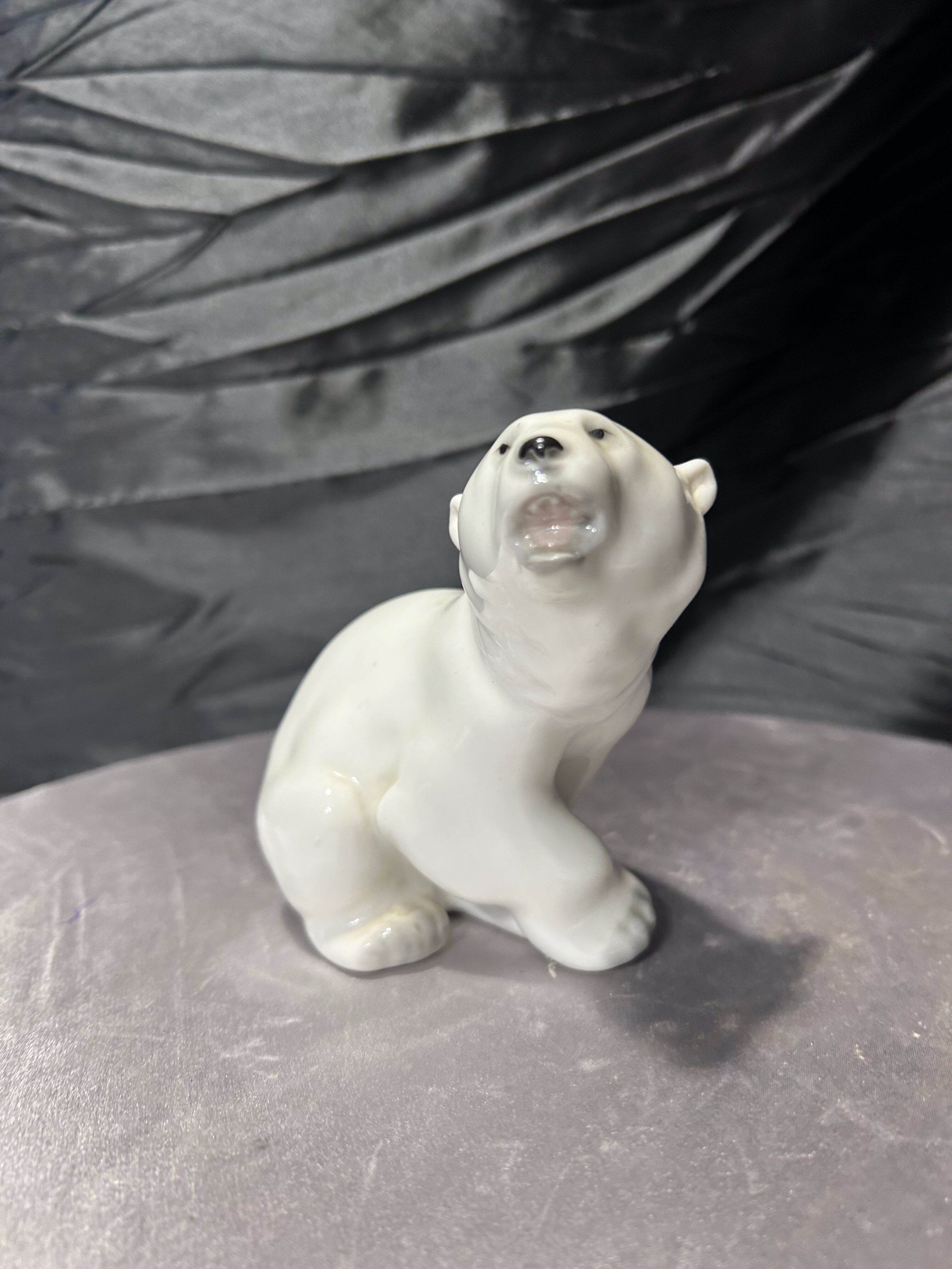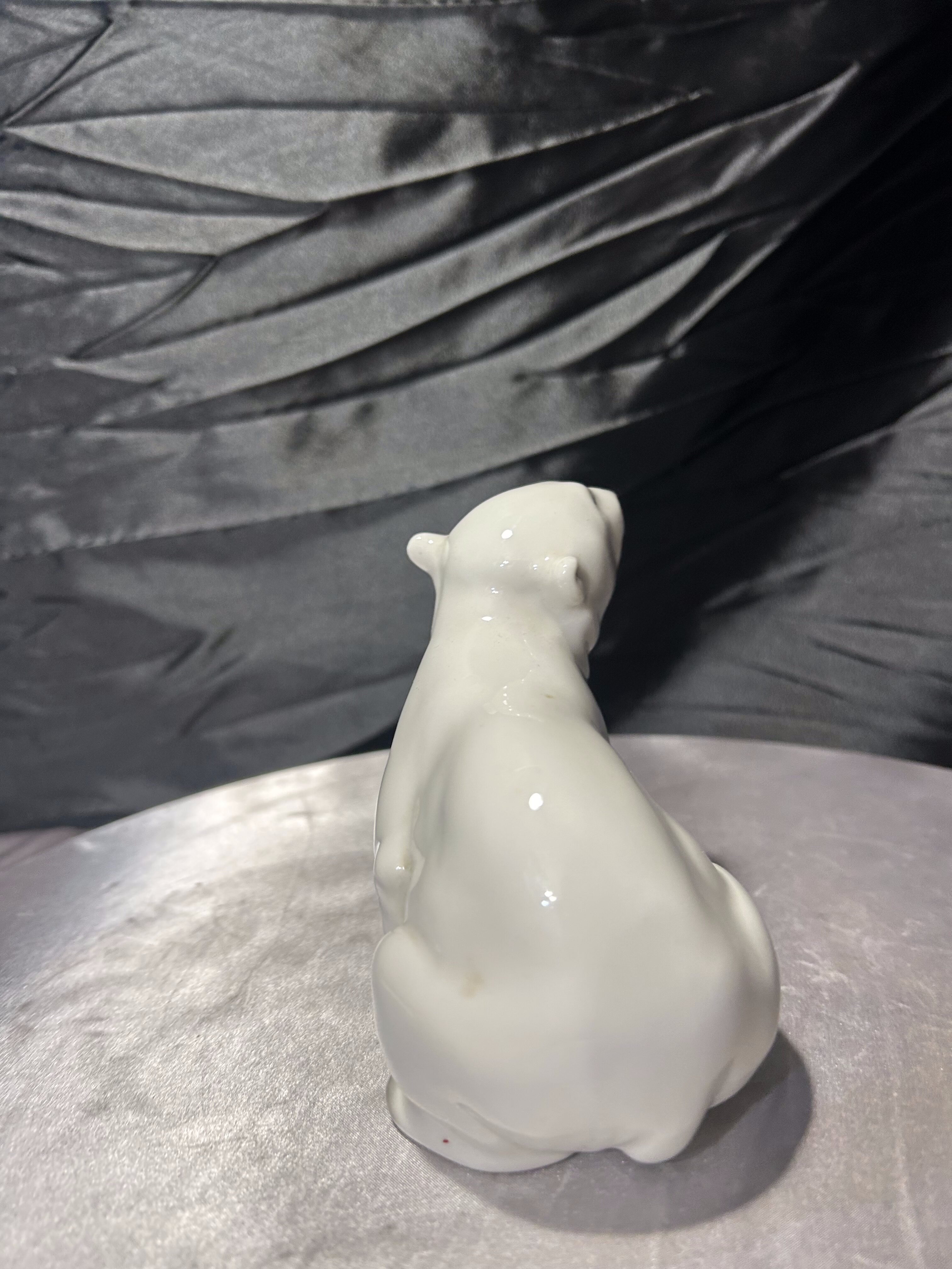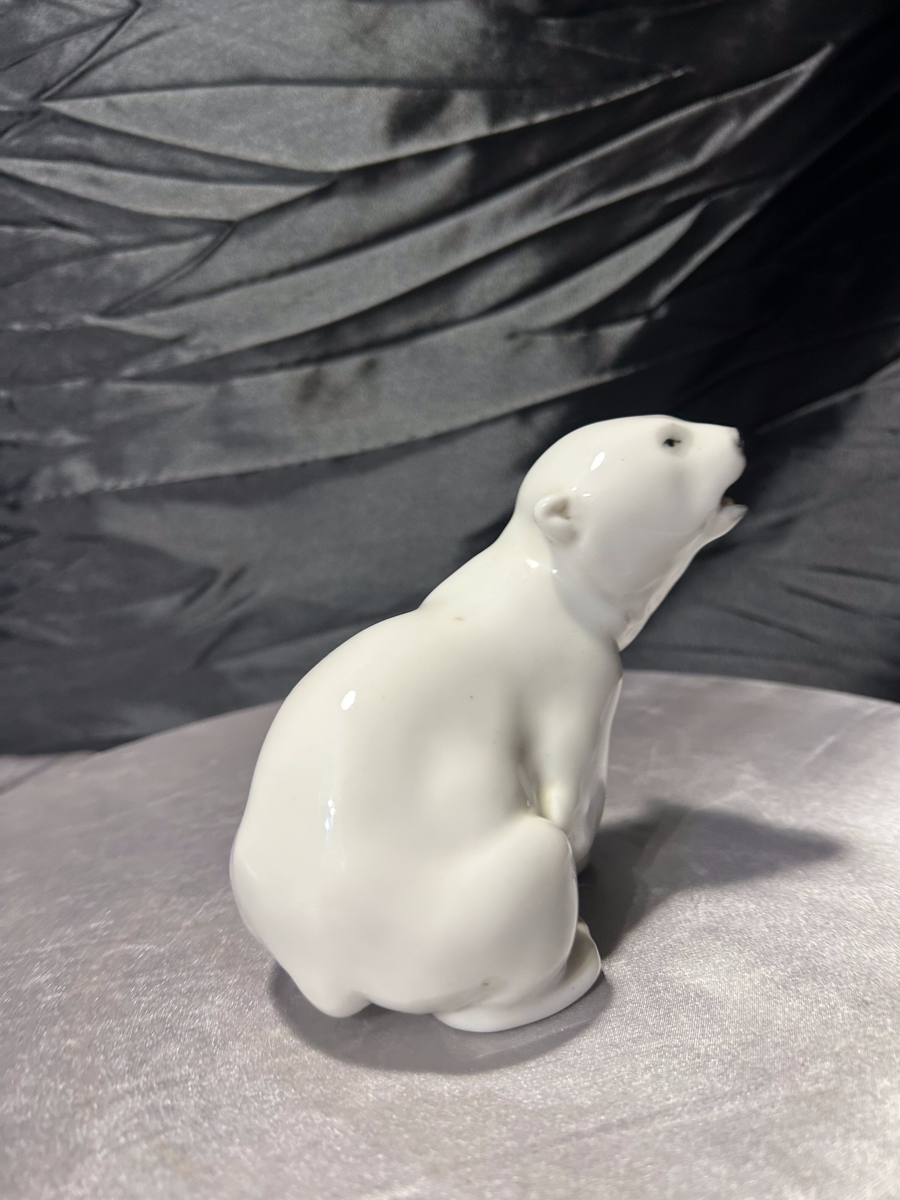 Porcelanowa figurka przedstawiająca niedźwiedzia w charakterystycznej, dynamicznej pozie. Model o wyraźnie zaznaczonej sylwetce i dopracowanych detalach, utrzymany w klasycznej, białej szkliwionej porcelanie. Figurki zwierząt z okresu ZSRR cieszą się dużym zainteresowaniem wśród kolekcjonerów ze względu na swoją formę, trwałość oraz rozpoznawalny styl produkcji.