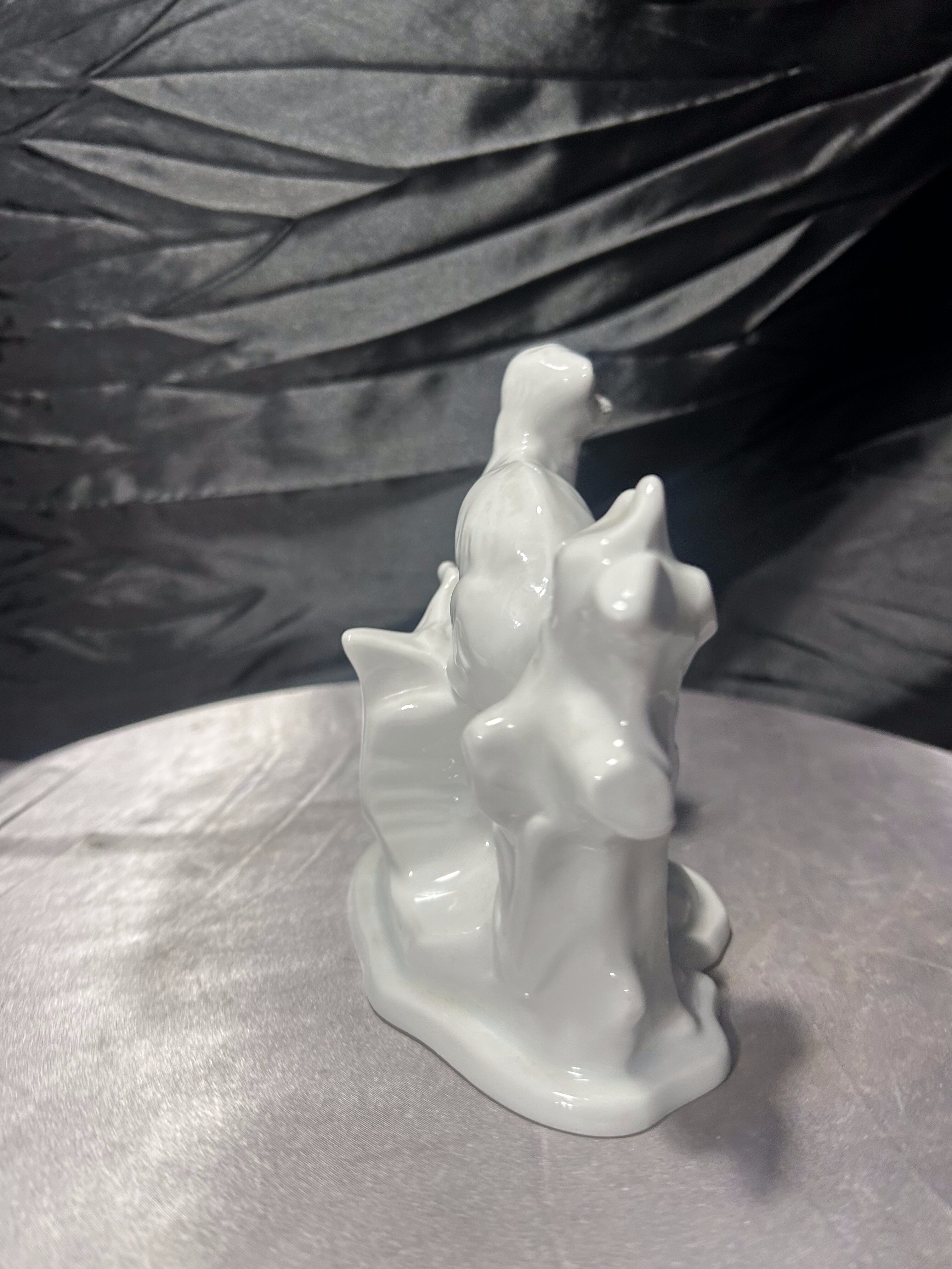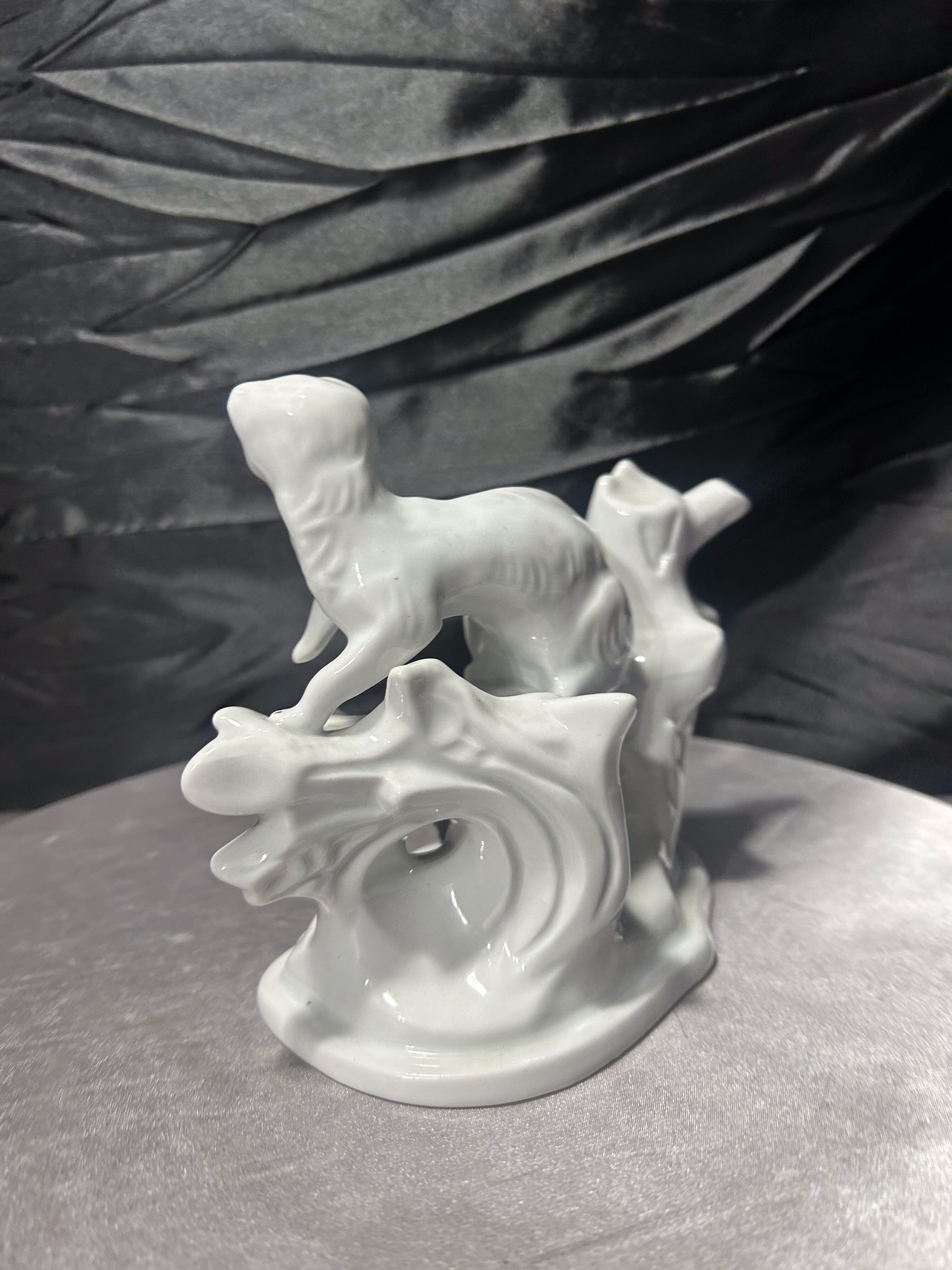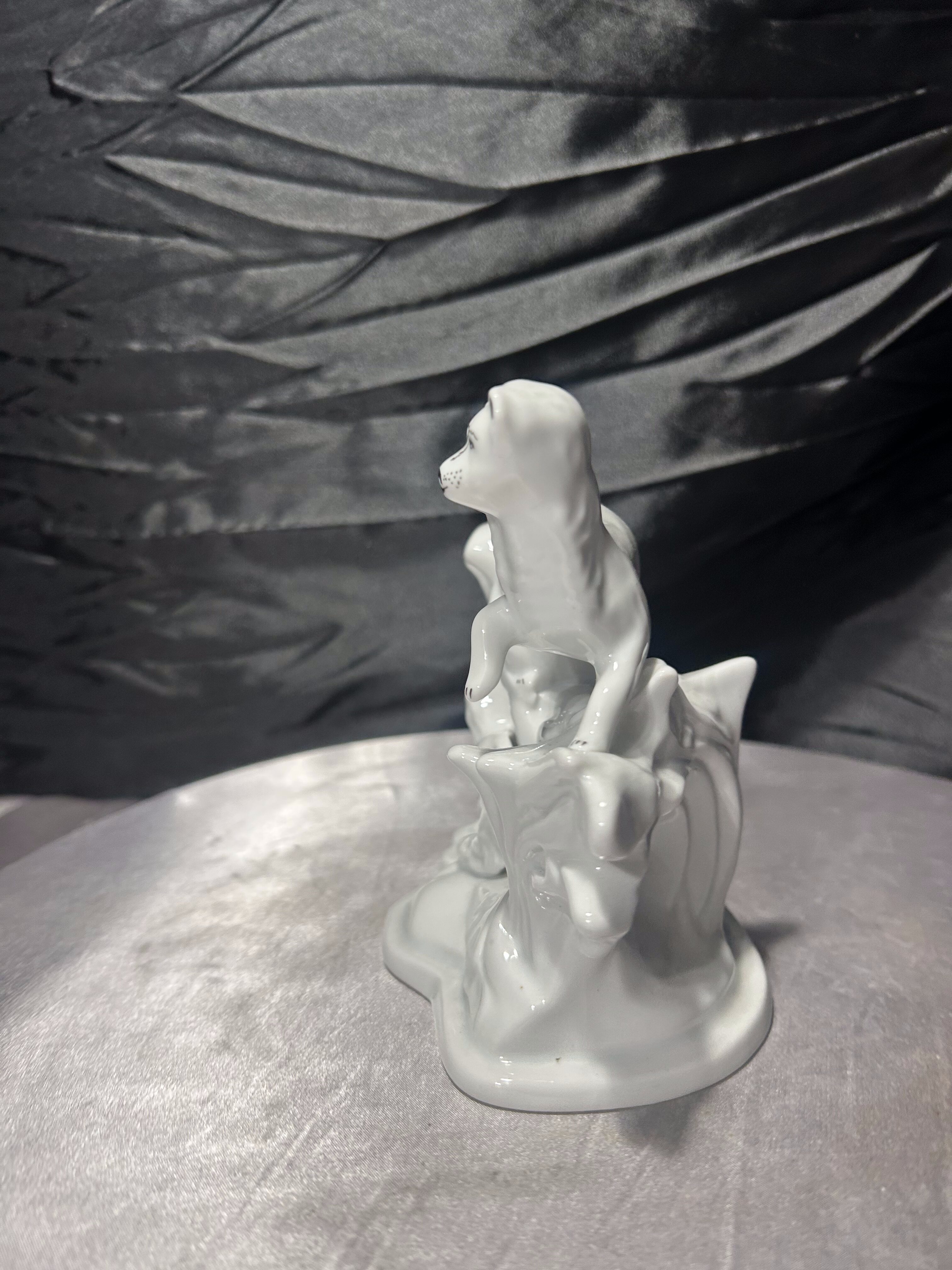 Elegancka, biała figurka porcelanowa przedstawiająca smukłe zwierzątko (typ łasica, fretka lub gronostaj) ułożone na stylizowanej gałęzi. Całość ma spokojny, klasyczny charakter i pięknie prezentuje się w aranżacji vintage lub w kolekcji figurek zwierzęcych. Figurka jest sygnowana pod spodem znakiem ARPO oraz napisem „Made in Romania” i „Curtea de Arges Fine Porcelain”, co wskazuje na rumuńską wytwórnię porcelany ARPO z Curtea de Arges.