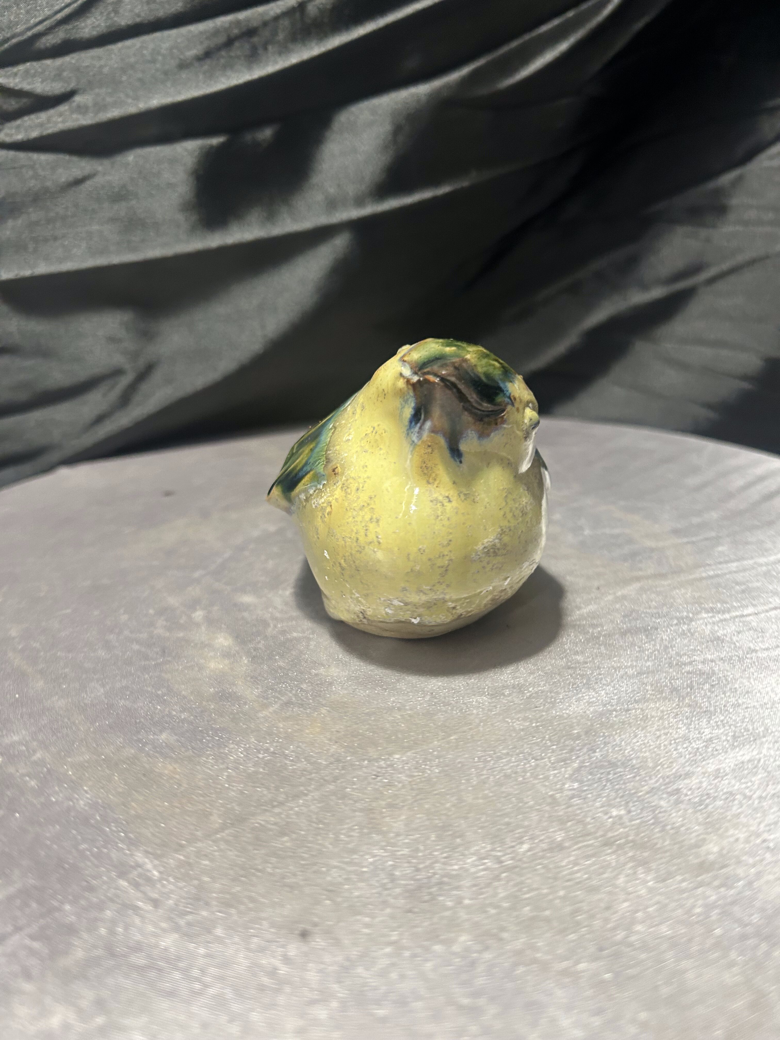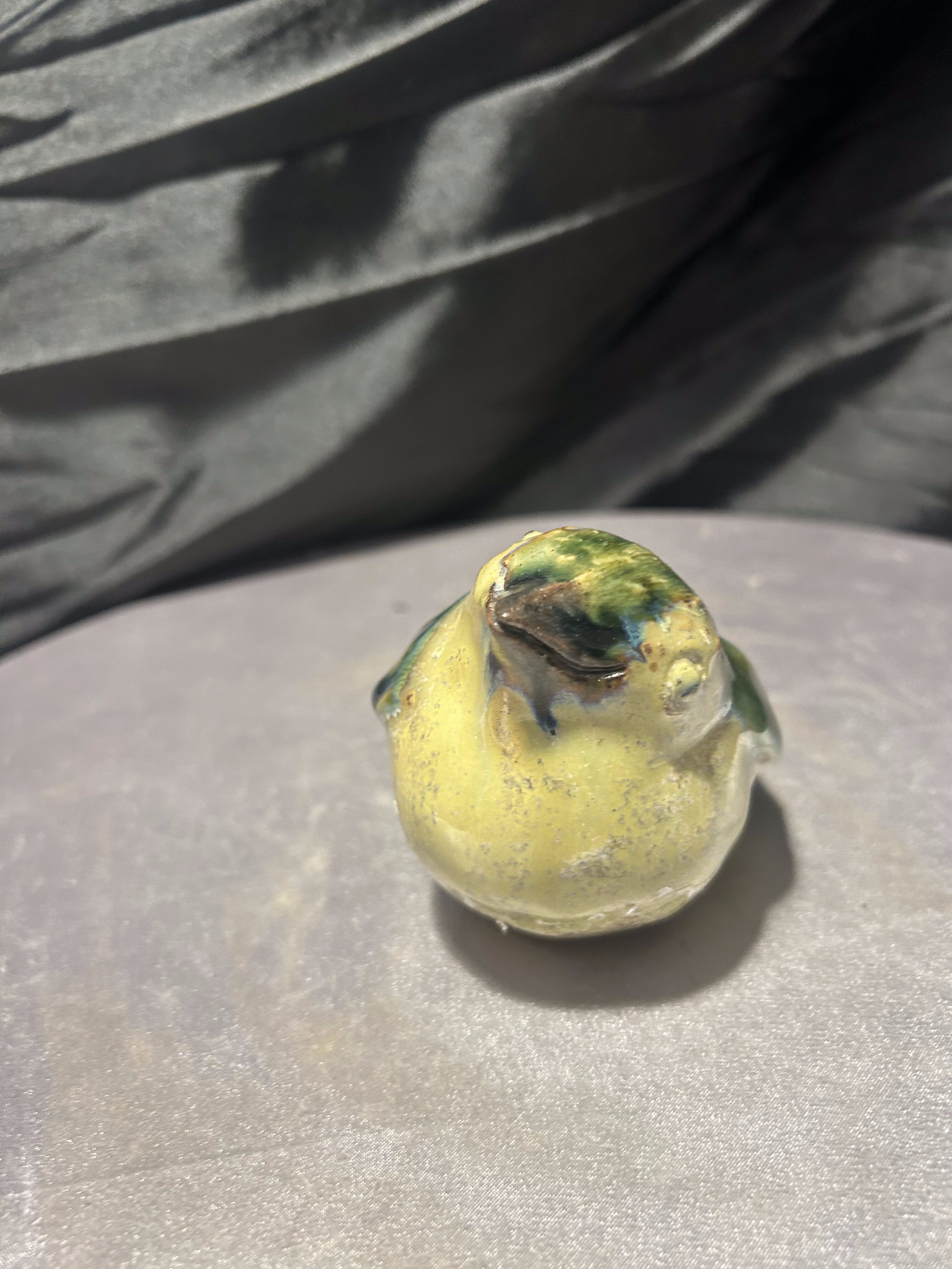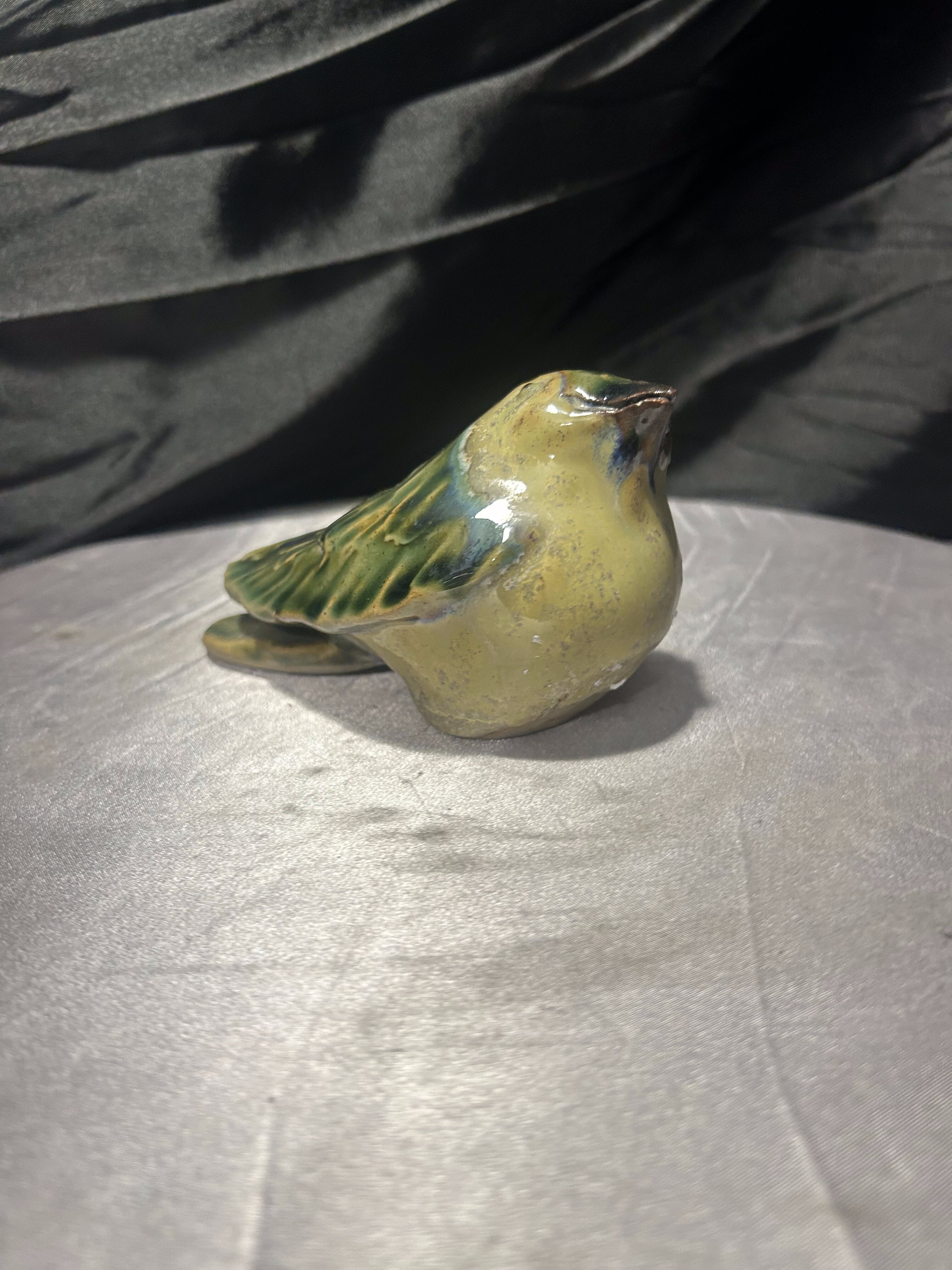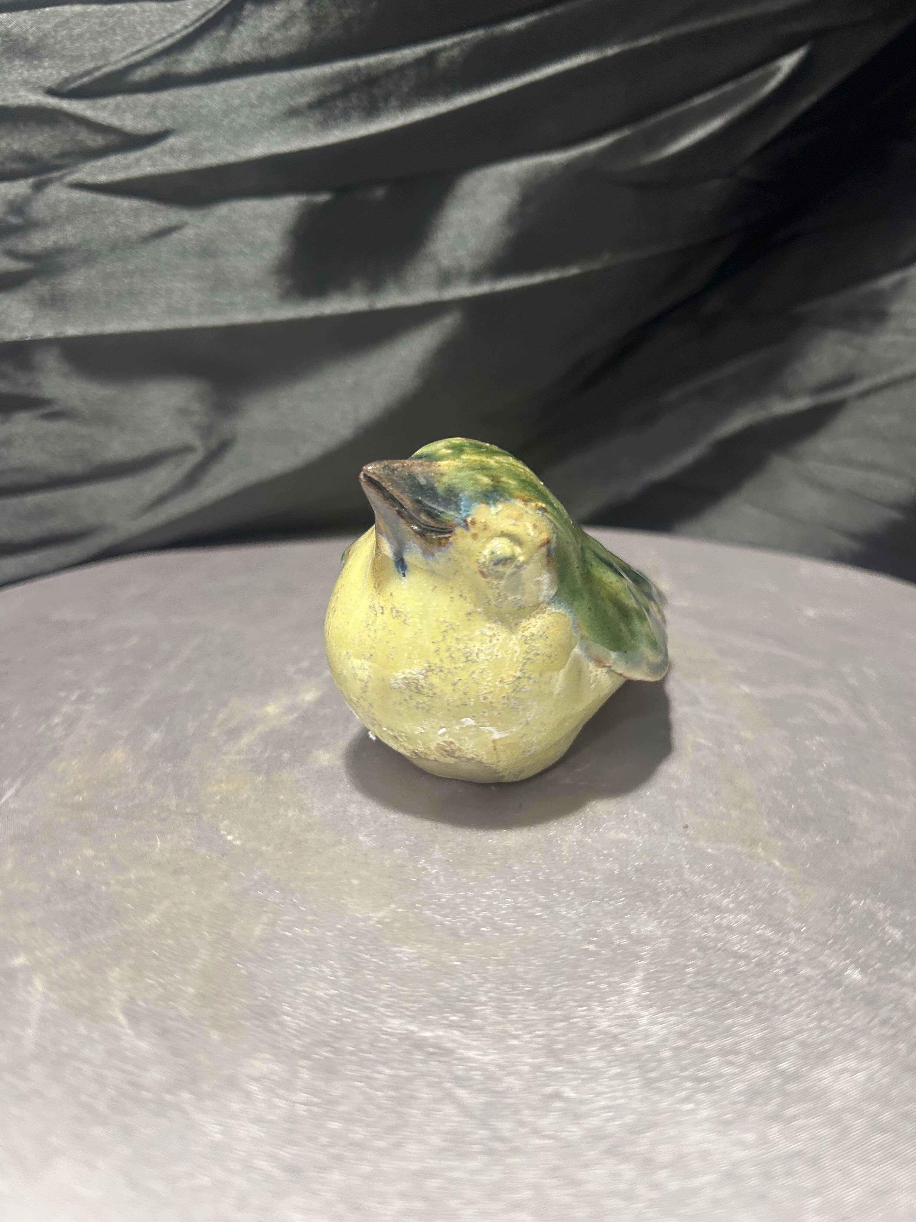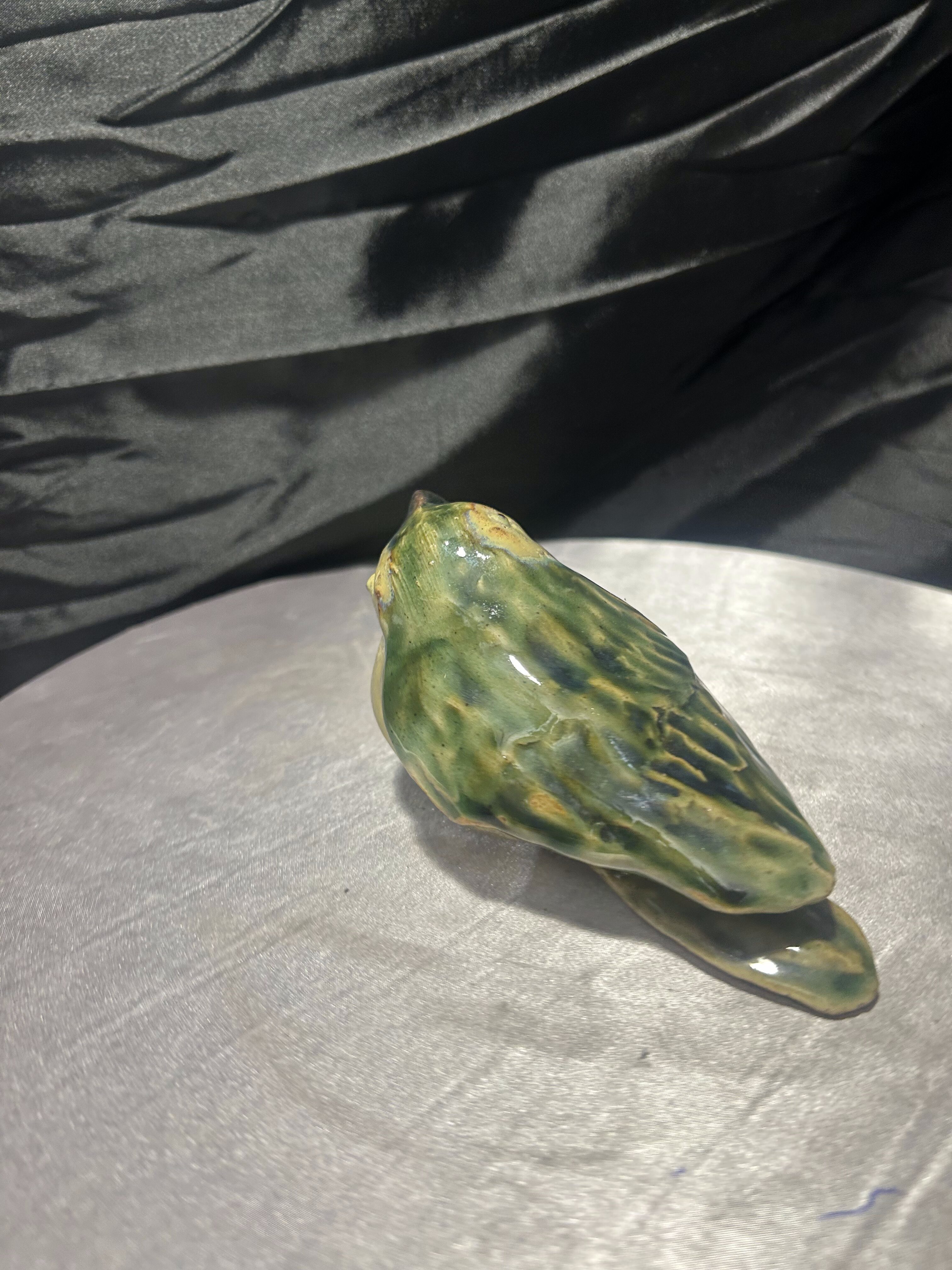 Dekoracyjna figurka ceramicznego ptaszka wykonana w artystycznym stylu charakterystycznym dla skandynawskiego rzemiosła użytkowego. Egzemplarz posiada oryginalną naklejkę producenta Bjørn Løiten z Oslo, co potwierdza jego norweskie pochodzenie. Subtelnie modelowana forma oraz ręcznie nakładane szkliwa w odcieniach zieleni, żółci i delikatnych przejść tonalnych nadają figurce naturalny i bardzo dekoracyjny charakter.