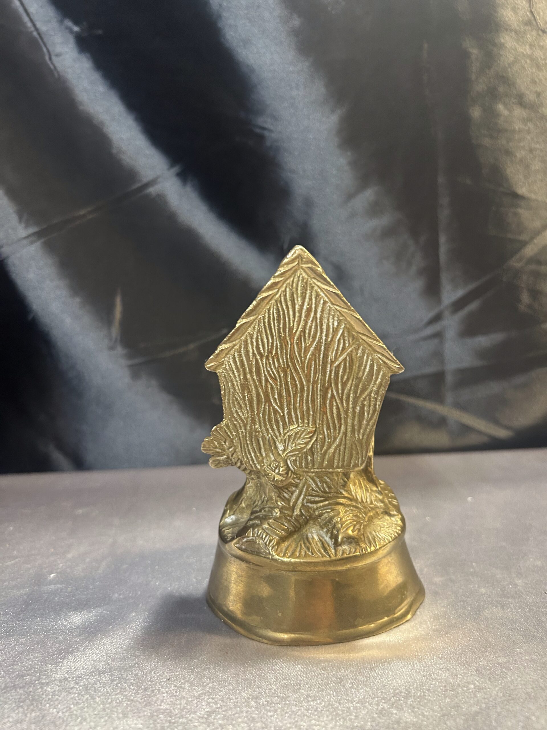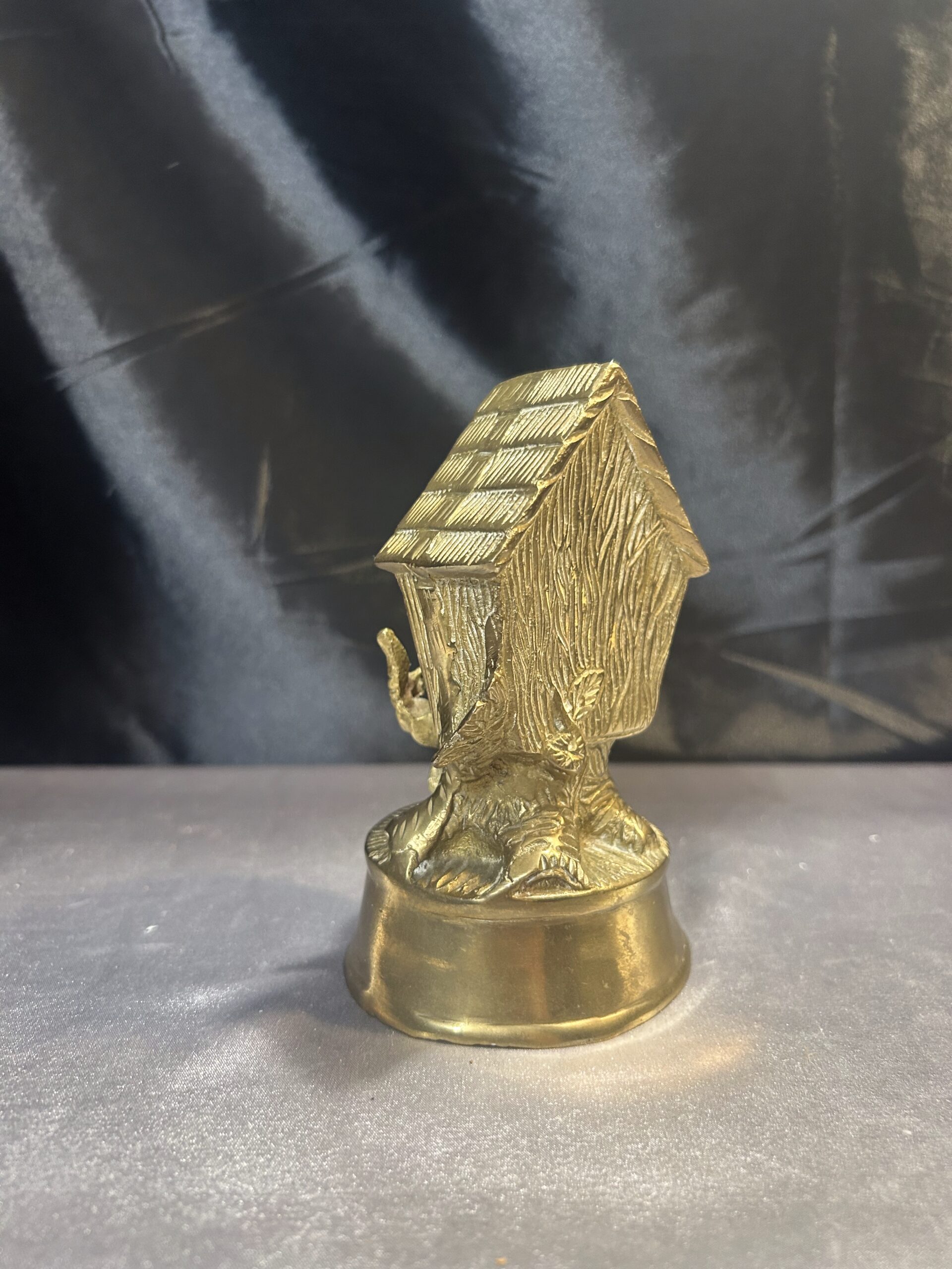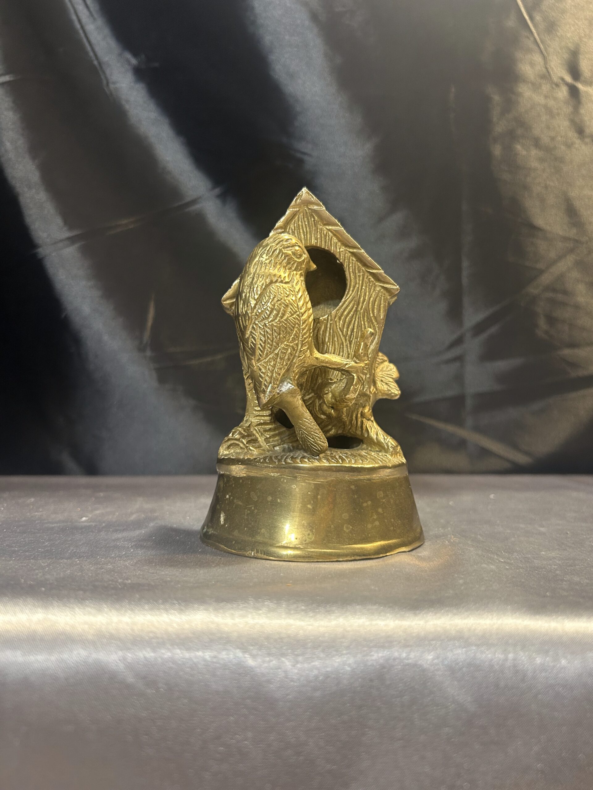 Figurka Ptaszka na Żerdzi przy Budce – Mosiężna, Unikalna Dekoracja