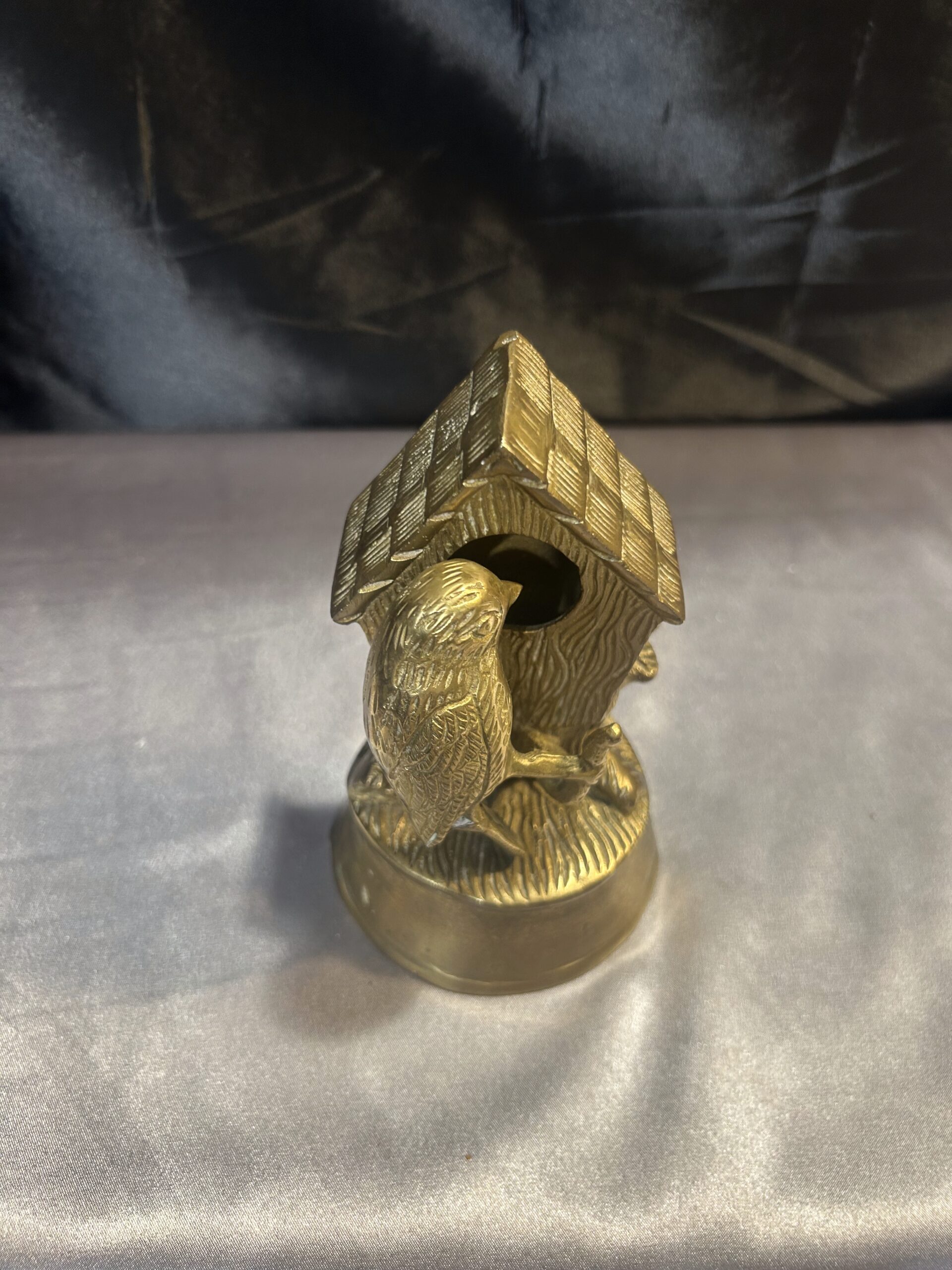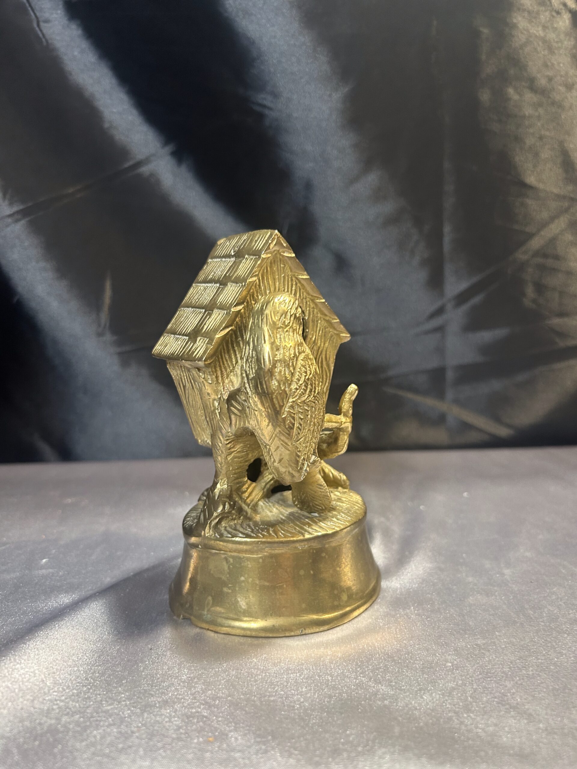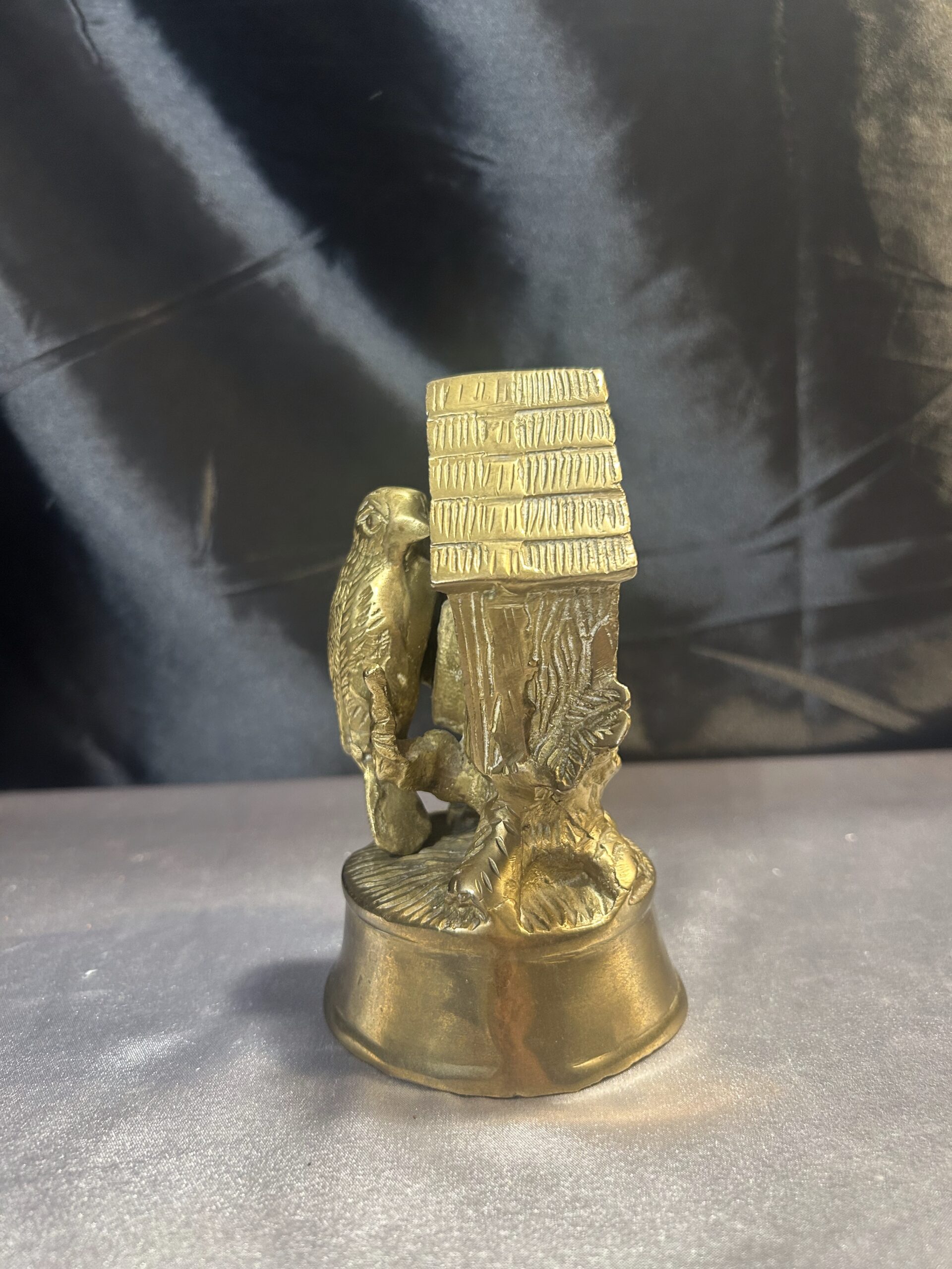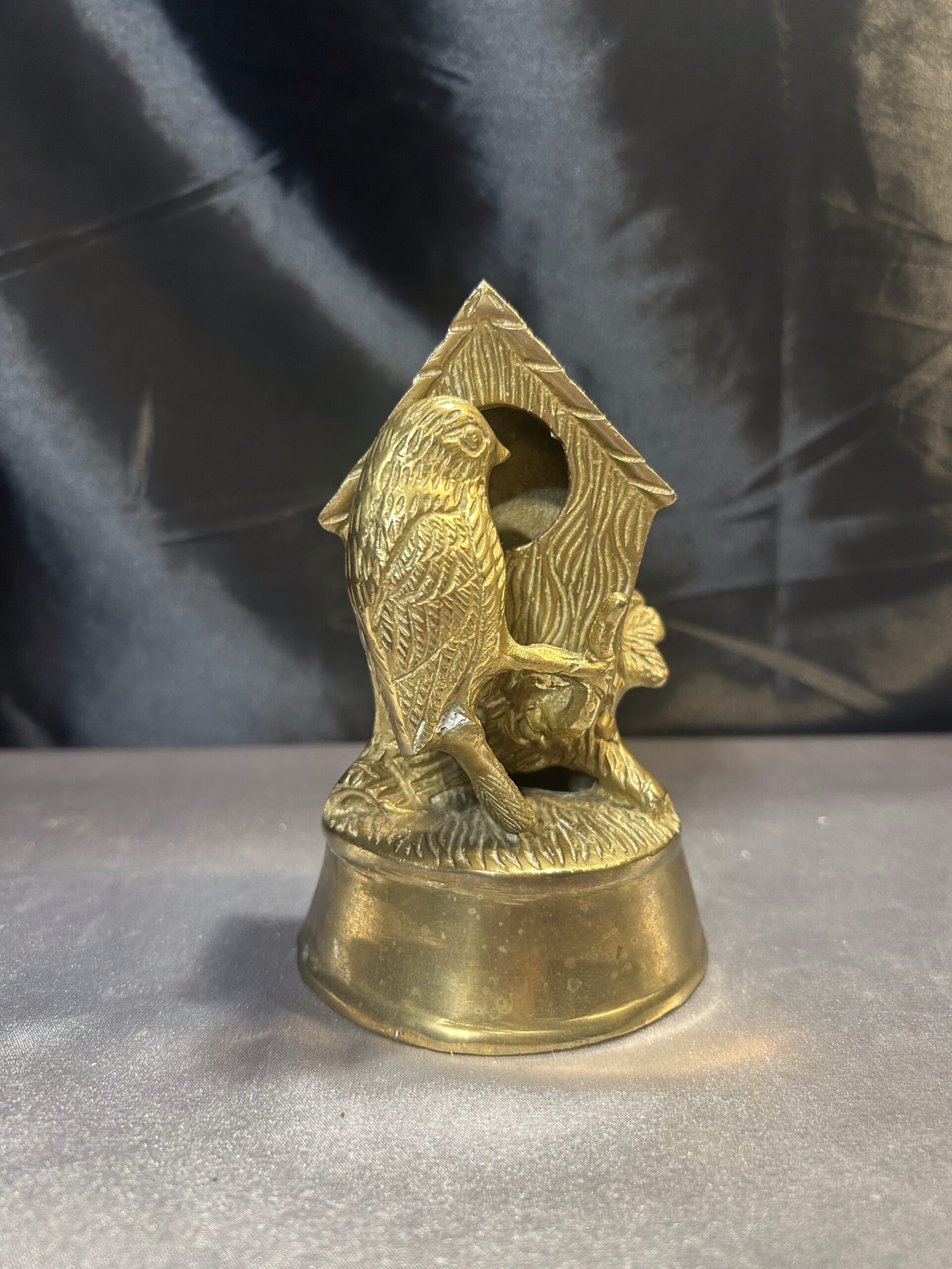 Figurka Ptaszka na Żerdzi przy Budce – Mosiężna, Unikalna Dekoracja
