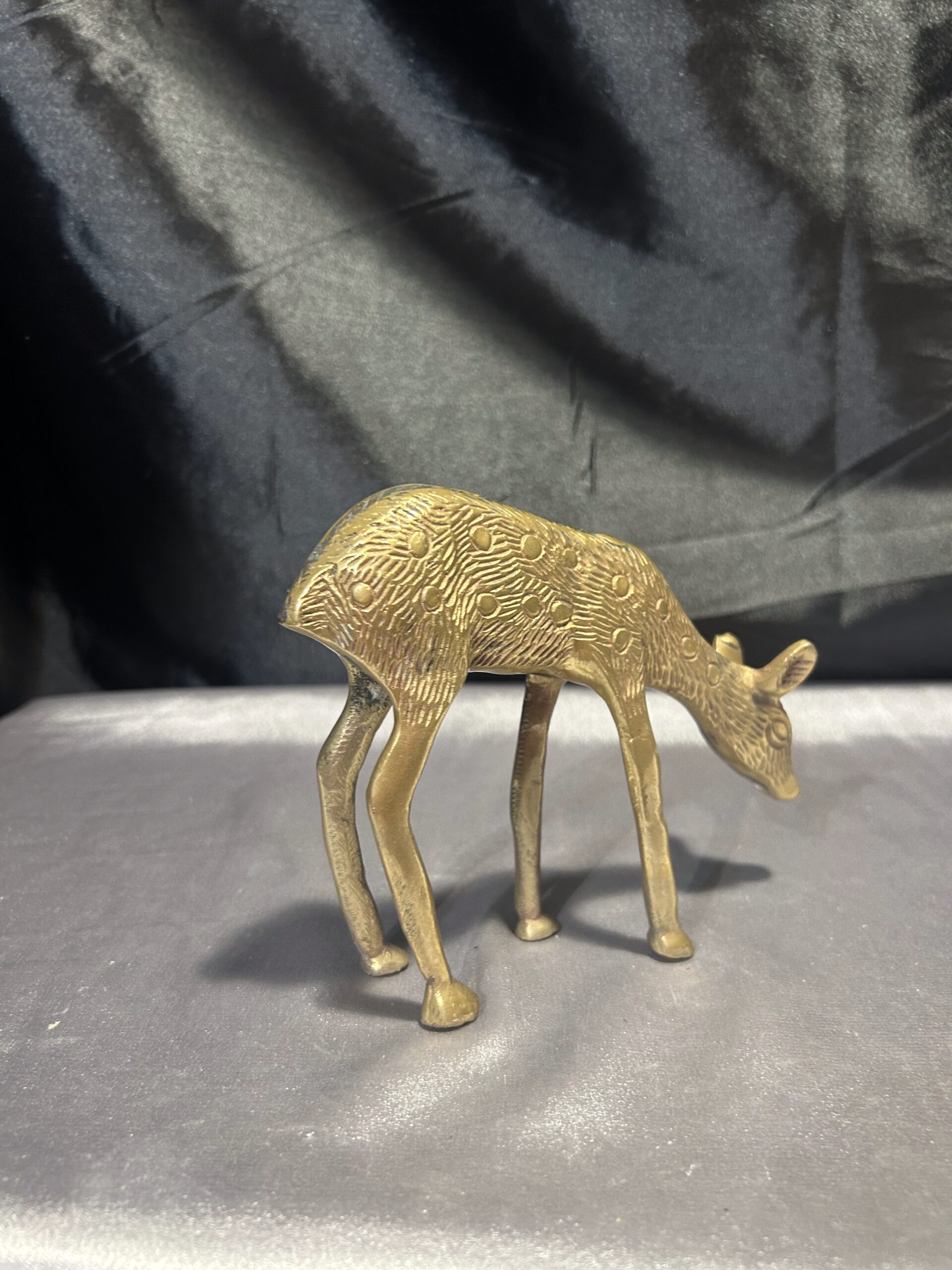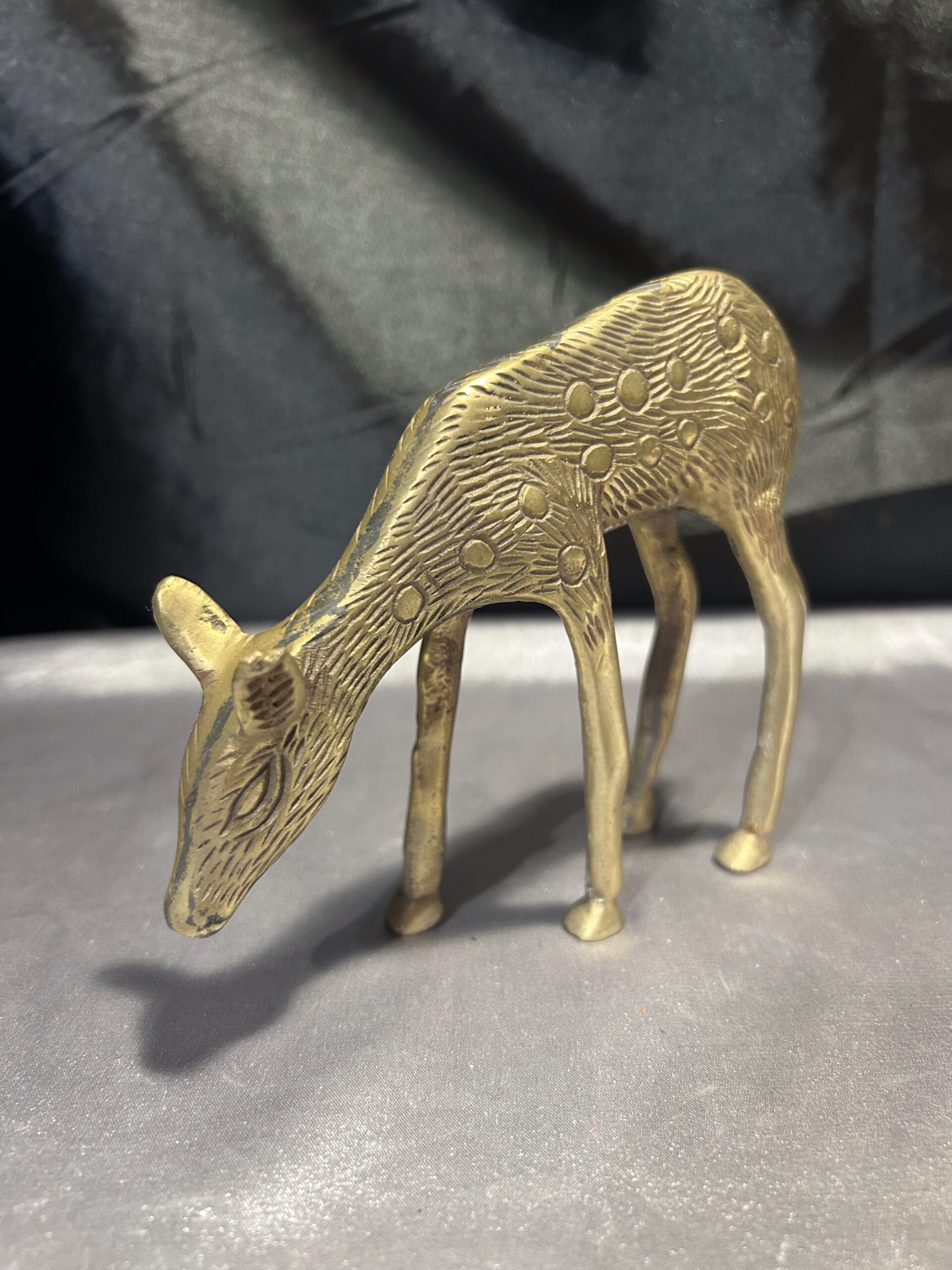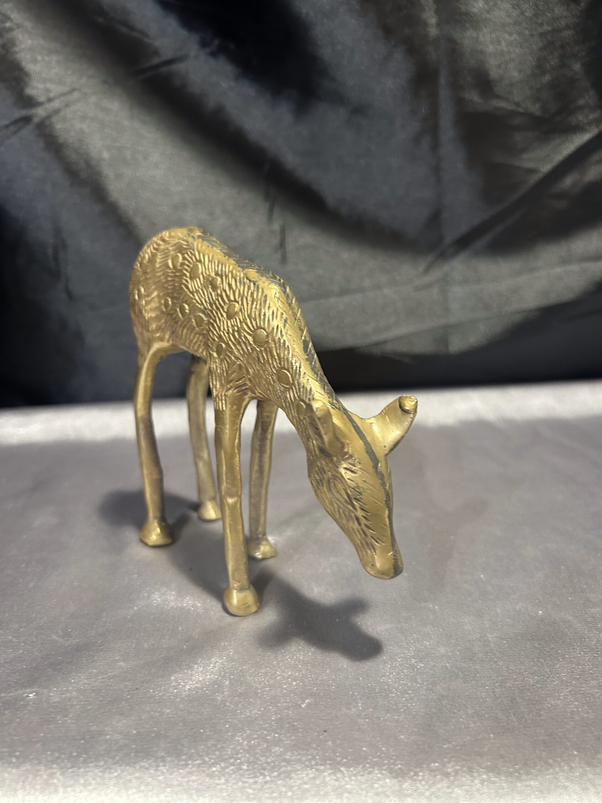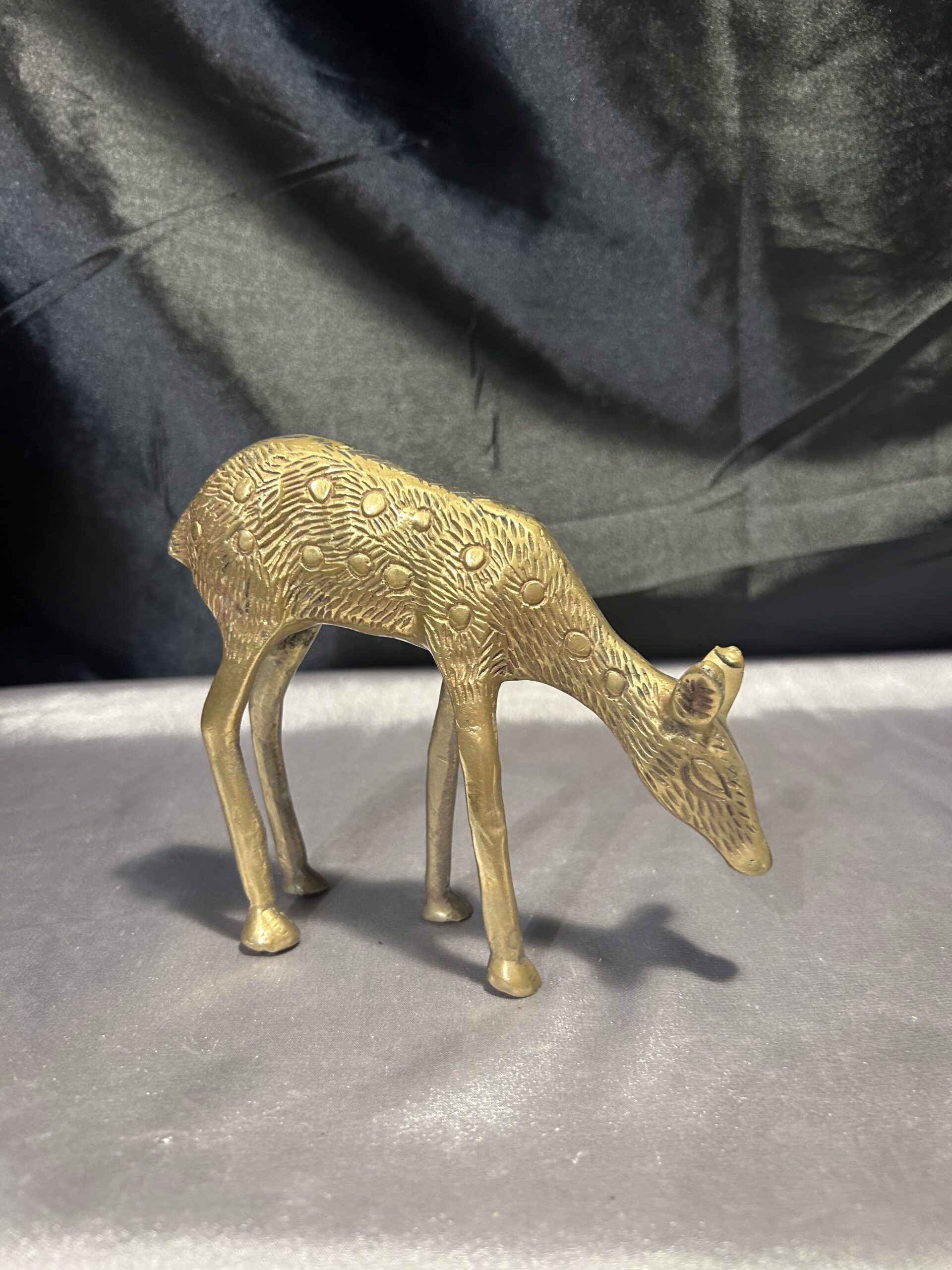 Delikatna i subtelna figurka sarny wykonana z mosiądzu, przedstawiająca zwierzę w naturalnej pozie – schylającą się do trawy. Charakterystyczne dla sarny łatki dodają jej realistycznego wyglądu, a precyzyjne wykonanie podkreśla kunszt rzemiosła. Idealny element dekoracyjny do wnętrz inspirowanych naturą, a także doskonały prezent dla miłośników dzikiej fauny.