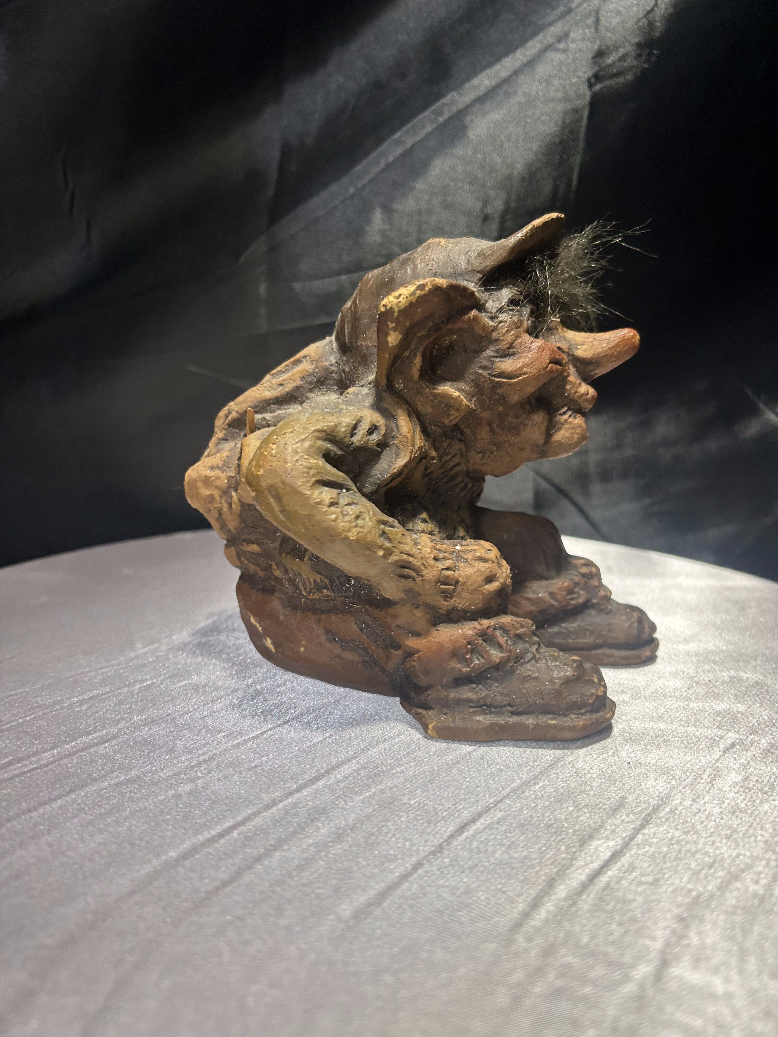 Ta figurka to hołd dla skandynawskich legend i bajek. Choć troll stracił ogonek, nie utracił swojego uroku – wręcz przeciwnie, nabrał charakteru. Idealny do kolekcji, na półkę z nordyckimi pamiątkami lub jako zabawny akcent we wnętrzu z duszą. Unikalny egzemplarz z historią.