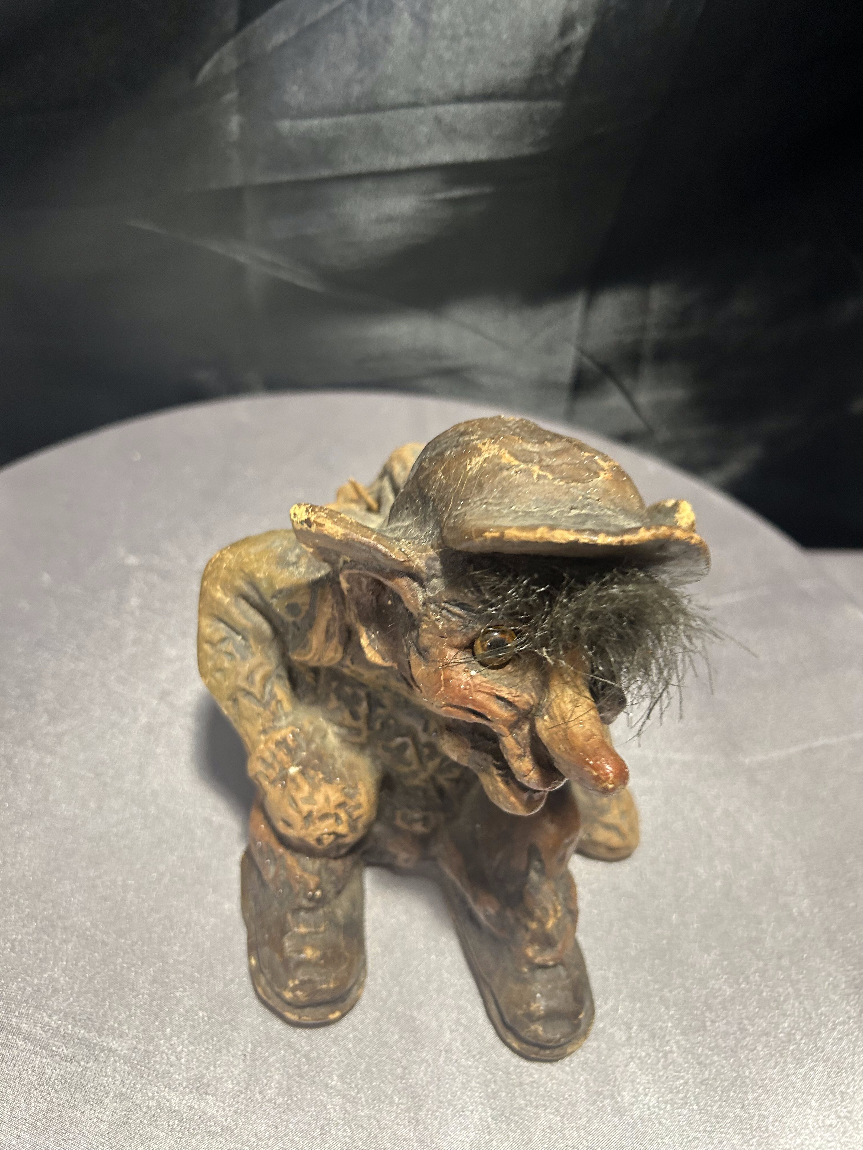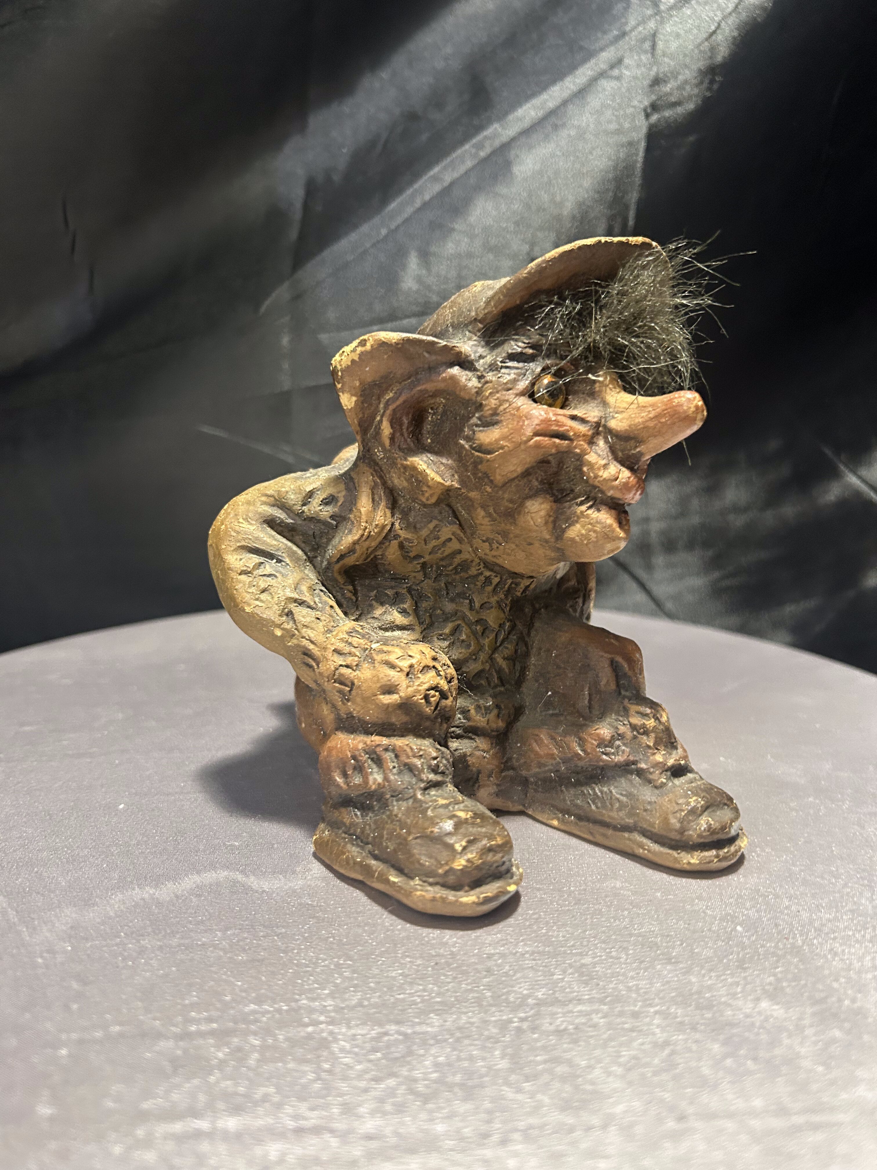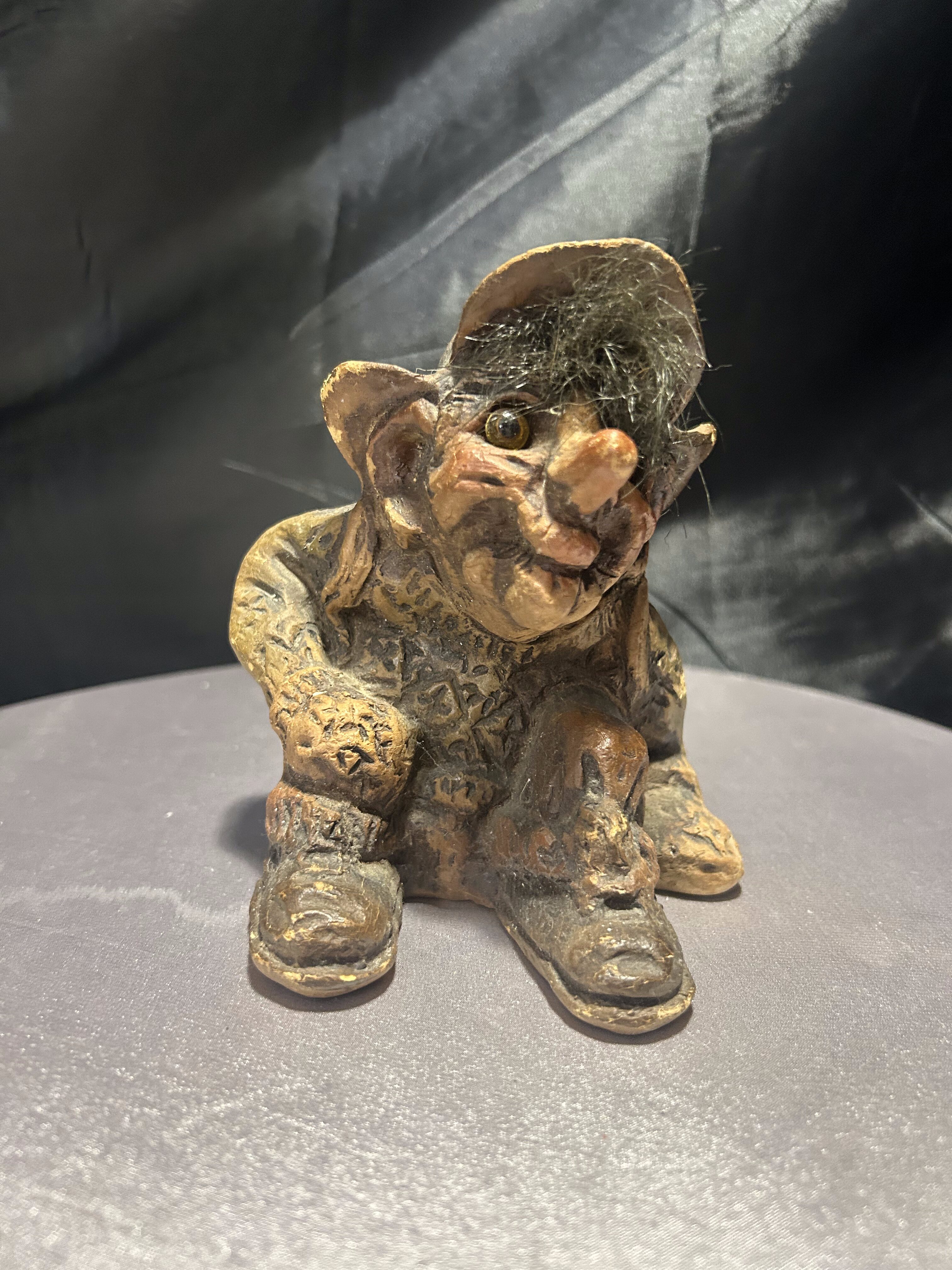 Figurka siedzącego trolla z plecakiem – norweski styl – kolekcjonerska