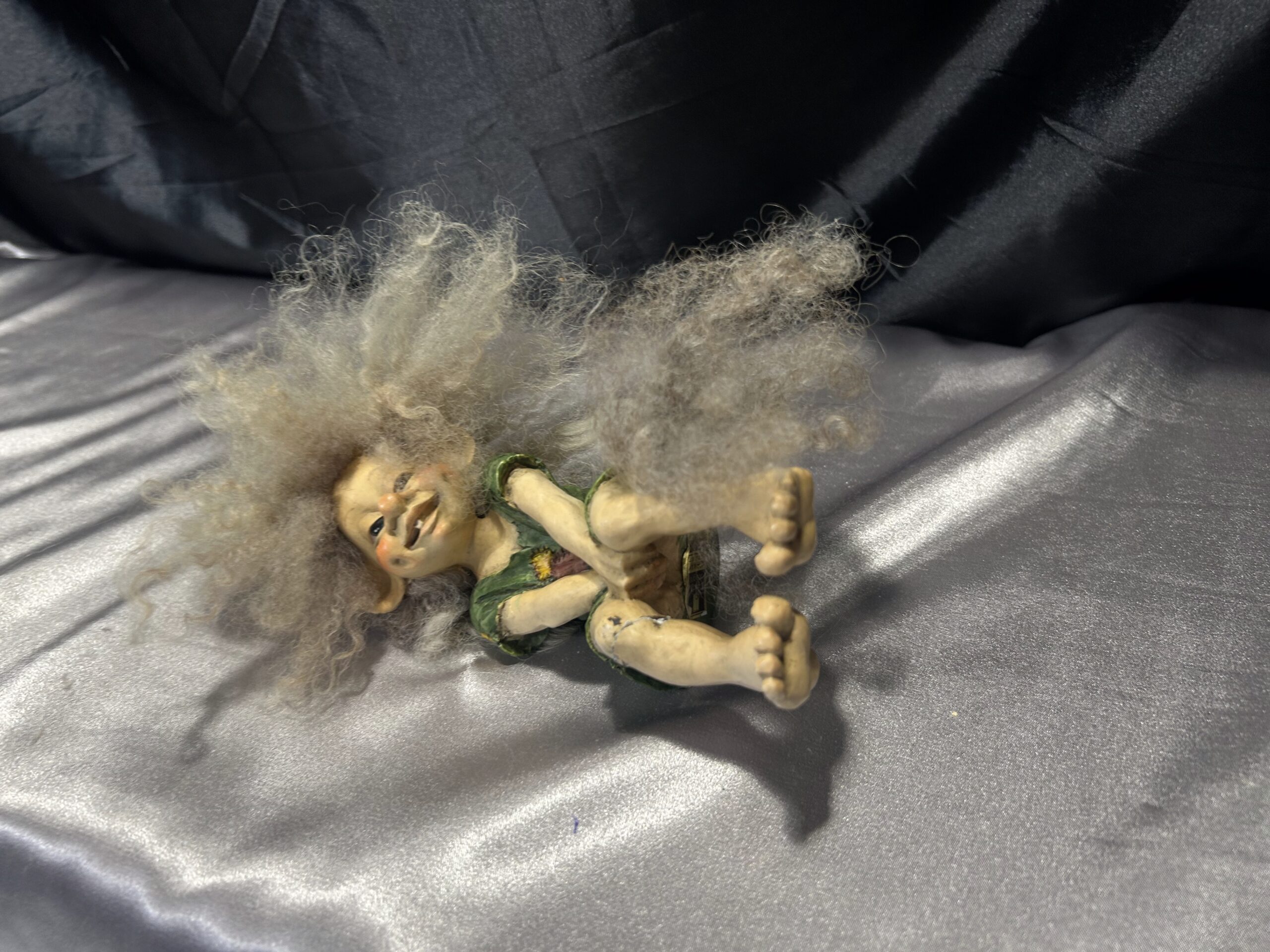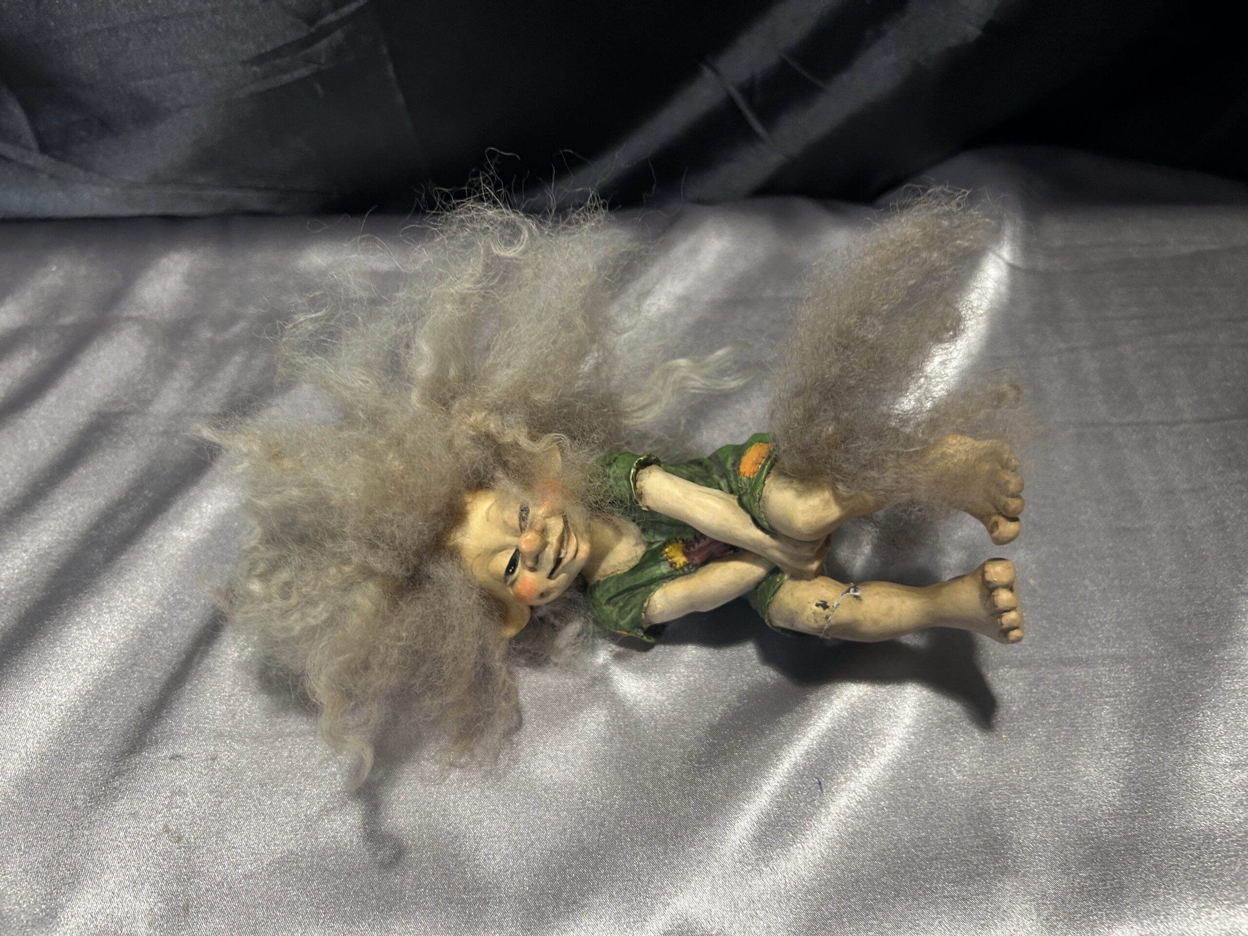 Przedstawiamy unikalną figurkę dziewczyny trolla, która zachwyca realistycznym wyglądem i charakterystycznymi, rozczochranymi lokami. Figurka posiada także włochaty ogonek, który dodaje jej wyjątkowego uroku. Idealna na półkę jako dekoracja o skandynawskim klimacie. Ze względu na wcześniejsze uszkodzenie nogi, dostępna w cenie promocyjnej.