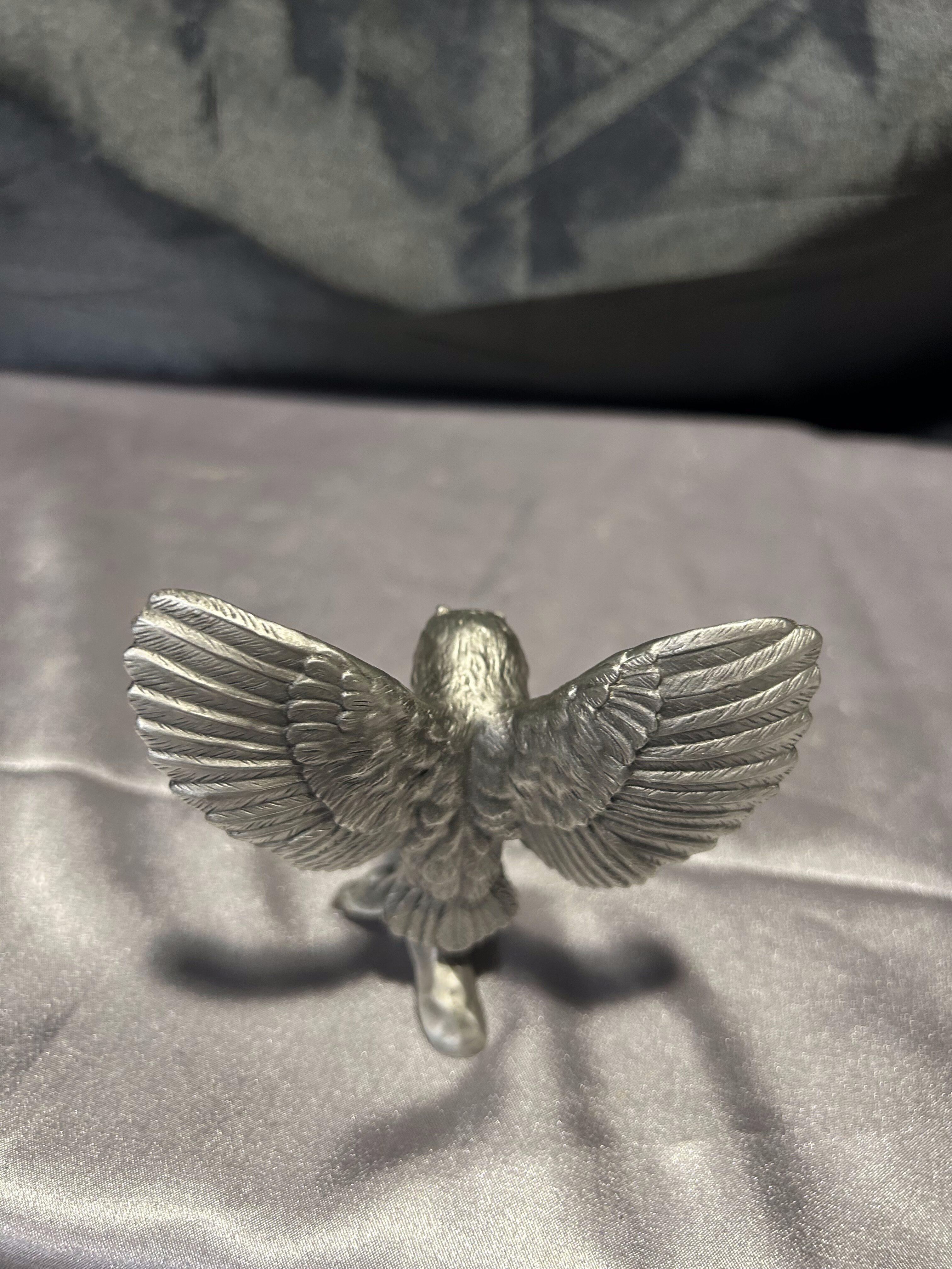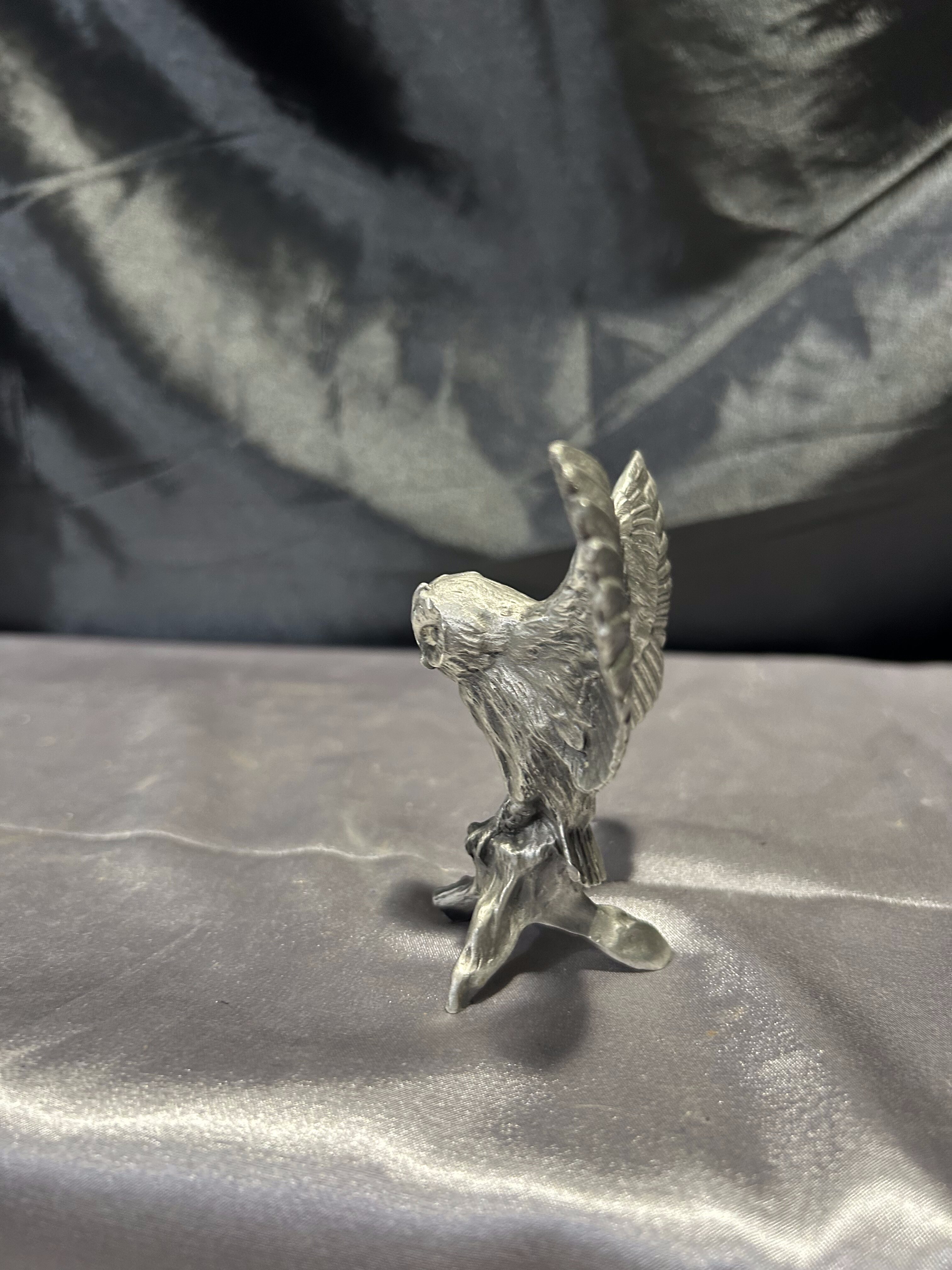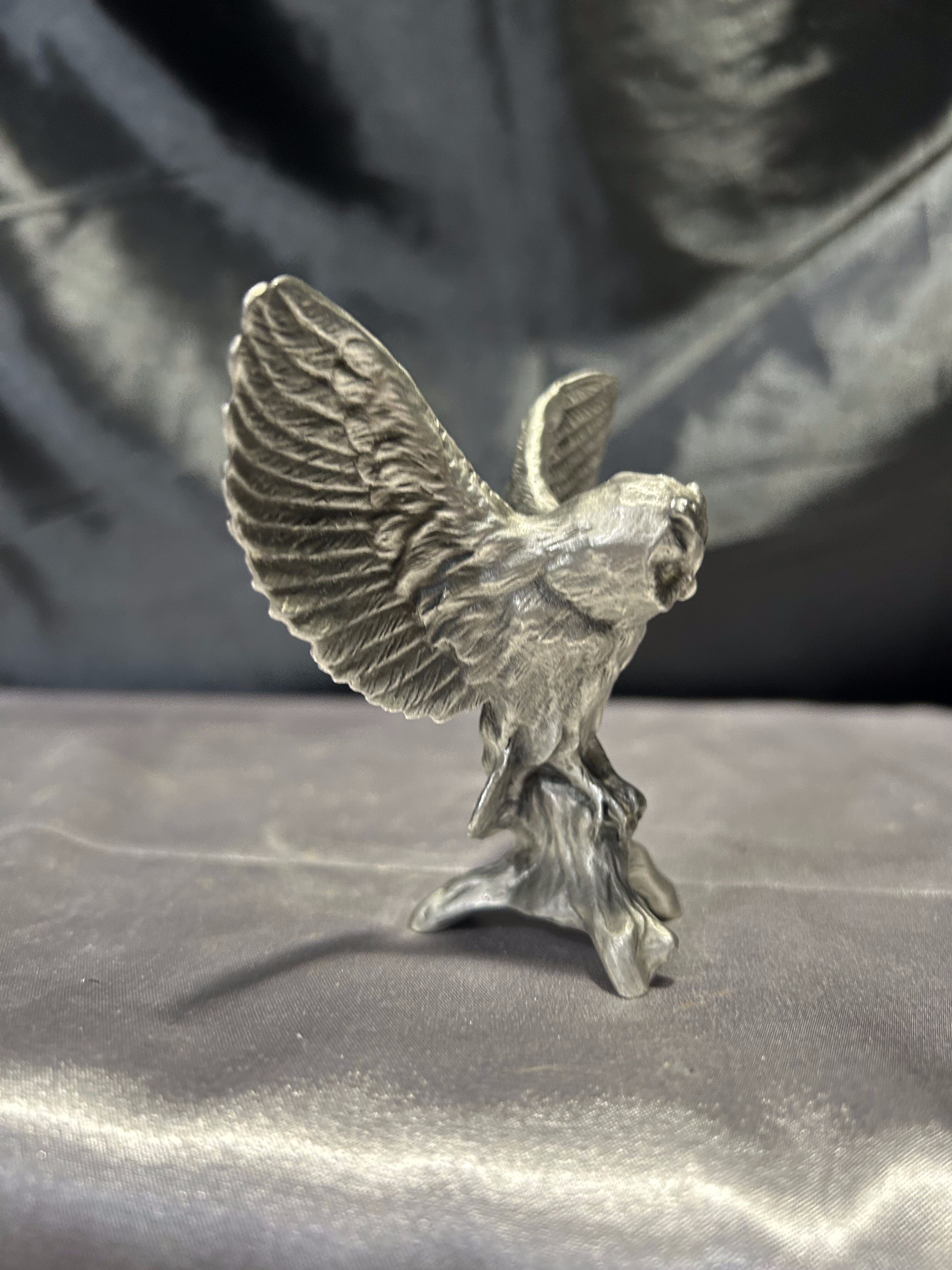 Figurka sowa z rozpostartymi skrzydłami – Mosiądz pobiał – Sygnowana, realistyczna