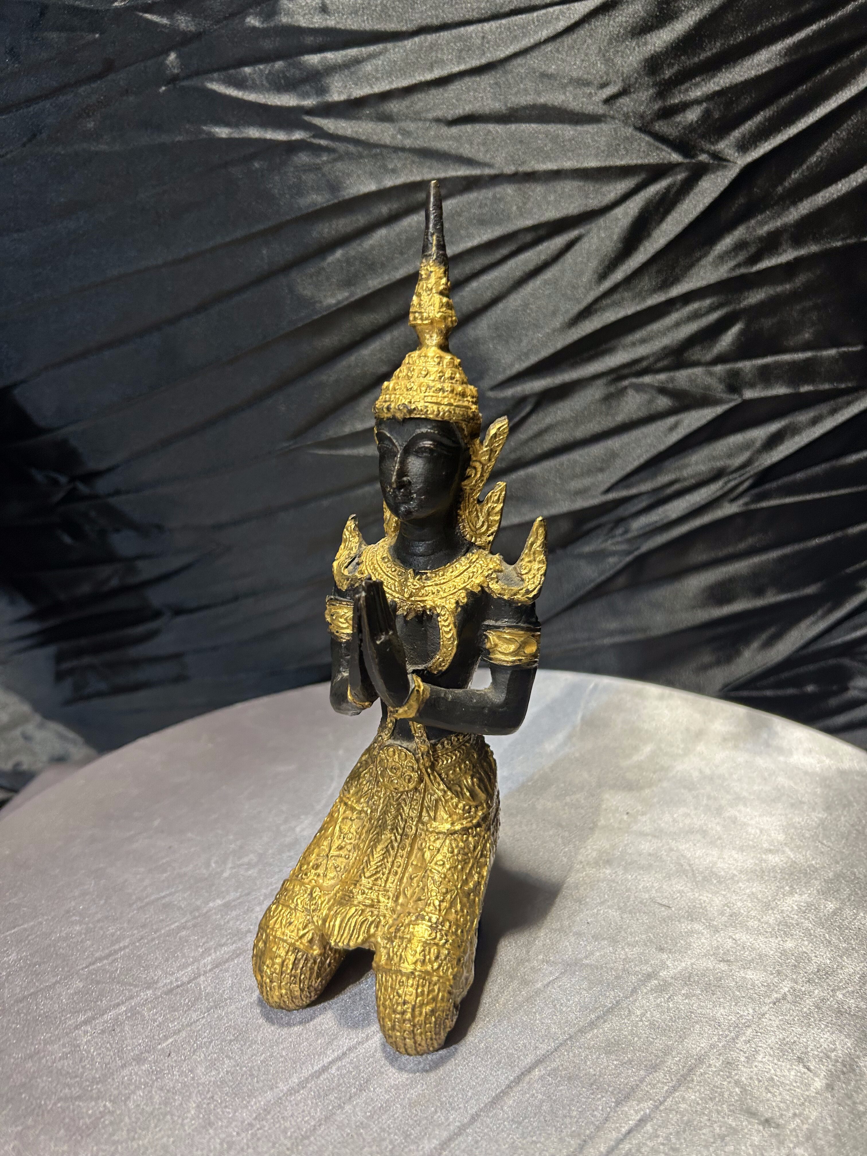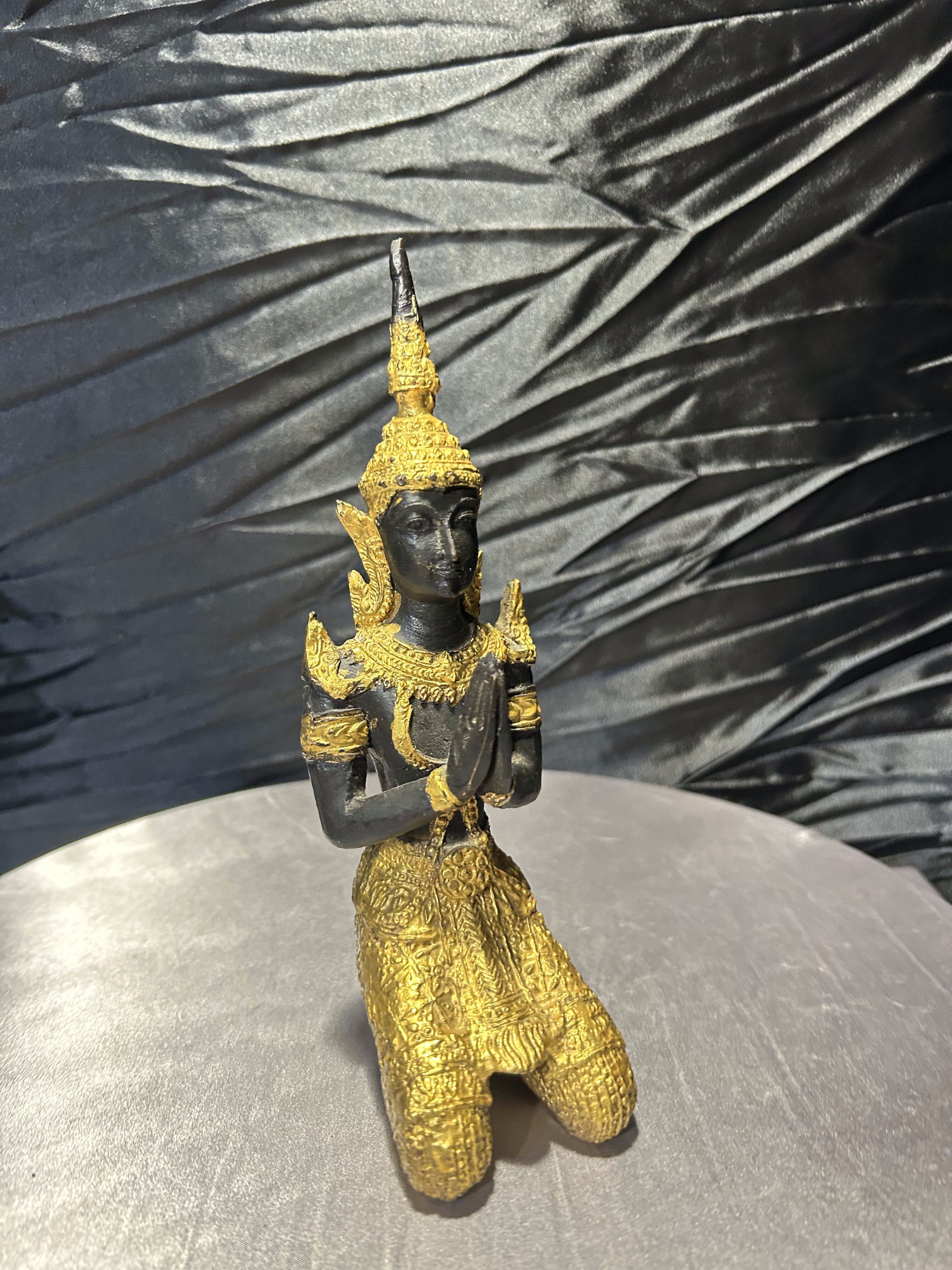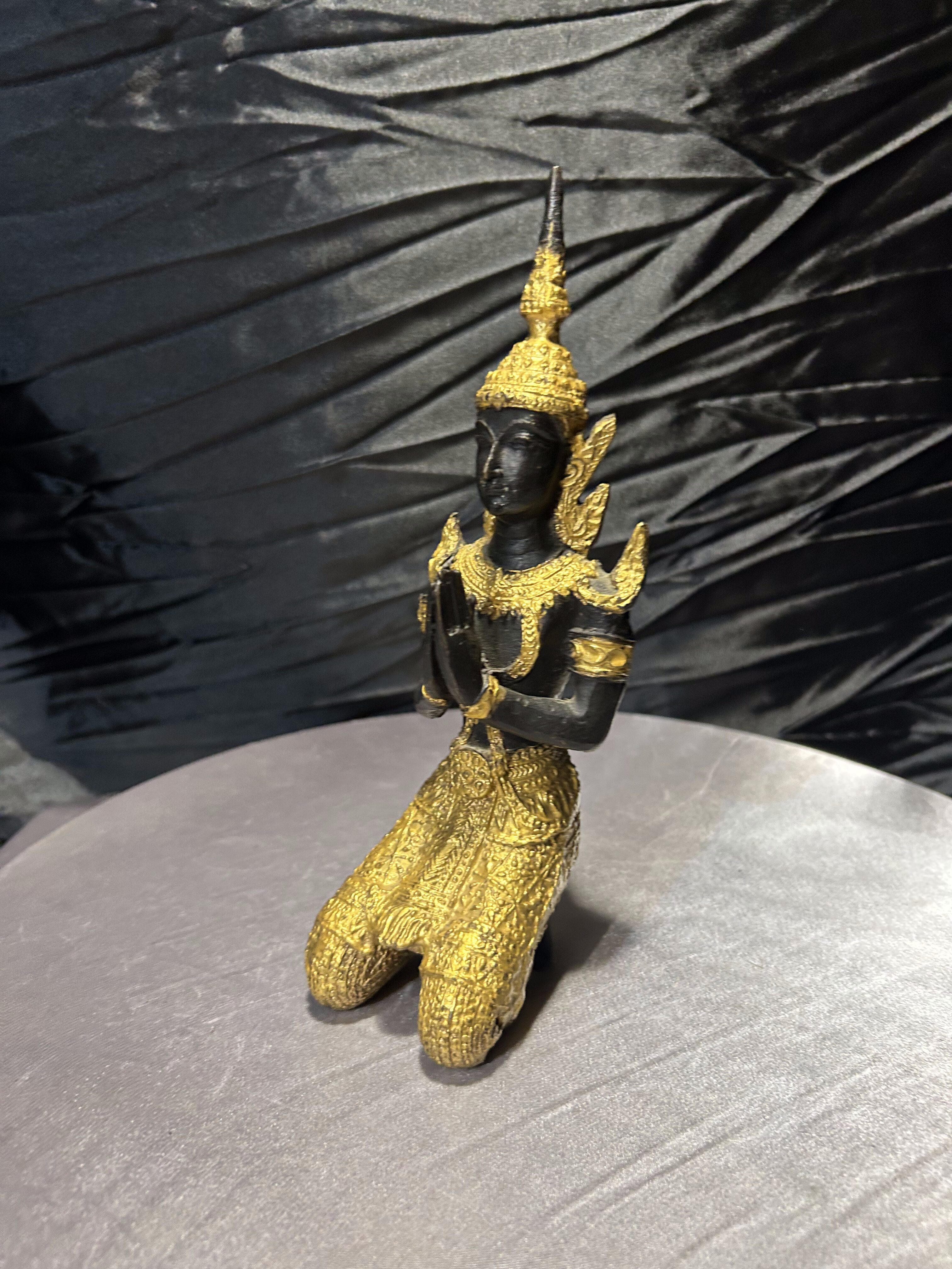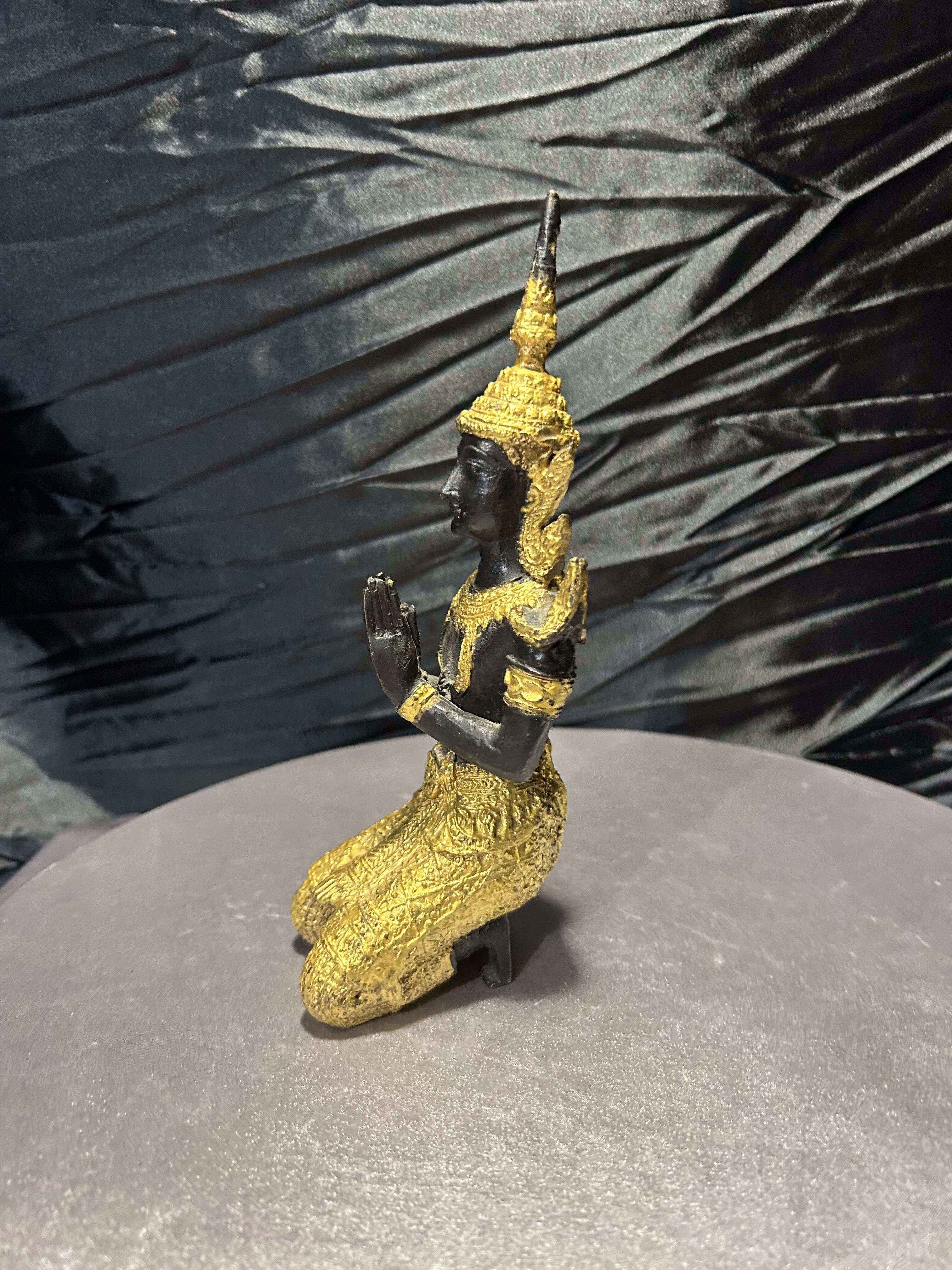 Figurka tajska – modląca się postać w stroju dworskim – złocona