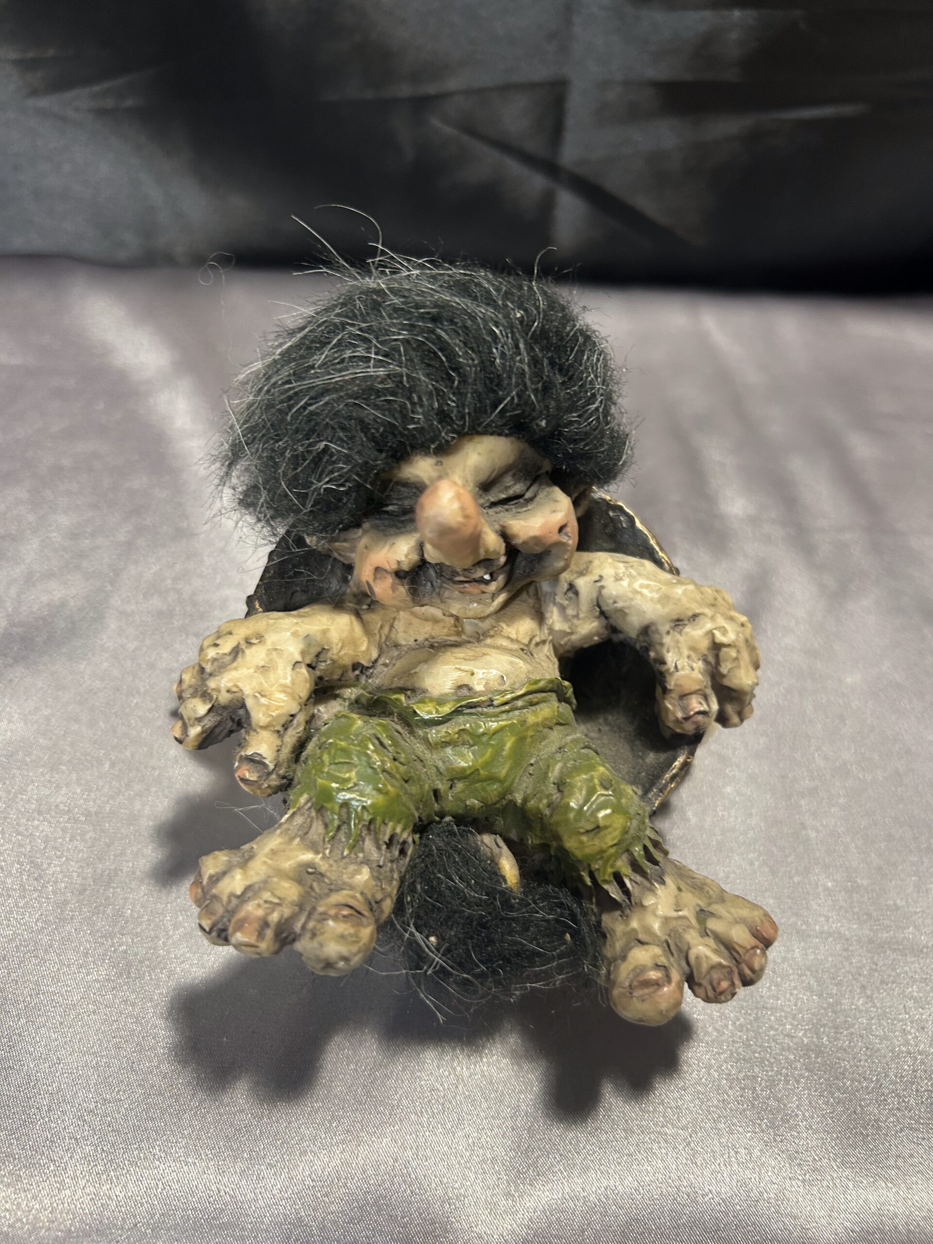 Przedstawiamy unikalną figurkę trolla, przywiezioną prosto z Norwegii. Ten zabawny troll odpoczywa w wikingowskim hełmie z rogami, nawiązując do legend i historii skandynawskich wojowników. Figurka wyróżnia się starannym wykonaniem i ręcznie malowanymi detalami, dzięki czemu stanowi zarówno wyjątkową ozdobę, jak i ciekawy element kolekcjonerski.