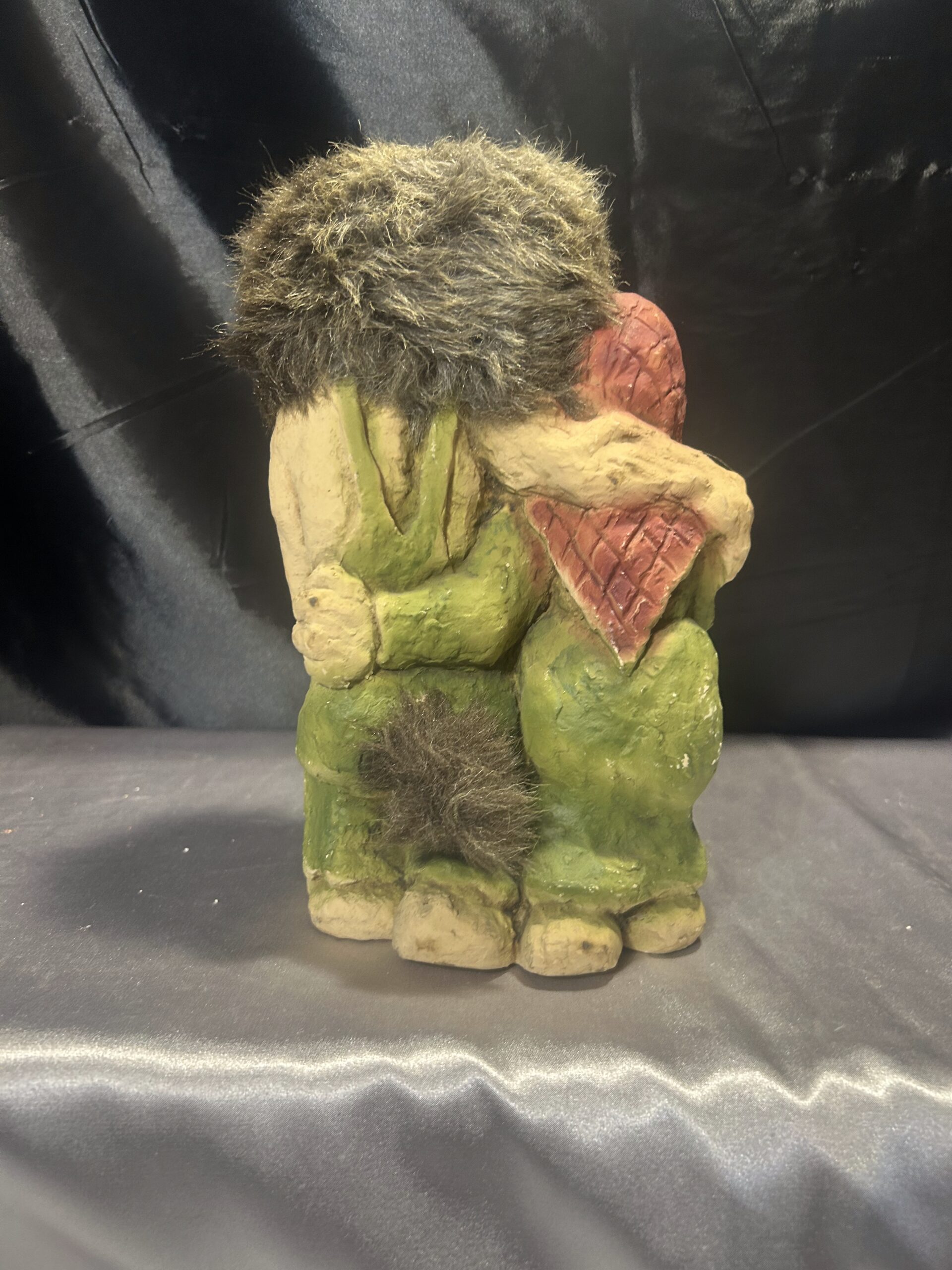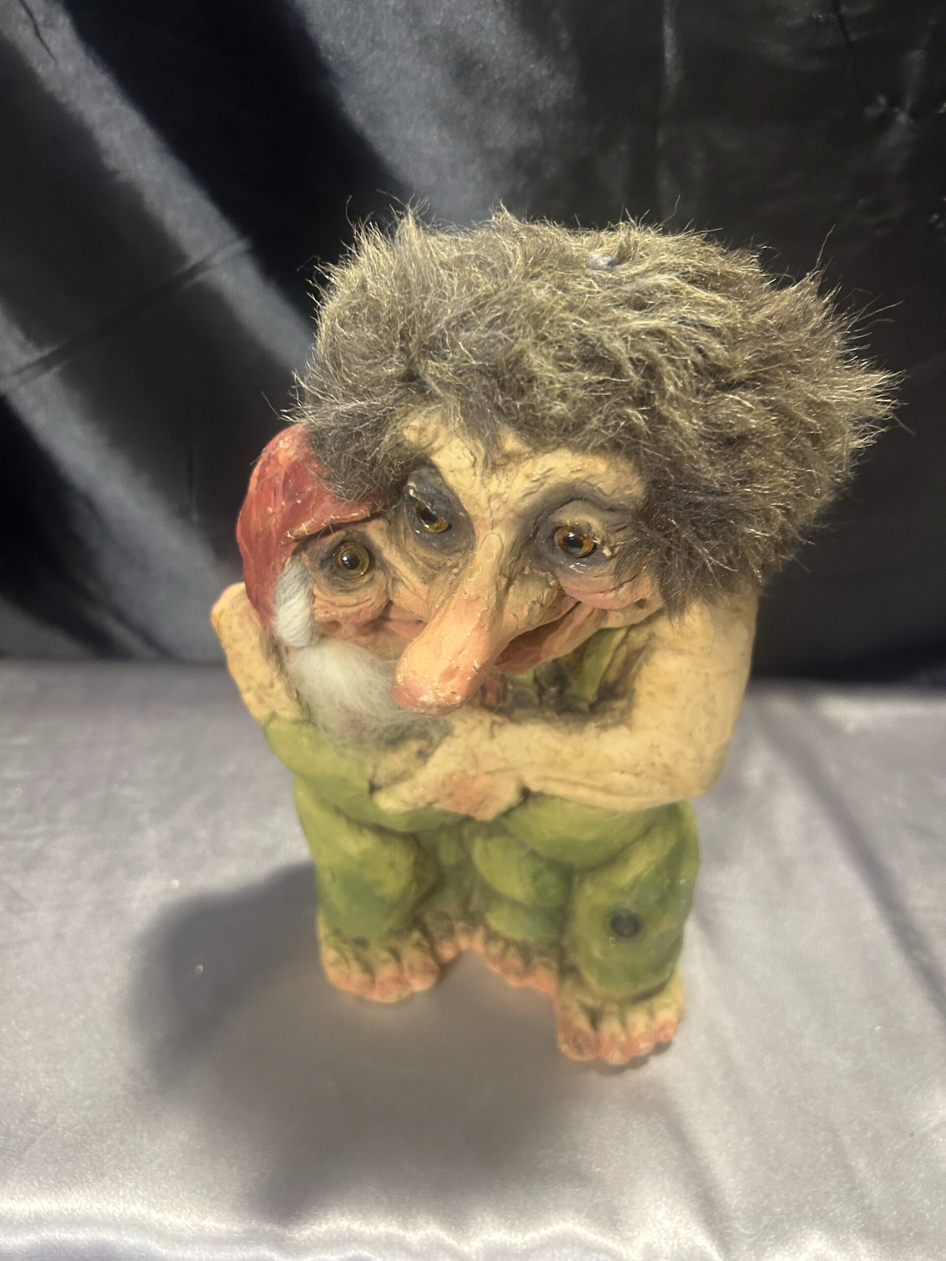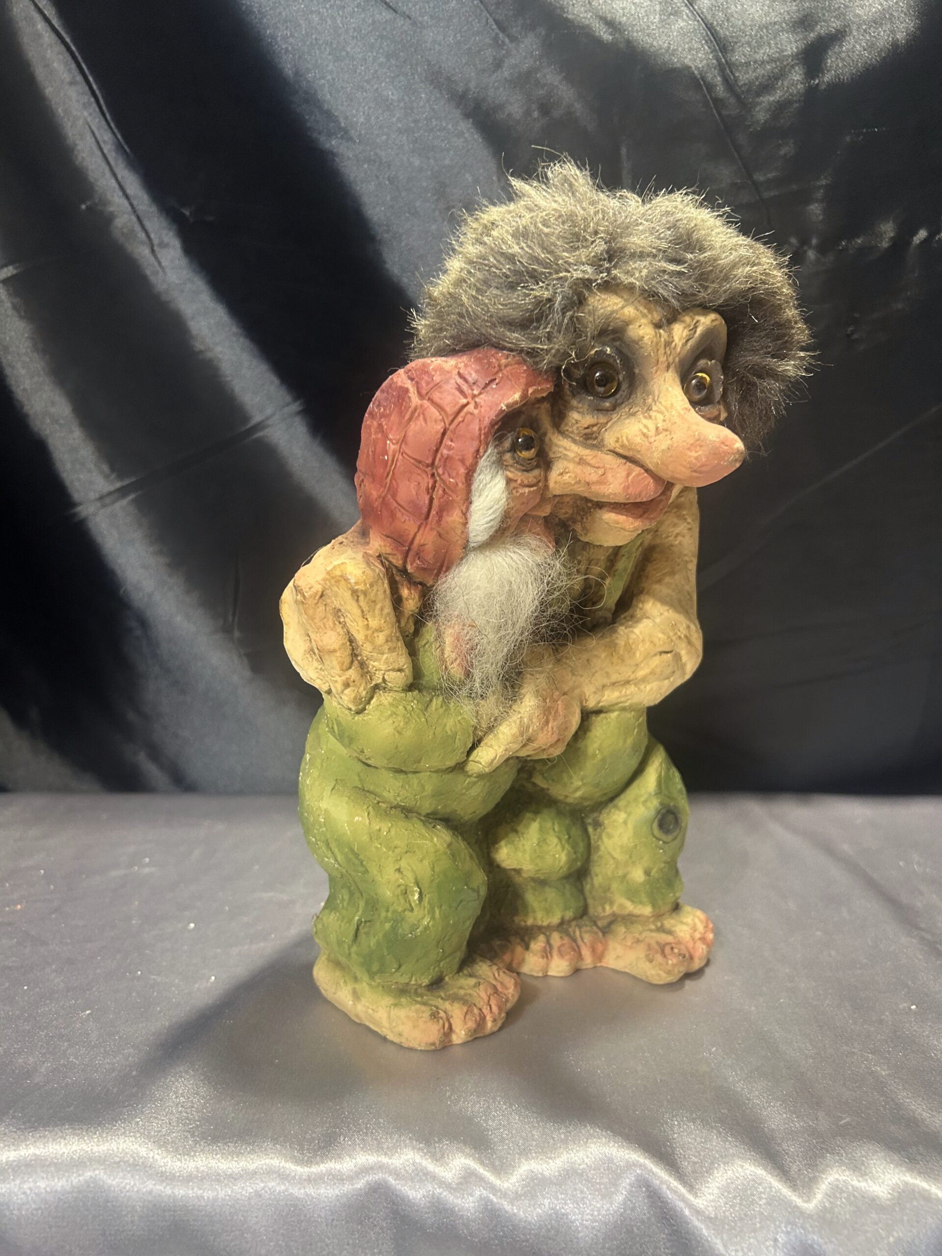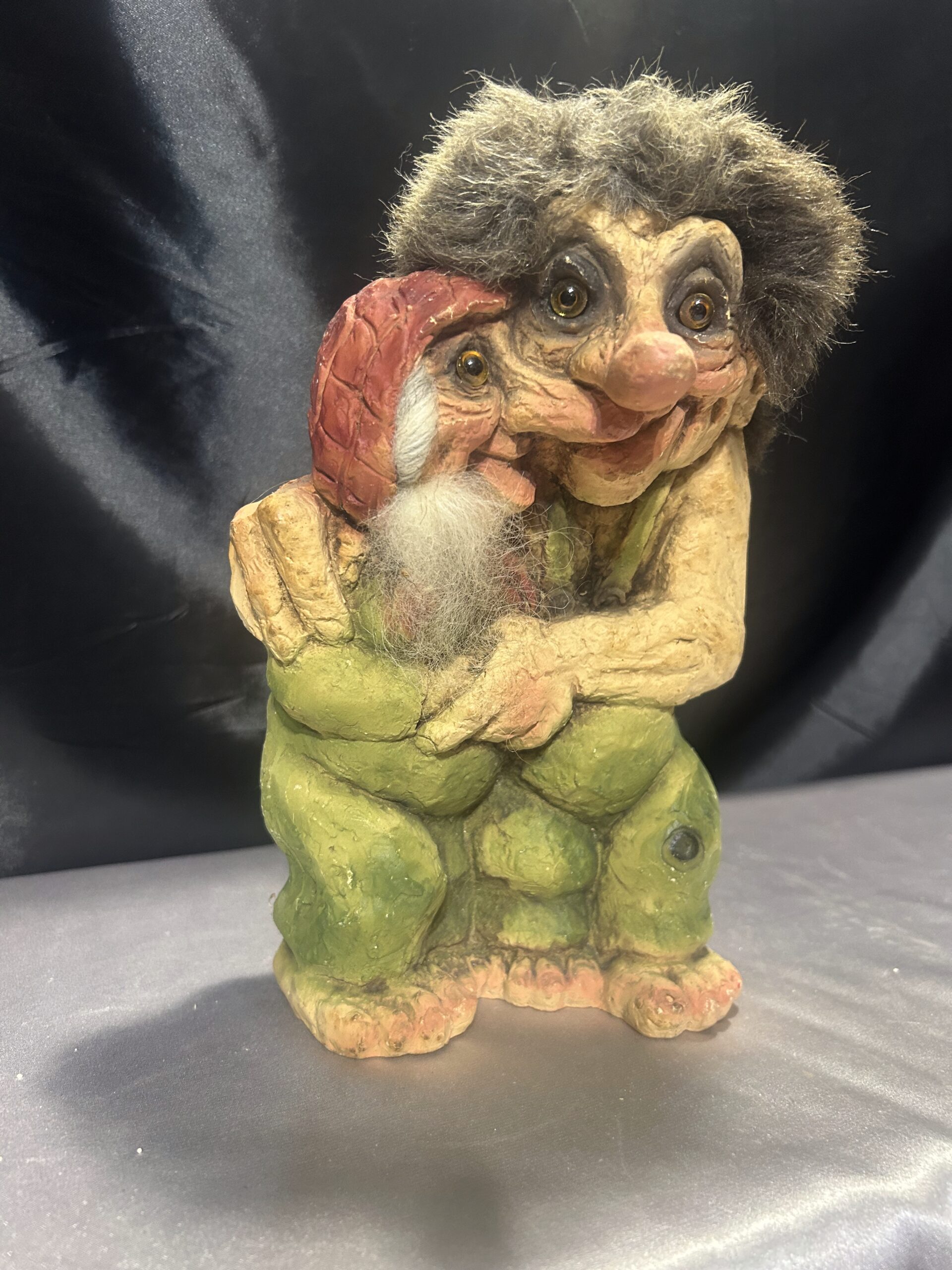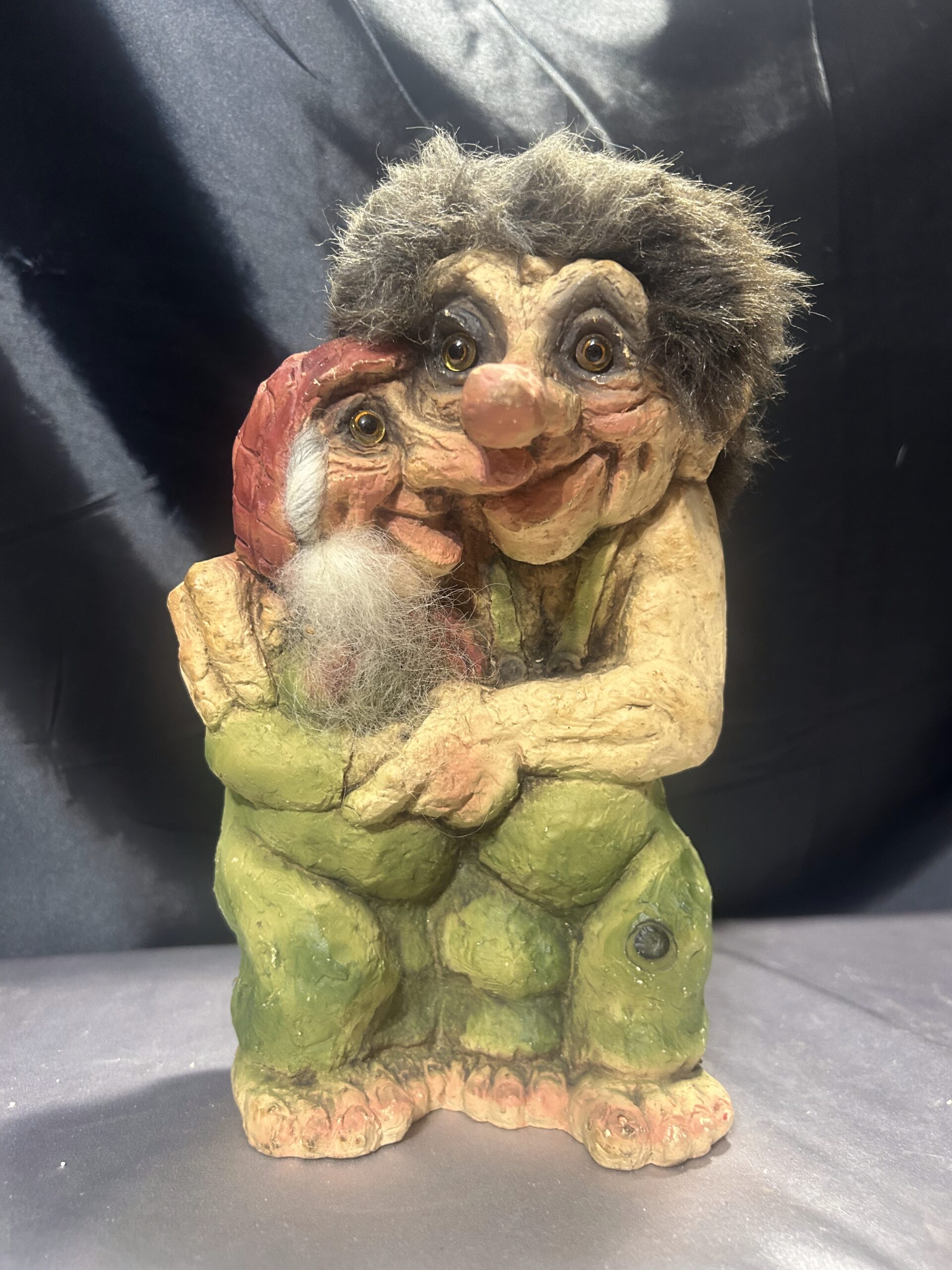 Przedstawiam unikatową figurkę trolli, przywiezioną prosto z Norwegii. Przedstawia ona starszą parę w serdecznym uścisku, co symbolizuje miłość, bliskość i norweską tradycję. To niezwykła dekoracja, która wnosi do wnętrza ciepło i charakterystyczny skandynawski klimat.
