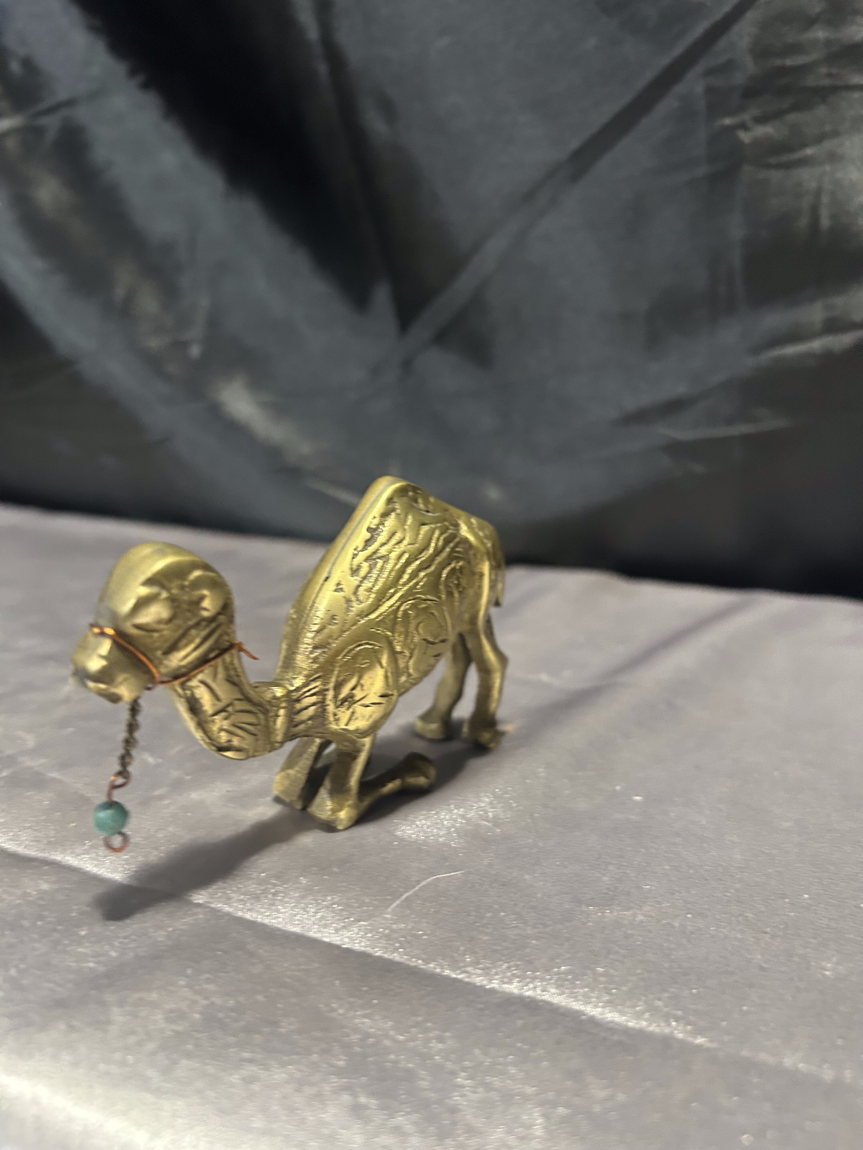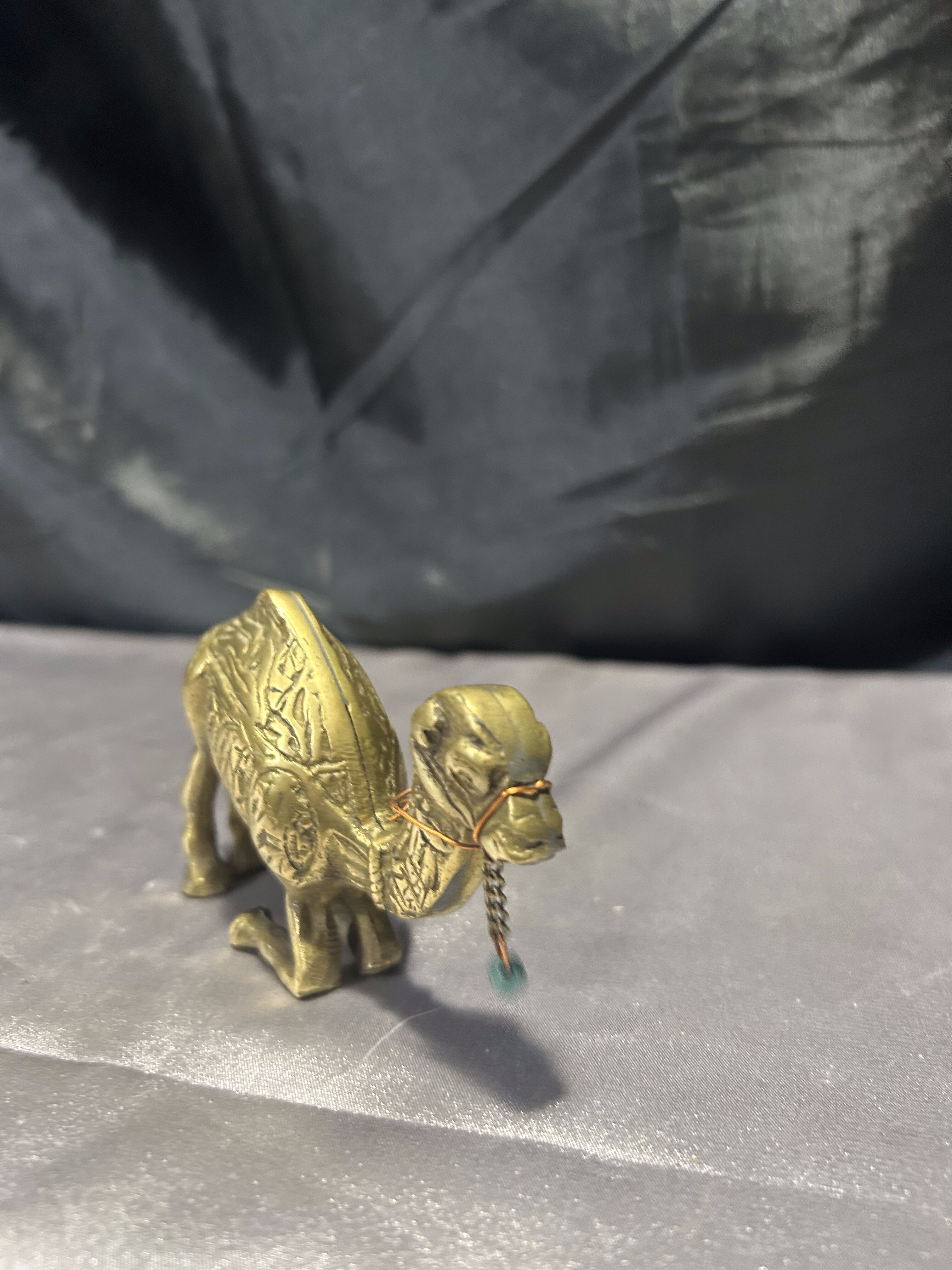 Figurka wielbłąda z mosiądzu – realistyczna – z ozdobą
