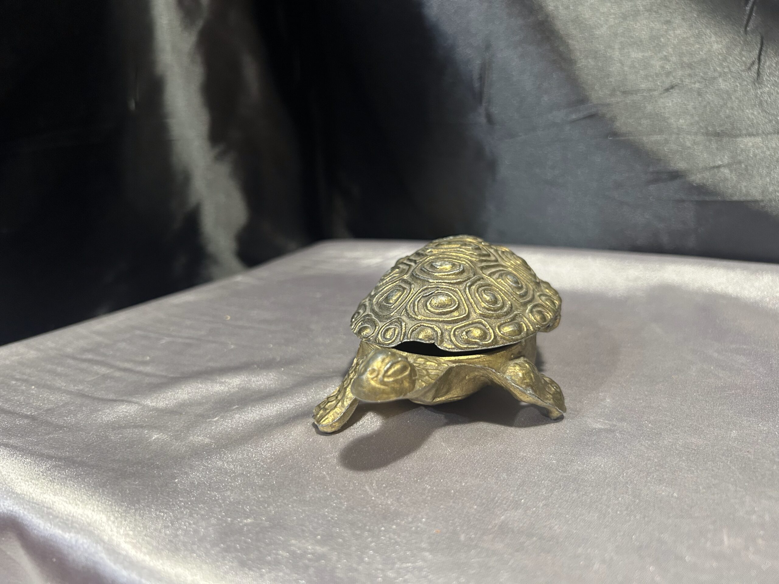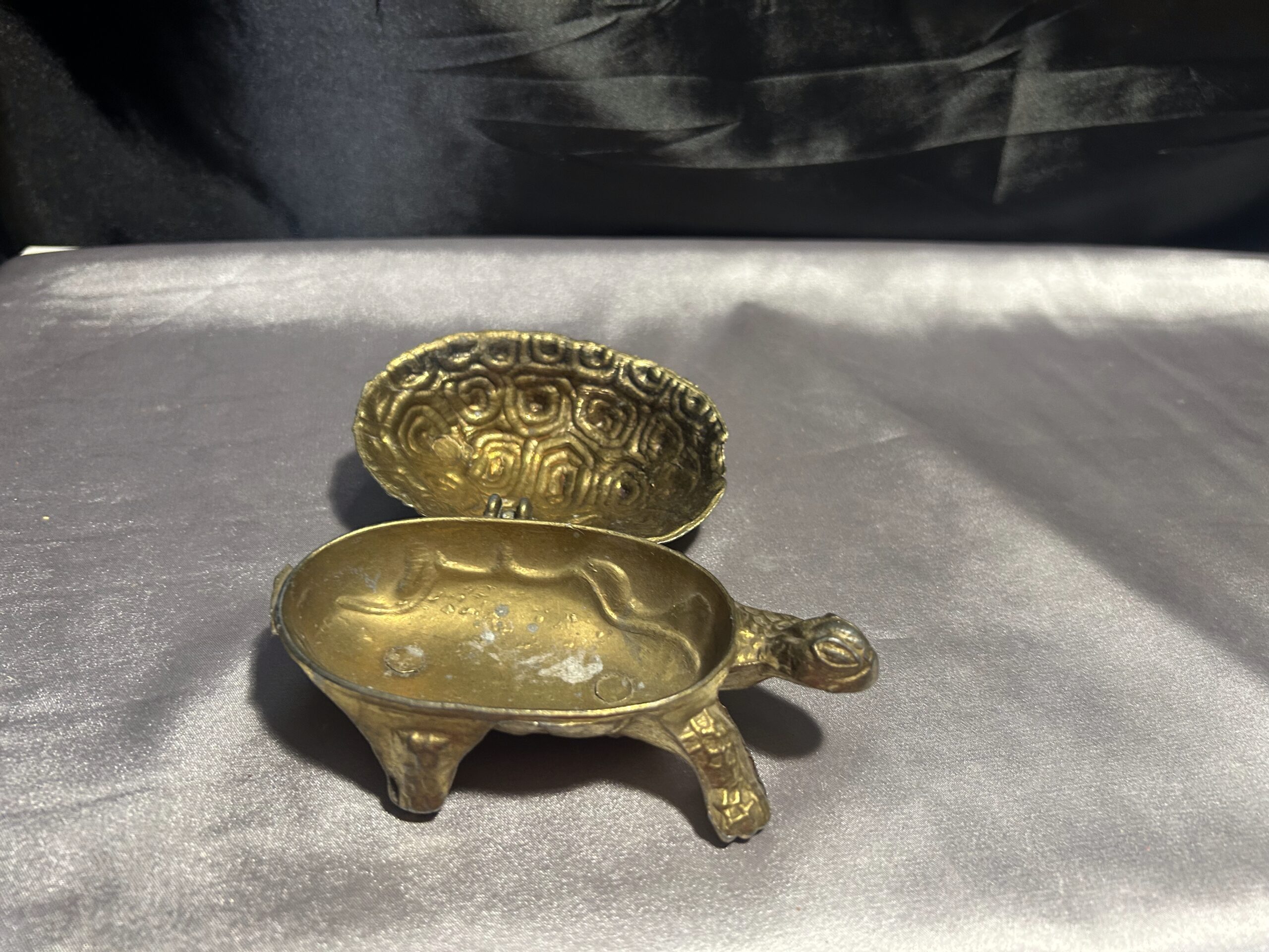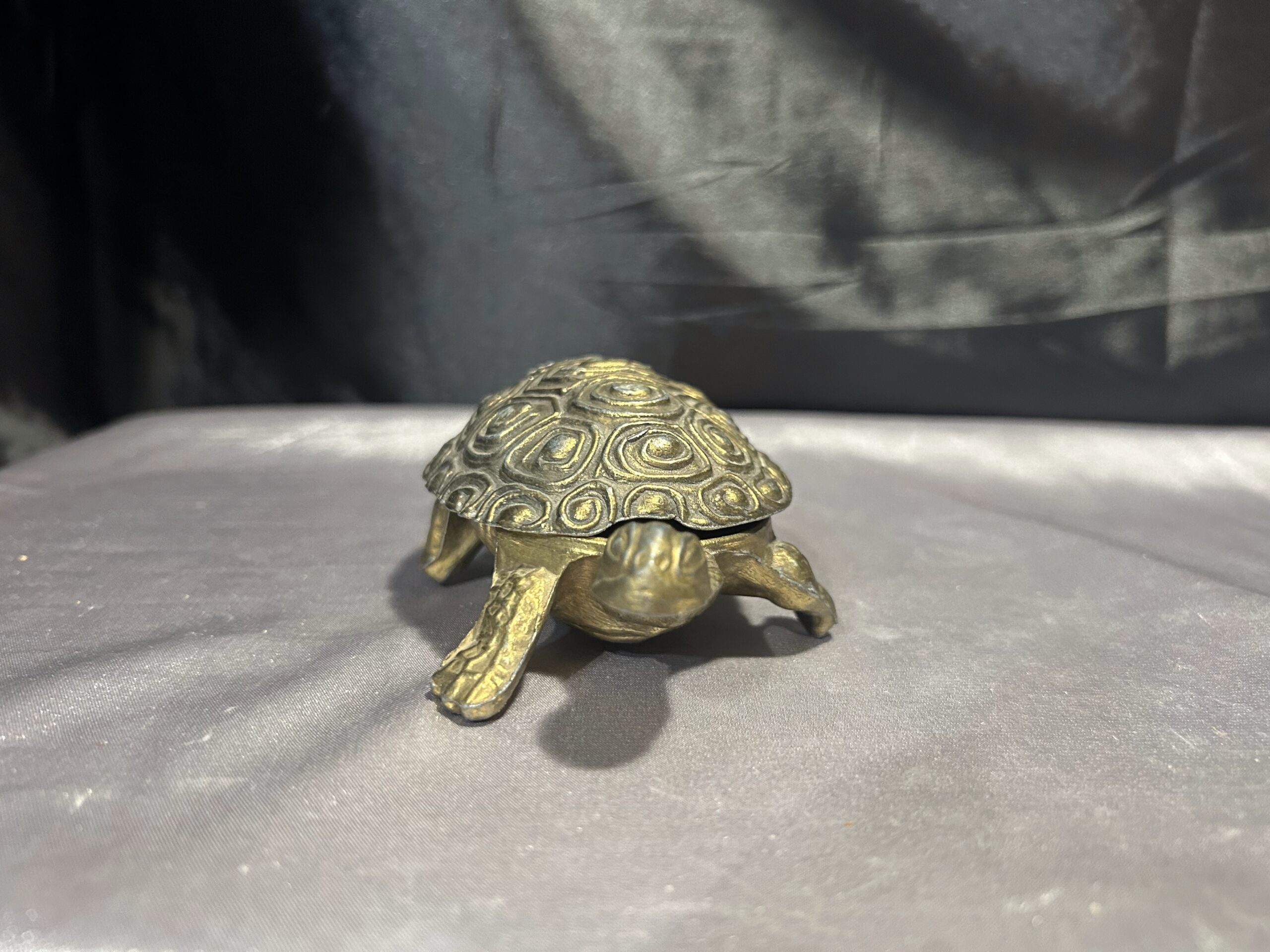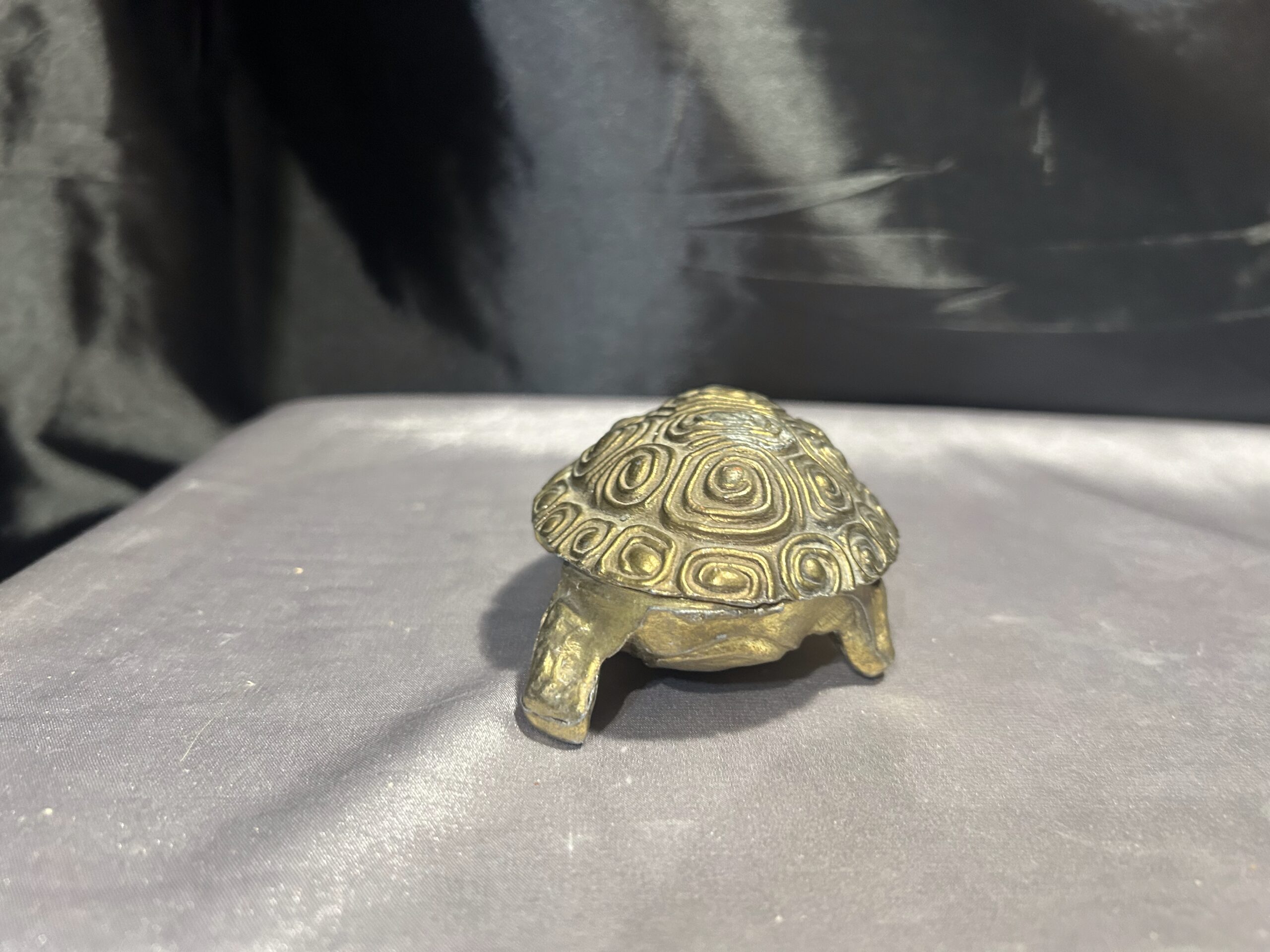 Figurka Żółwia z Mosiądzu – Zamykana Szkatułka lub Popielniczka, Sygnowana Italy