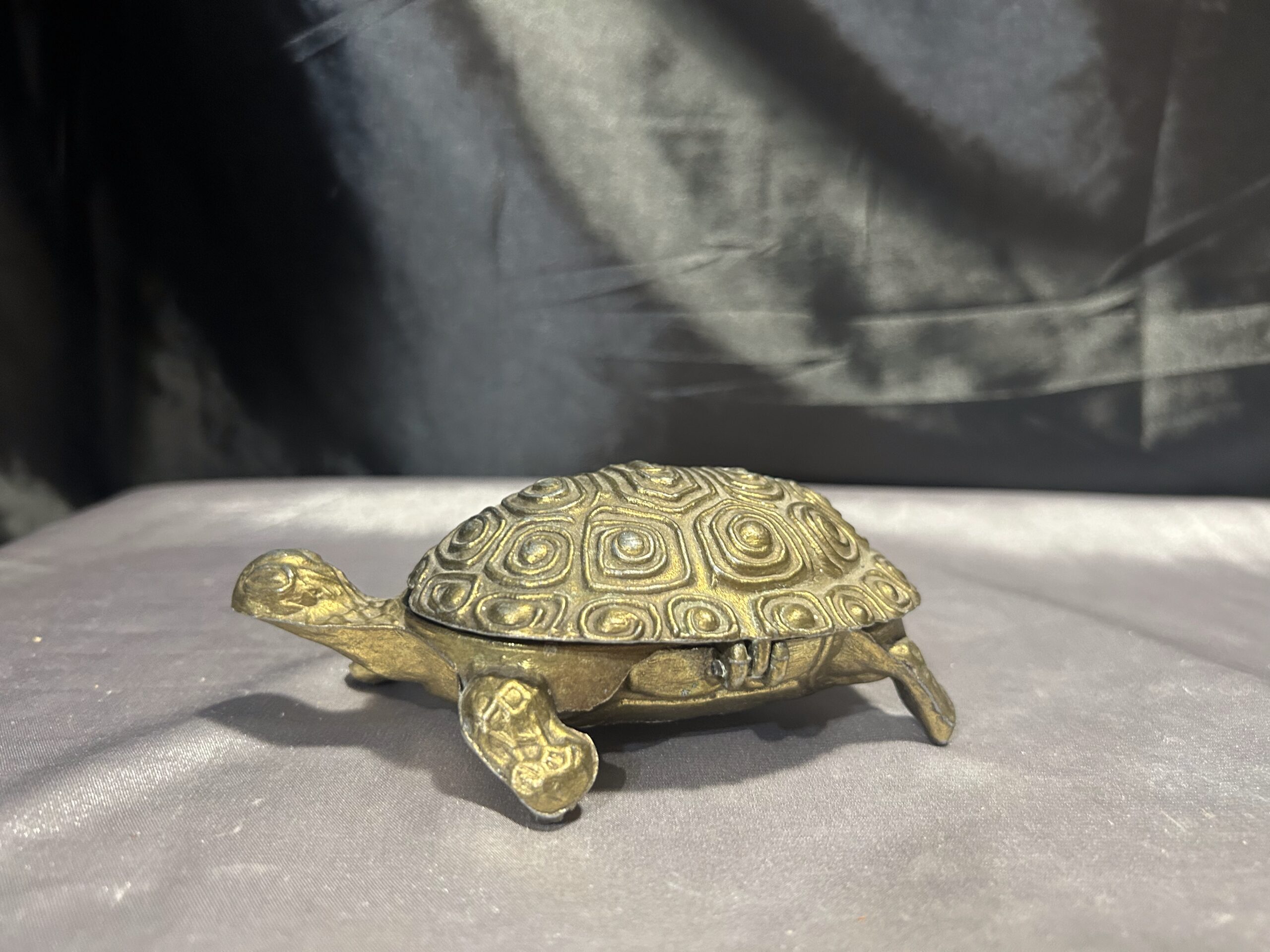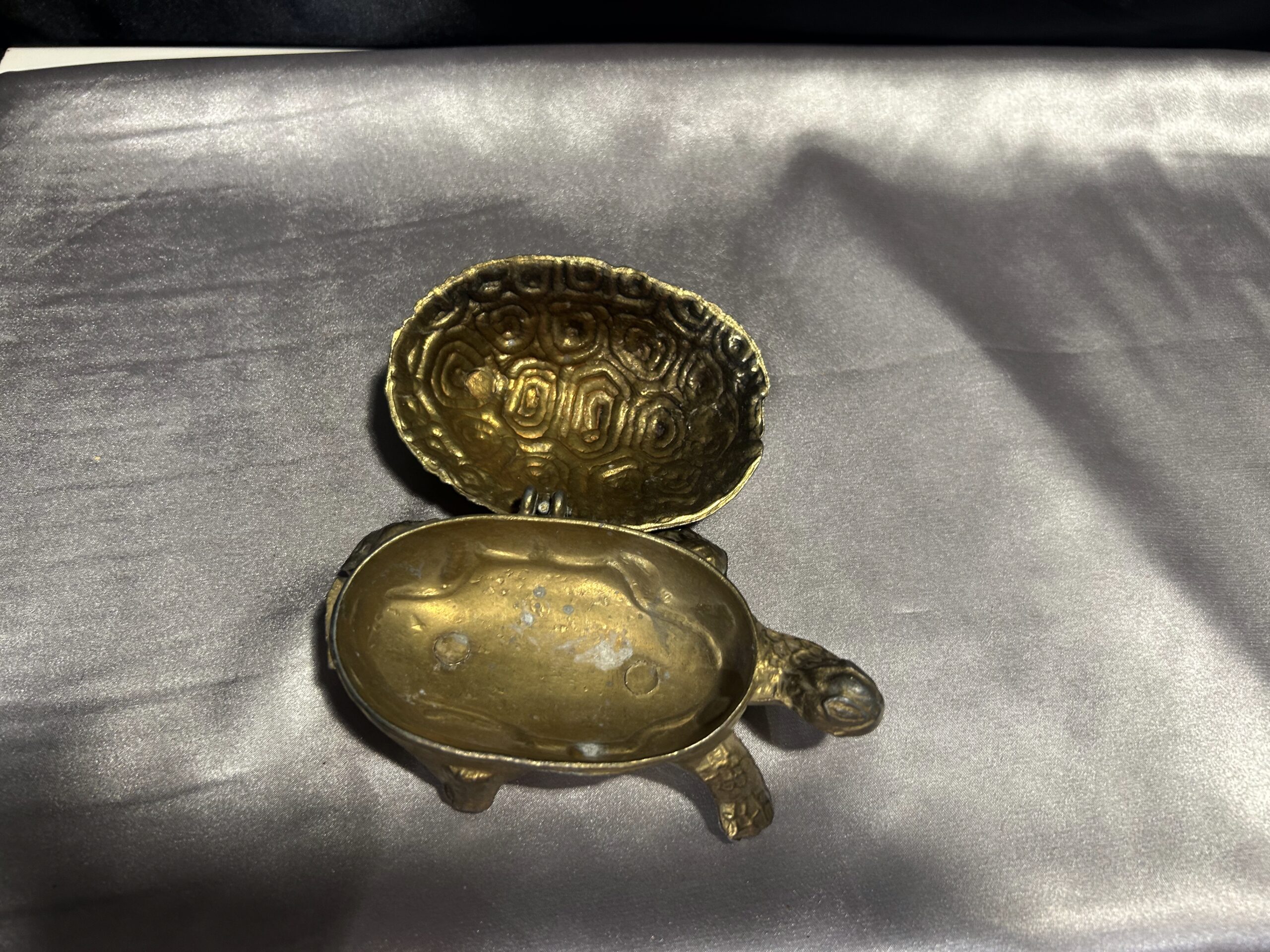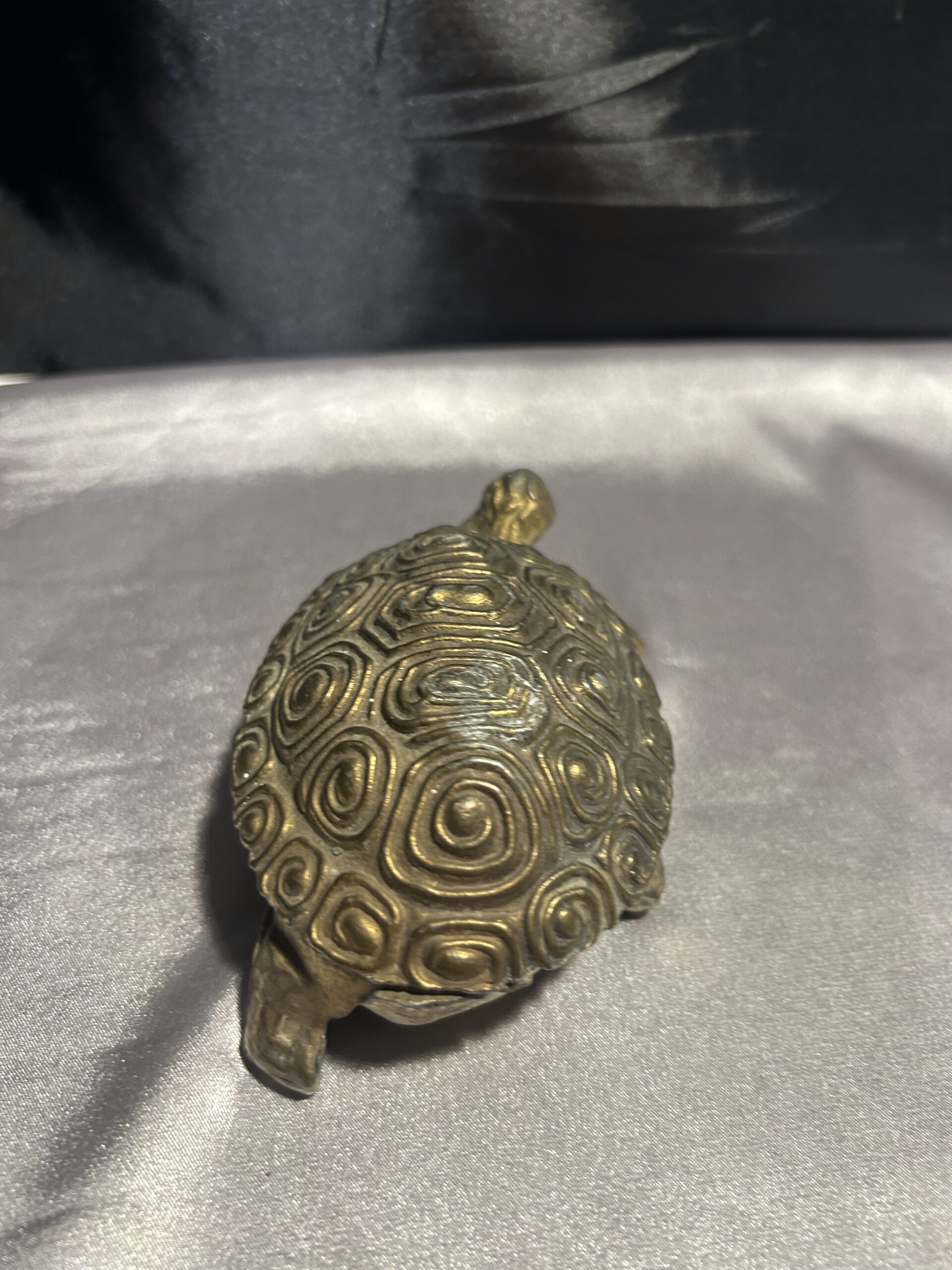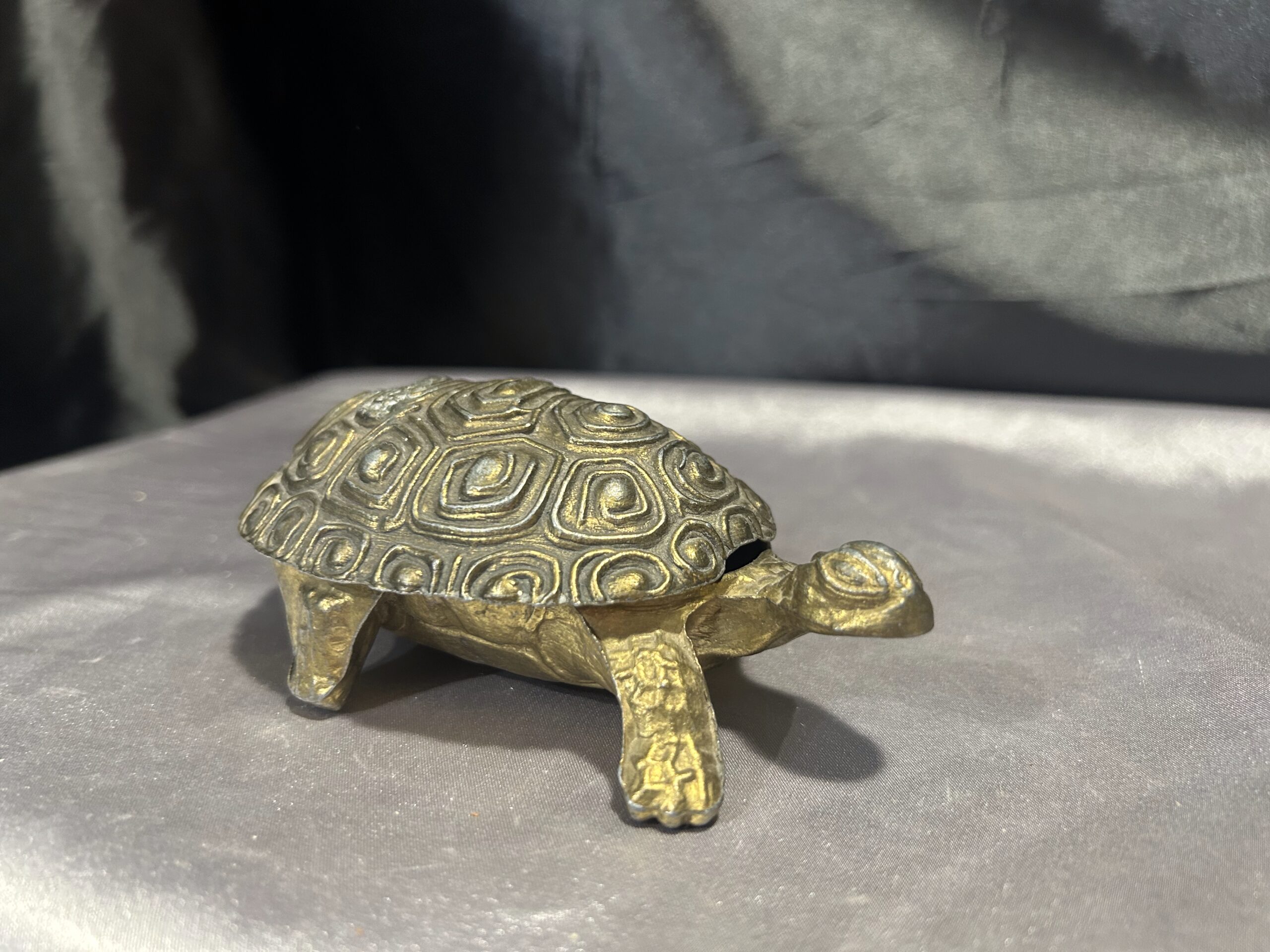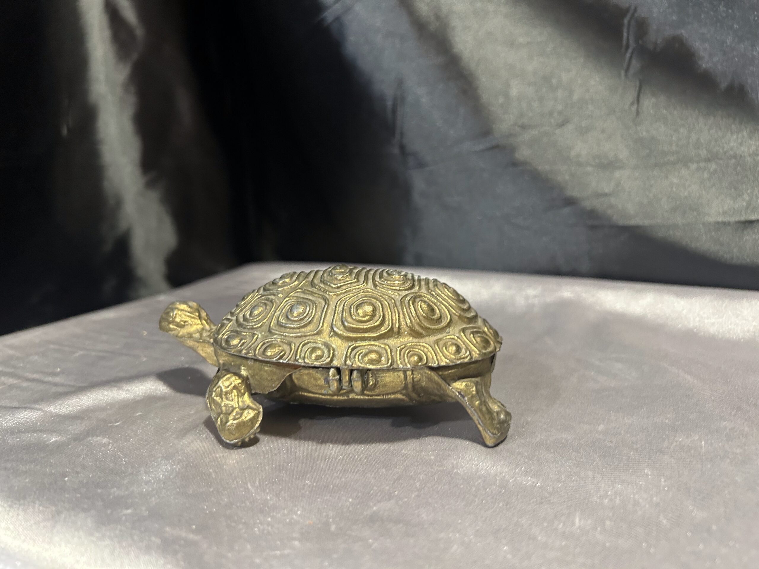 Figurka Żółwia z Mosiądzu – Zamykana Szkatułka lub Popielniczka, Sygnowana Italy