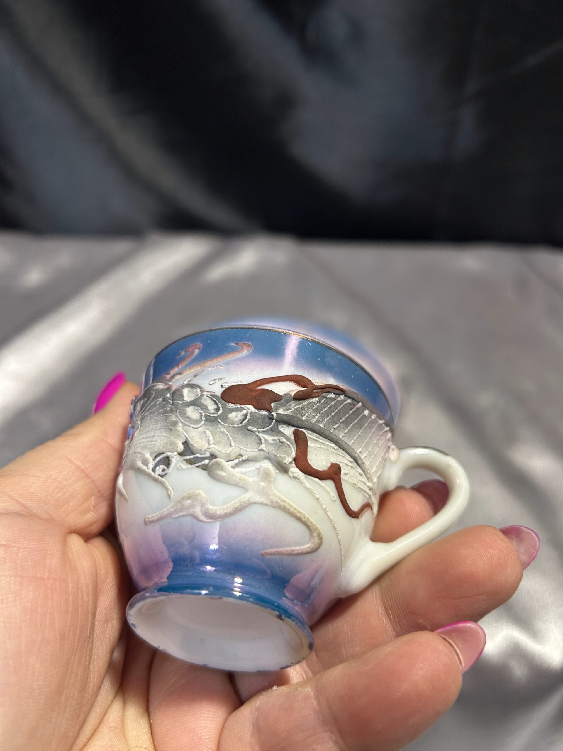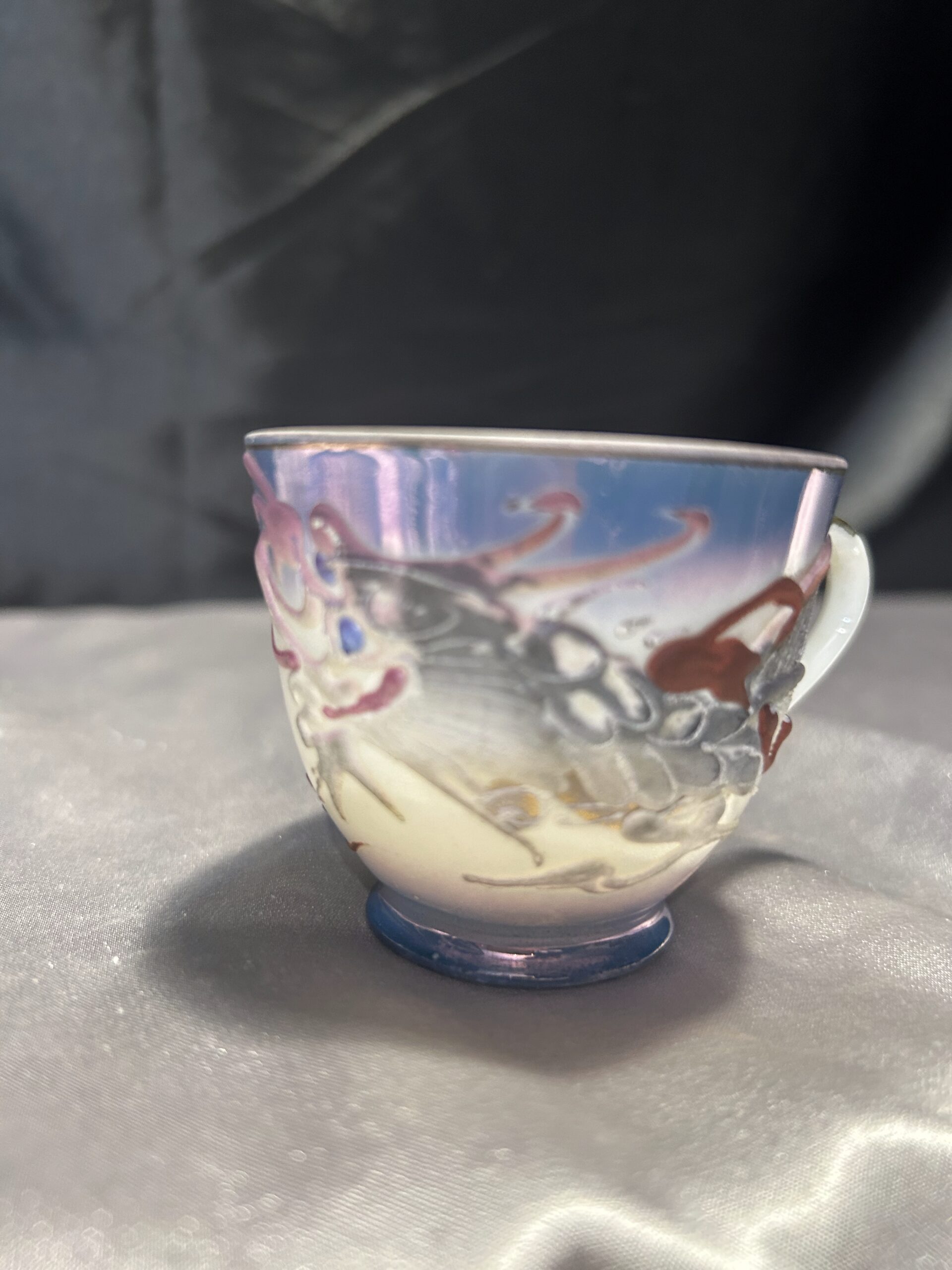 Ta filiżanka to coś więcej niż zwykłe naczynie – to małe dzieło sztuki, które kryje w sobie tajemnice. Połyskujący perłowy odcień i wypukłe zdobienia nadają jej wyjątkowego charakteru, a ukryta twarz kobiety widoczna pod światło sprawia, że każdy łyk kawy staje się intrygującym doświadczeniem. To doskonały wybór dla miłośników porcelanowych rarytasów, kolekcjonerów i osób ceniących niebanalne dodatki do kawowego rytuału.