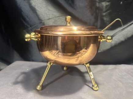 Miedziana Waza z Pokrywką i Chochlą – Ozdobna, na Mosiężnych Nóżkach