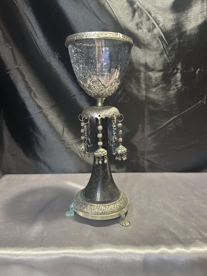 Zdobiony Kielich ze Szkłem Popękanym i Mosiężnymi Elementami