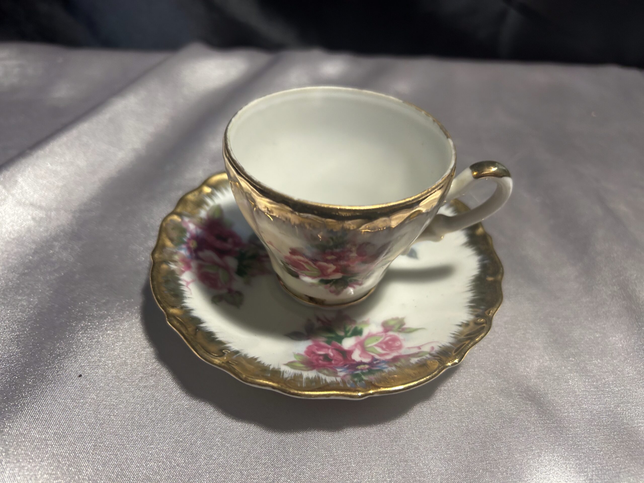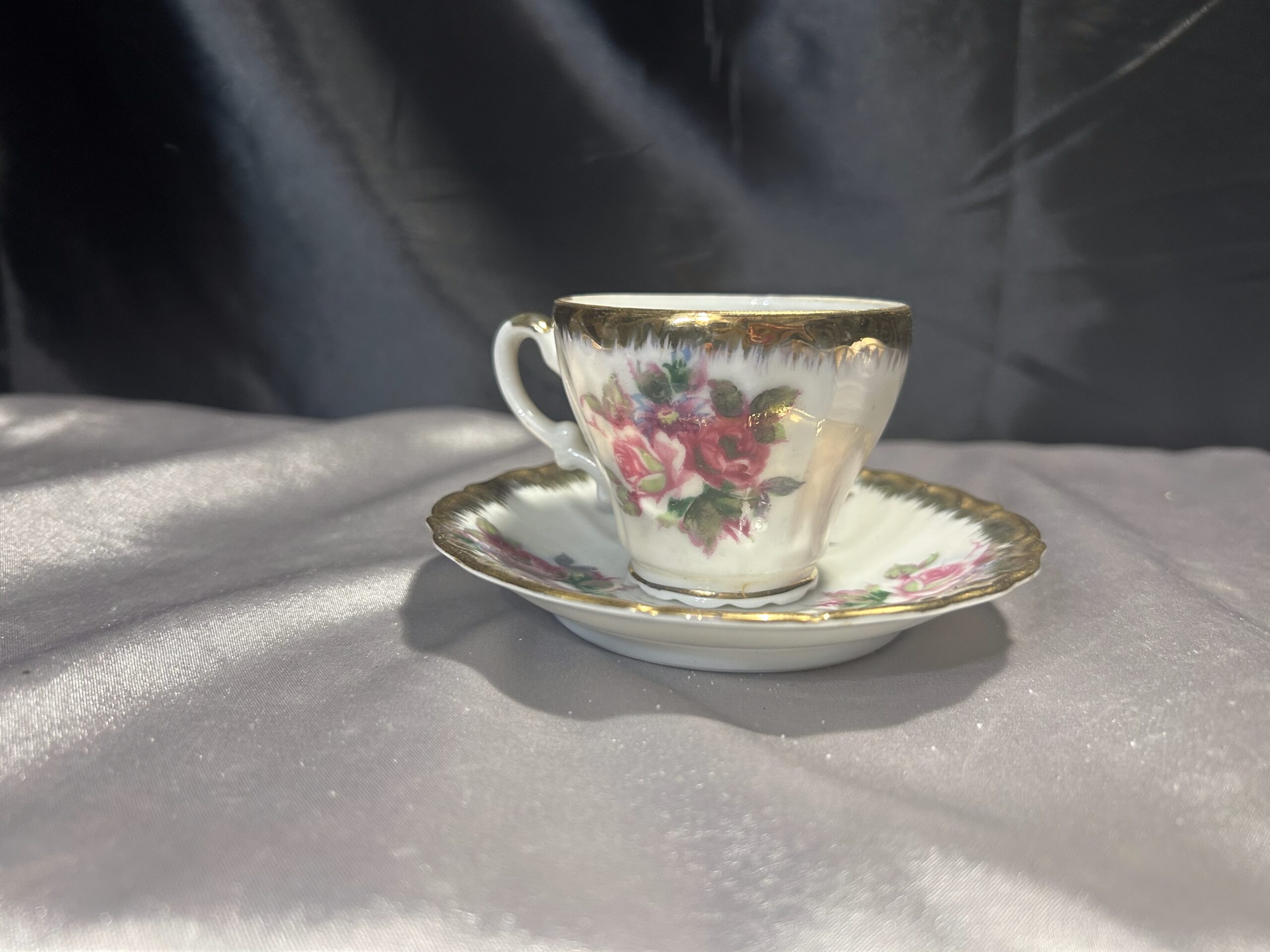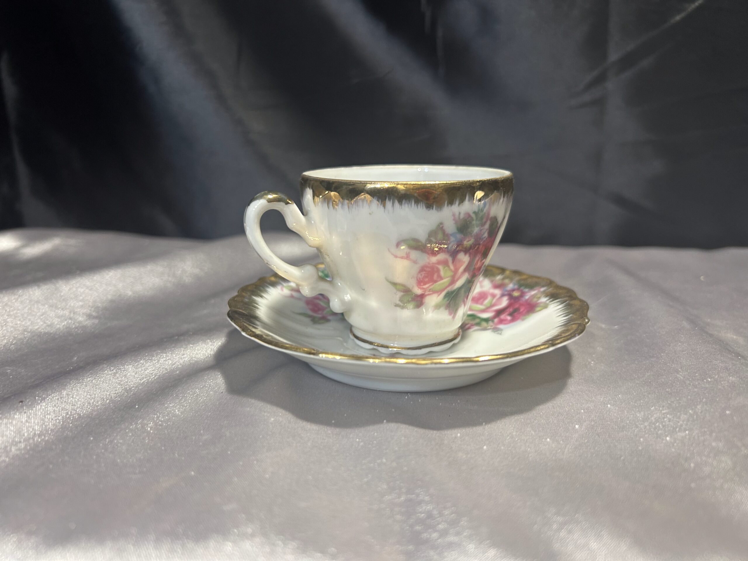 Filiżanka z Podstawką – Delikatna Porcelana z Ręcznie Malowanymi Kwiatami