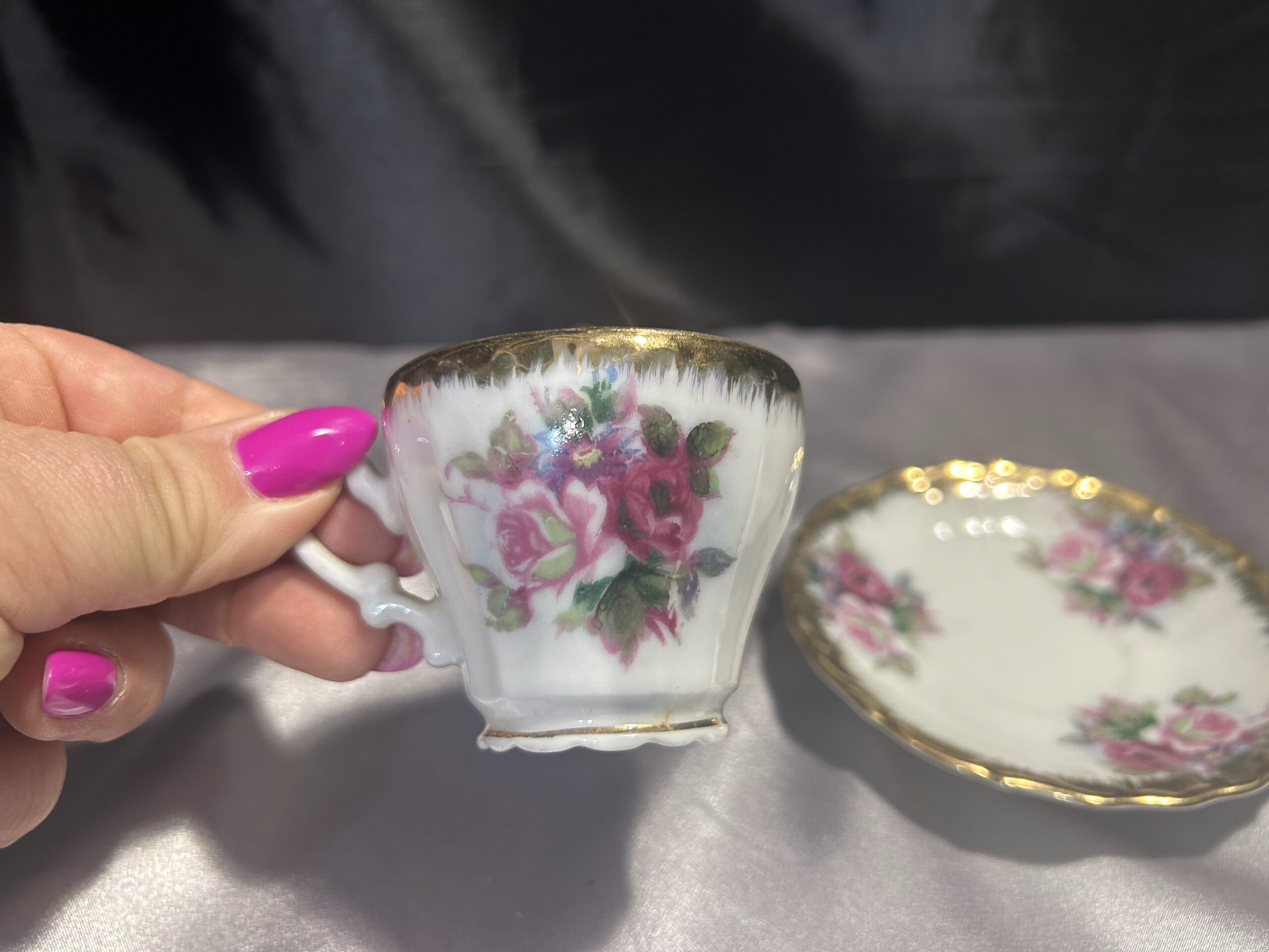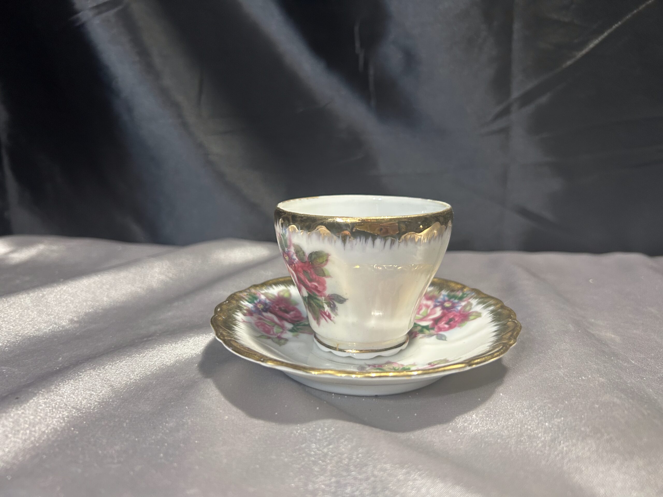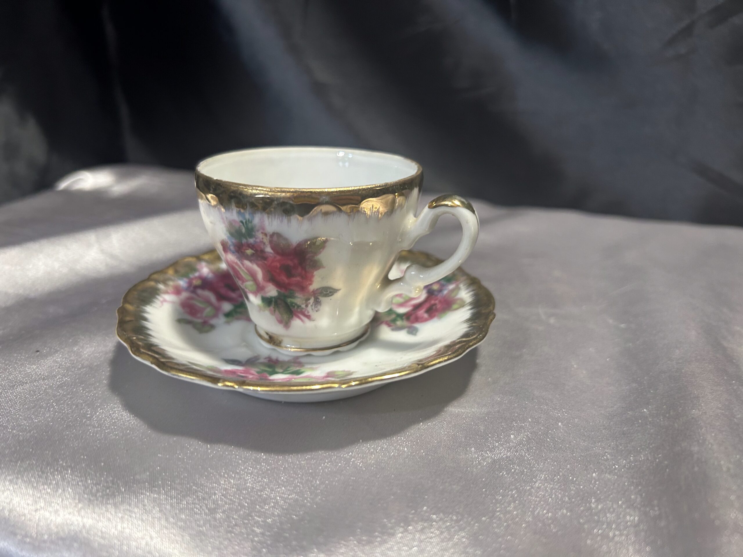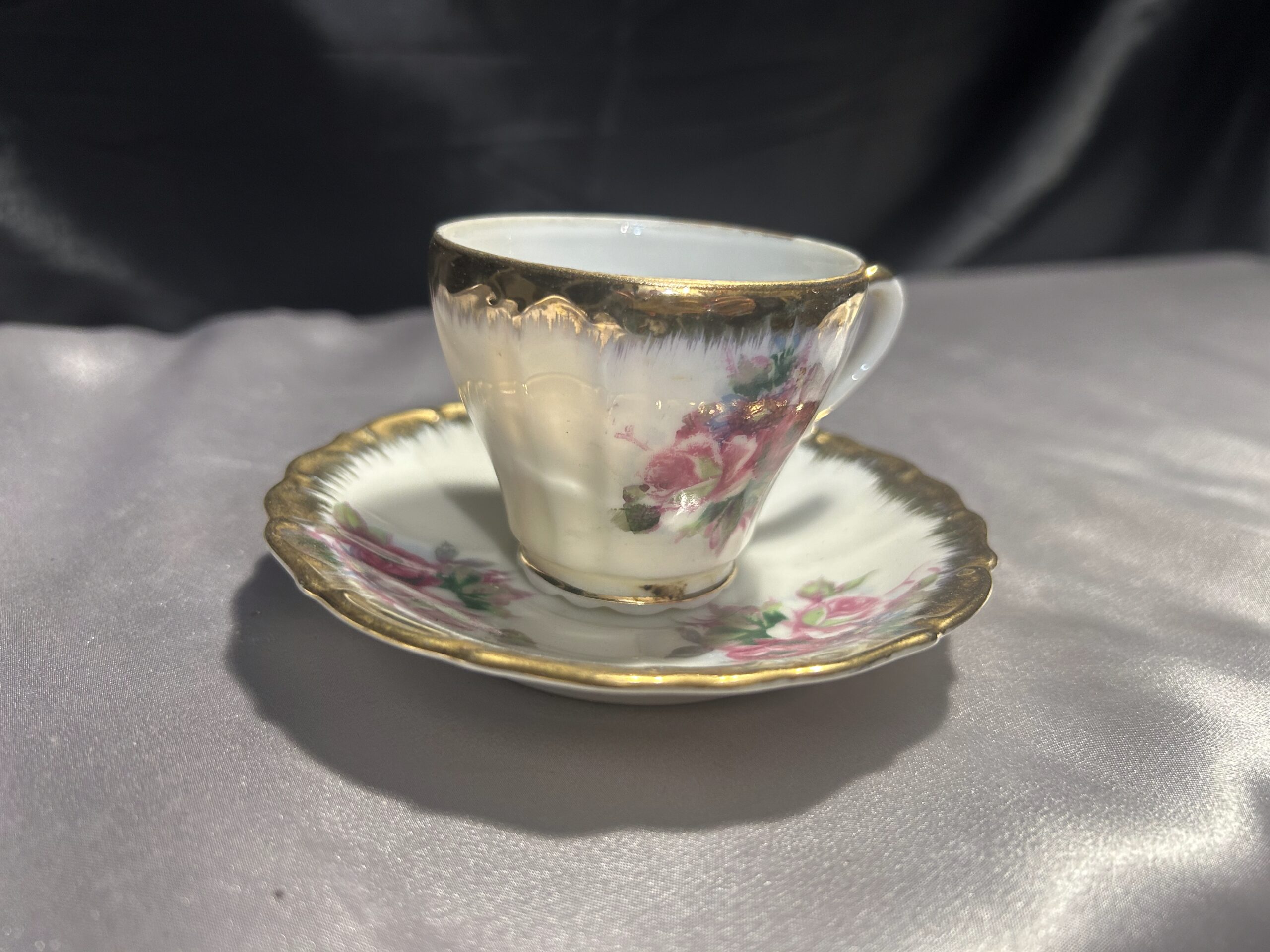 Filiżanka z Podstawką – Delikatna Porcelana z Ręcznie Malowanymi Kwiatami