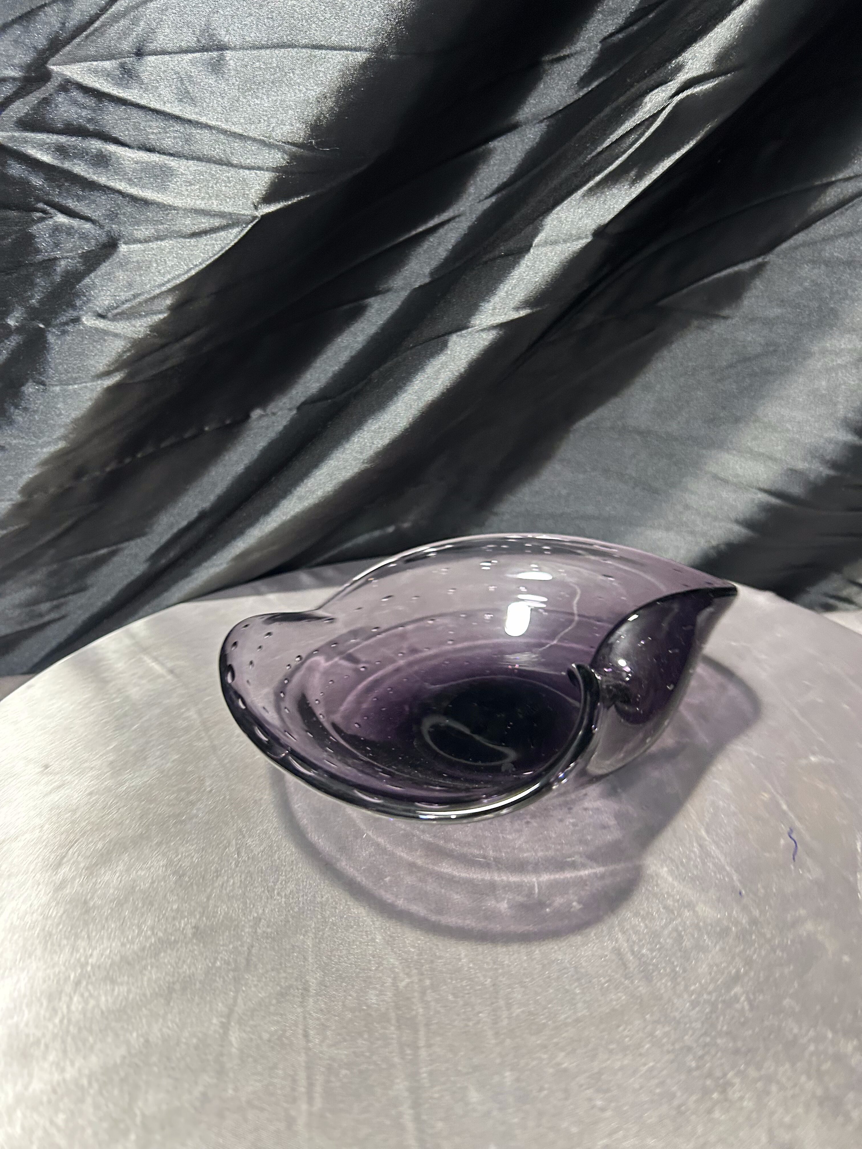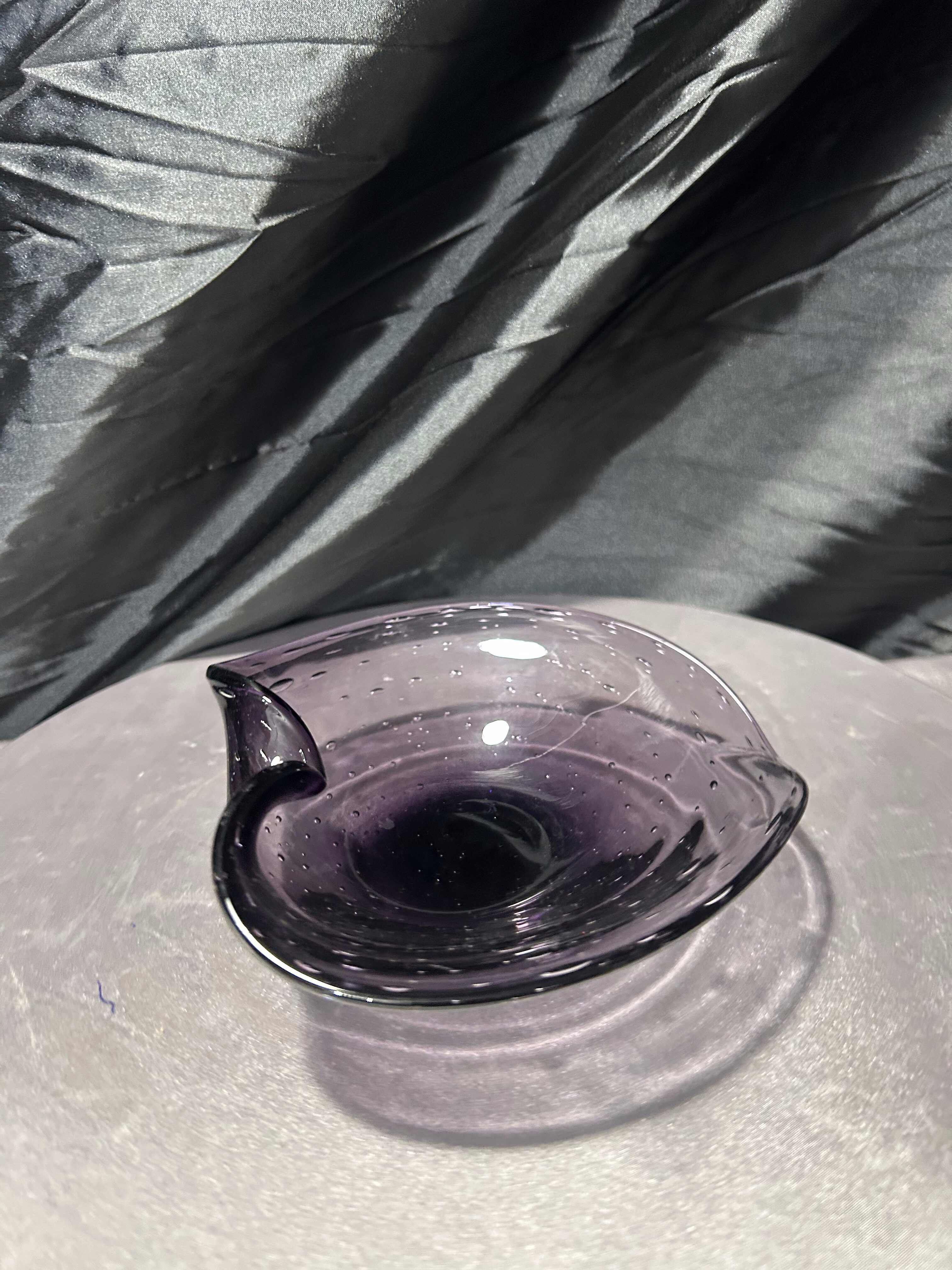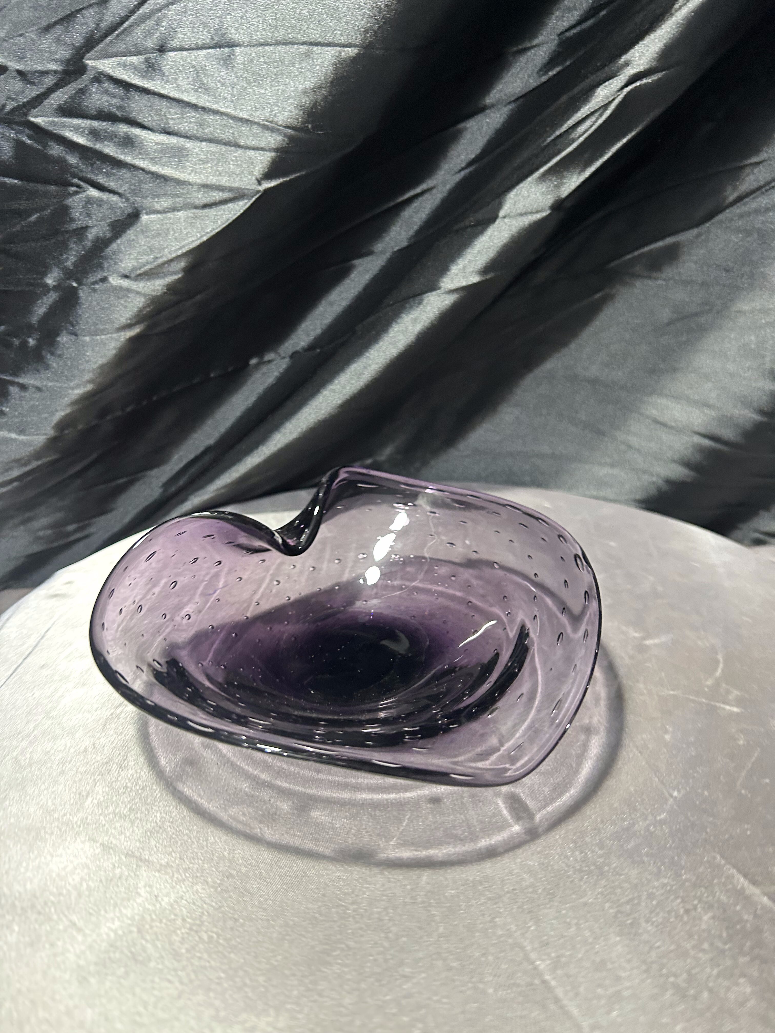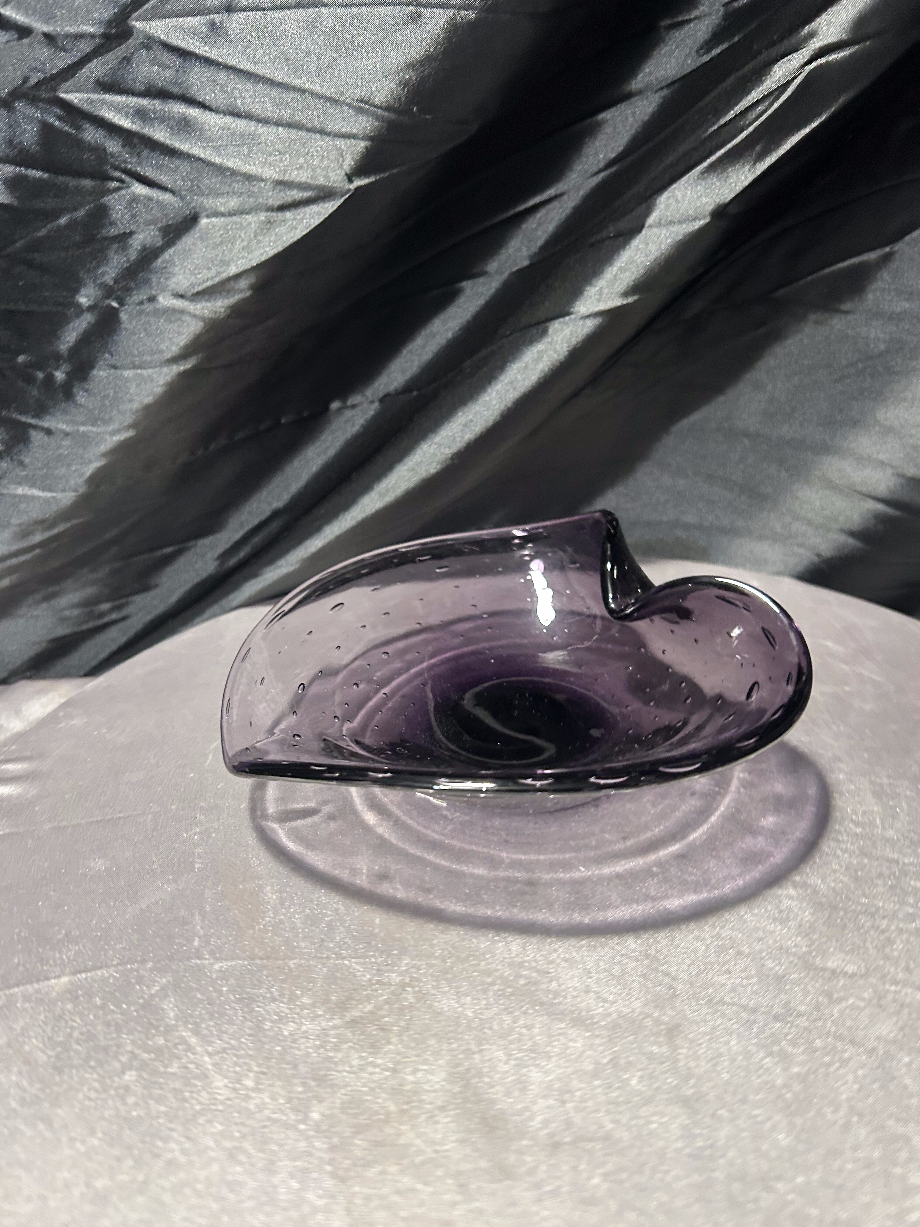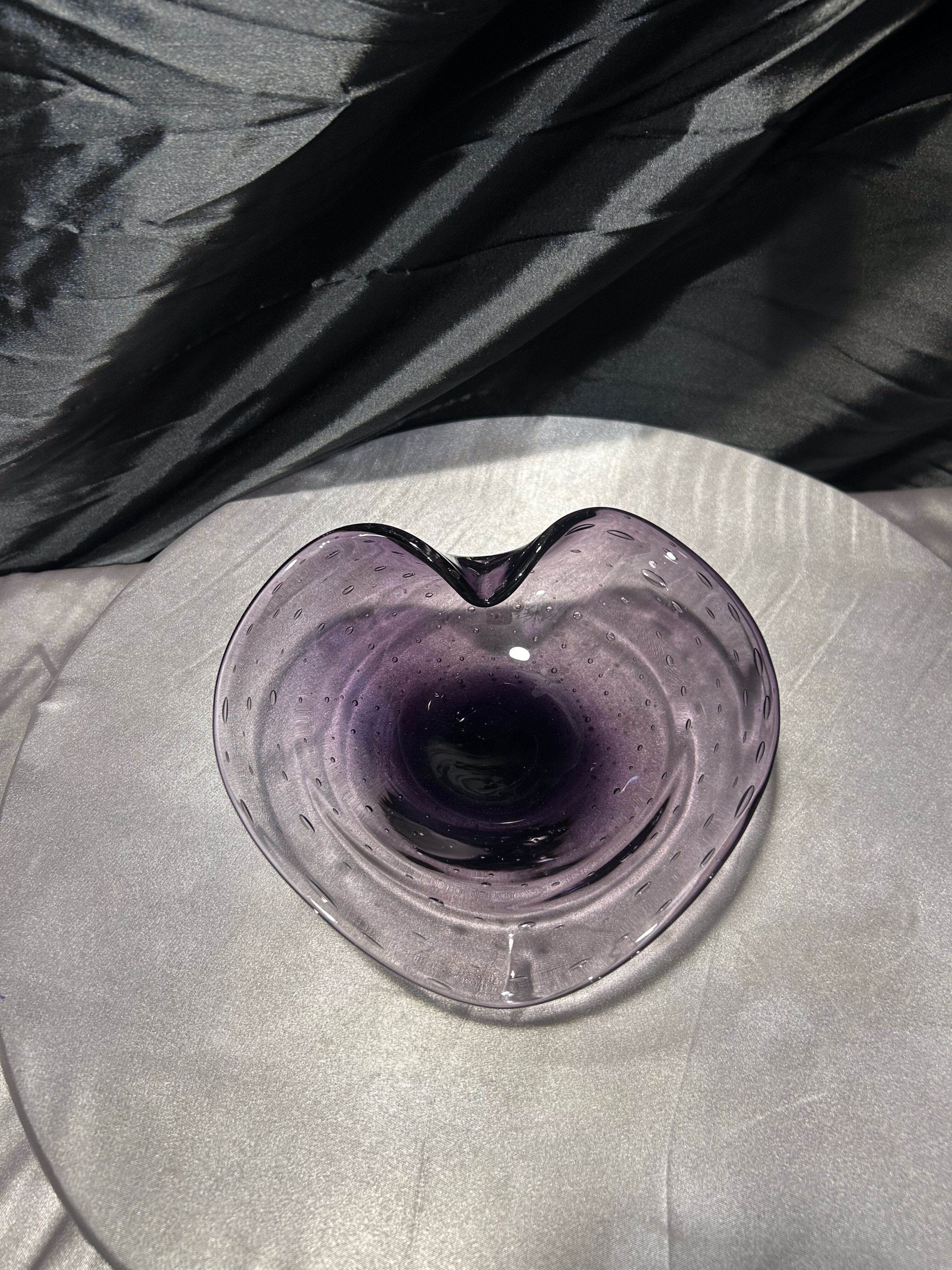- Fioletowa misa Murano w kształcie serca – szkło artystyczne z pęcherzykami powietrza