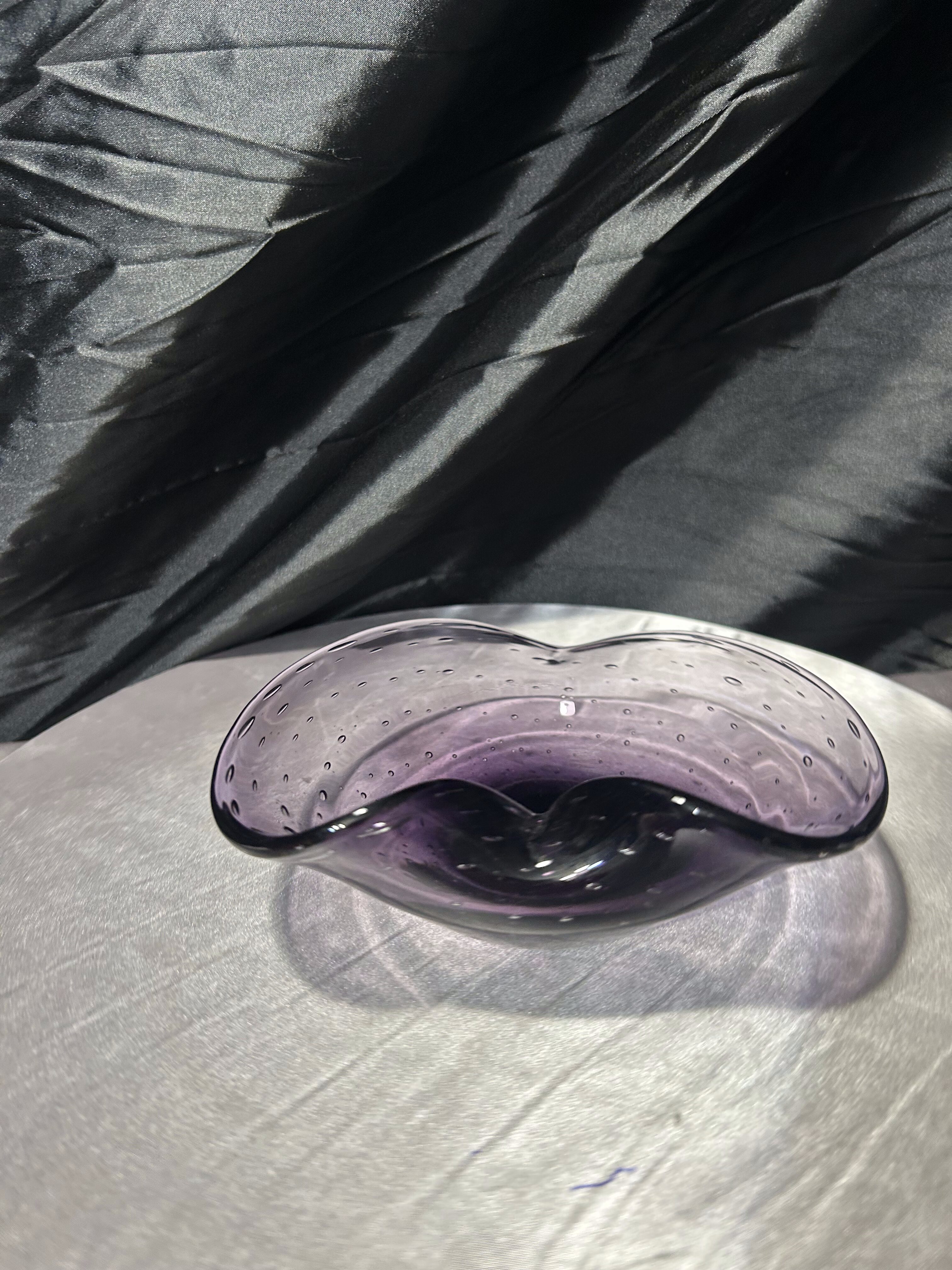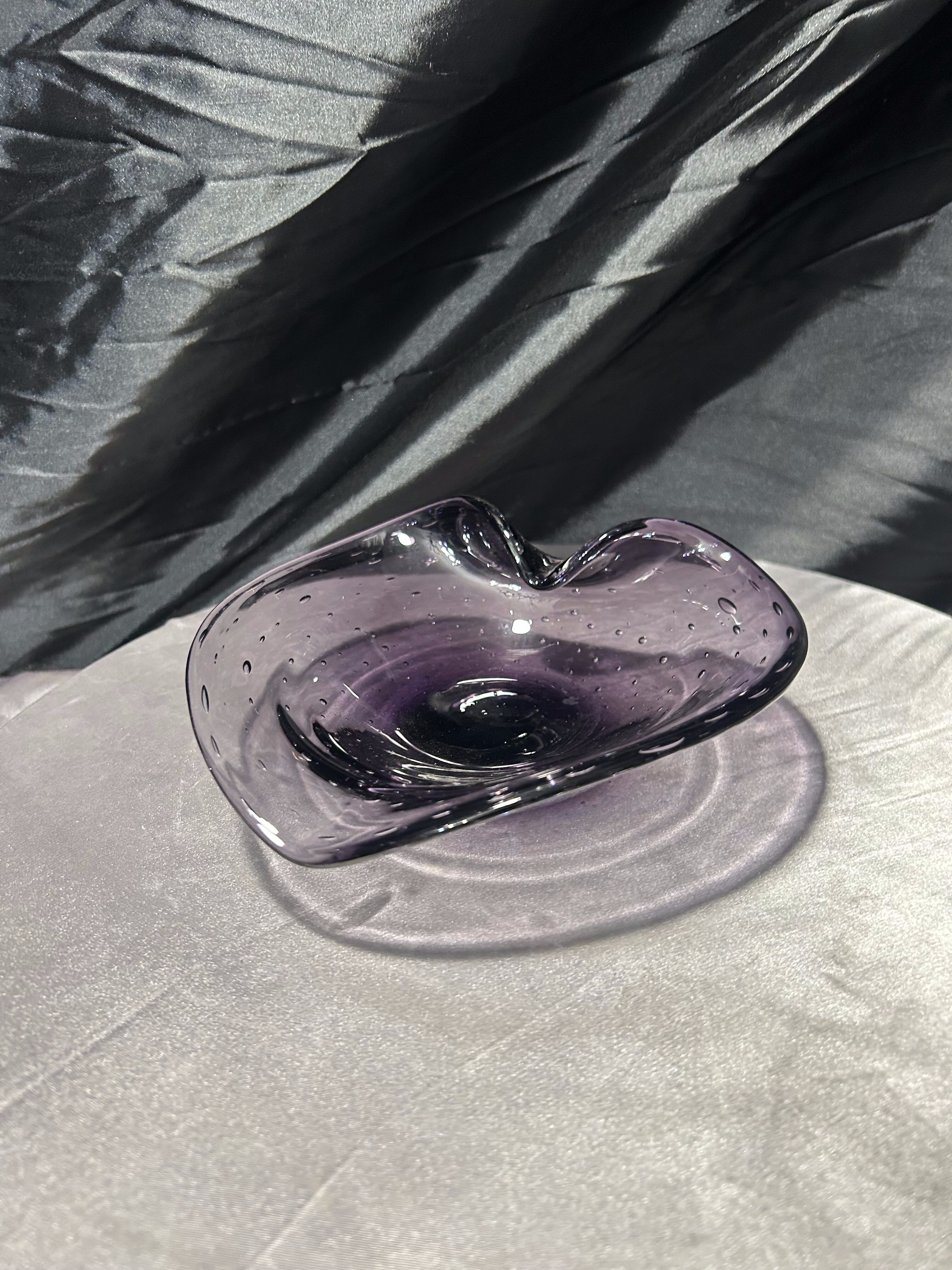 Fioletowa misa Murano w kształcie serca – szkło artystyczne z pęcherzykami powietrza