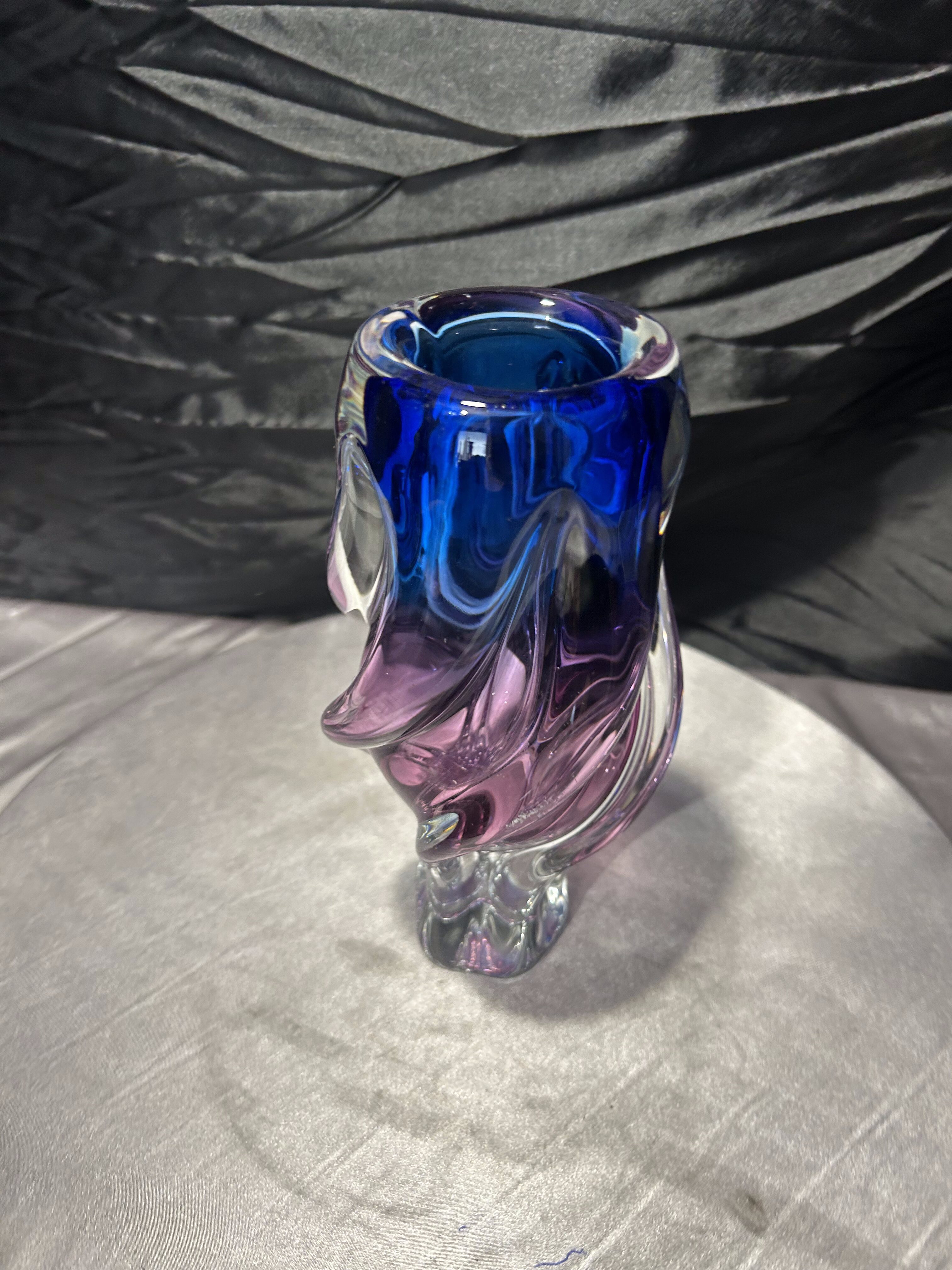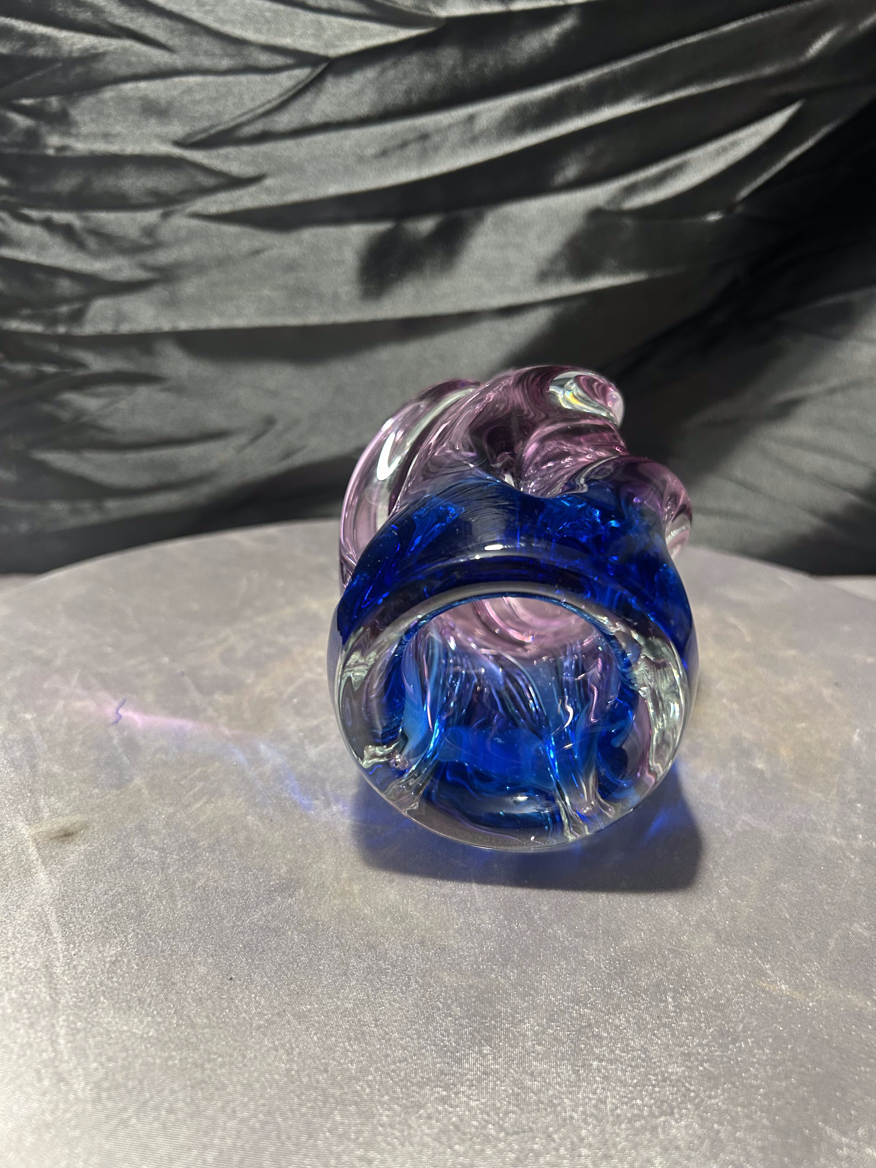 To elegancki element dekoracyjny o wyrazistym charakterze, łączący kunszt hutniczy z ponadczasową estetyką szkła artystycznego. Jego głębokie barwy i rzeźbiarska forma sprawiają, że stanie się centralnym punktem każdej kompozycji wnętrza.