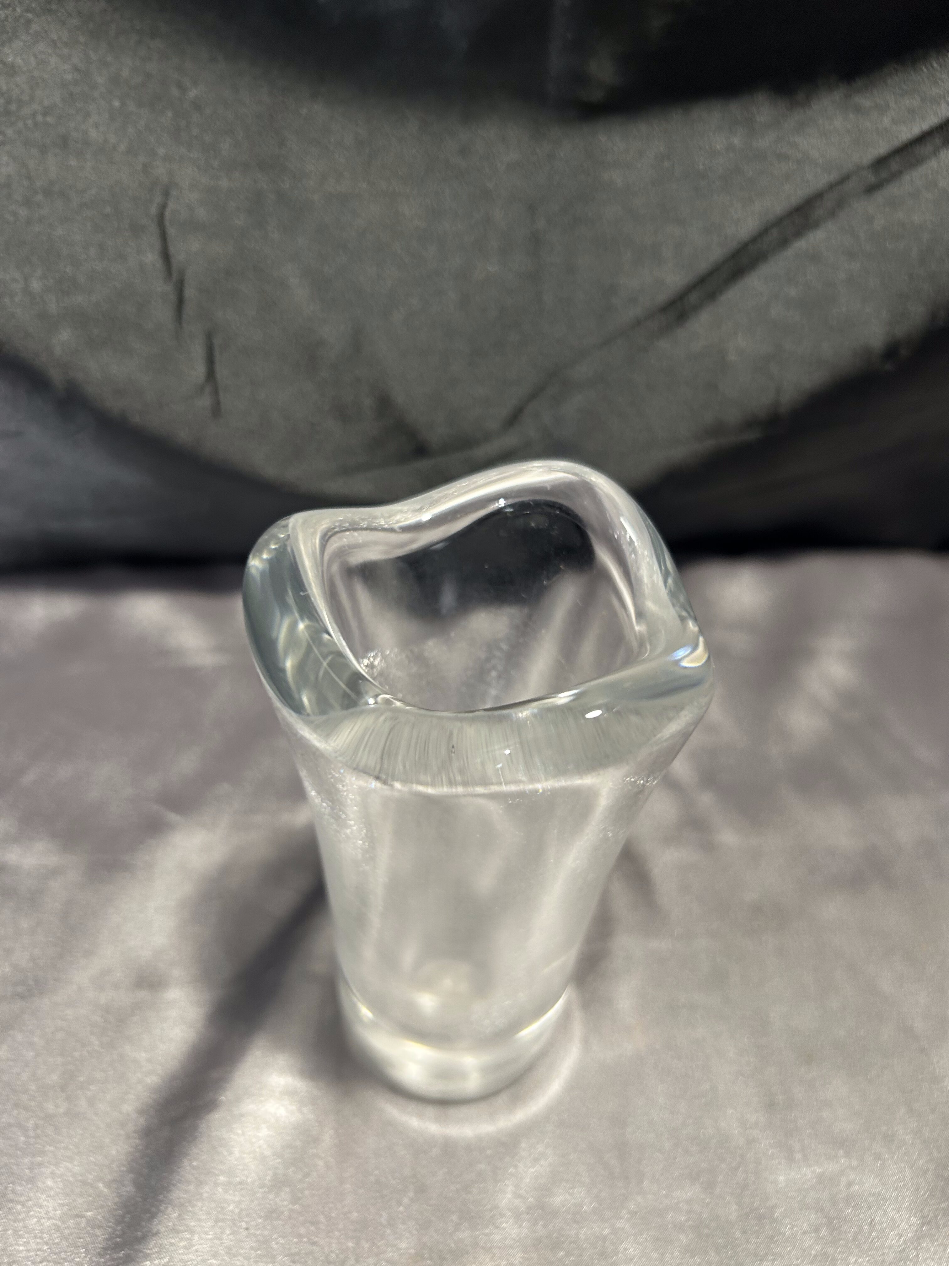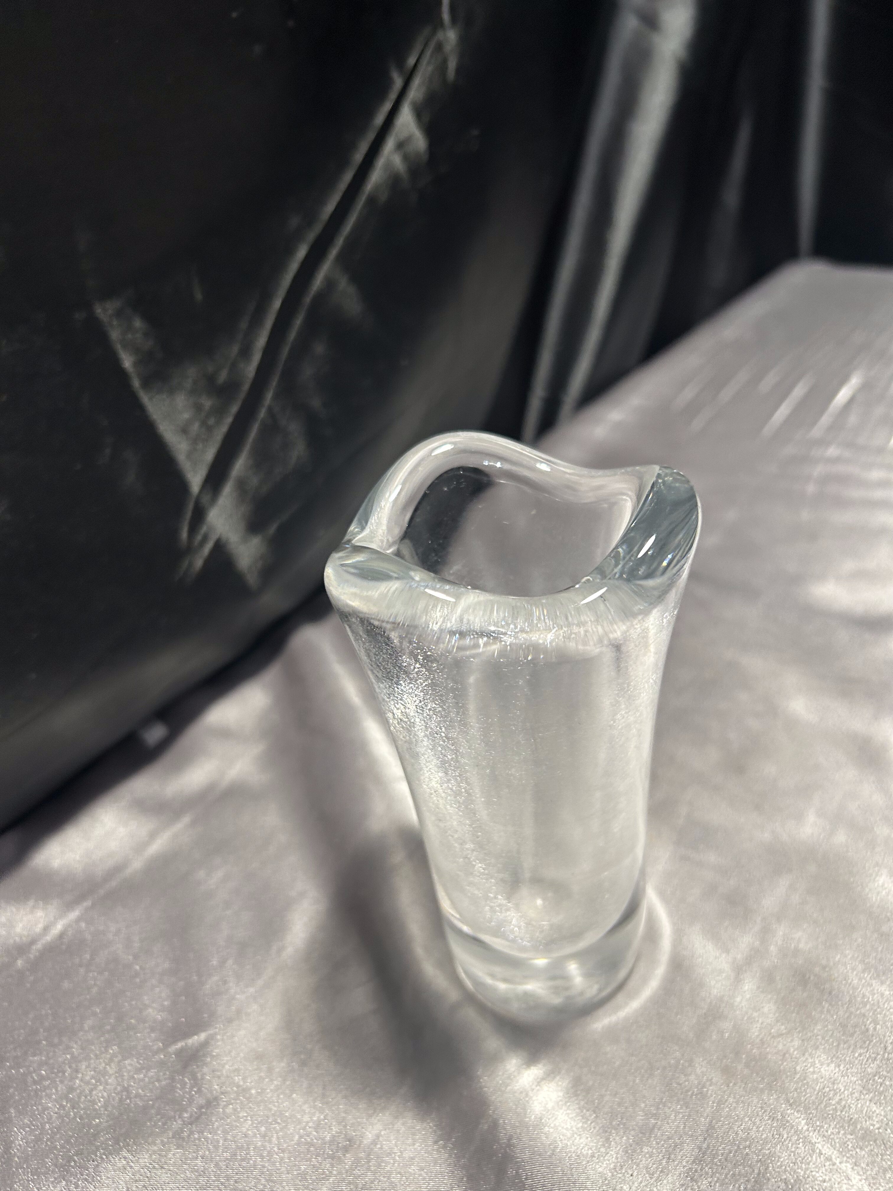 Elegancki flakon wykonany z grubego, solidnego szkła w stylu Murano. Zgrabna, nieregularna forma o falującym brzegu nadaje mu lekkości i charakteru. Połączenie przezroczystego szkła z częściowo matową powierzchnią tworzy intrygujący kontrast, który pięknie odbija światło.