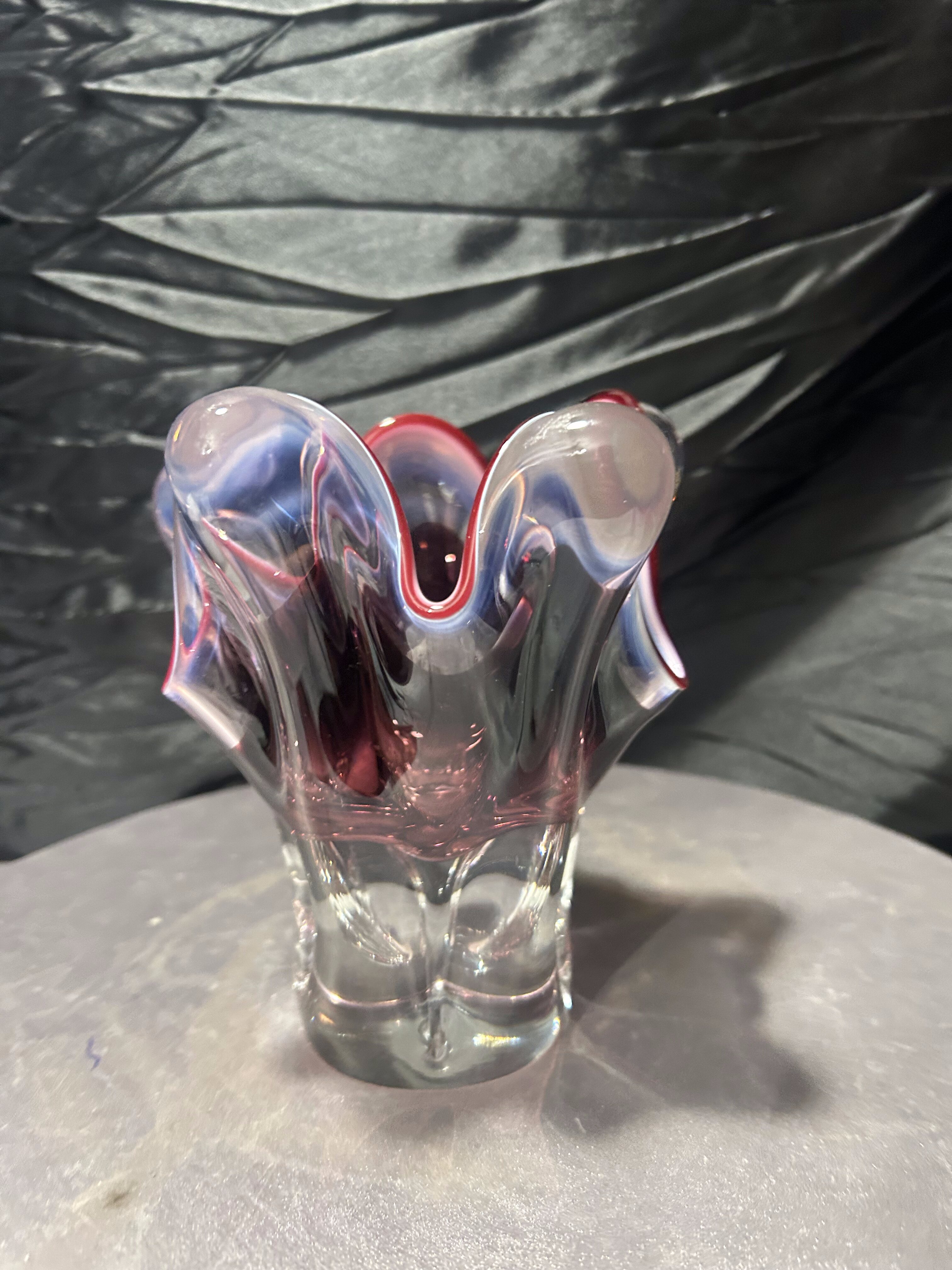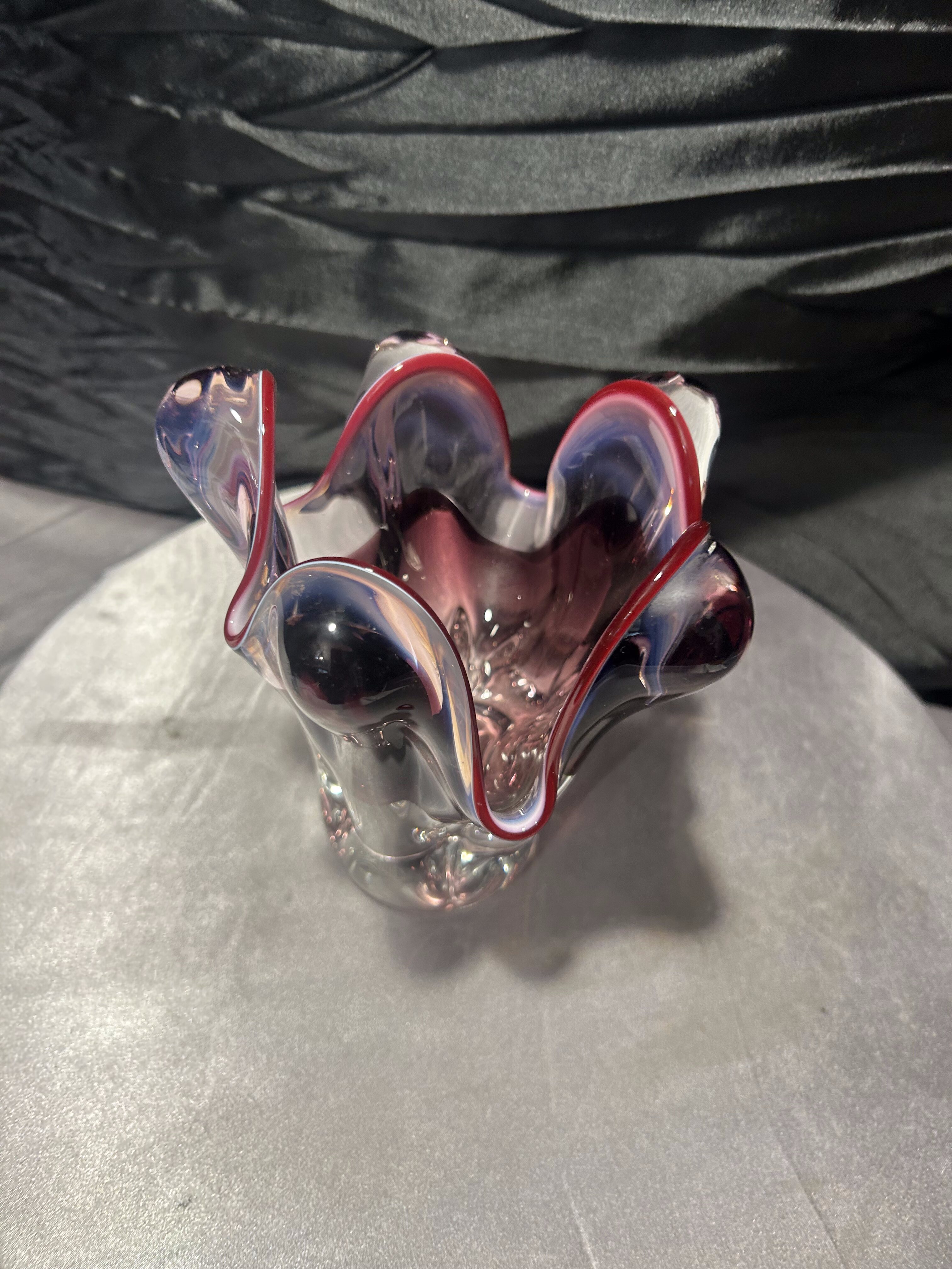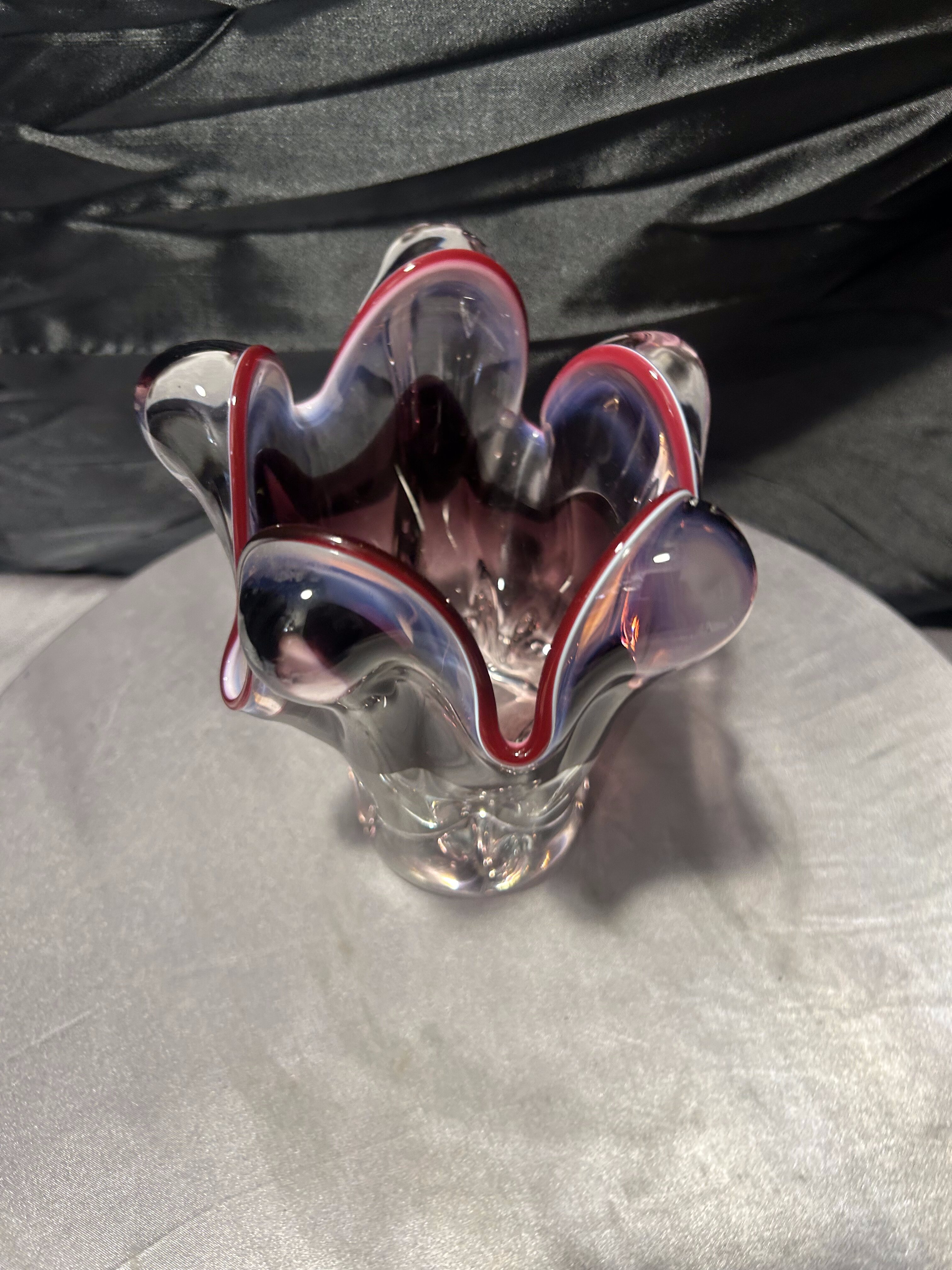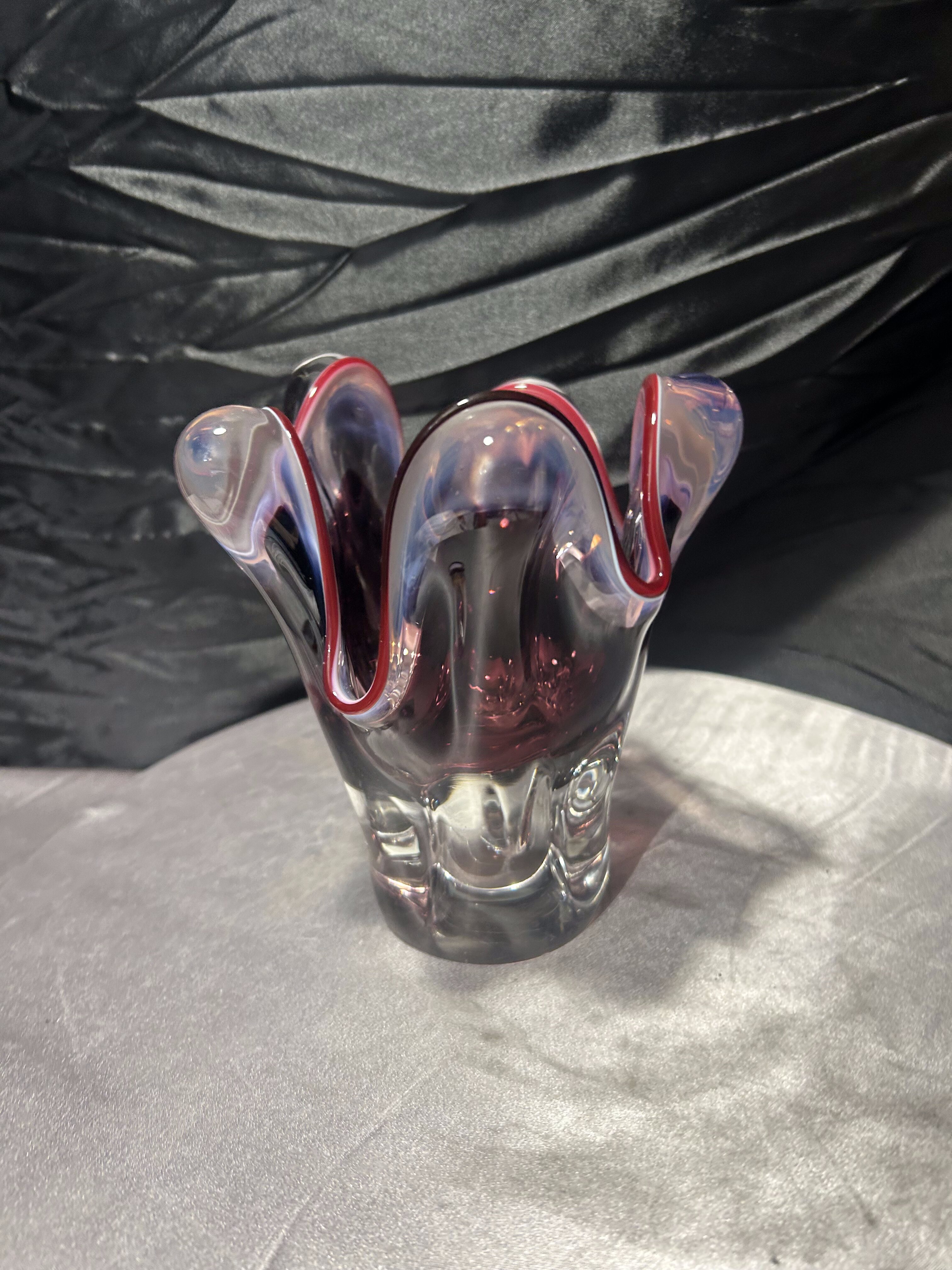 - Flakon Murano – szkło artystyczne – falowana forma – rubinowa krawędź