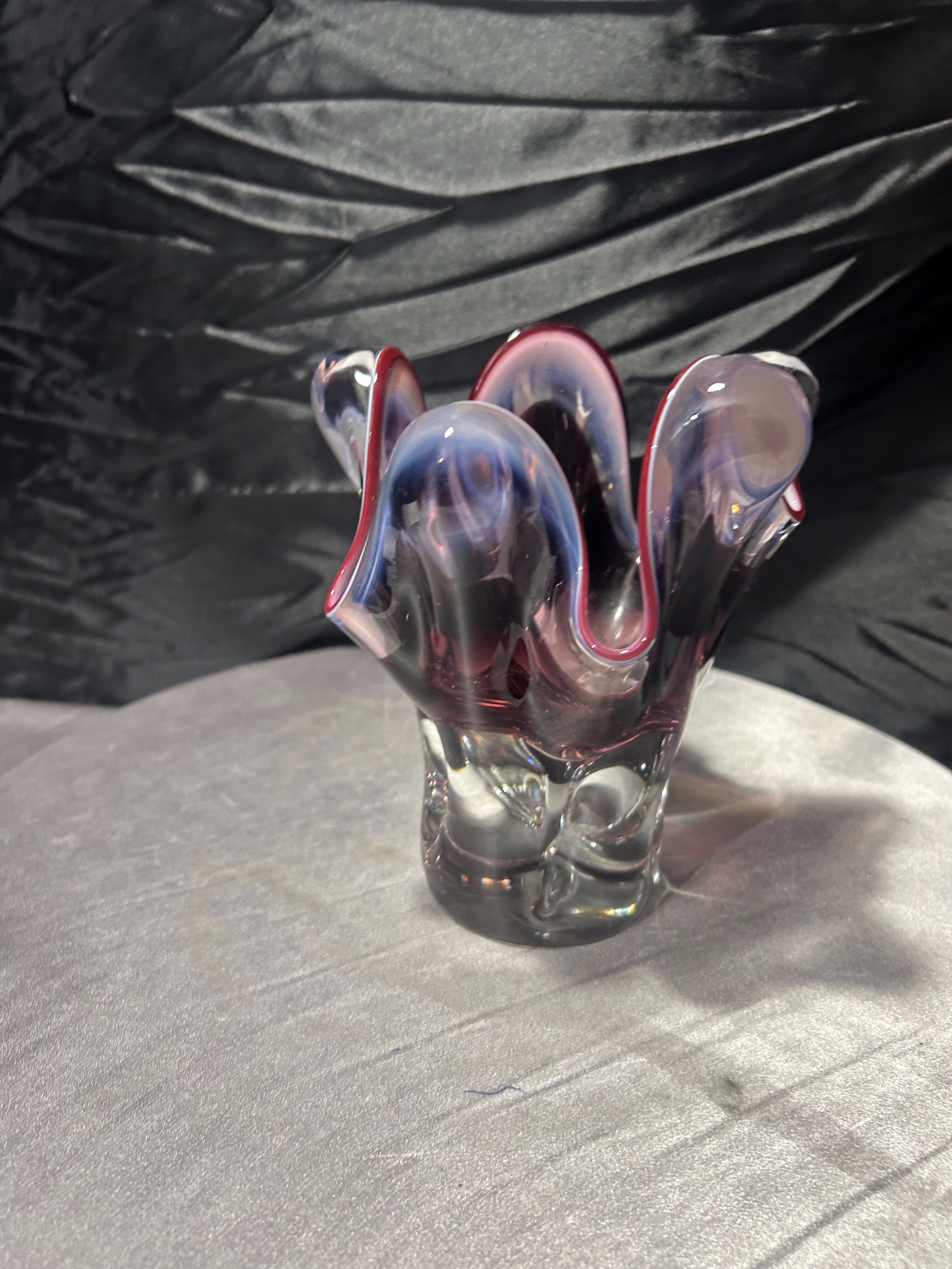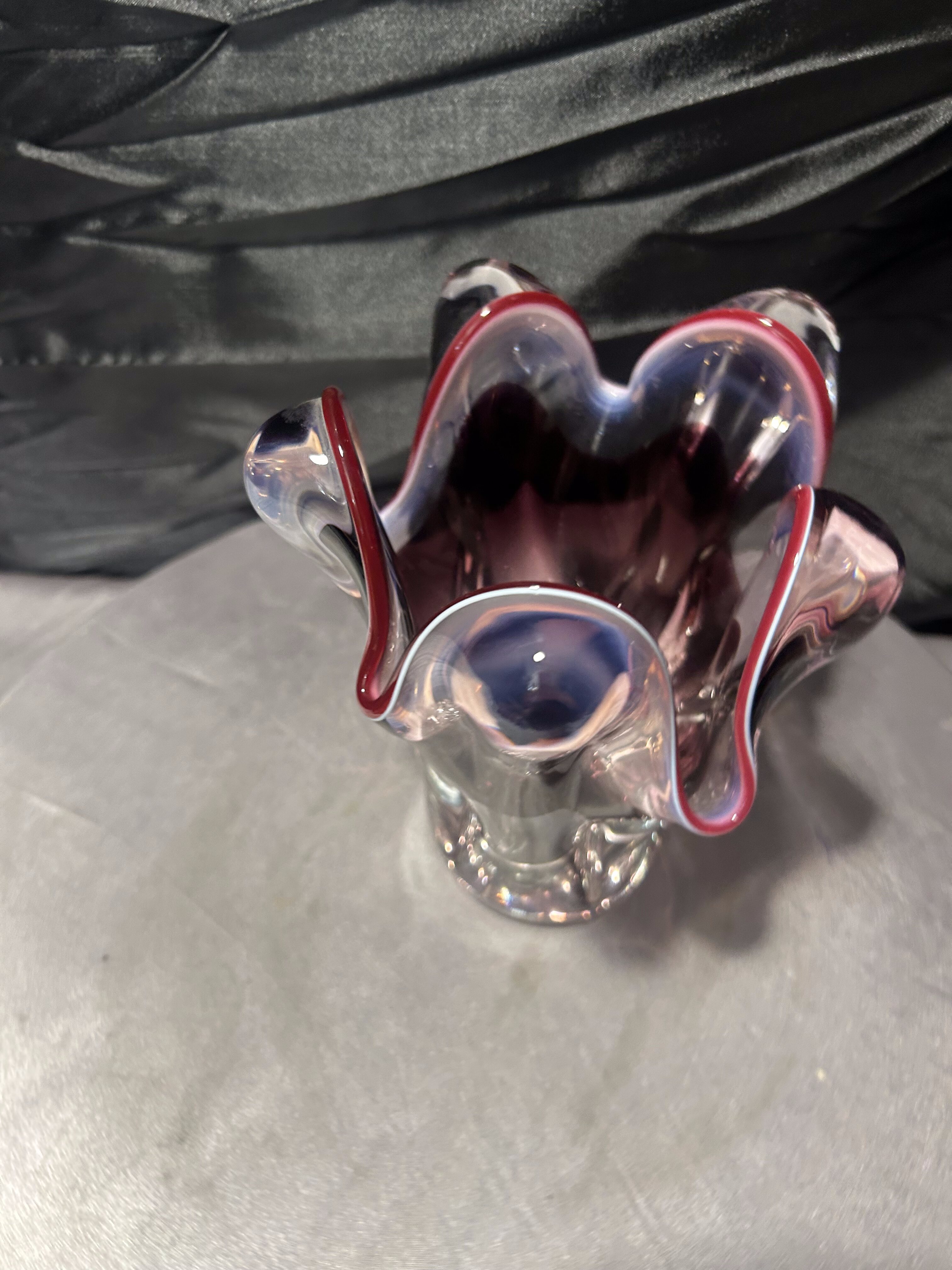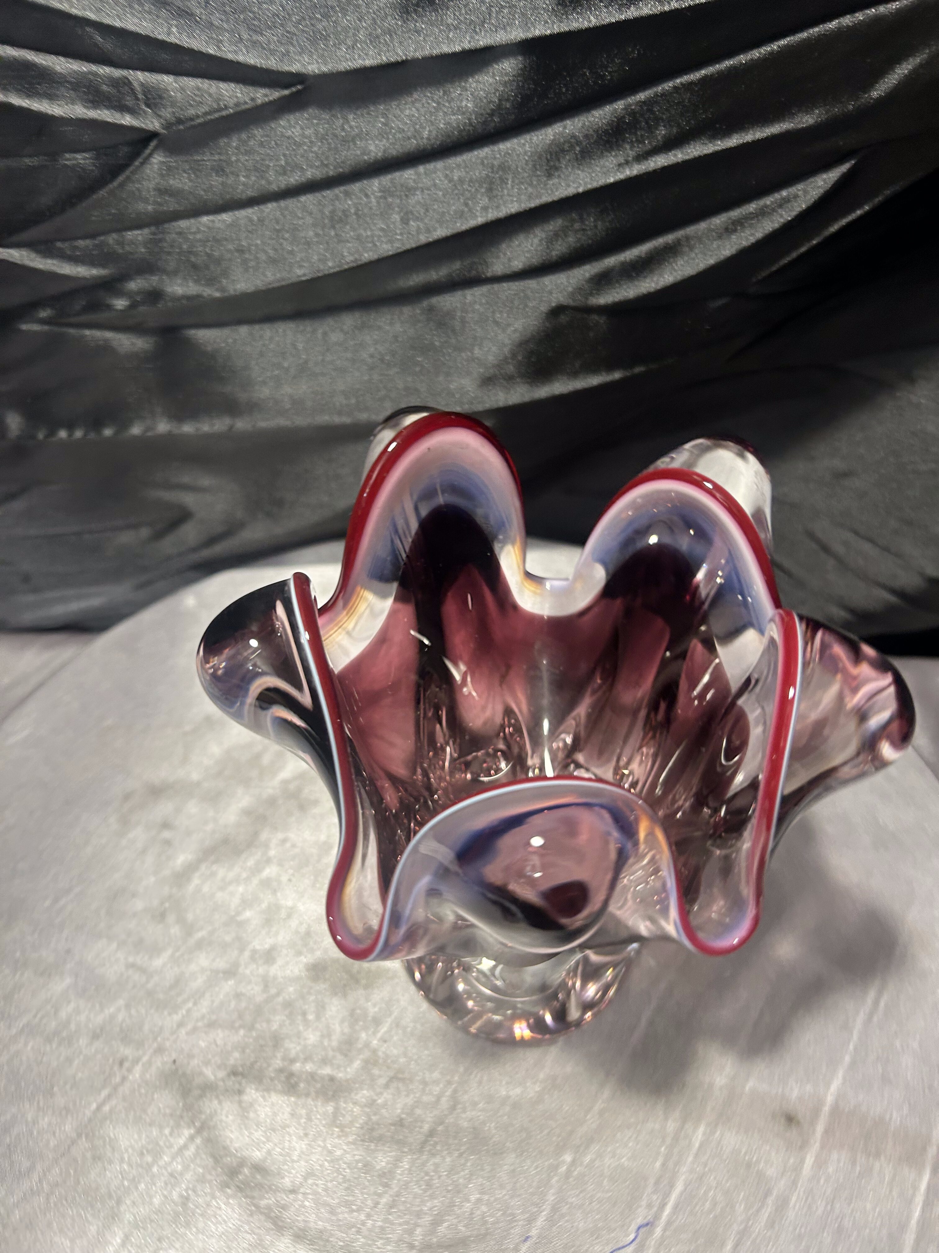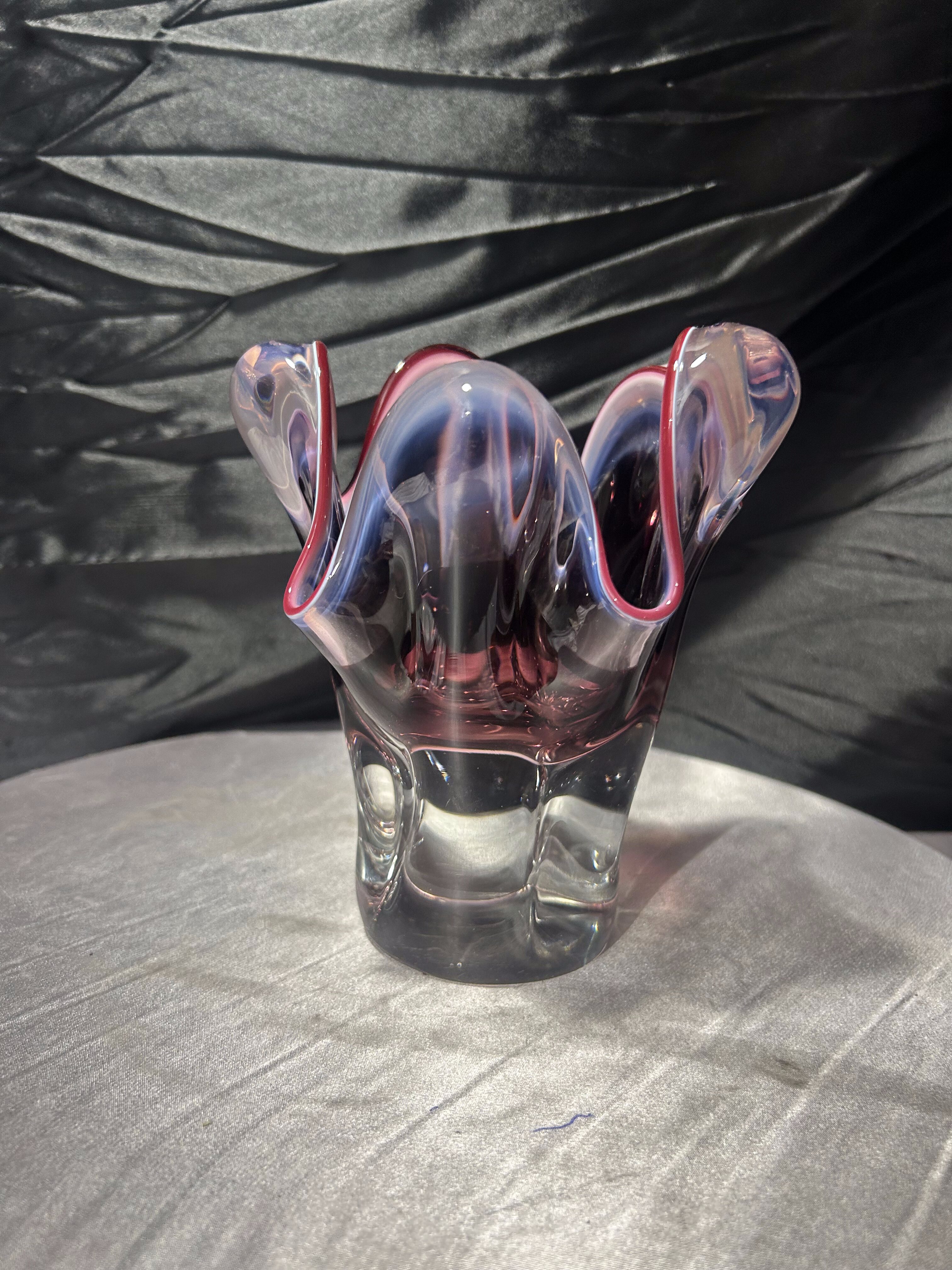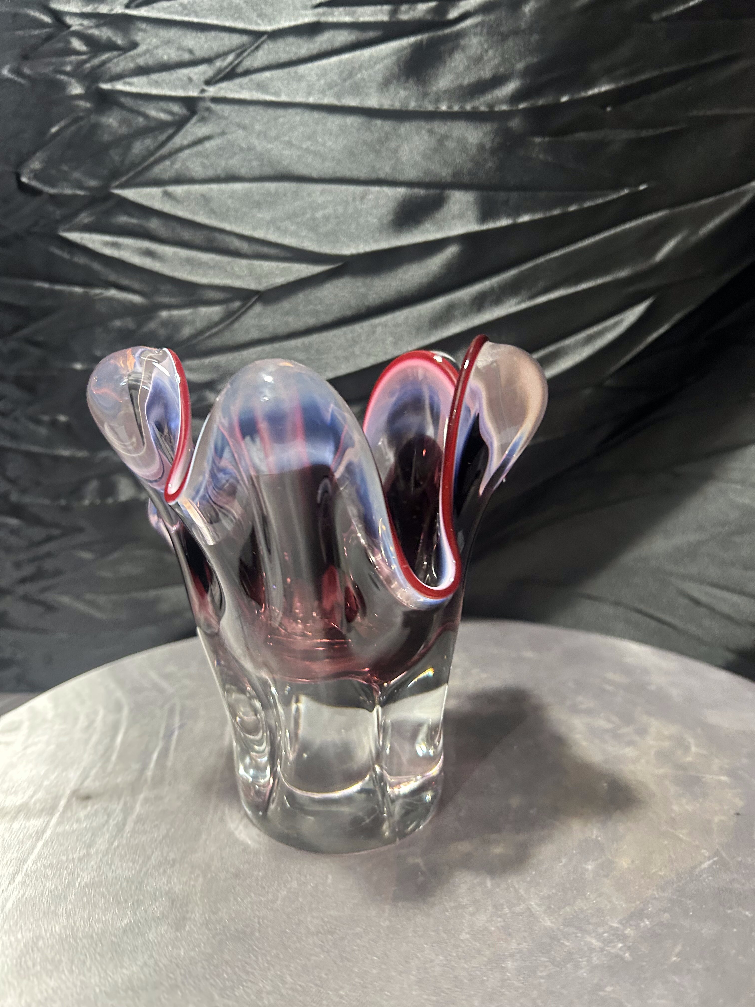 - Flakon Murano – szkło artystyczne – falowana forma – rubinowa krawędź