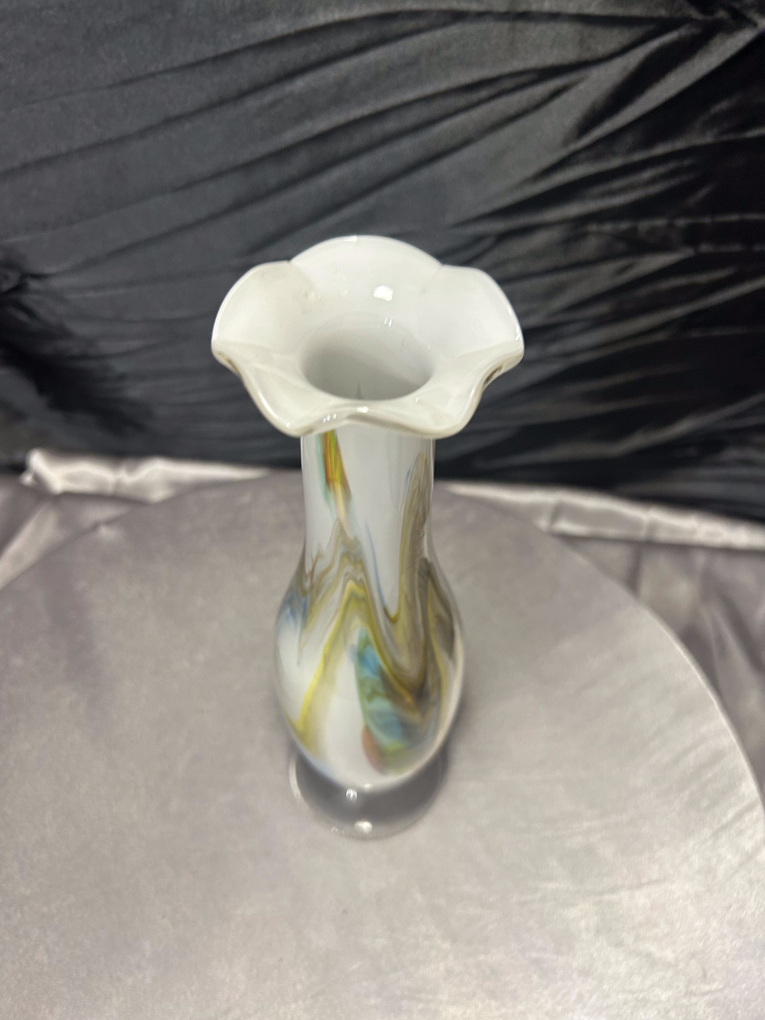 Flakon szklany artystyczny w stylu Murano – z falbanką i barwnymi smugami