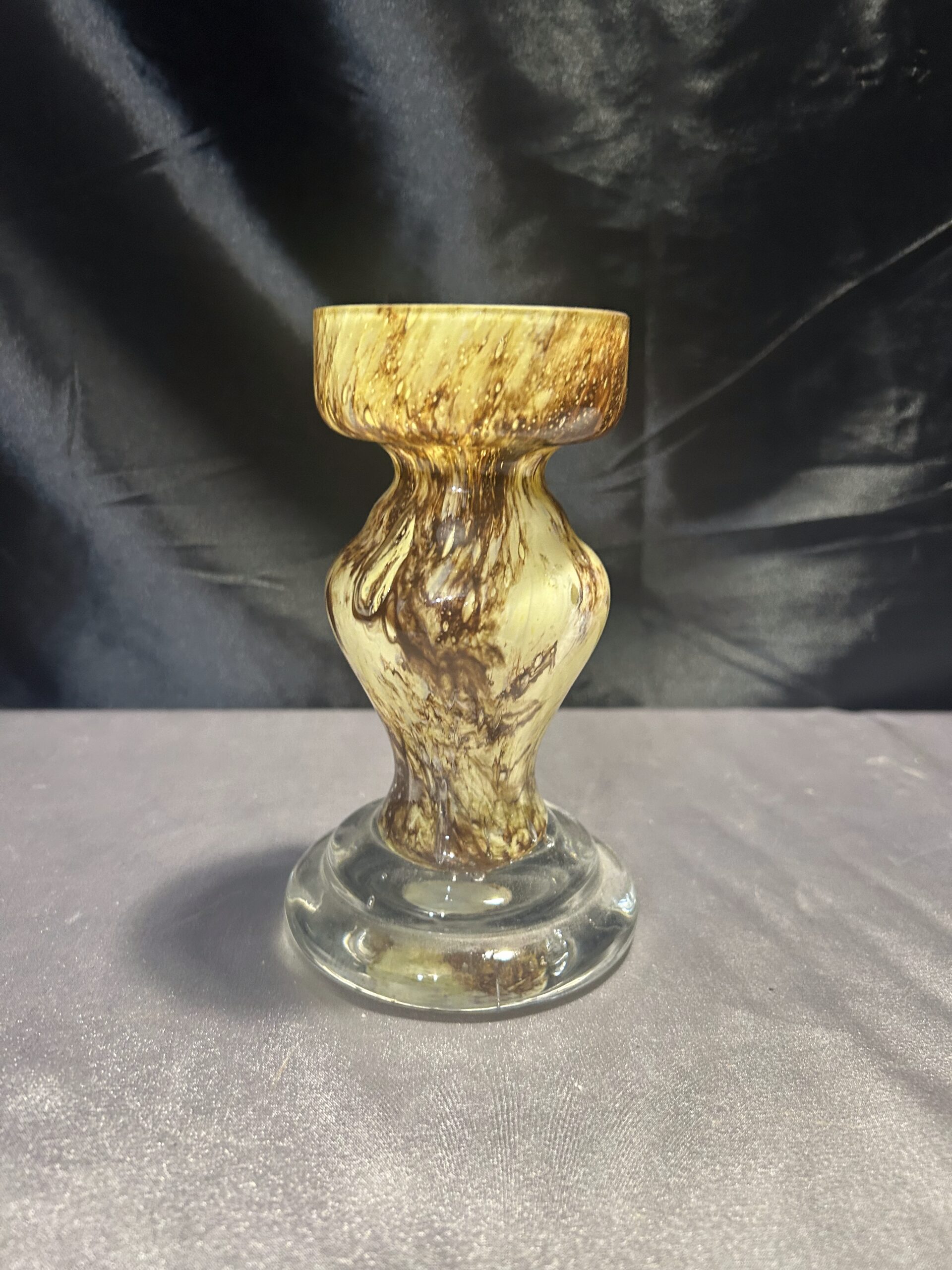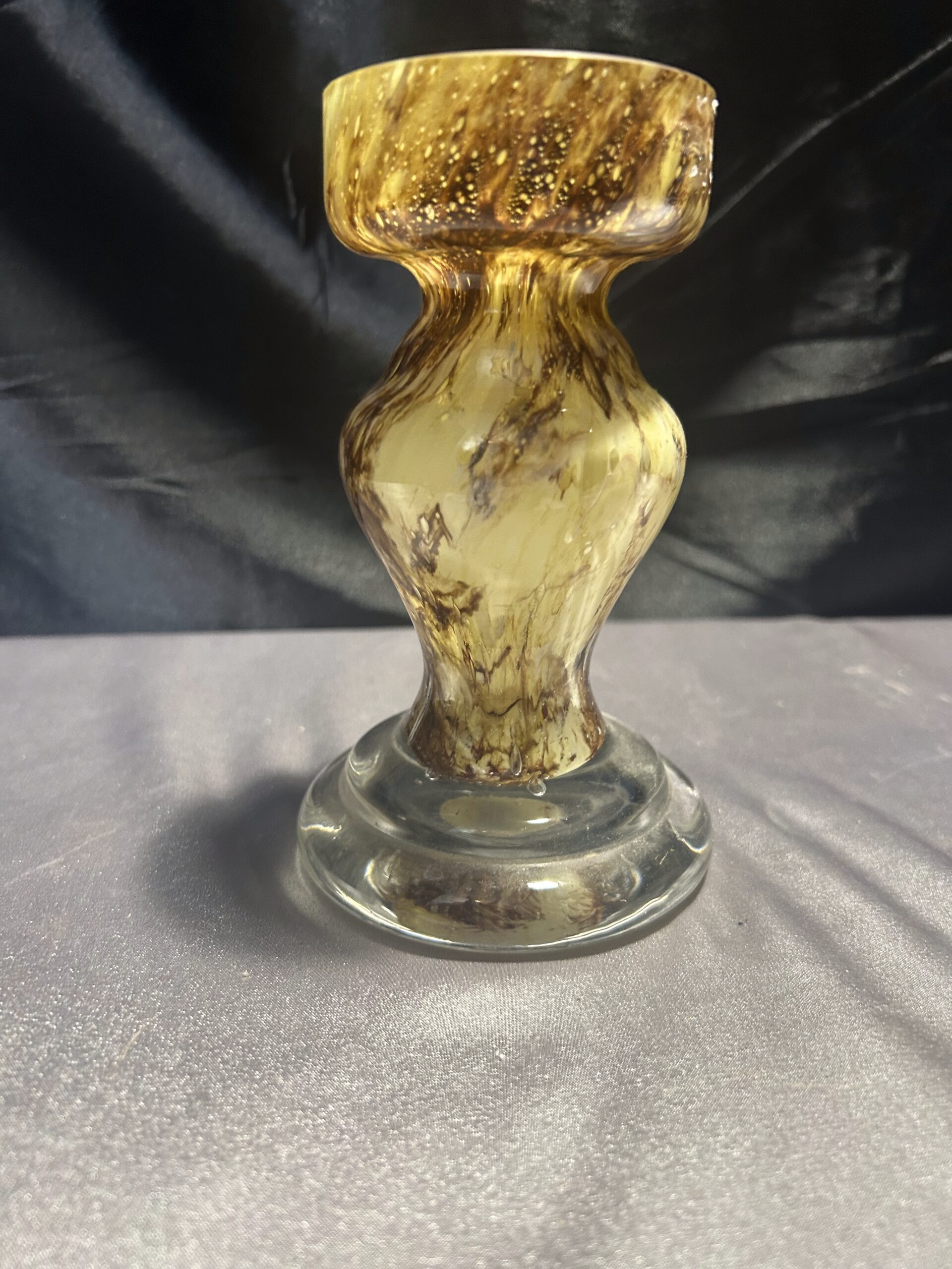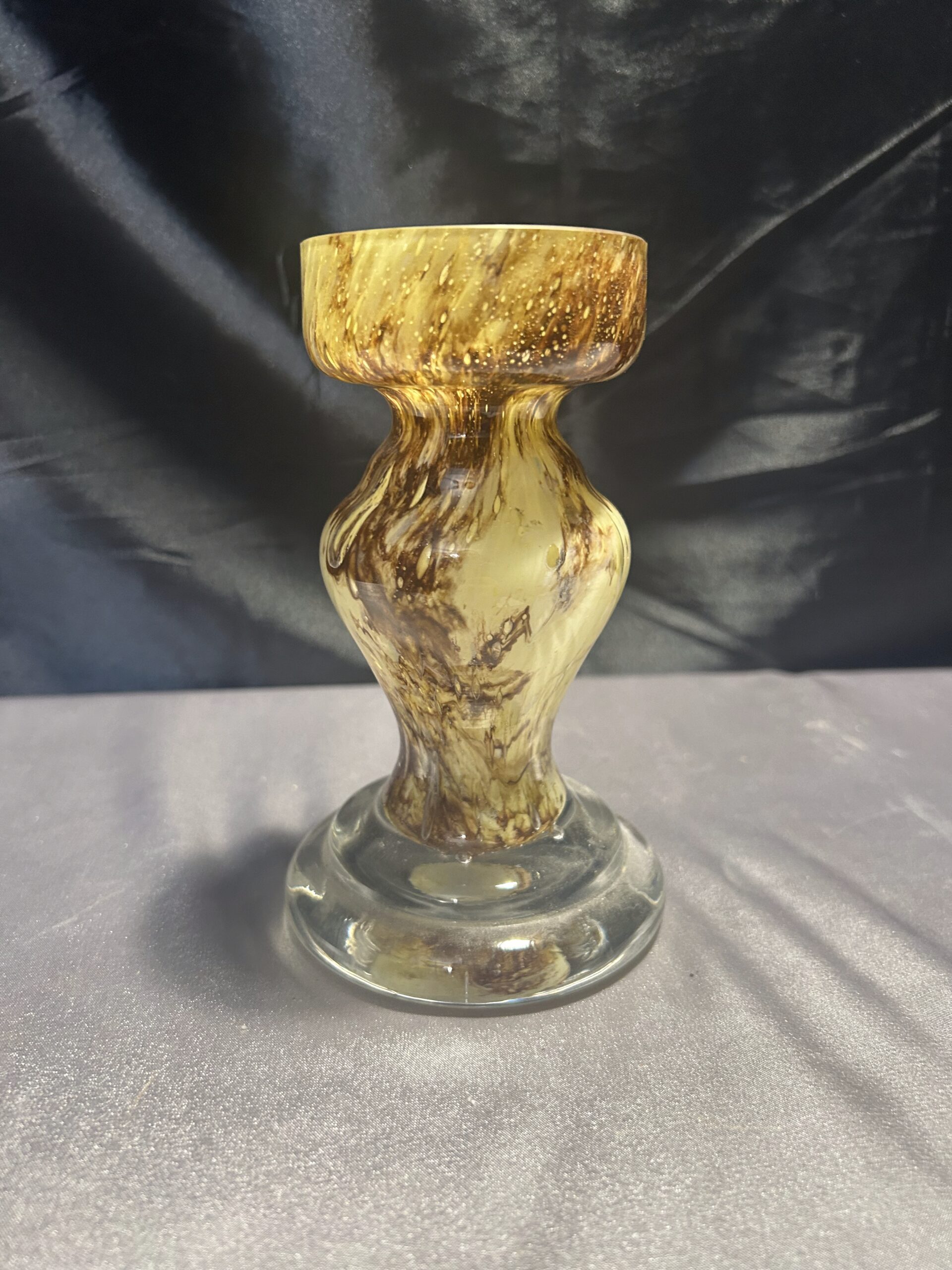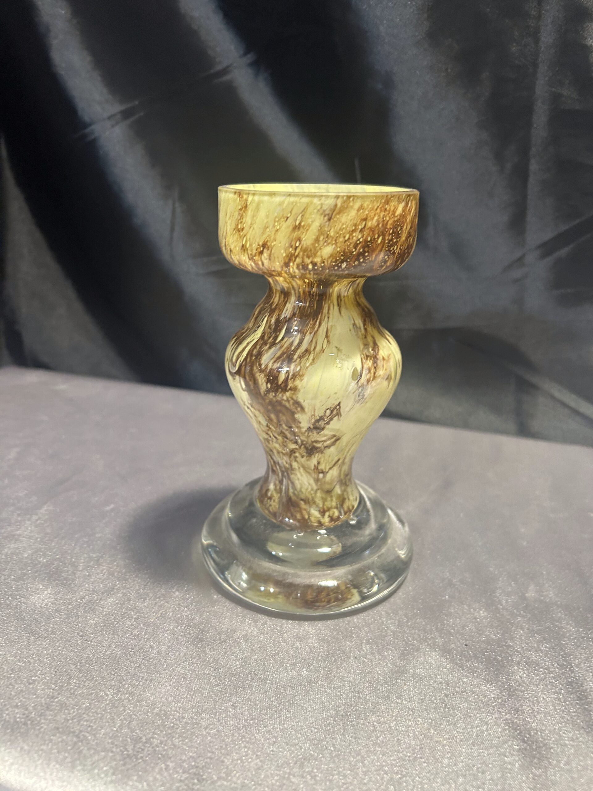 Wyjątkowy flakon/wazon wykonany z ręcznie robionego szkła, wyróżniający się pięknymi odcieniami brązu i beżu. Dzięki unikalnemu designowi i starannemu wykonaniu, idealnie nadaje się jako dekoracja stołu, komody lub parapetu.