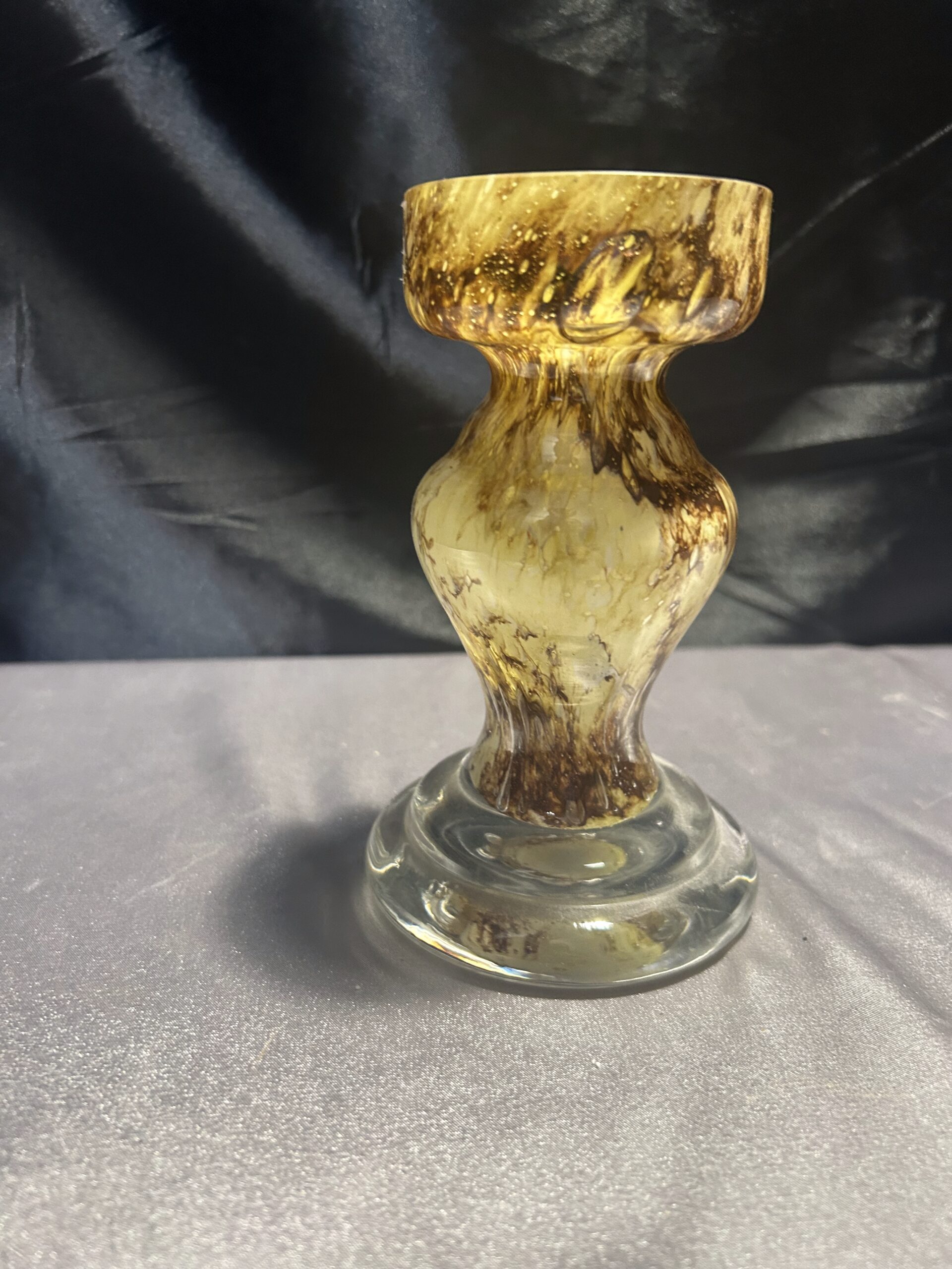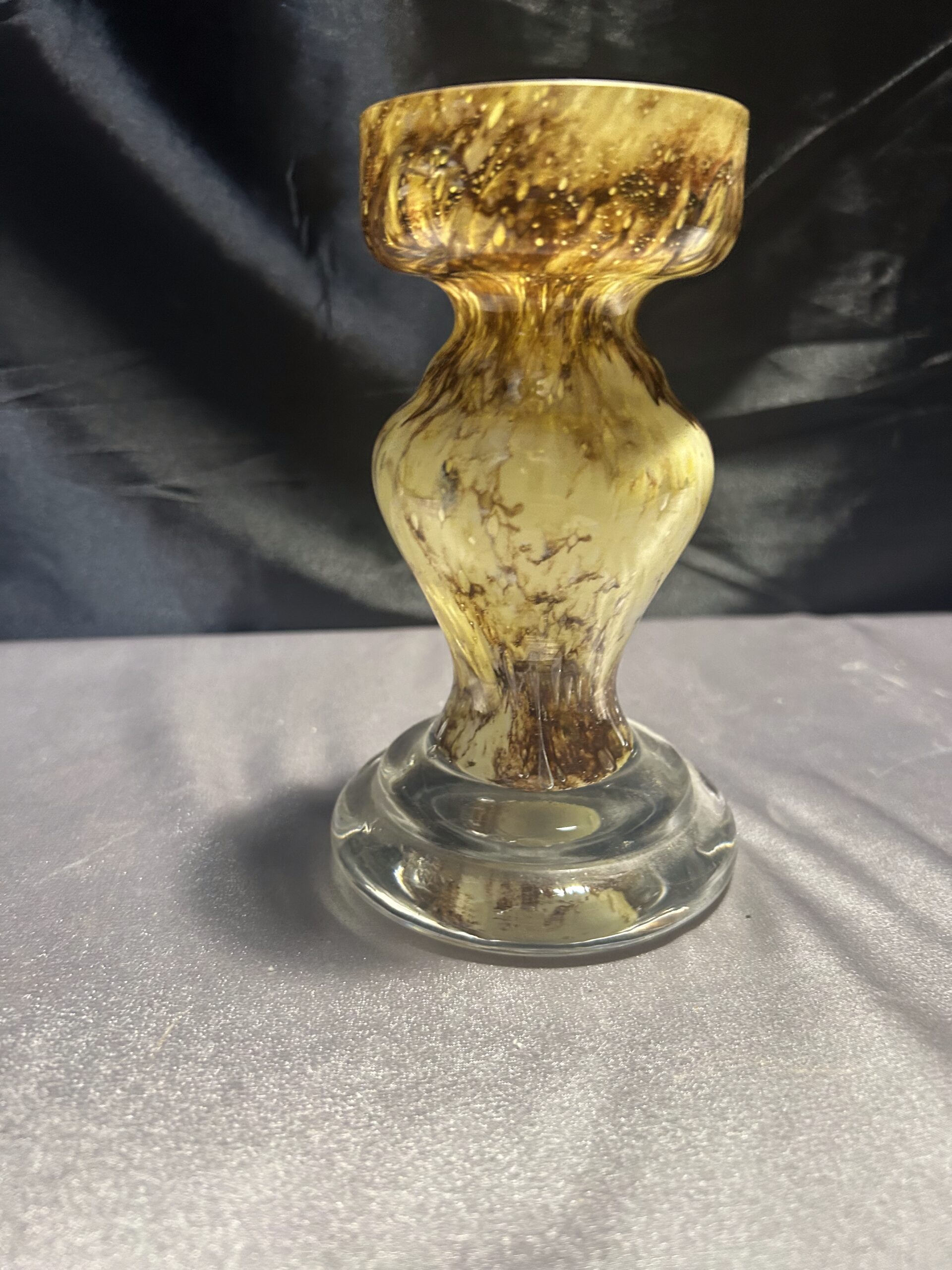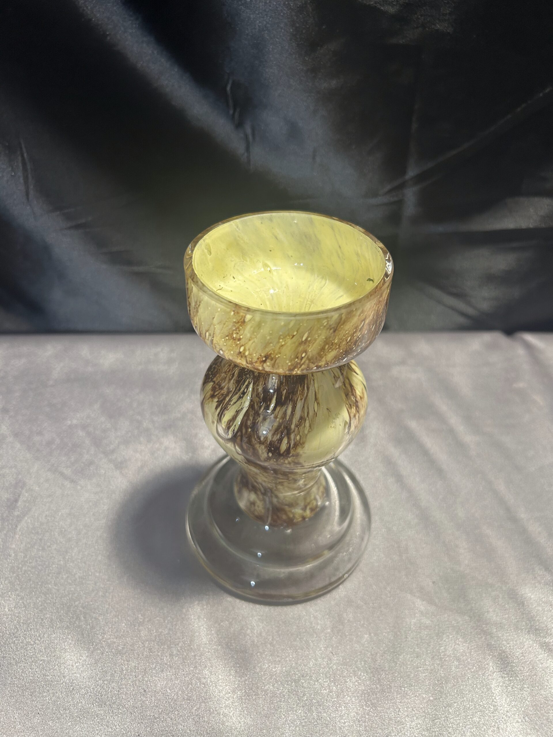Wyjątkowy flakon/wazon wykonany z ręcznie robionego szkła, wyróżniający się pięknymi odcieniami brązu i beżu. Dzięki unikalnemu designowi i starannemu wykonaniu, idealnie nadaje się jako dekoracja stołu, komody lub parapetu.