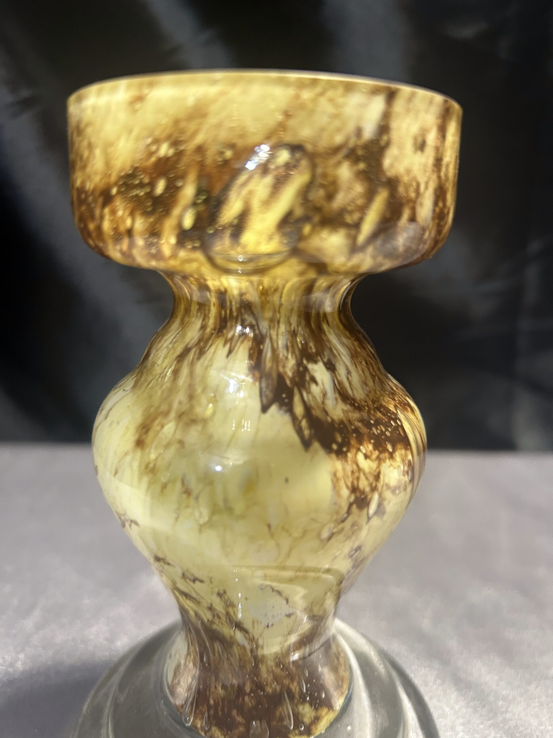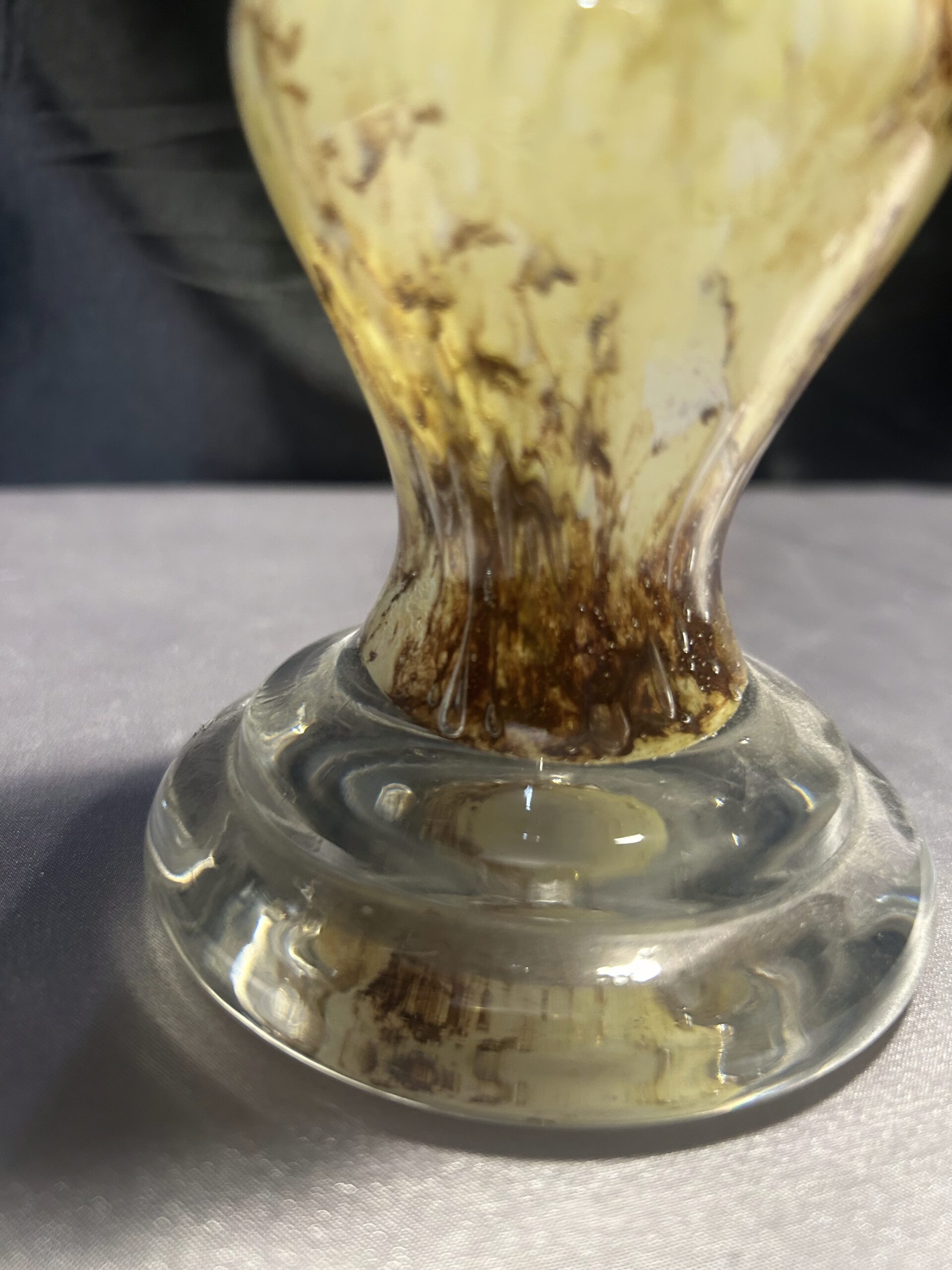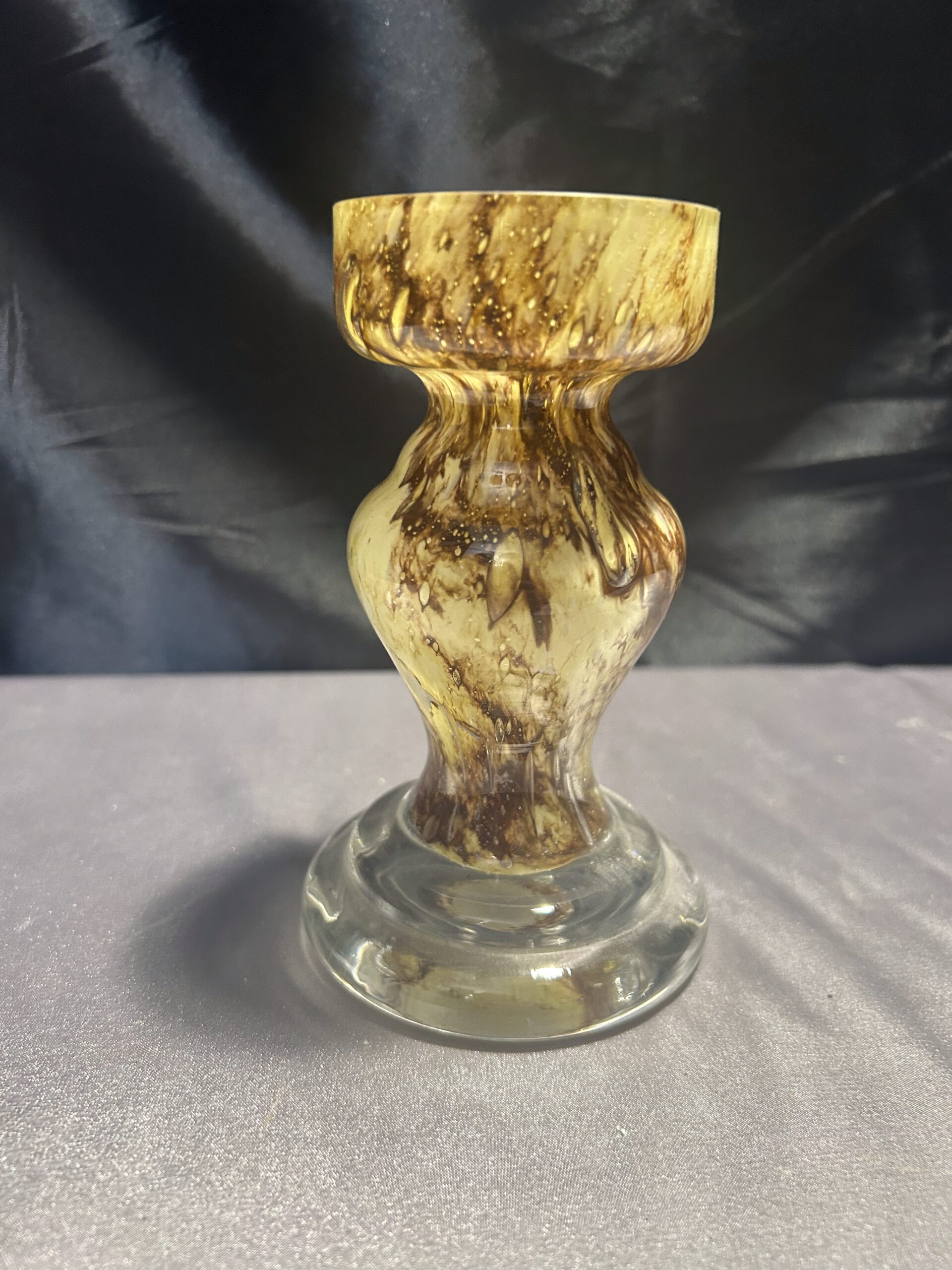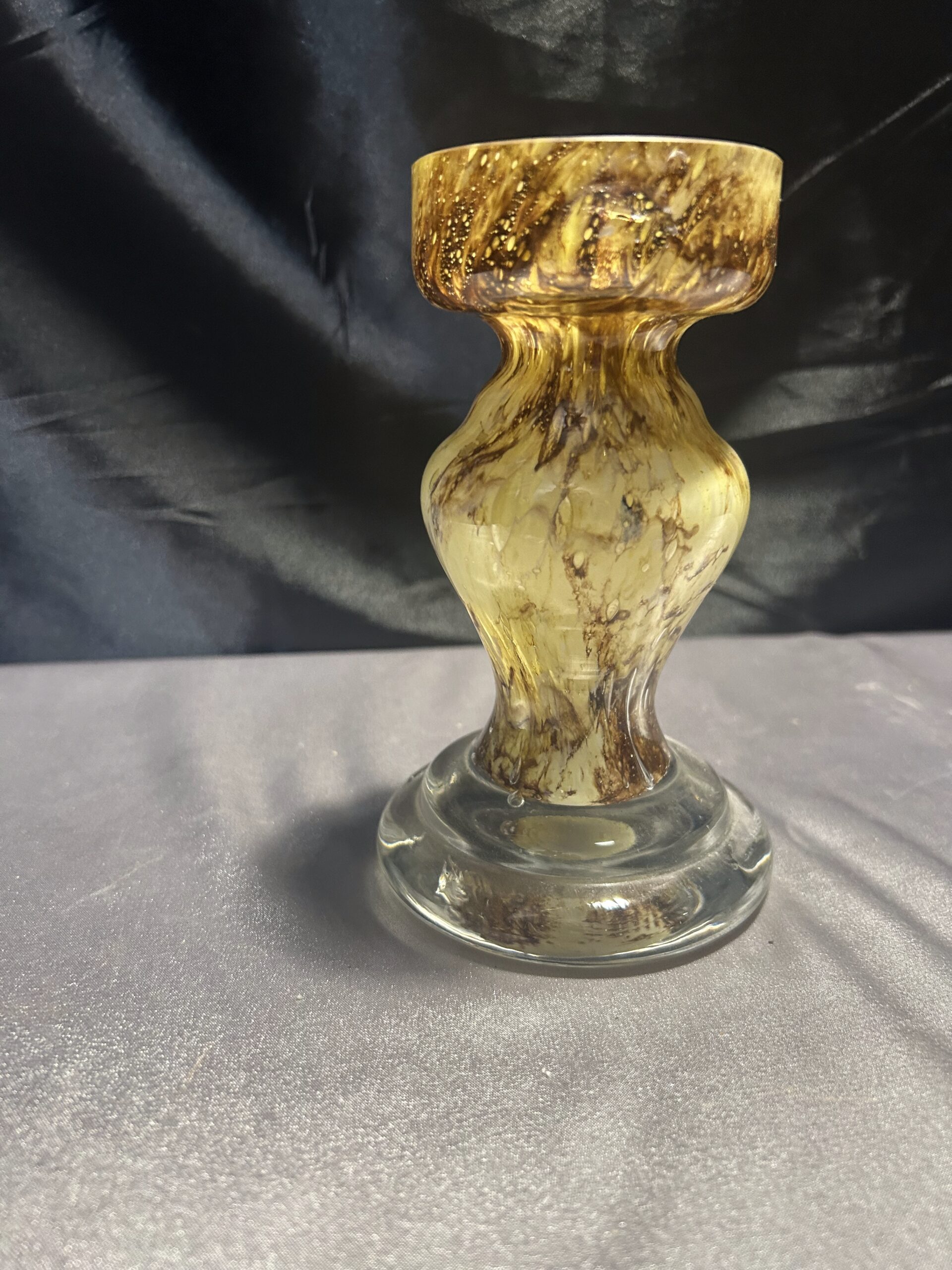 Wyjątkowy flakon/wazon wykonany z ręcznie robionego szkła, wyróżniający się pięknymi odcieniami brązu i beżu. Dzięki unikalnemu designowi i starannemu wykonaniu, idealnie nadaje się jako dekoracja stołu, komody lub parapetu.