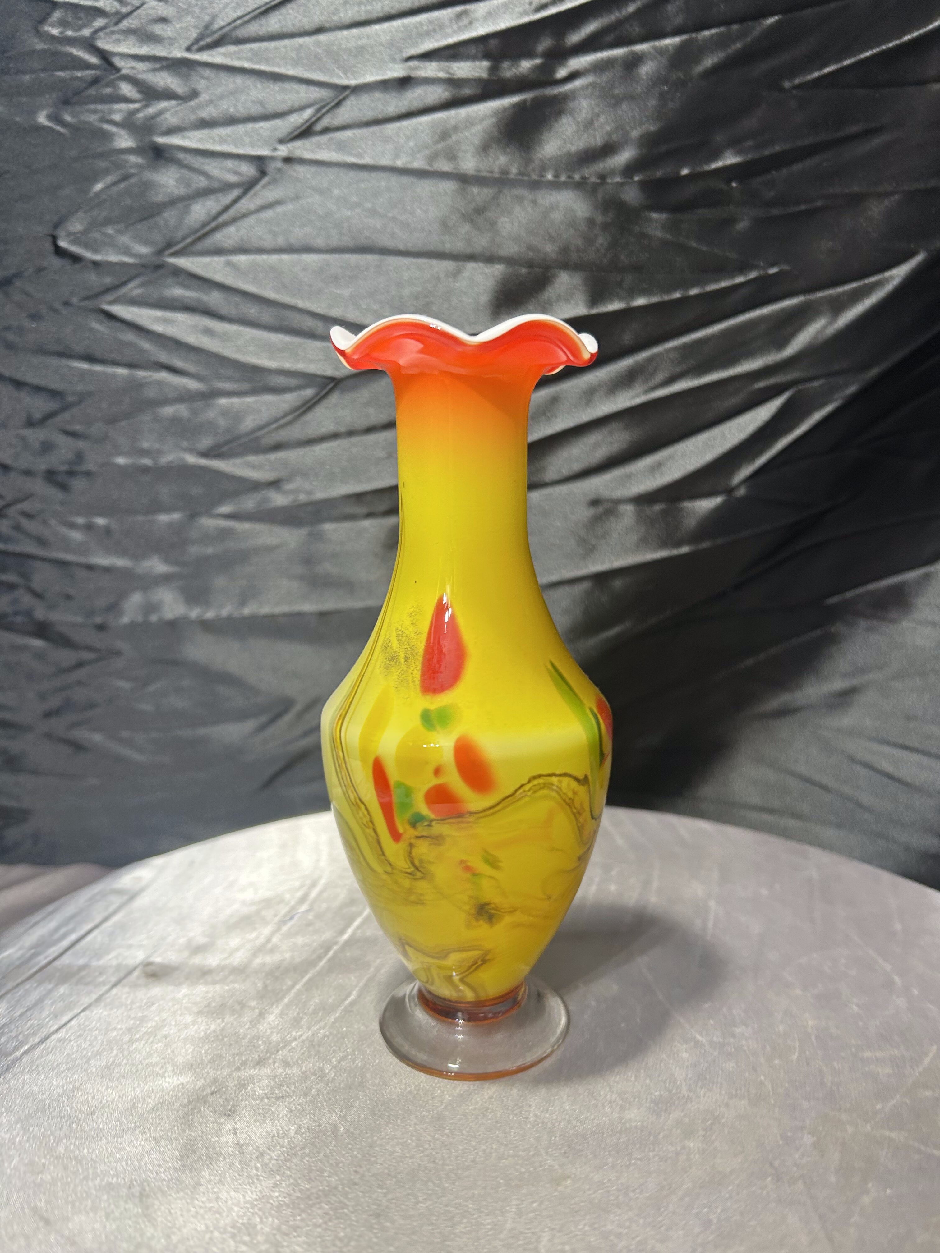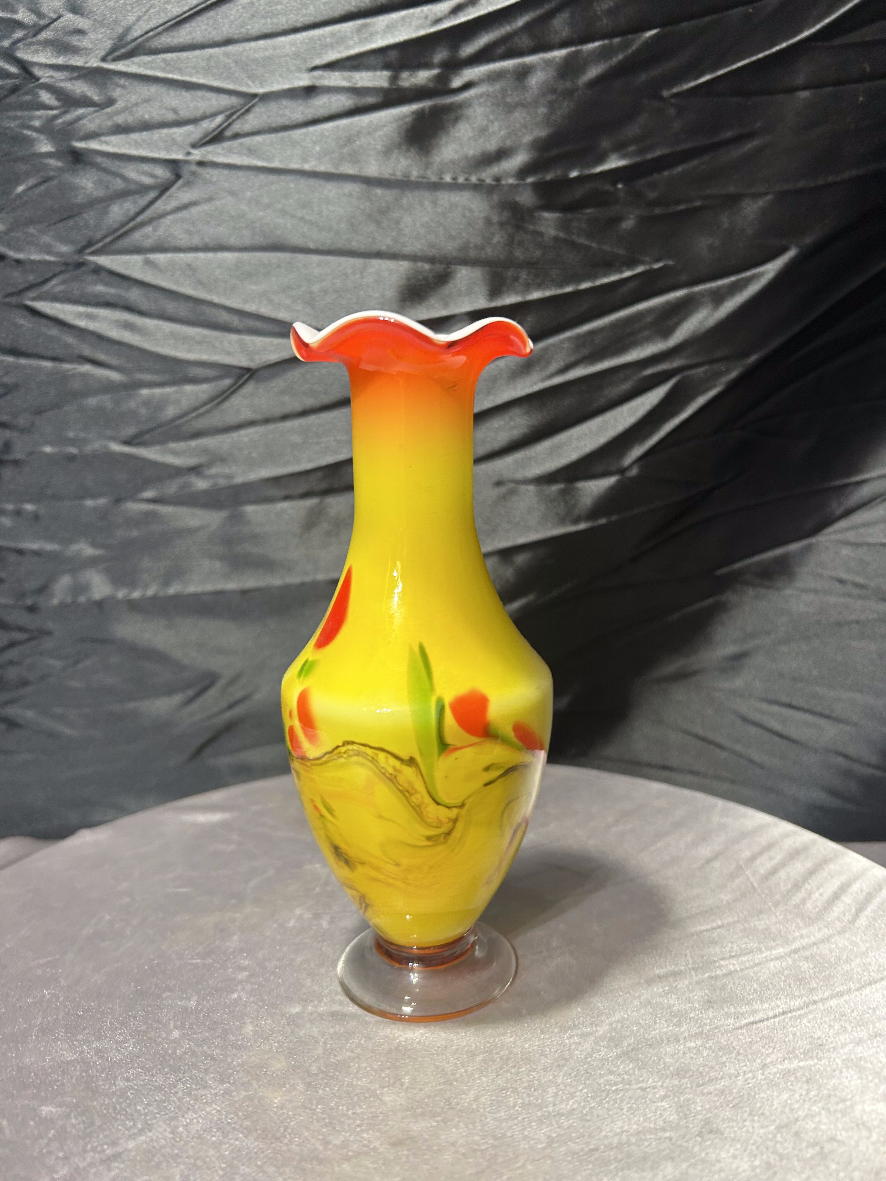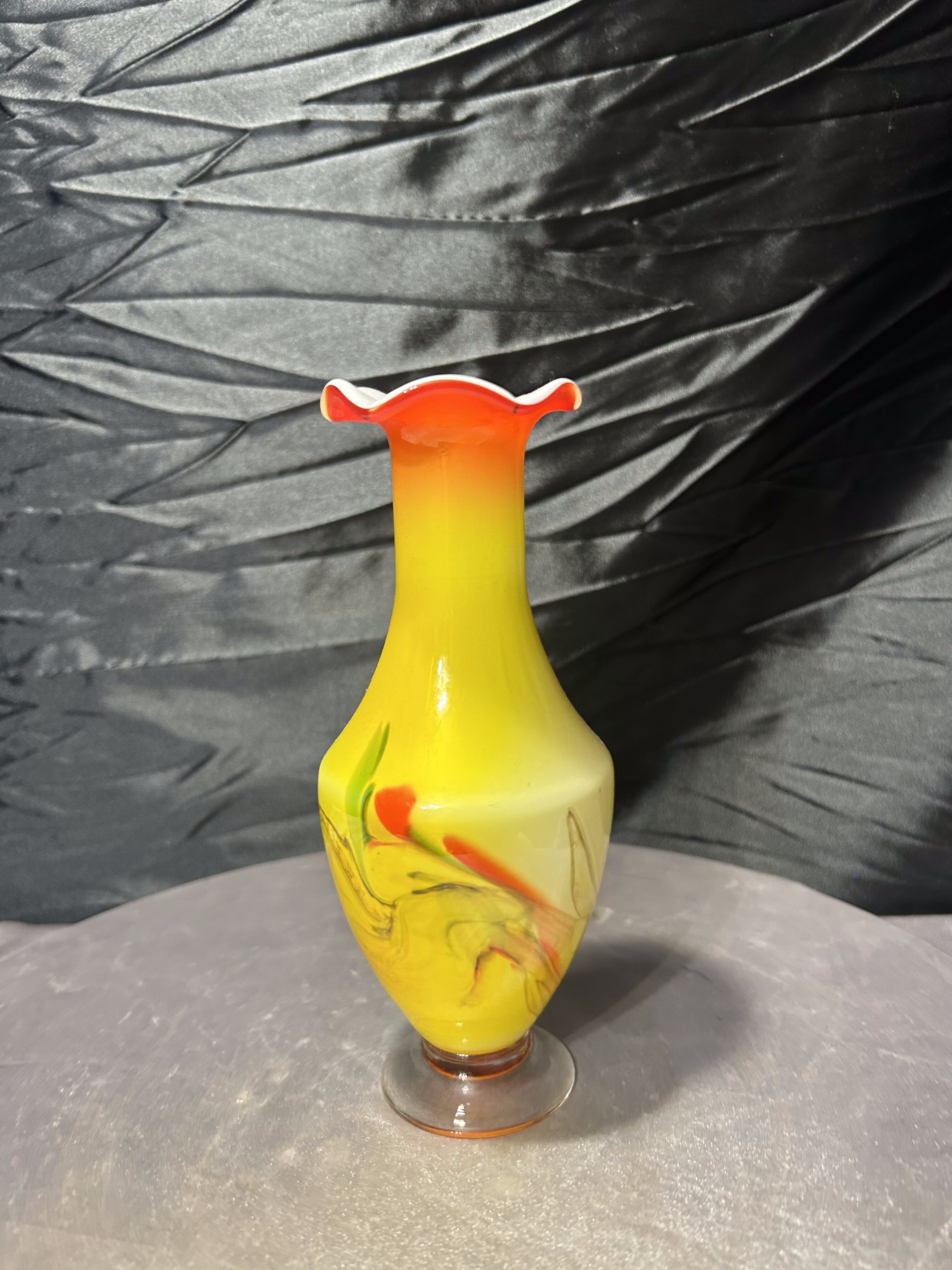 - Flakon / wazon – szkło artystyczne – żółto-pomarańczowy gradient – falbanka