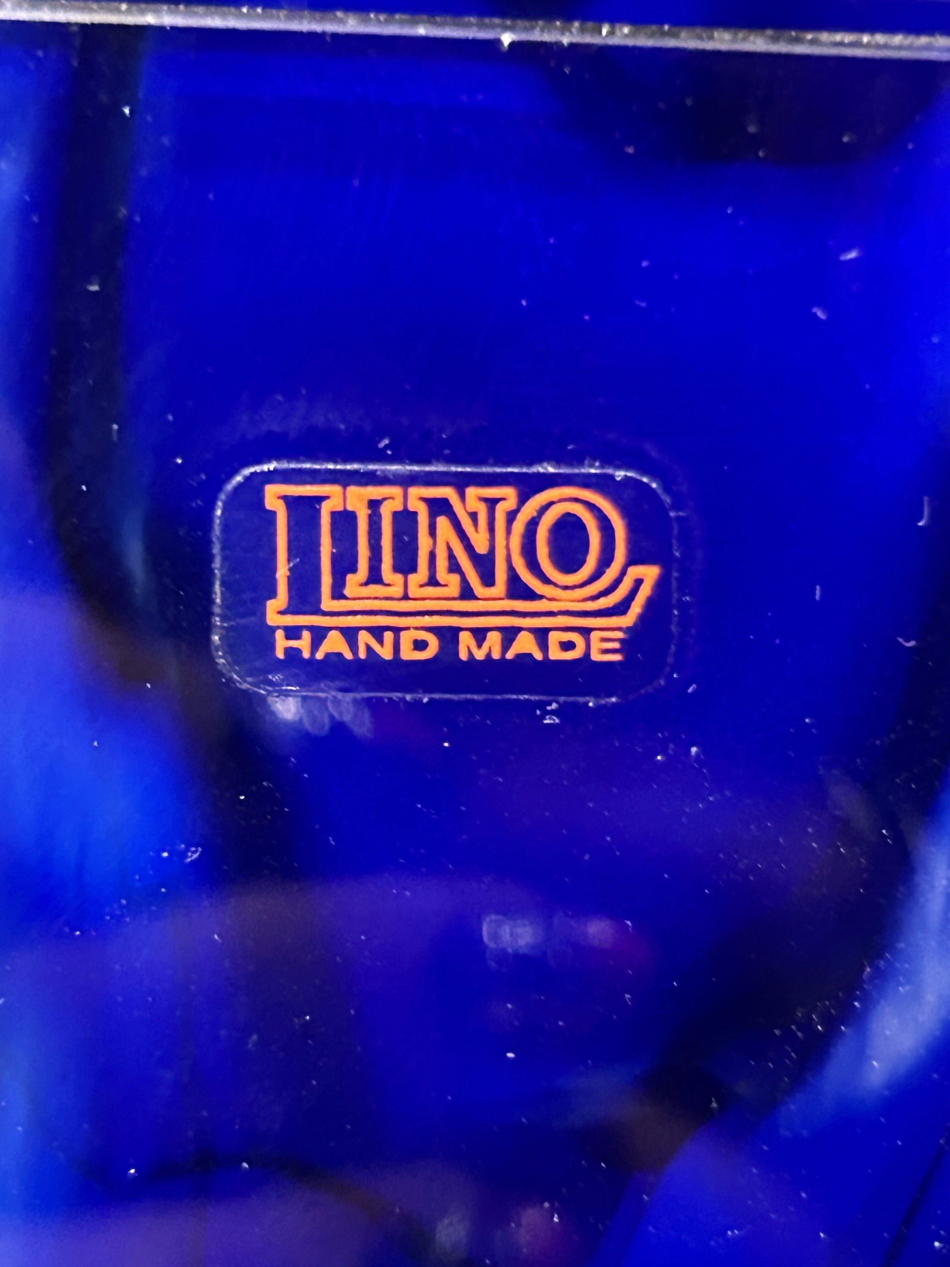 Oryginalna naklejka Lino Glass – Hand Made. Oznaczenie to spotykane jest na dekoracyjnym szkle artystycznym wykonywanym ręcznie, inspirowanym włoską tradycją Murano. Naklejka potwierdza ręczne wykonanie oraz dekoracyjno-kolekcjonerski charakter obiektu.