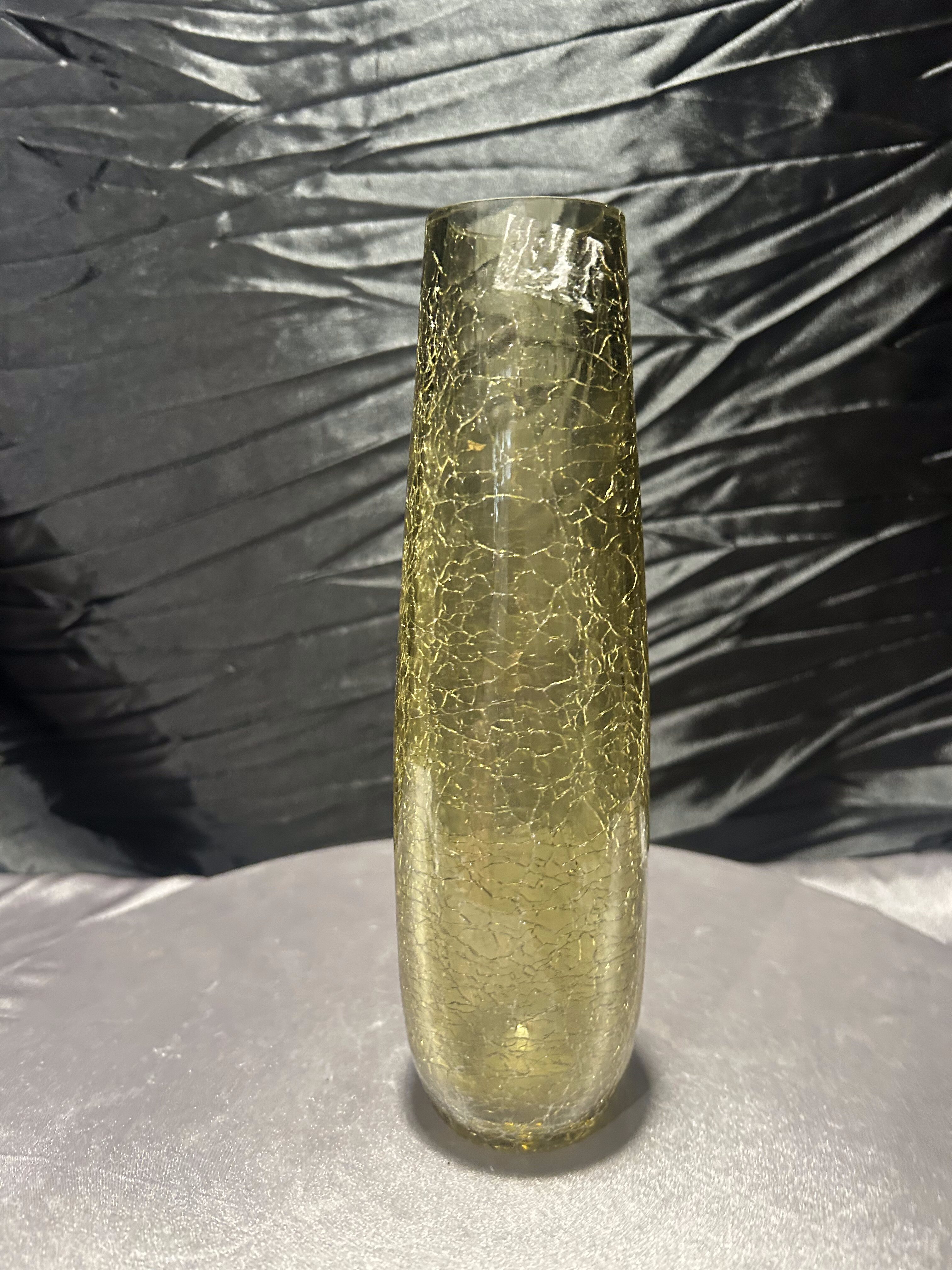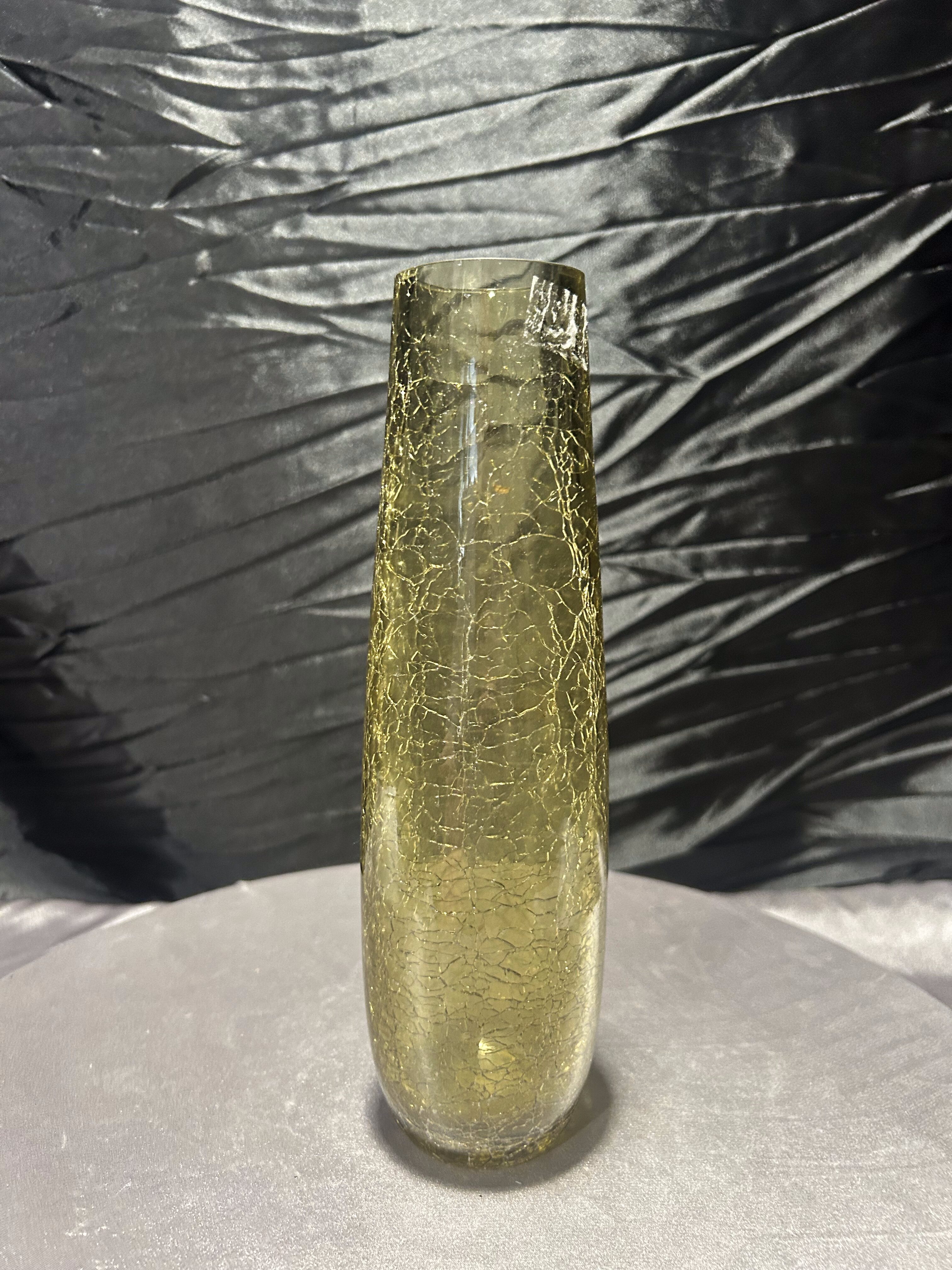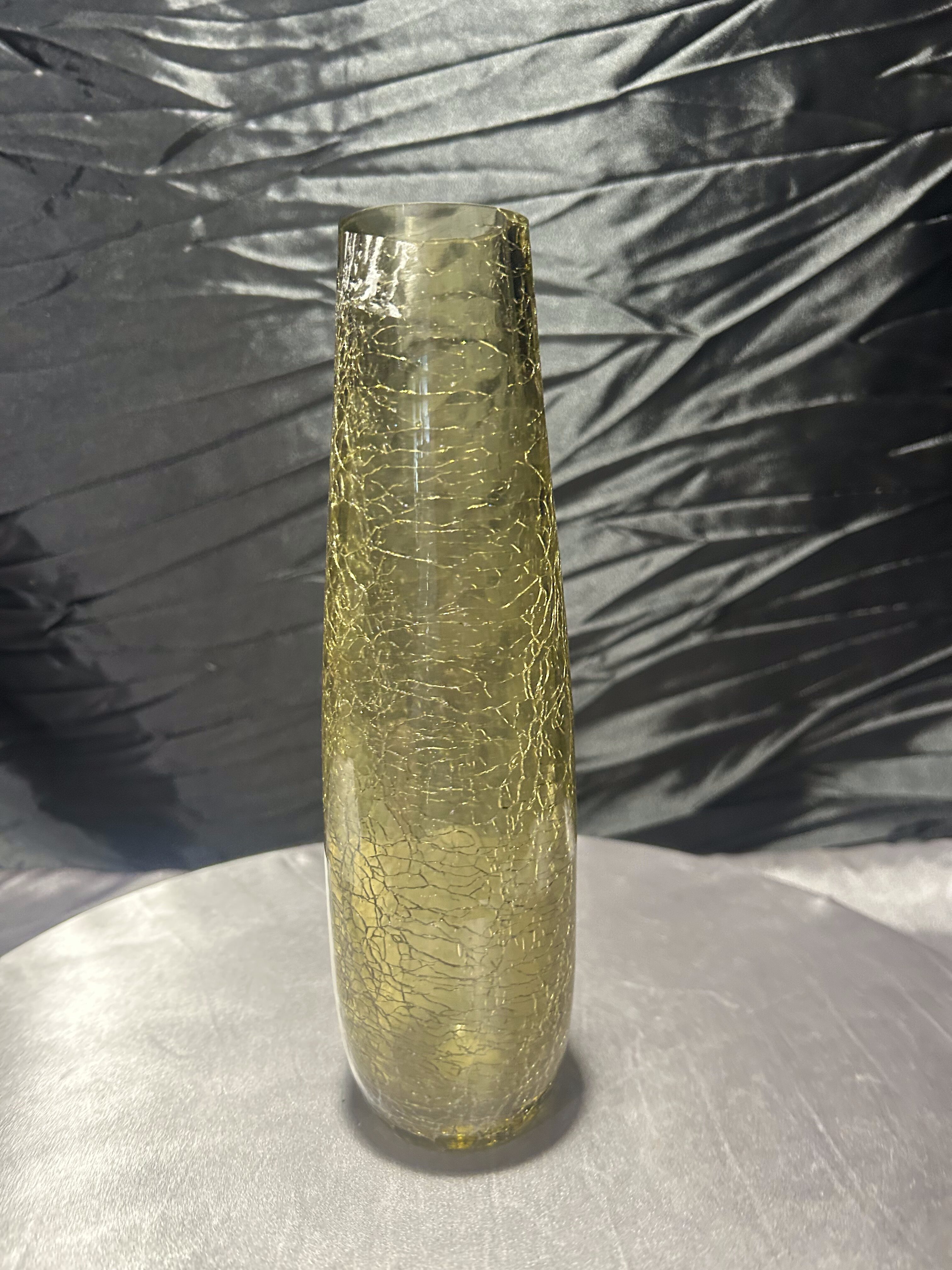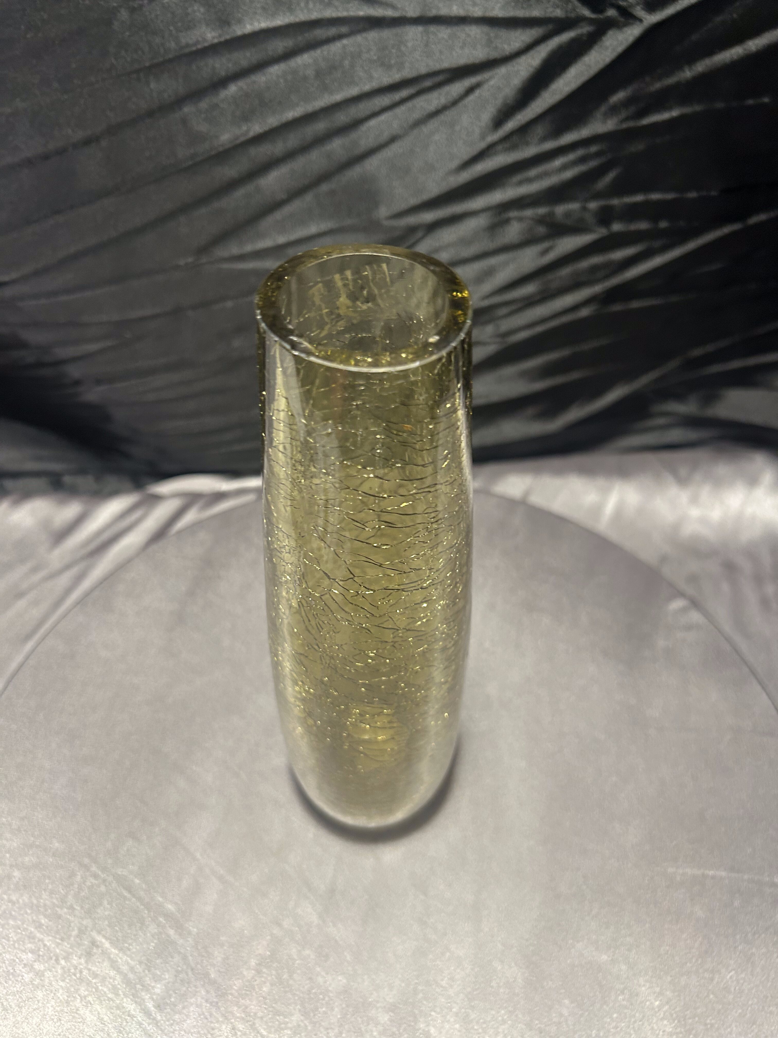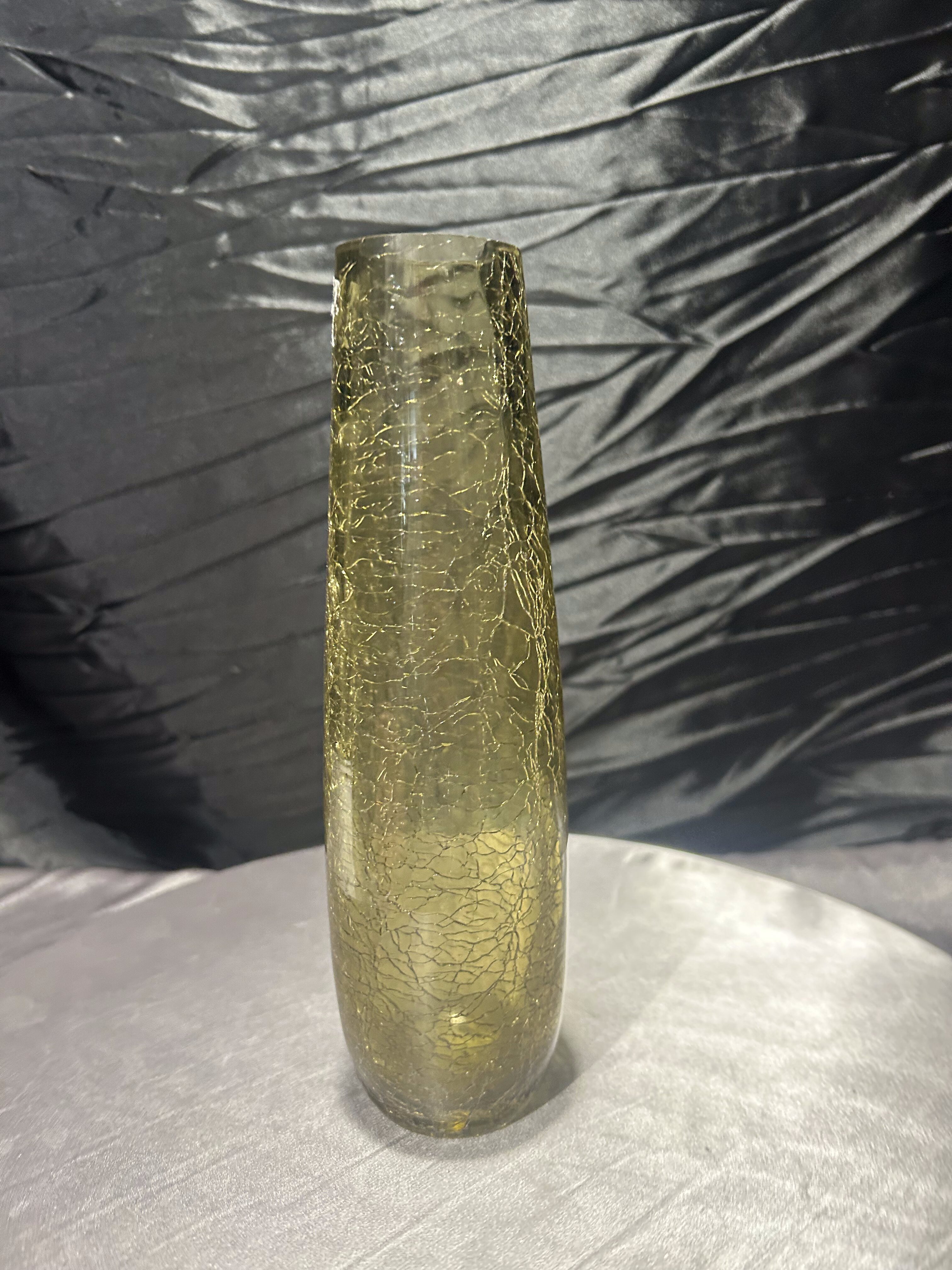 - Flakon / wazon ze szkła artystycznego – zielonkawo-żółty – efekt „crackle”
