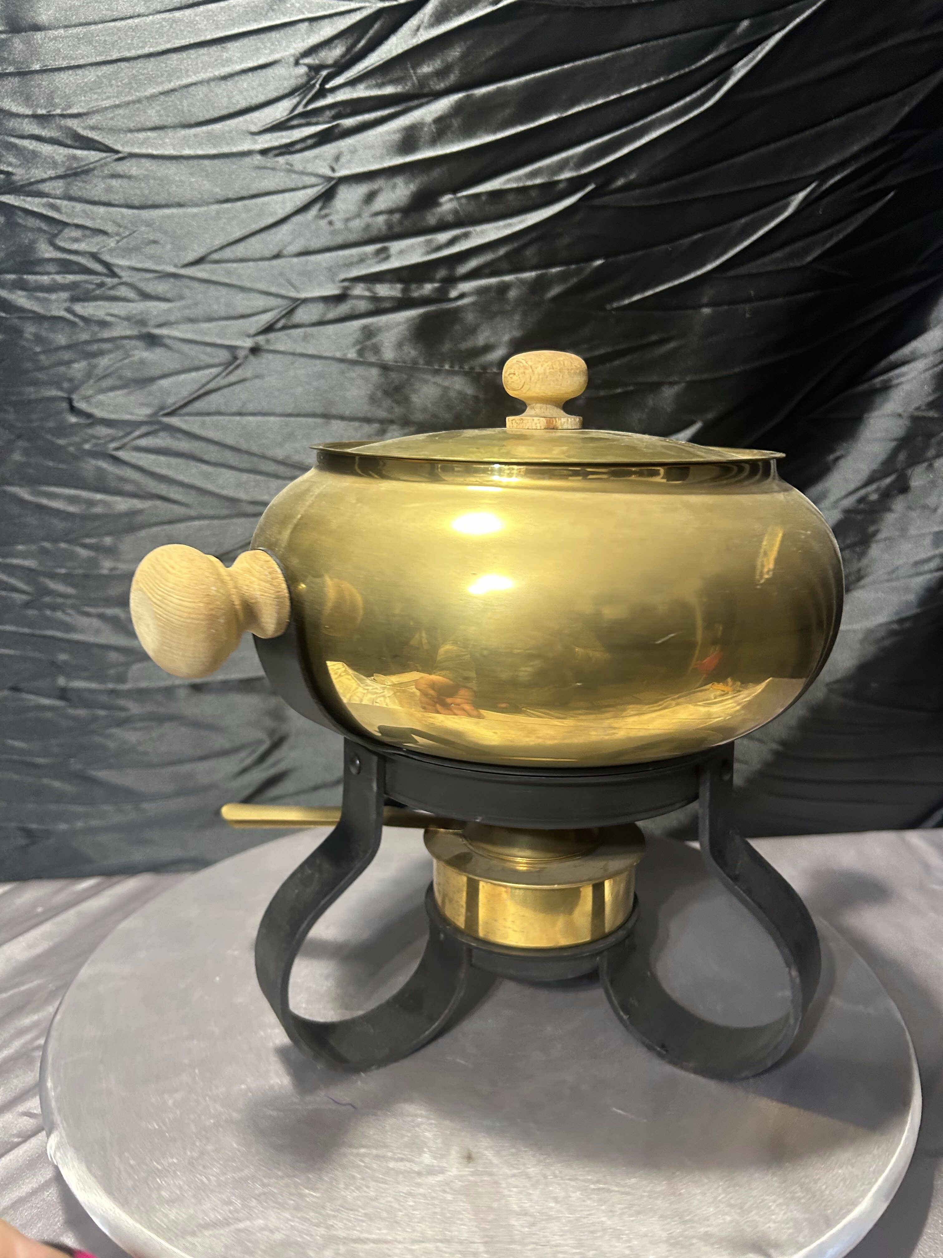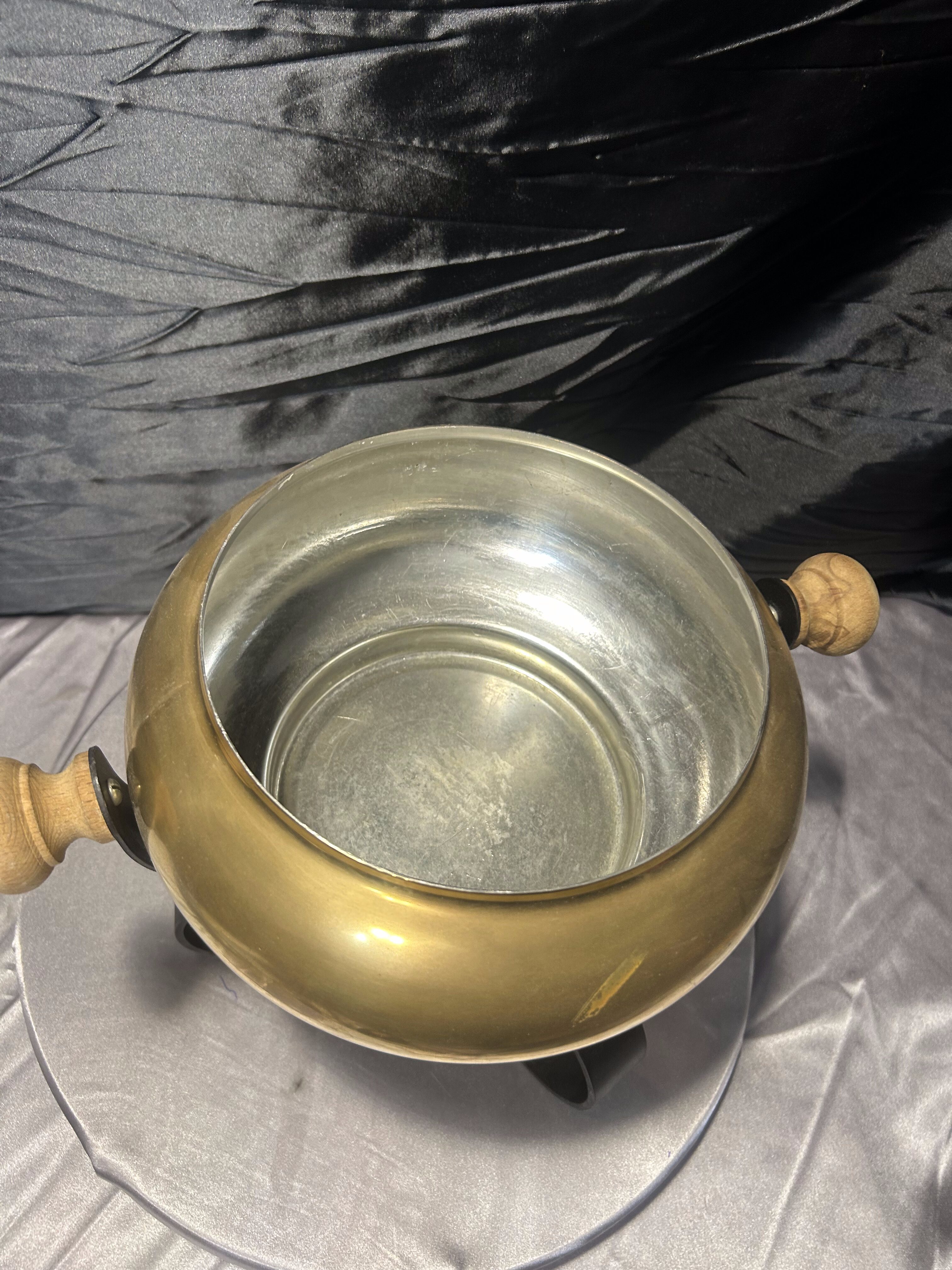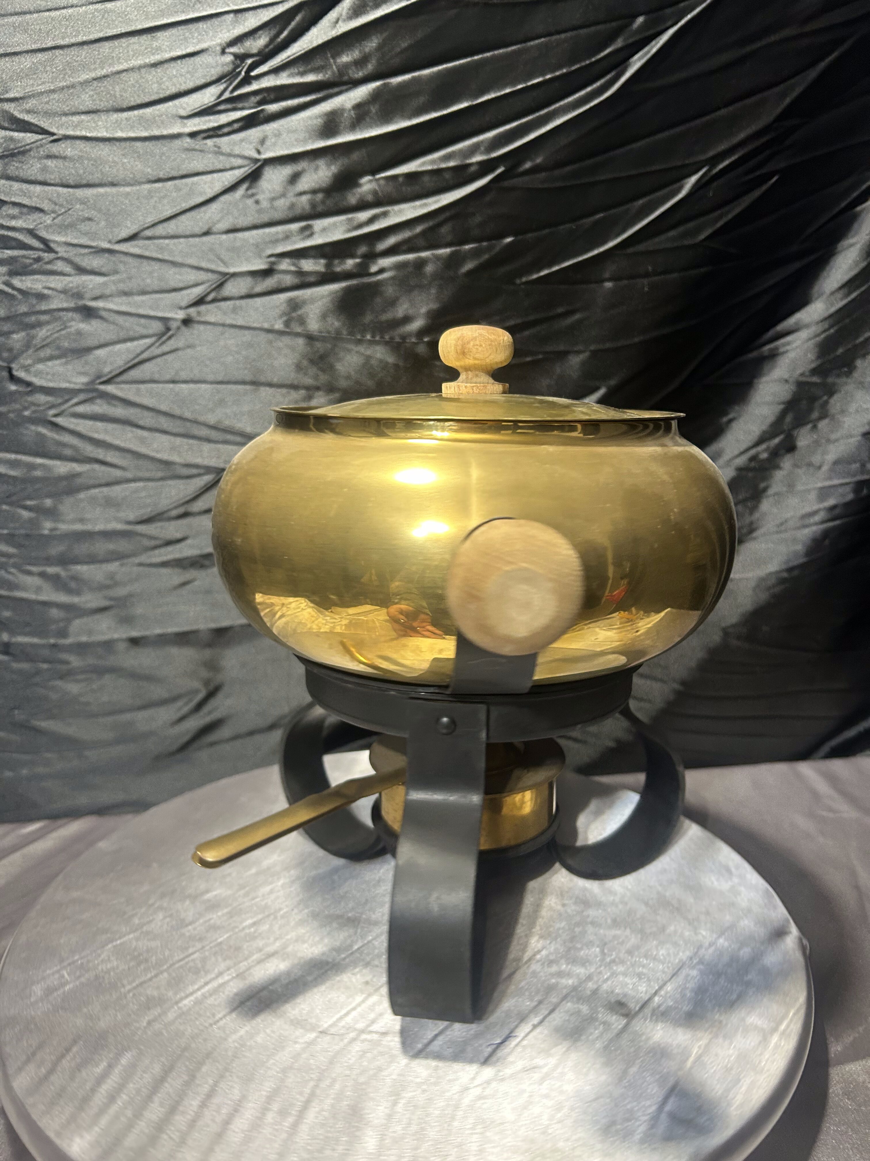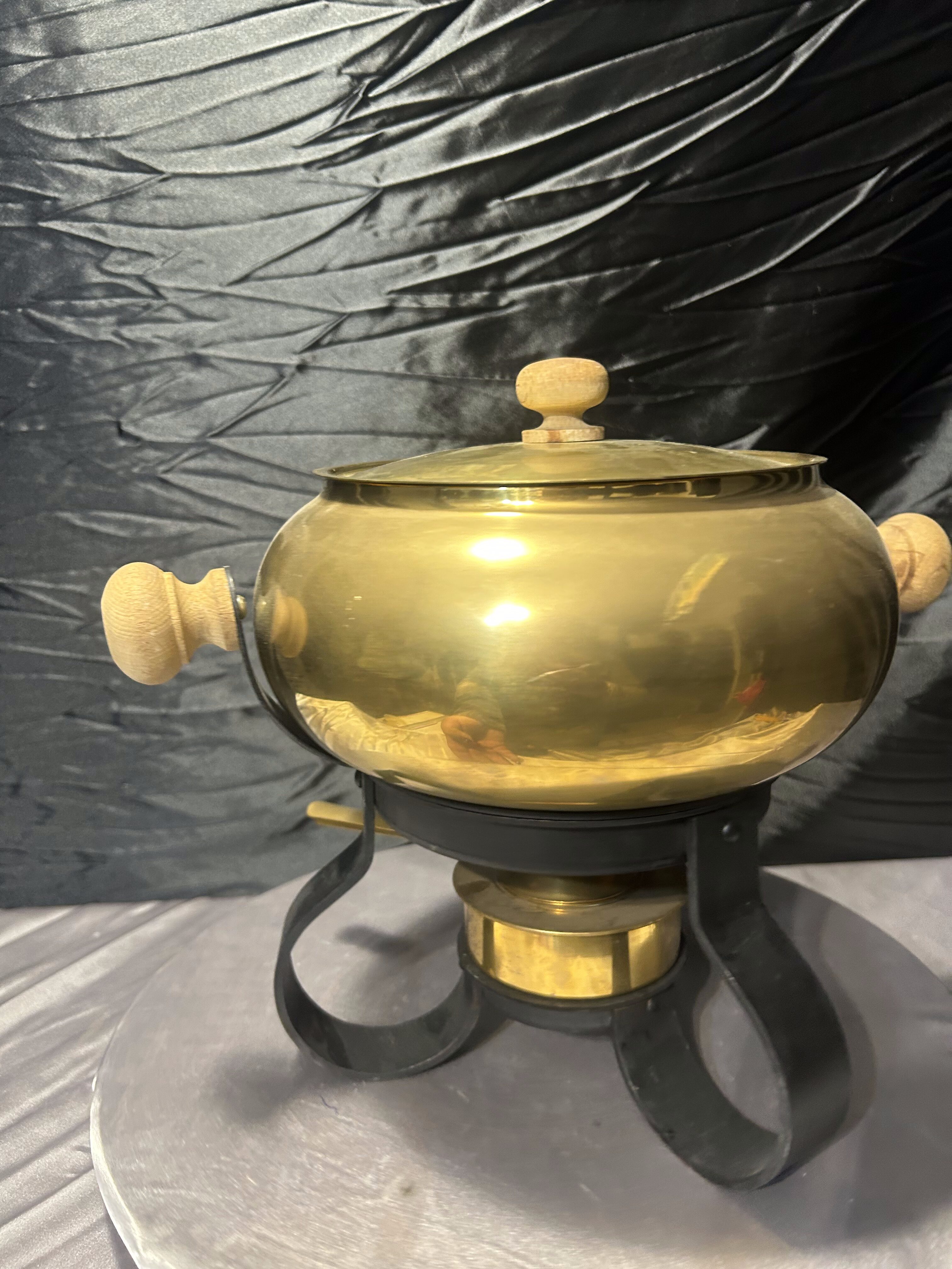 Mosiężny Garnek do Fondue – Na Kutej Podstawie, Zestaw z Podgrzewaczem i Szczypcami, 3,1 kg