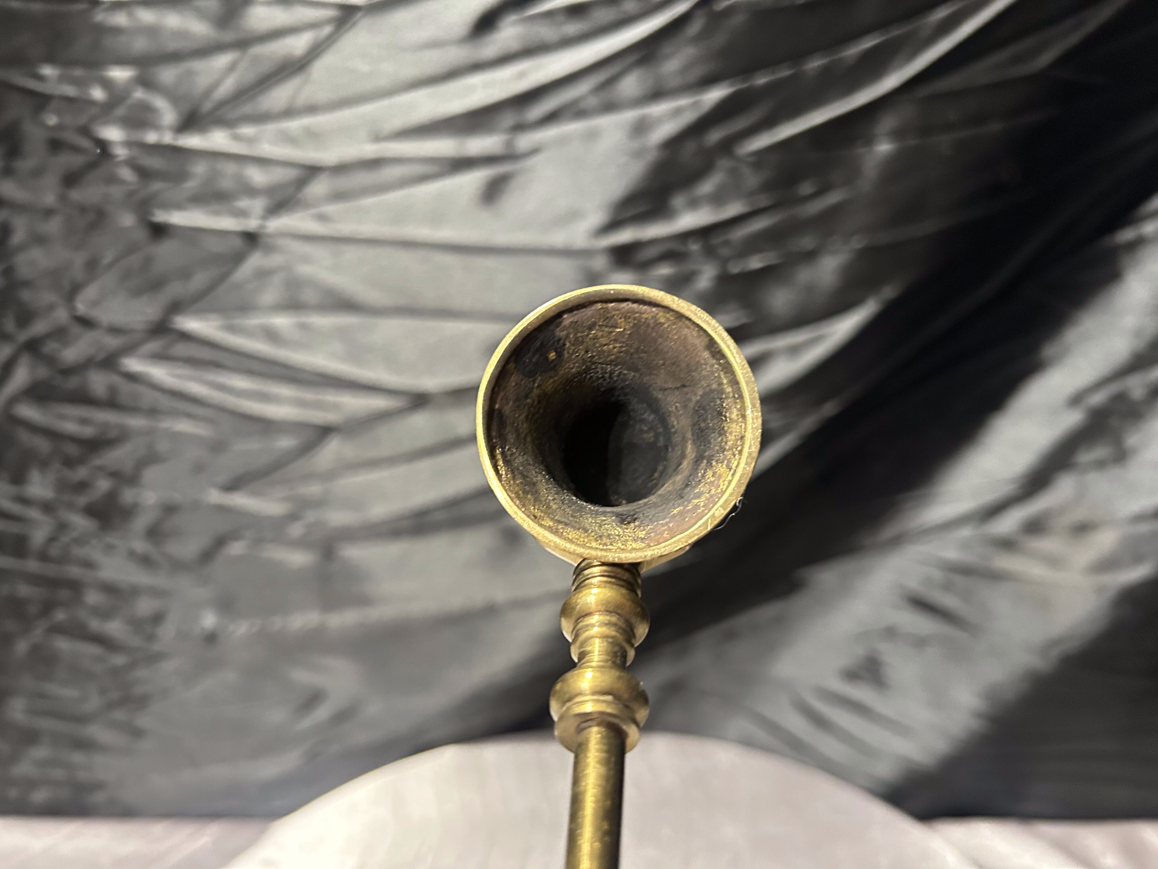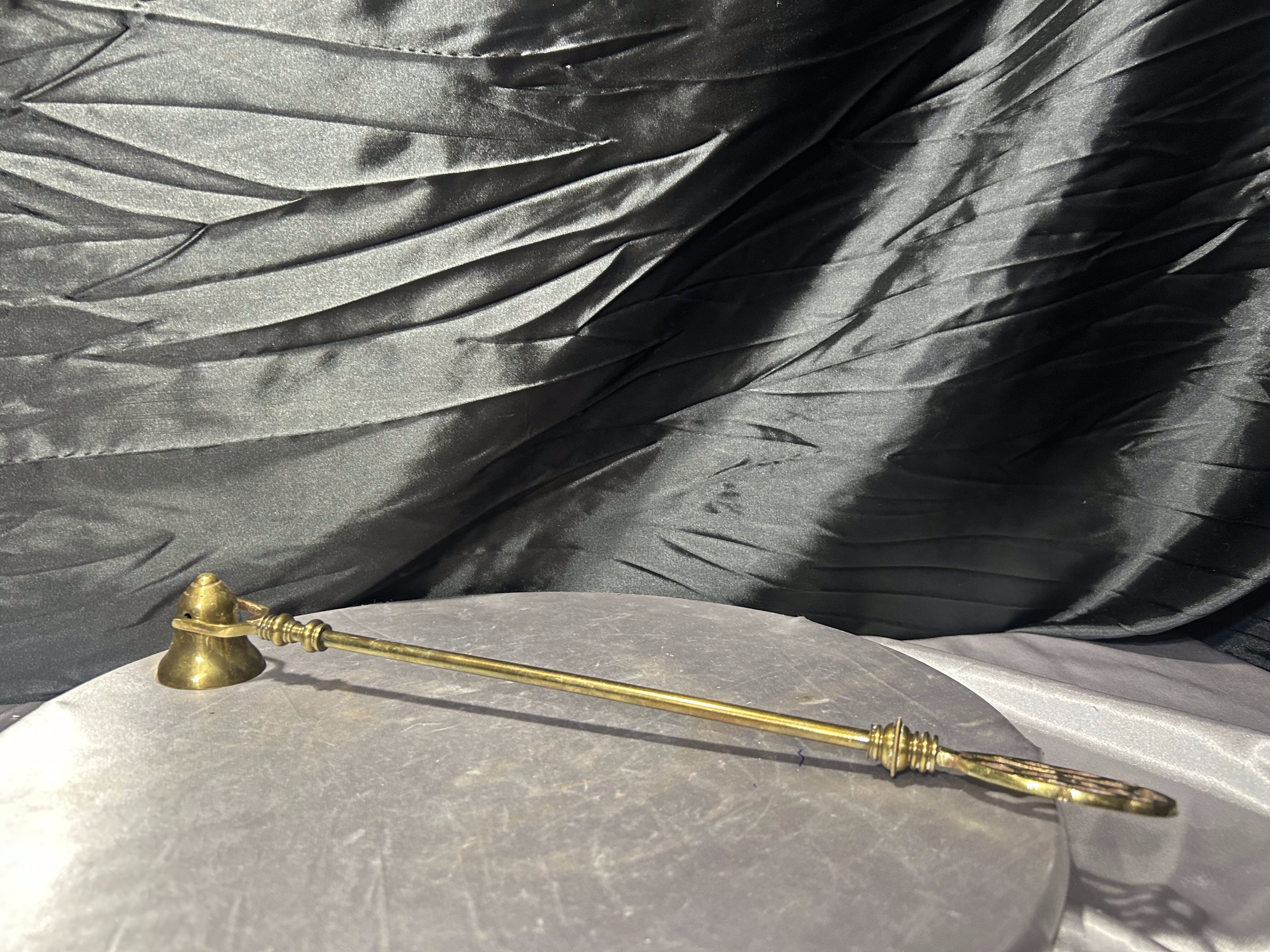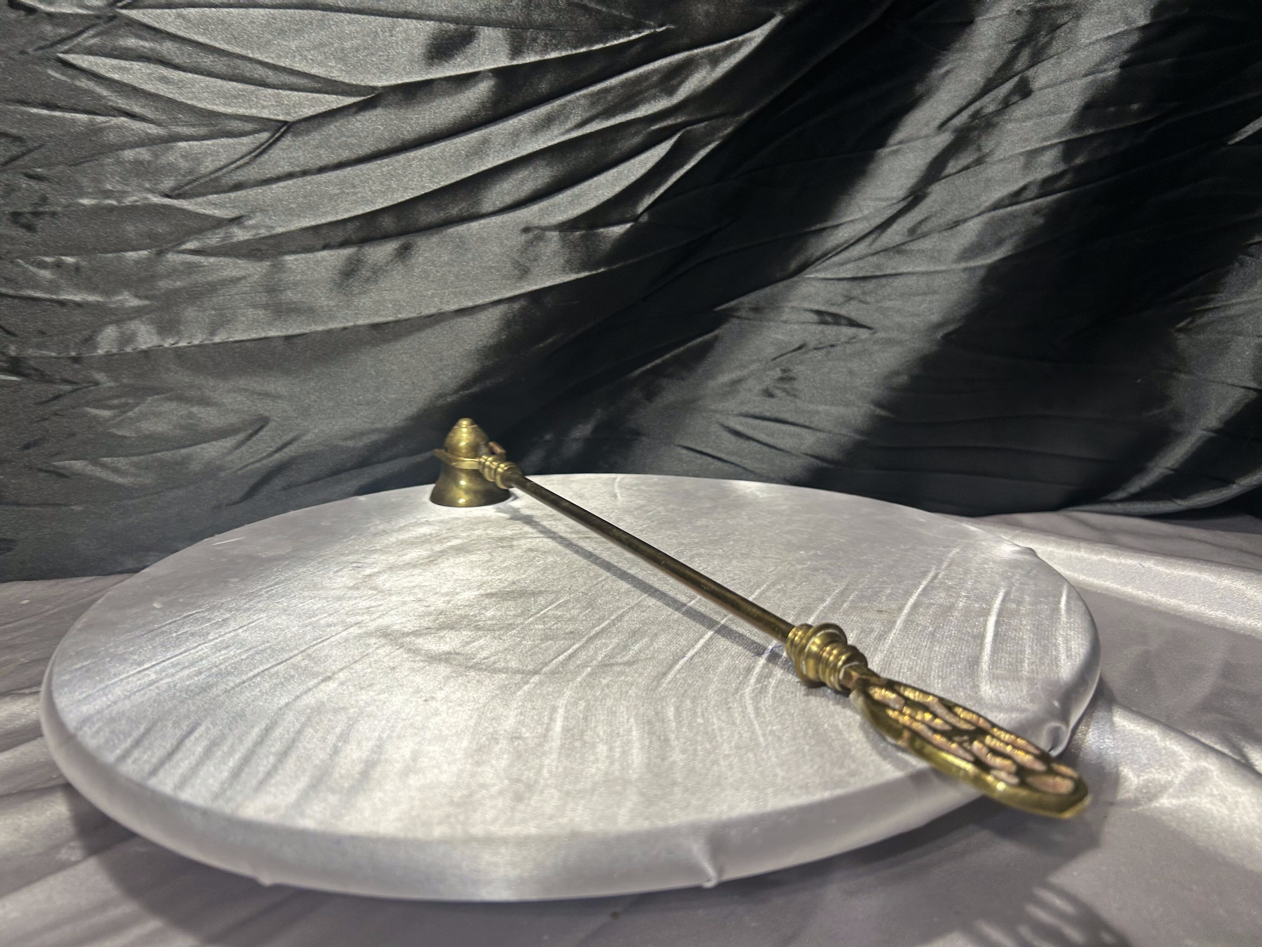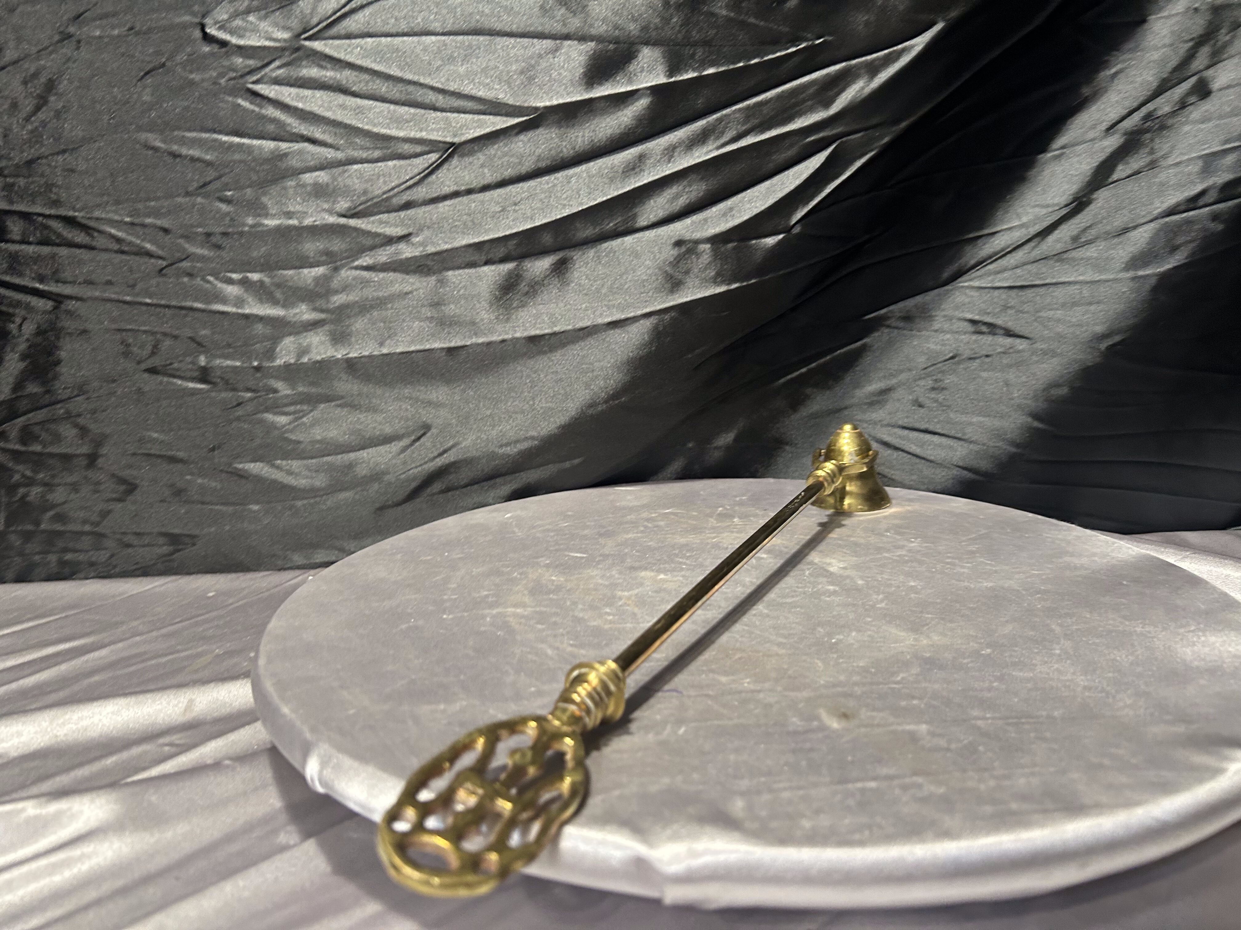 Efektowny, duży gasior do świec wykonany z mosiądzu, o wydłużonej, eleganckiej formie. Wyposażony w ruchomą końcówkę do gaszenia płomienia, która umożliwia wygodne i bezpieczne gaszenie świec nawet umieszczonych wysoko – w lichtarzach, kandelabrach czy świecznikach stojących.