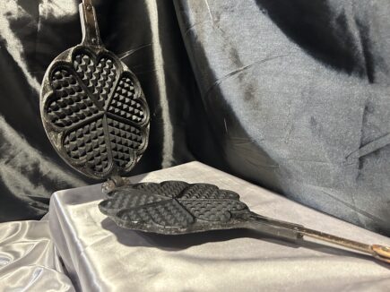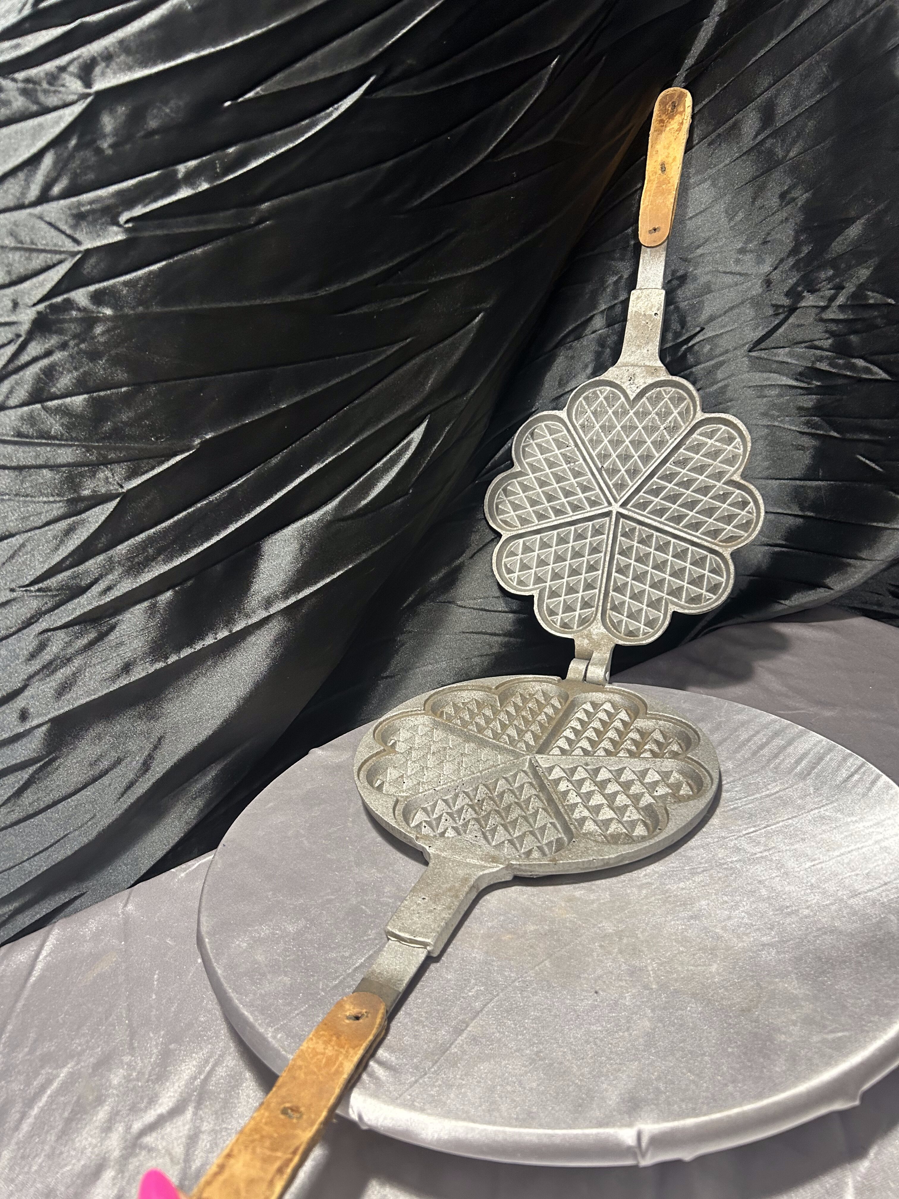 Zestaw dwóch żeliwnych gofrownic Jotul nr 6 – gofry w kształcie serduszek