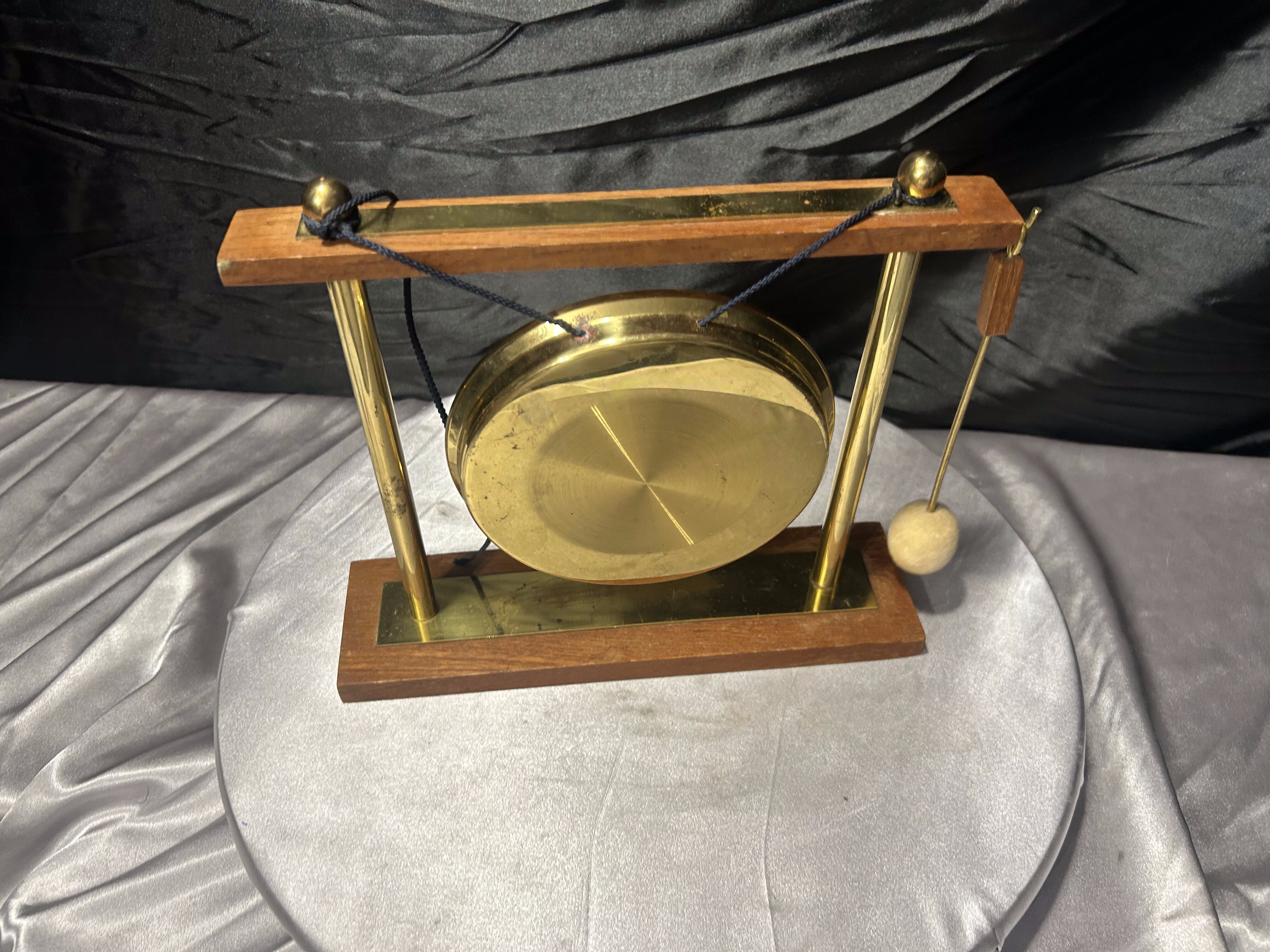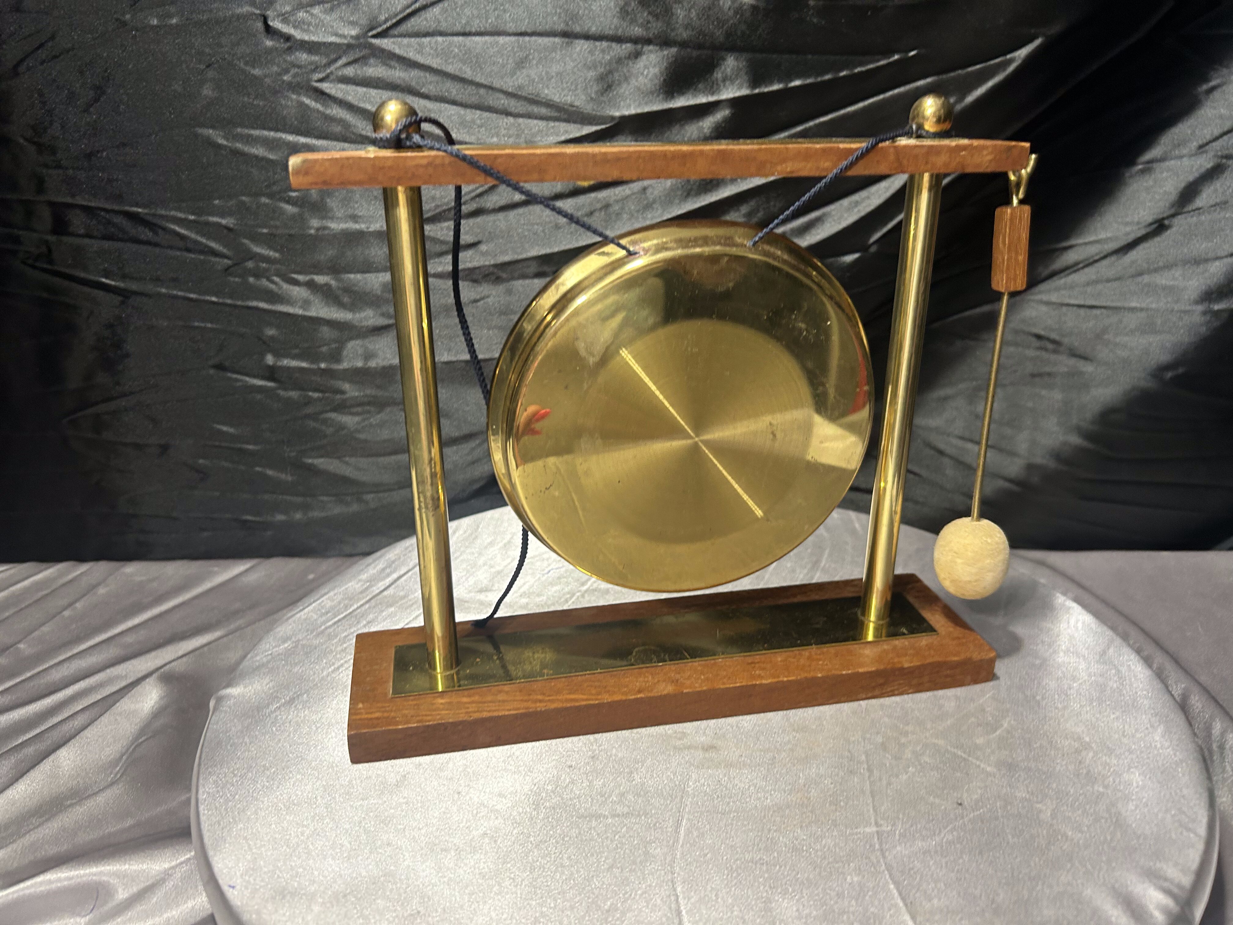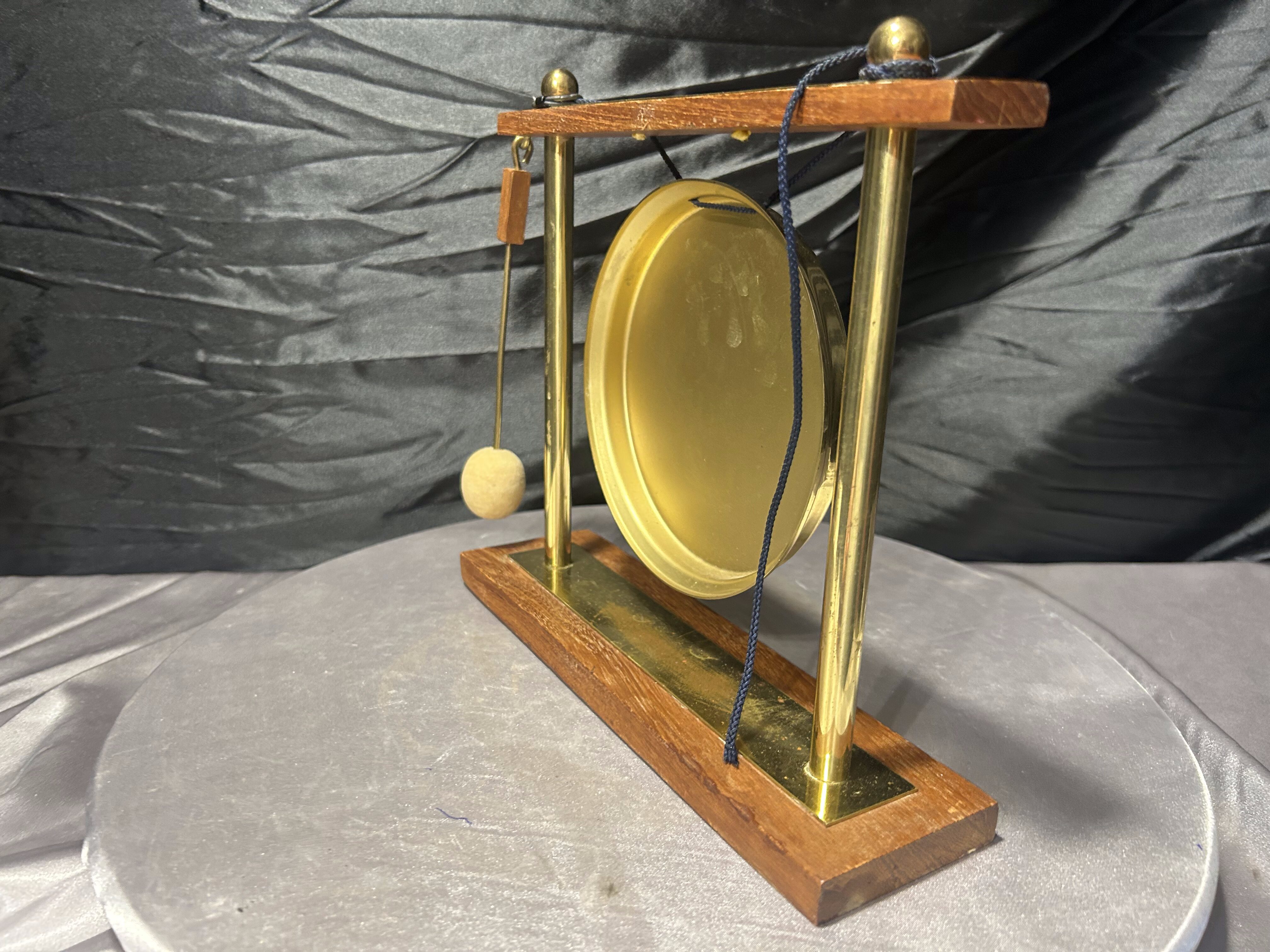 Dekoracyjny gong wykonany z mosiądzu, osadzony w stabilnej, drewnianej ramie z mosiężnymi elementami. Prosta, harmonijna forma łączy funkcję użytkową z estetyką klasycznego przedmiotu dekoracyjnego. Gong charakteryzuje się bardzo przyjemnym, czystym brzmieniem oraz naturalnymi wibracjami, które nadają mu wyjątkowy, uspokajający charakter.